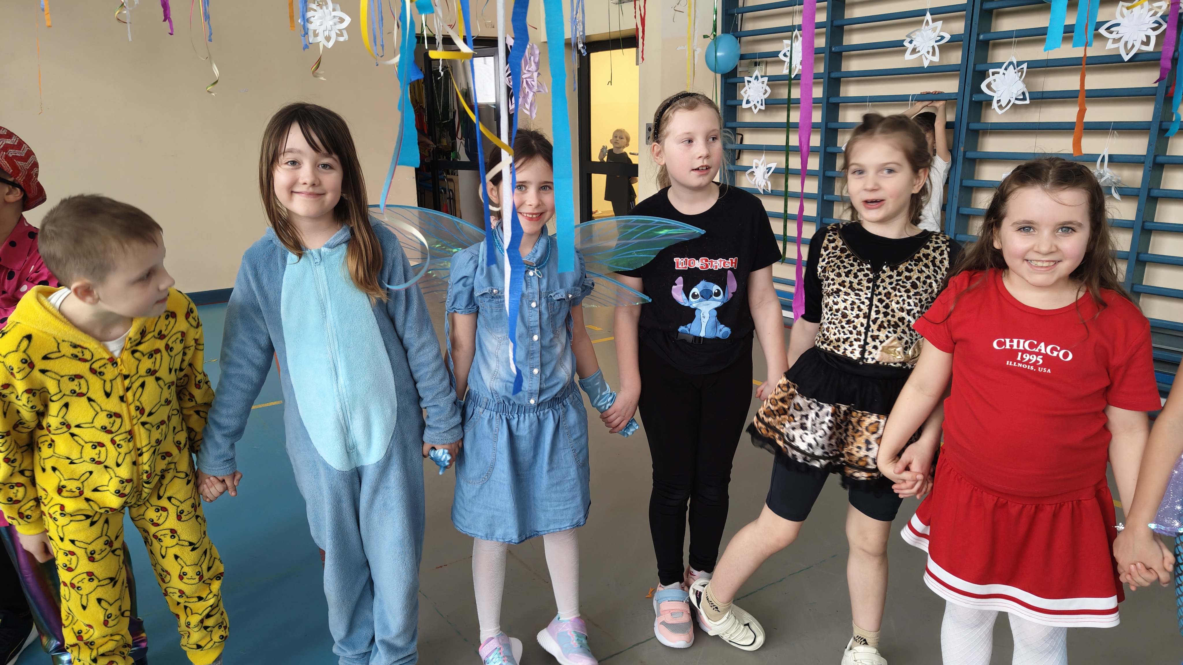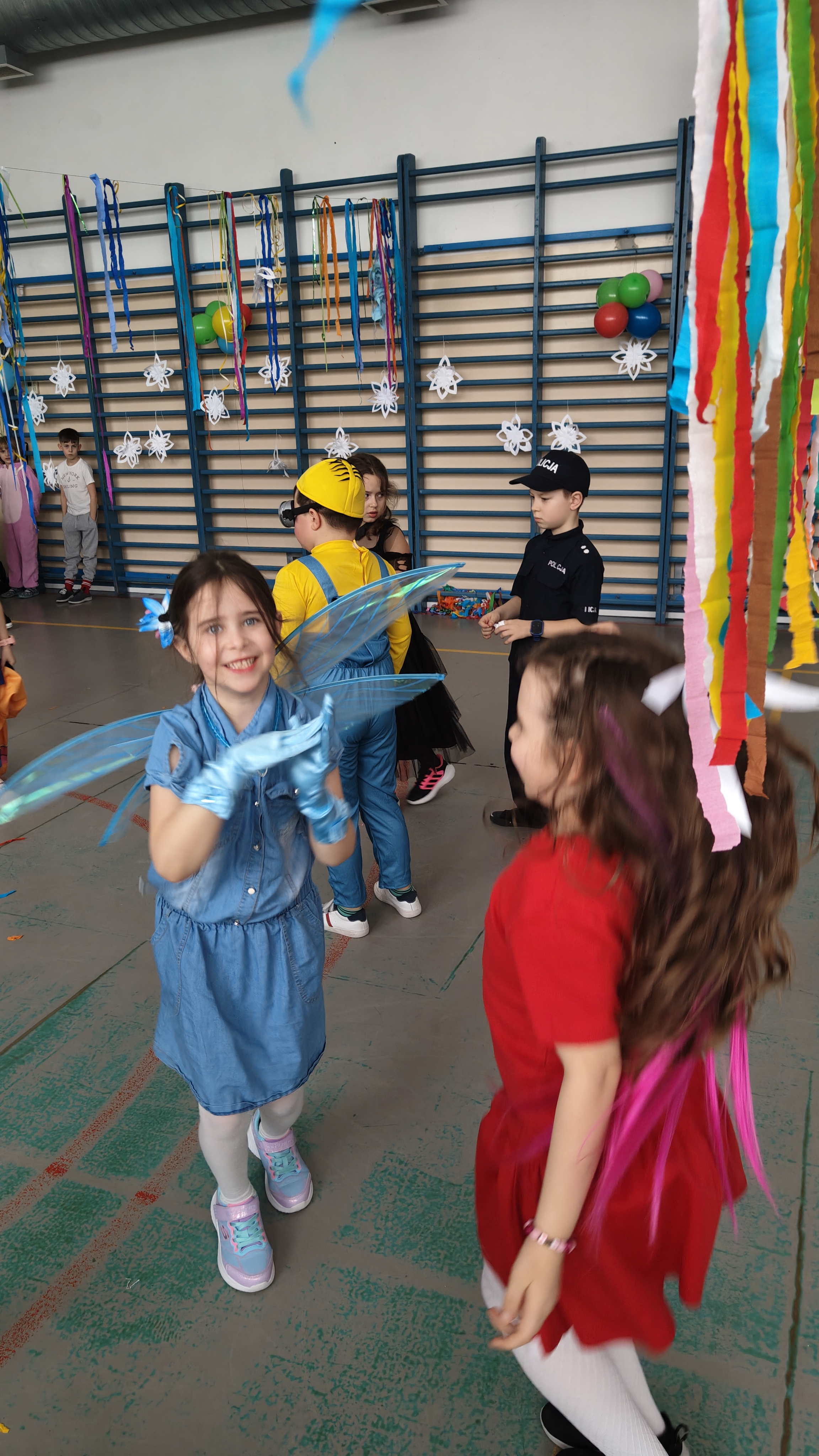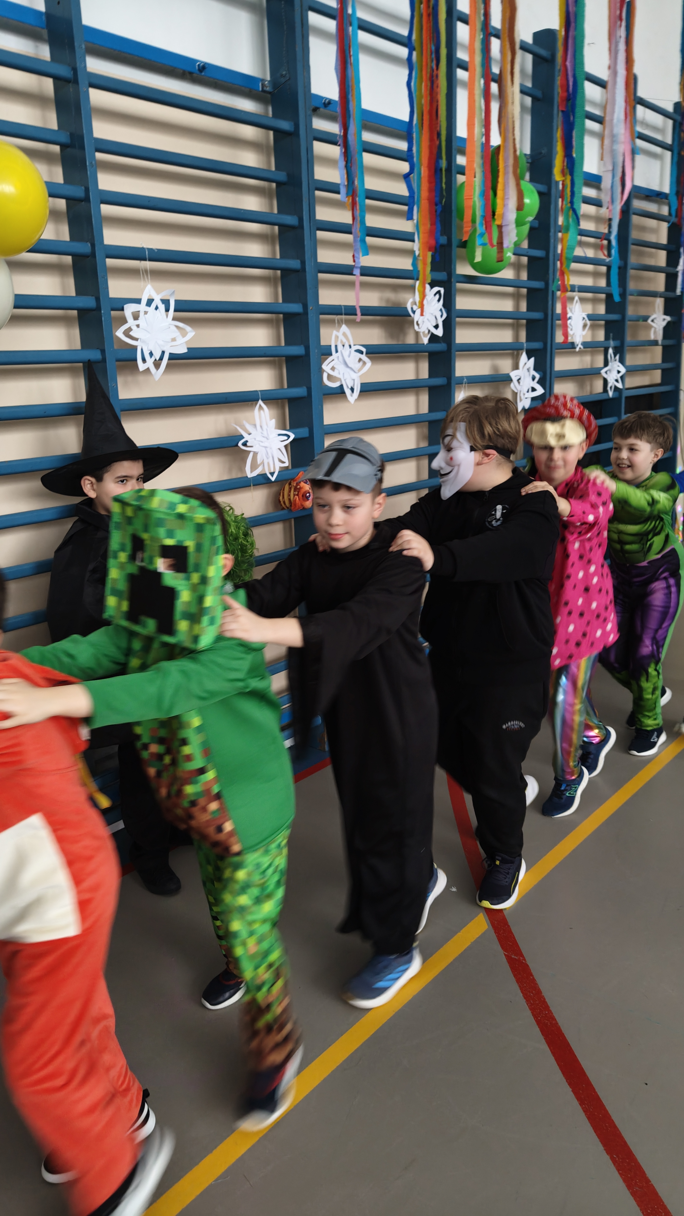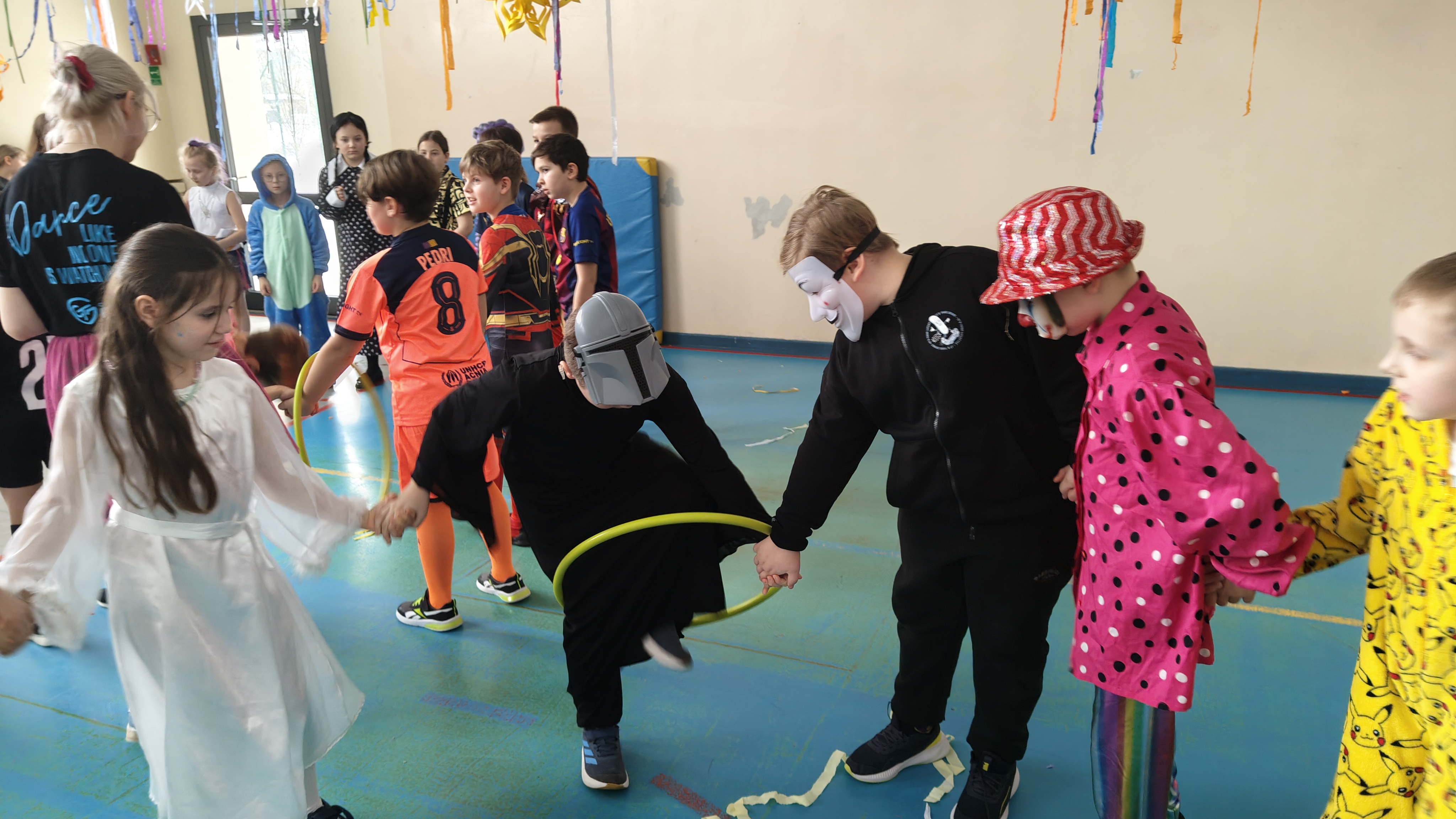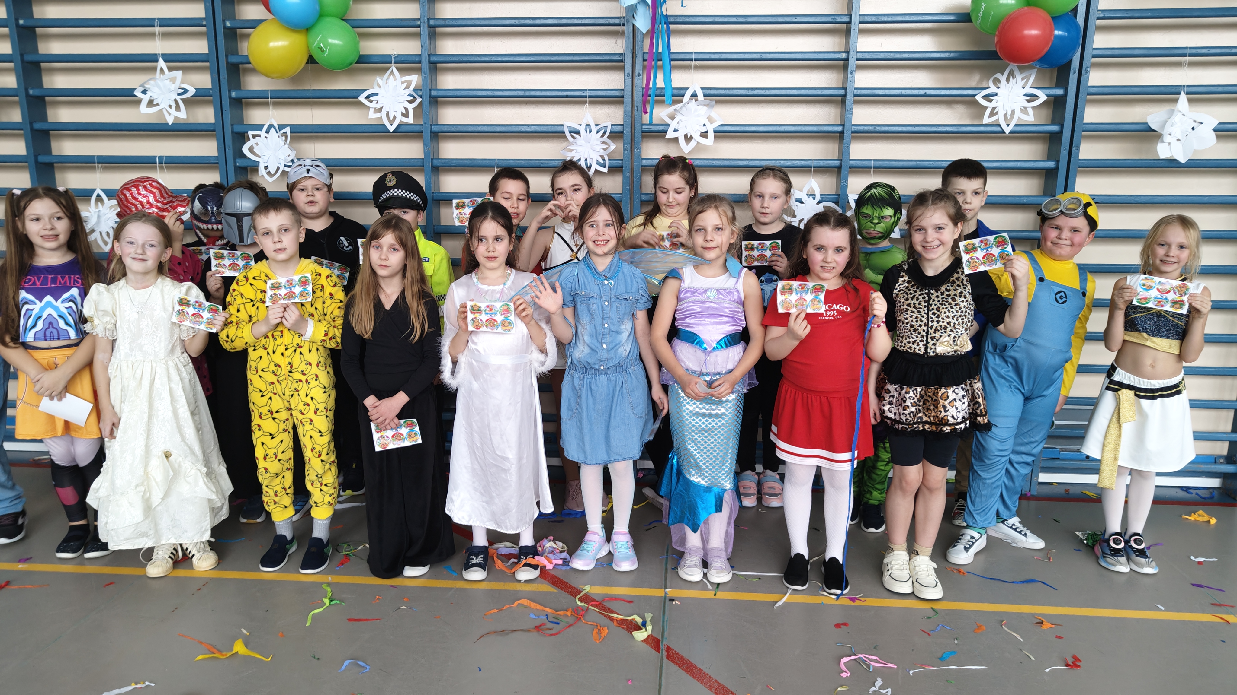 W "tłusty czwartek" 12.02. odbył się w szkole bal karnawałowy dla klas 1-3, prowadzony przez Szkołę Tańca "GABI". Różnorodne stroje, dobry humor i muzyka zagwarantowały świetną zabawę, przeplataną konkursami sprawnościowymi. Aby tradycji stało się zadość, na zmęczonych uczniów w sali czekał słodki poczęstunek, zorganizowany przez rodziców. Natomiast nazajutrz obchodziliśmy "WALENTYNKI": była poczta walentynkowa, symboliczny lizak dla każdego oraz pamiątkowe zdjęcie z przepiękną dekoracją w tle.