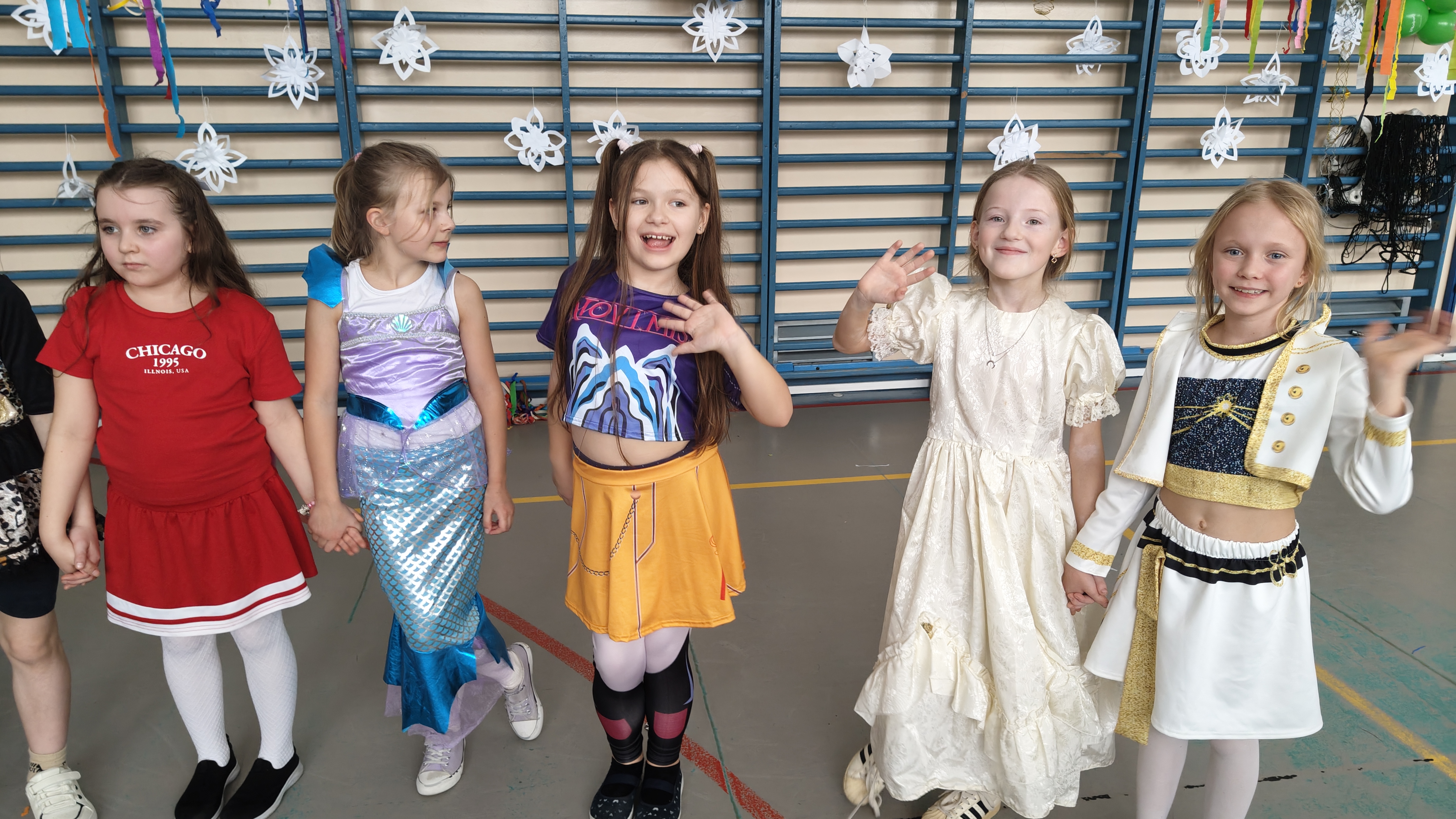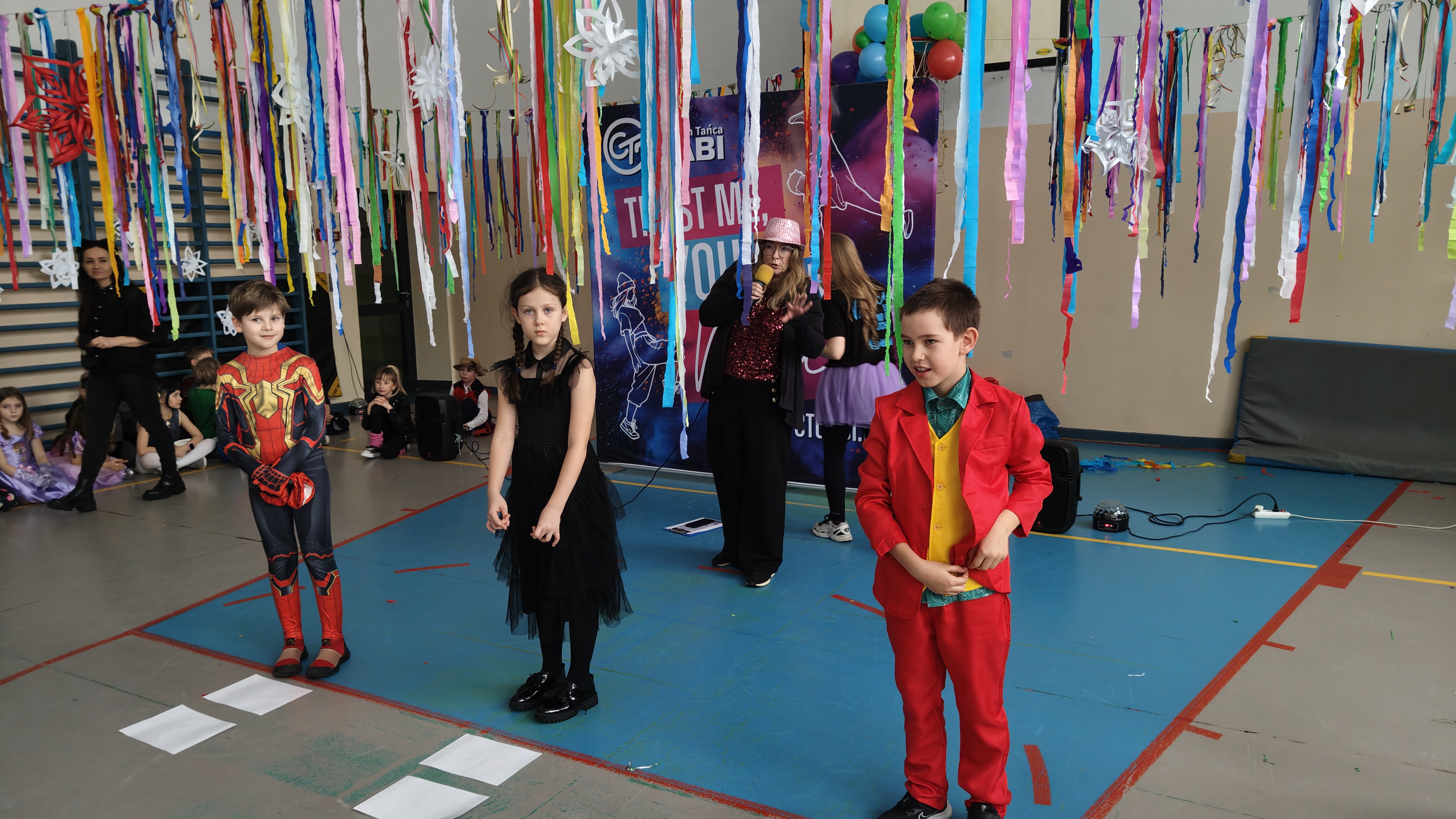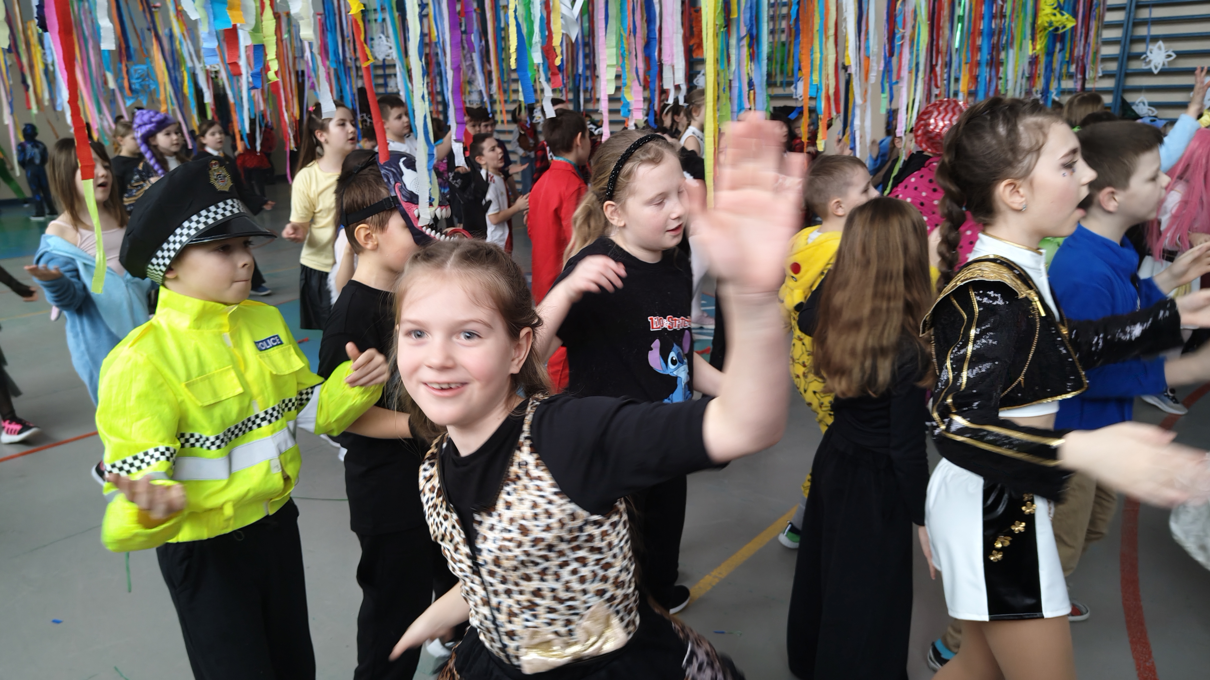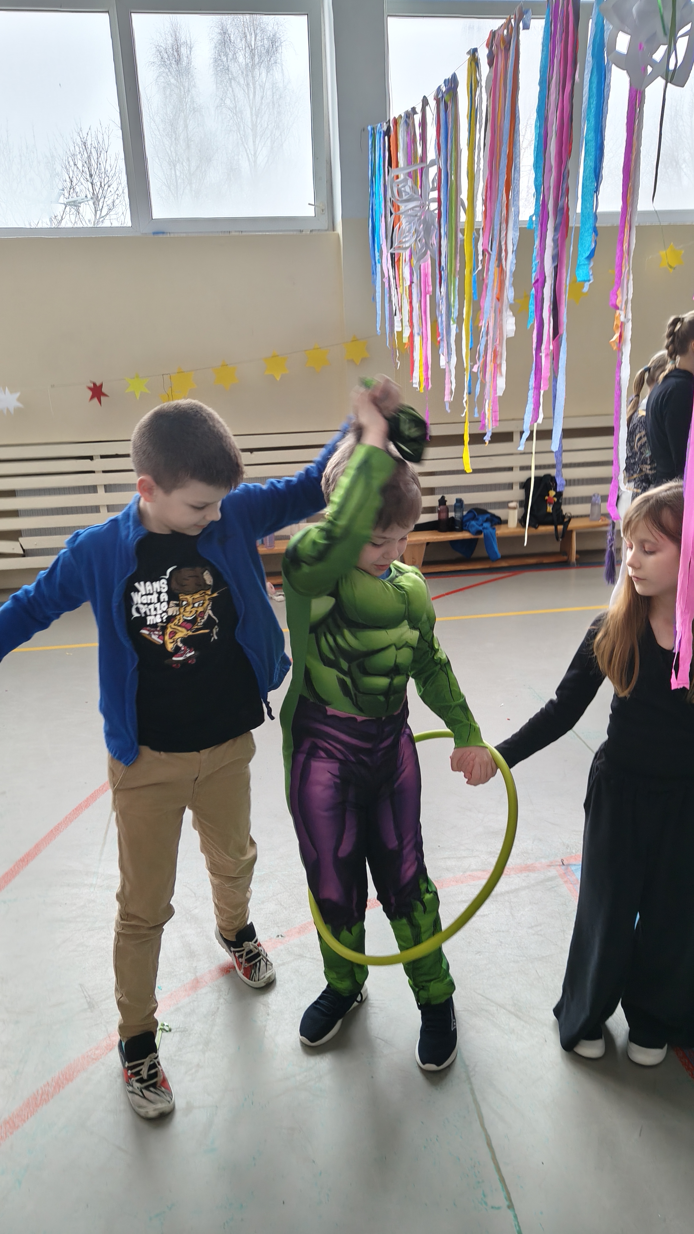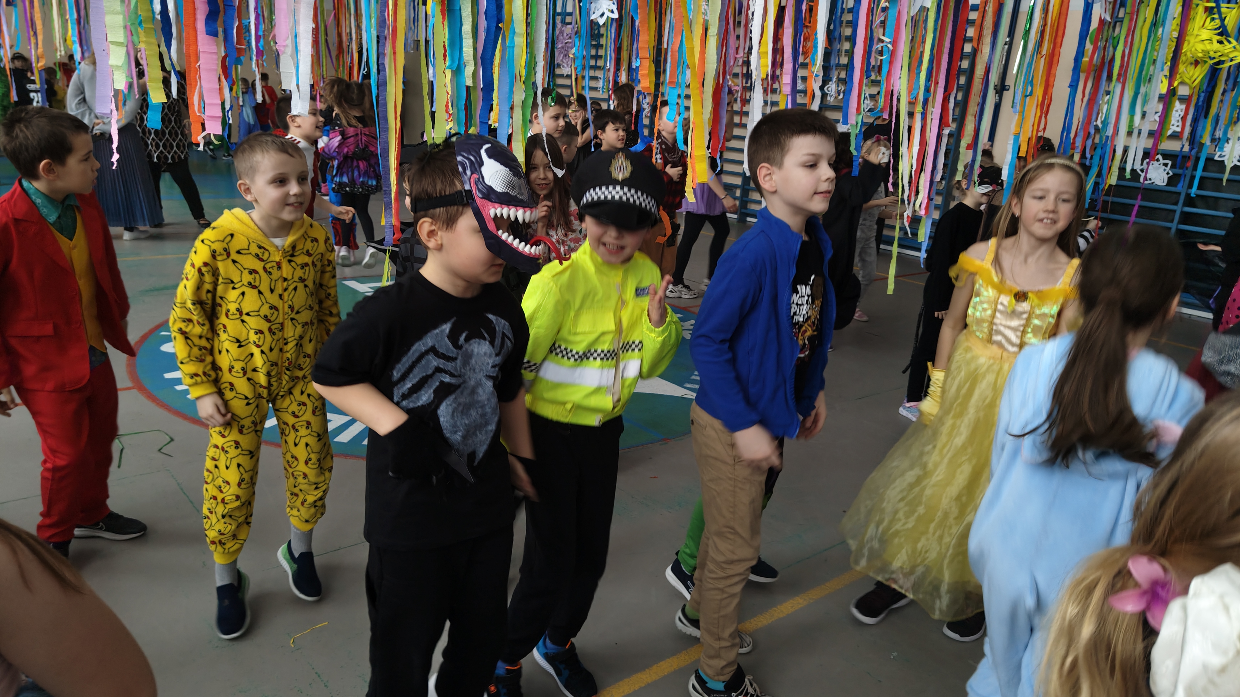 W "tłusty czwartek" 12.02. odbył się w szkole bal karnawałowy dla klas 1-3, prowadzony przez Szkołę Tańca "GABI". Różnorodne stroje, dobry humor i muzyka zagwarantowały świetną zabawę, przeplataną konkursami sprawnościowymi. Aby tradycji stało się zadość, na zmęczonych uczniów w sali czekał słodki poczęstunek, zorganizowany przez rodziców. Natomiast nazajutrz obchodziliśmy "WALENTYNKI": była poczta walentynkowa, symboliczny lizak dla każdego oraz pamiątkowe zdjęcie z przepiękną dekoracją w tle.