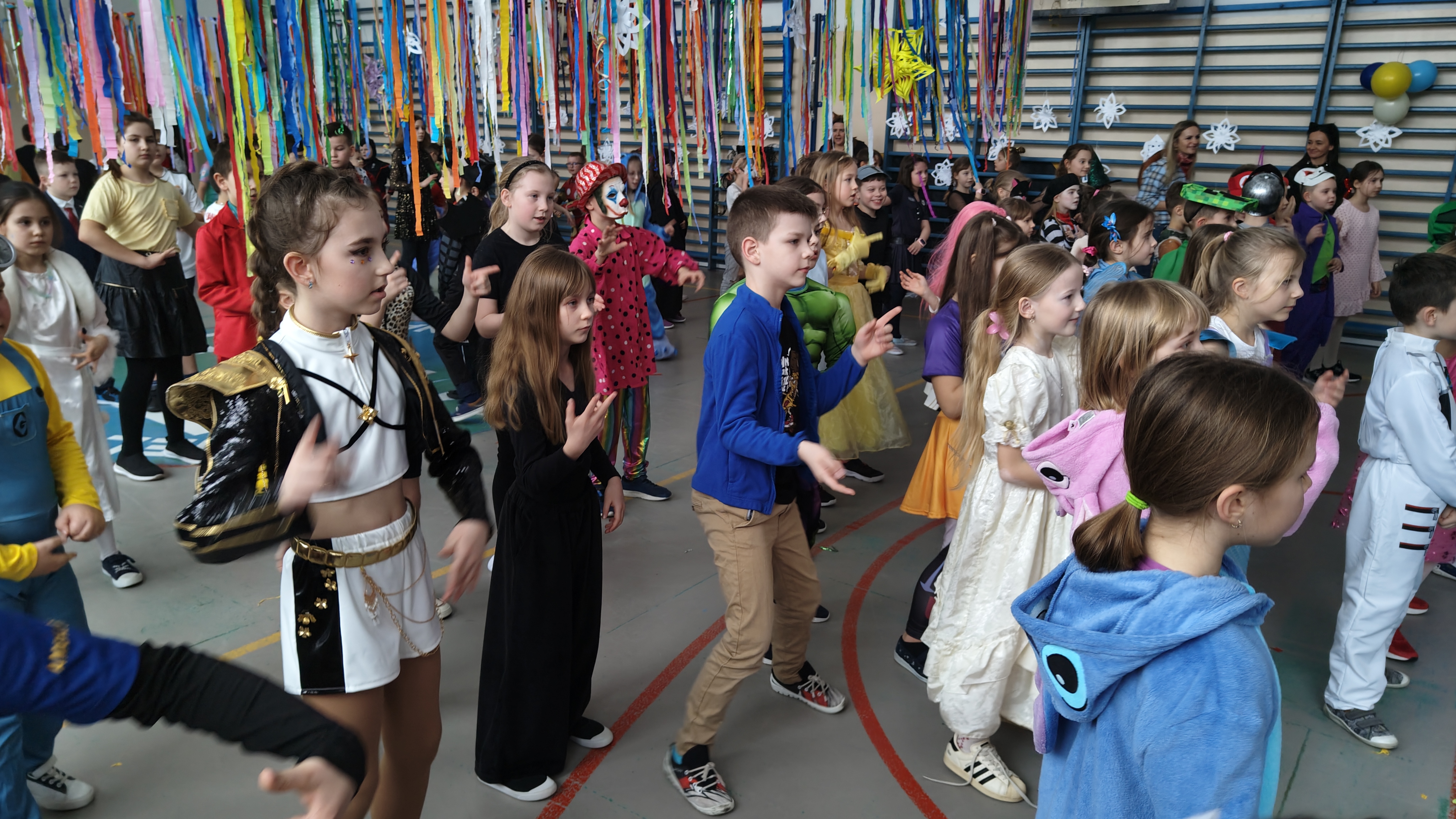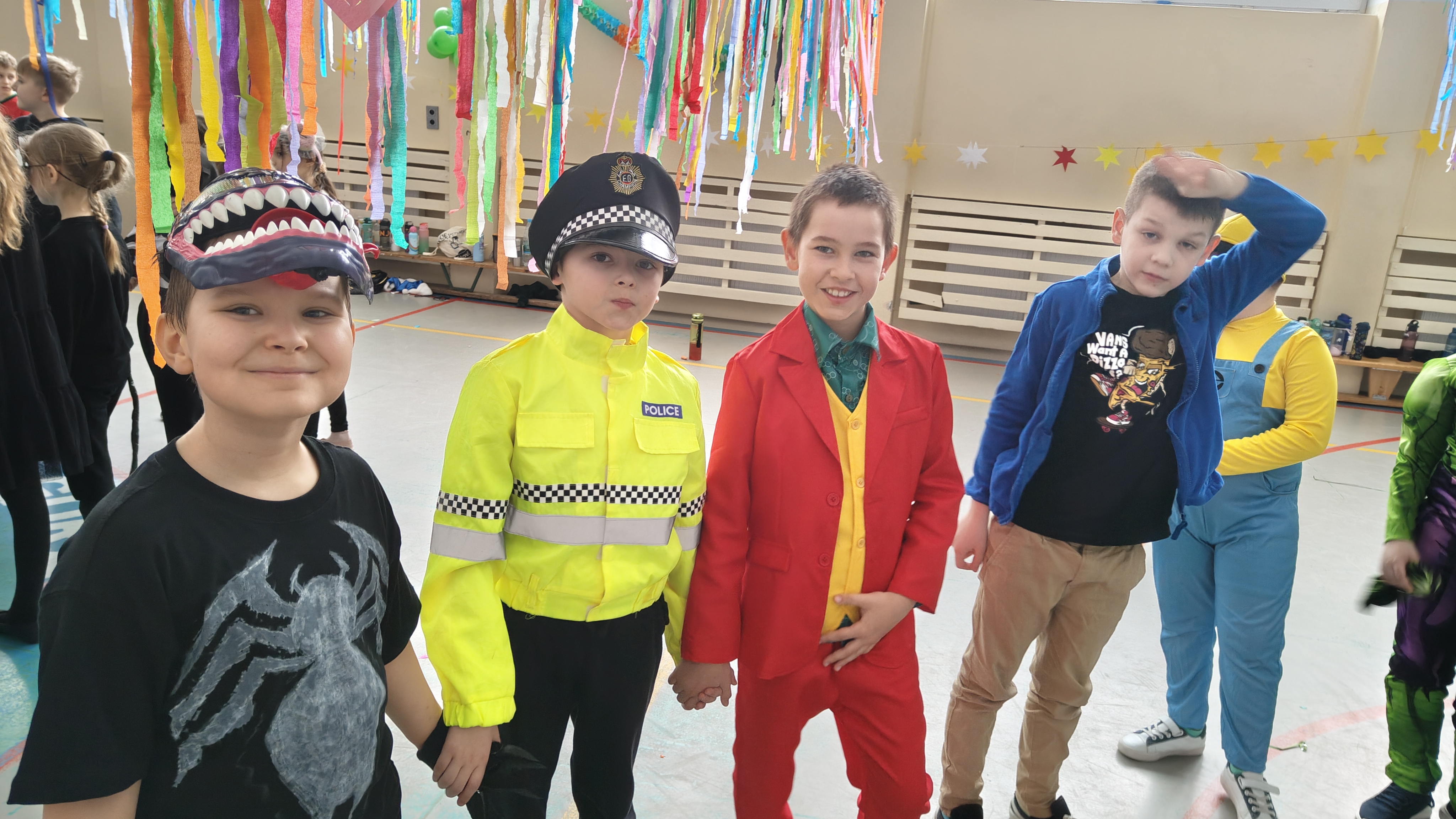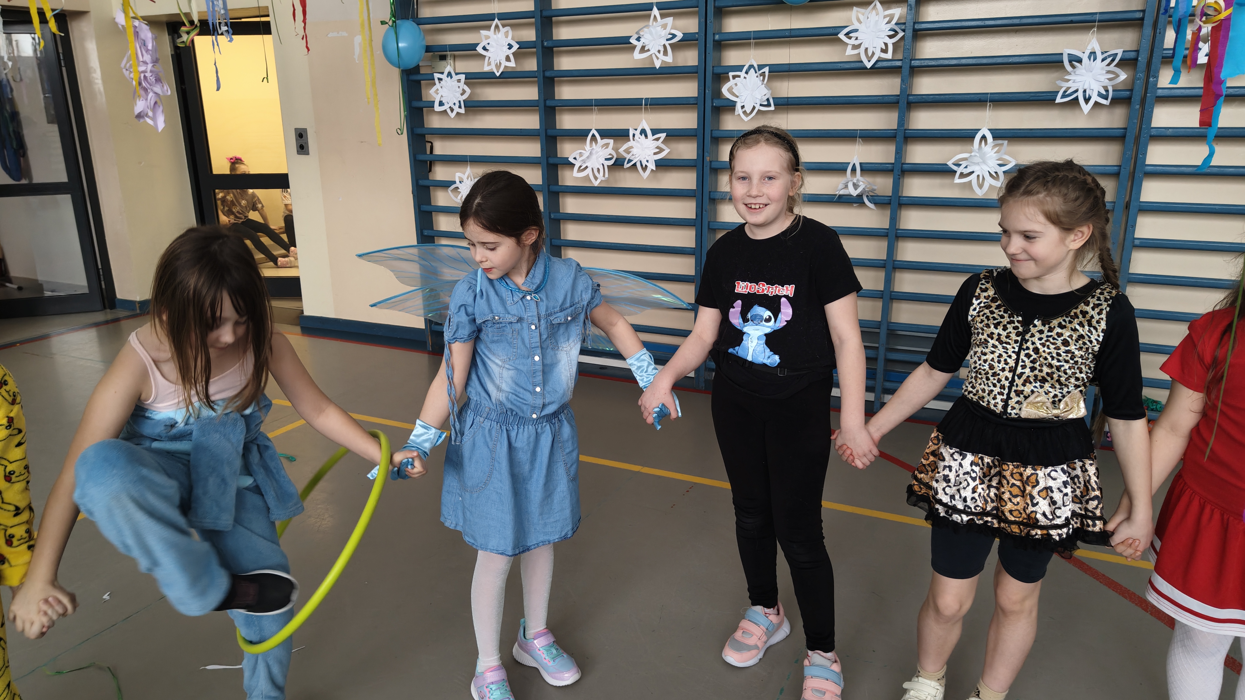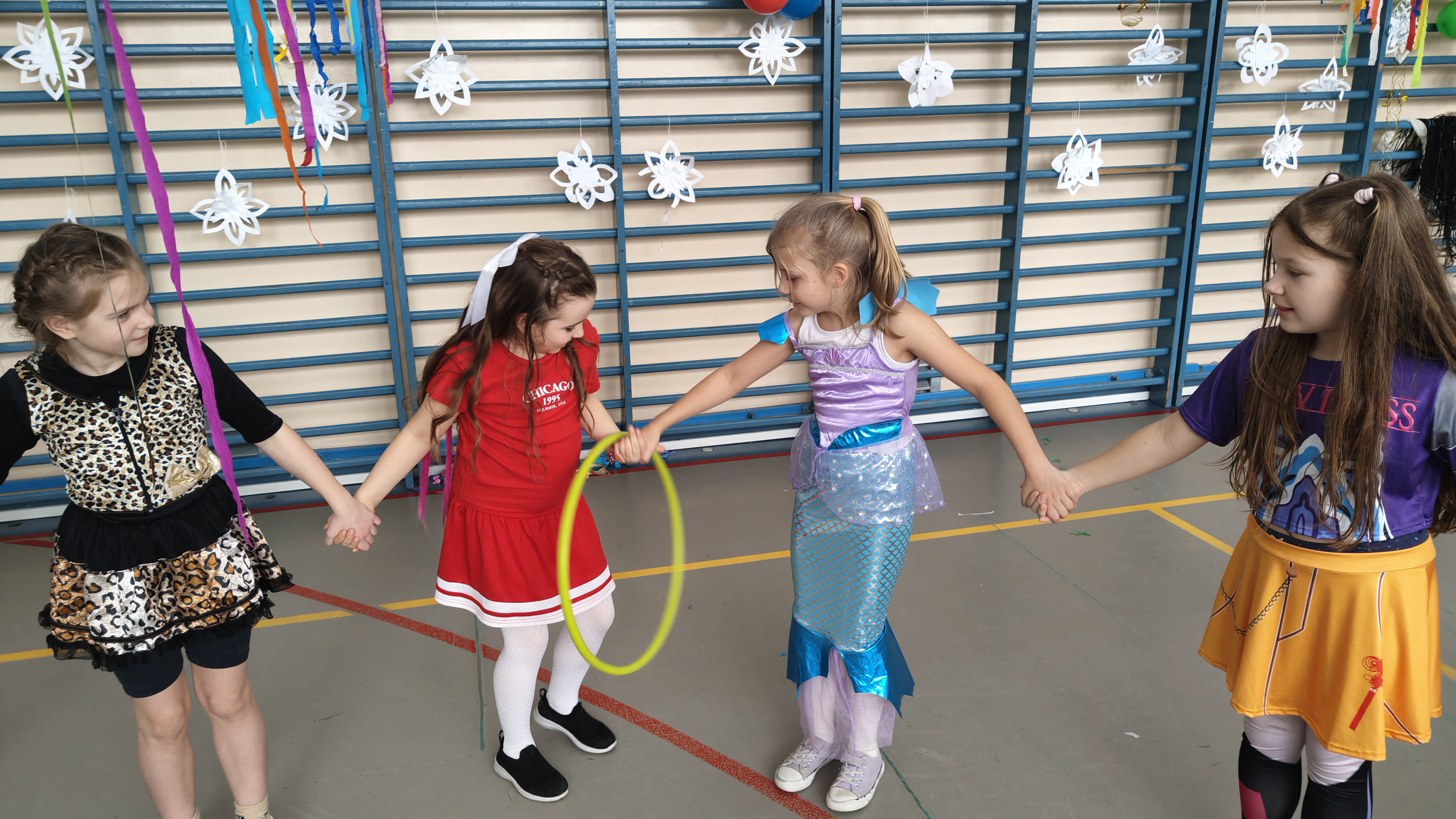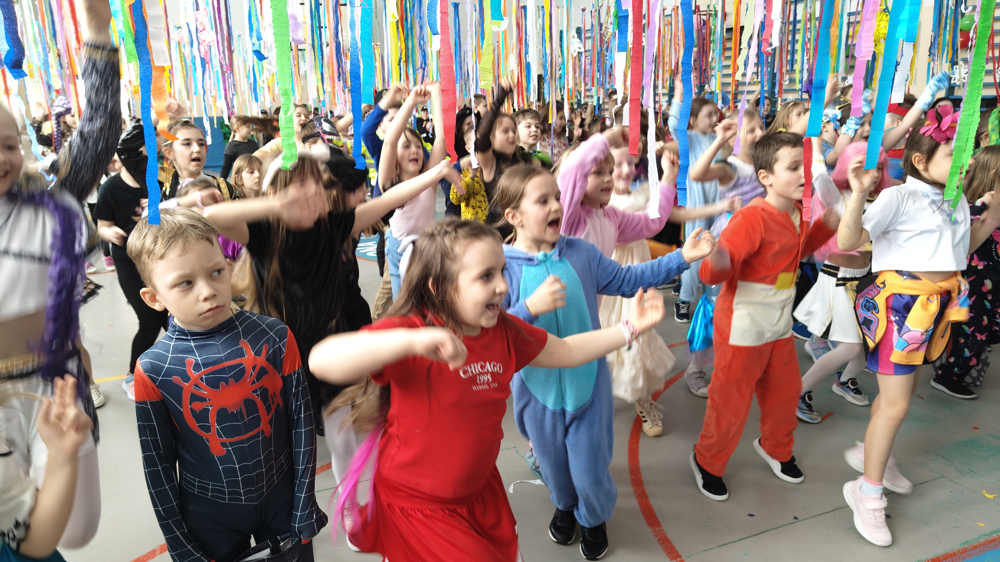 W "tłusty czwartek" 12.02. odbył się w szkole bal karnawałowy dla klas 1-3, prowadzony przez Szkołę Tańca "GABI". Różnorodne stroje, dobry humor i muzyka zagwarantowały świetną zabawę, przeplataną konkursami sprawnościowymi. Aby tradycji stało się zadość, na zmęczonych uczniów w sali czekał słodki poczęstunek, zorganizowany przez rodziców. Natomiast nazajutrz obchodziliśmy "WALENTYNKI": była poczta walentynkowa, symboliczny lizak dla każdego oraz pamiątkowe zdjęcie z przepiękną dekoracją w tle.