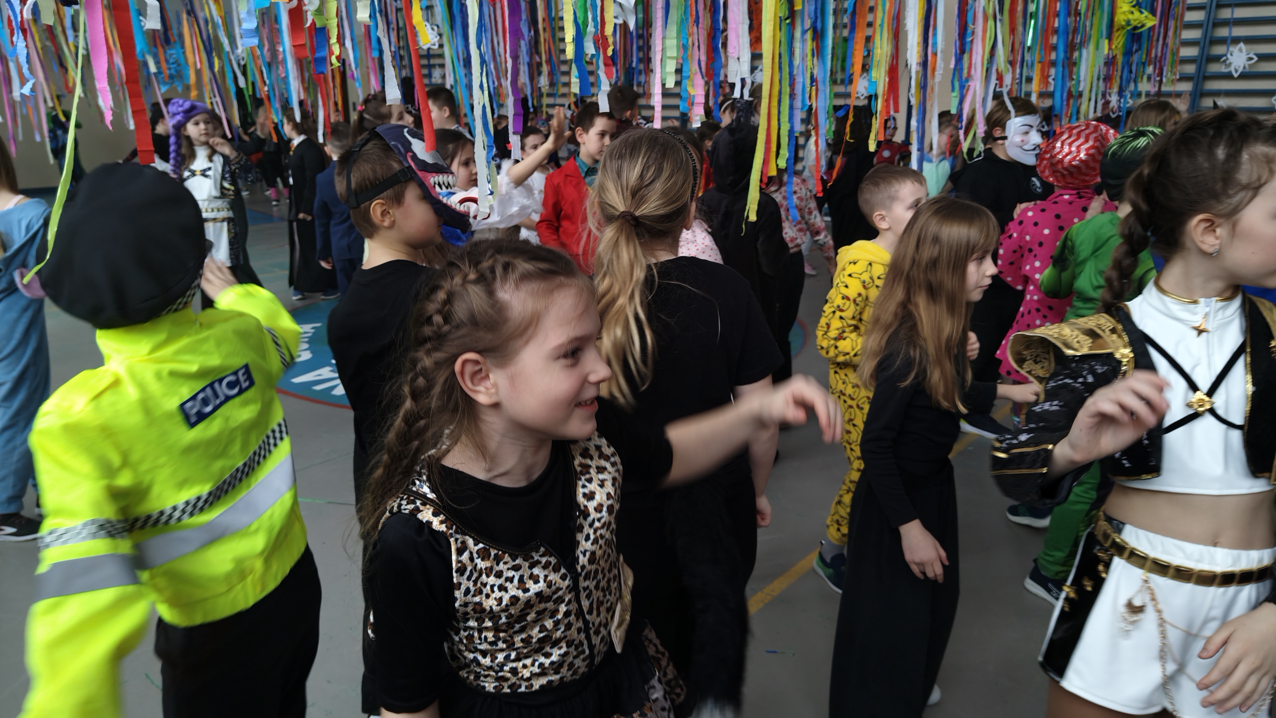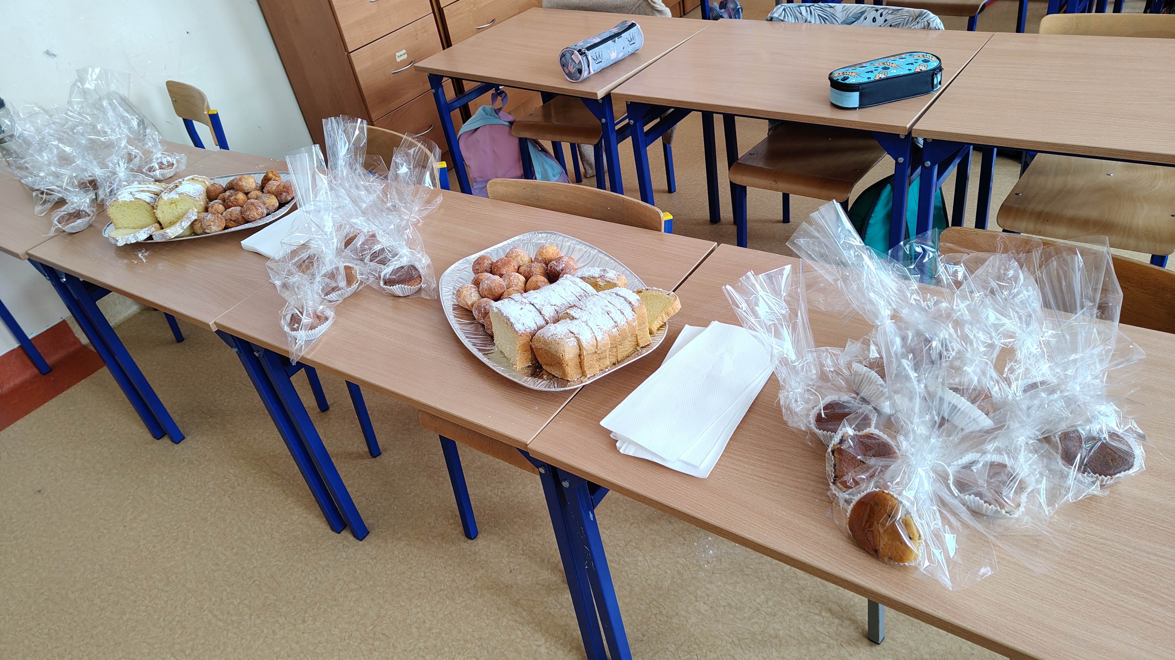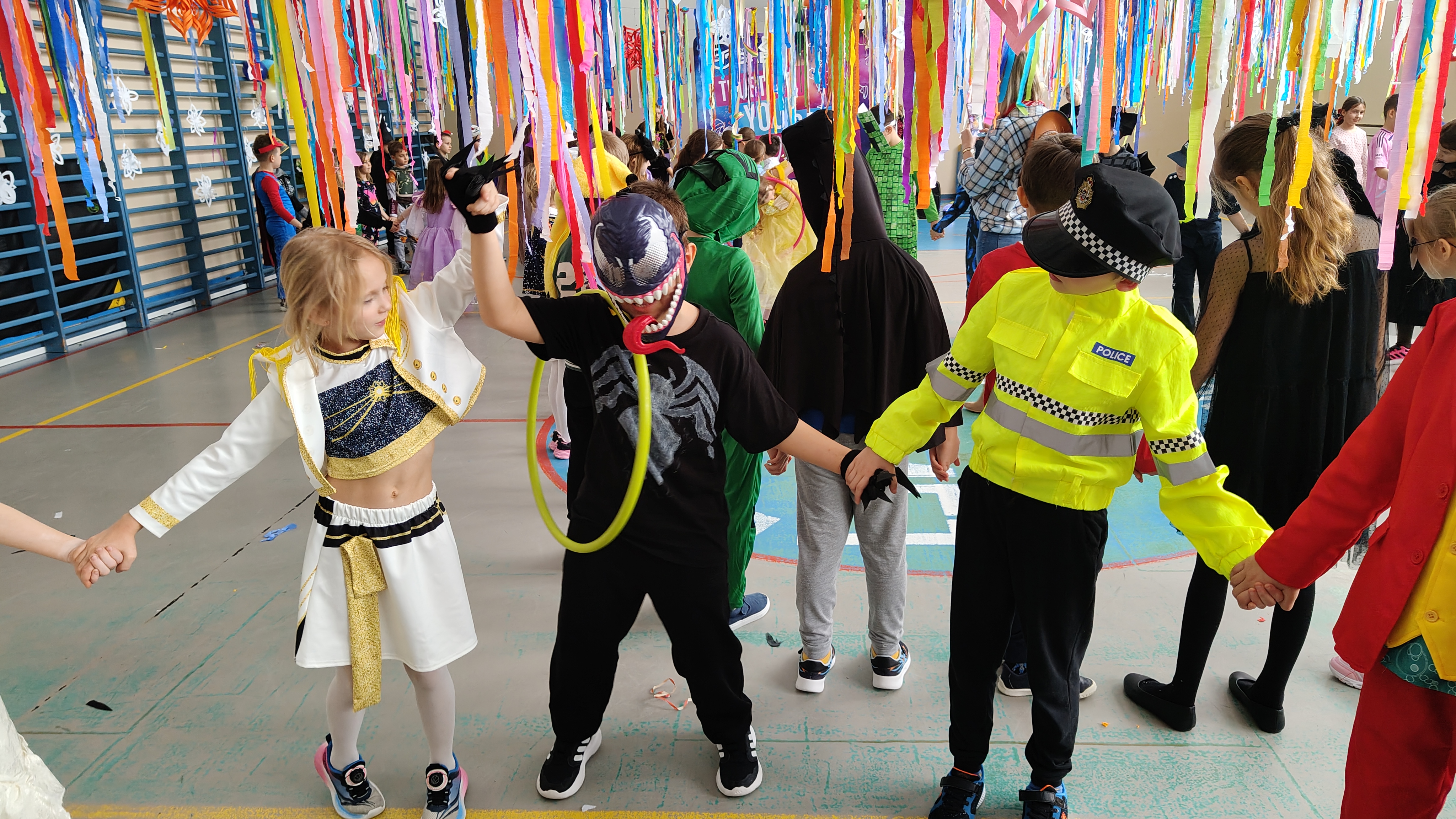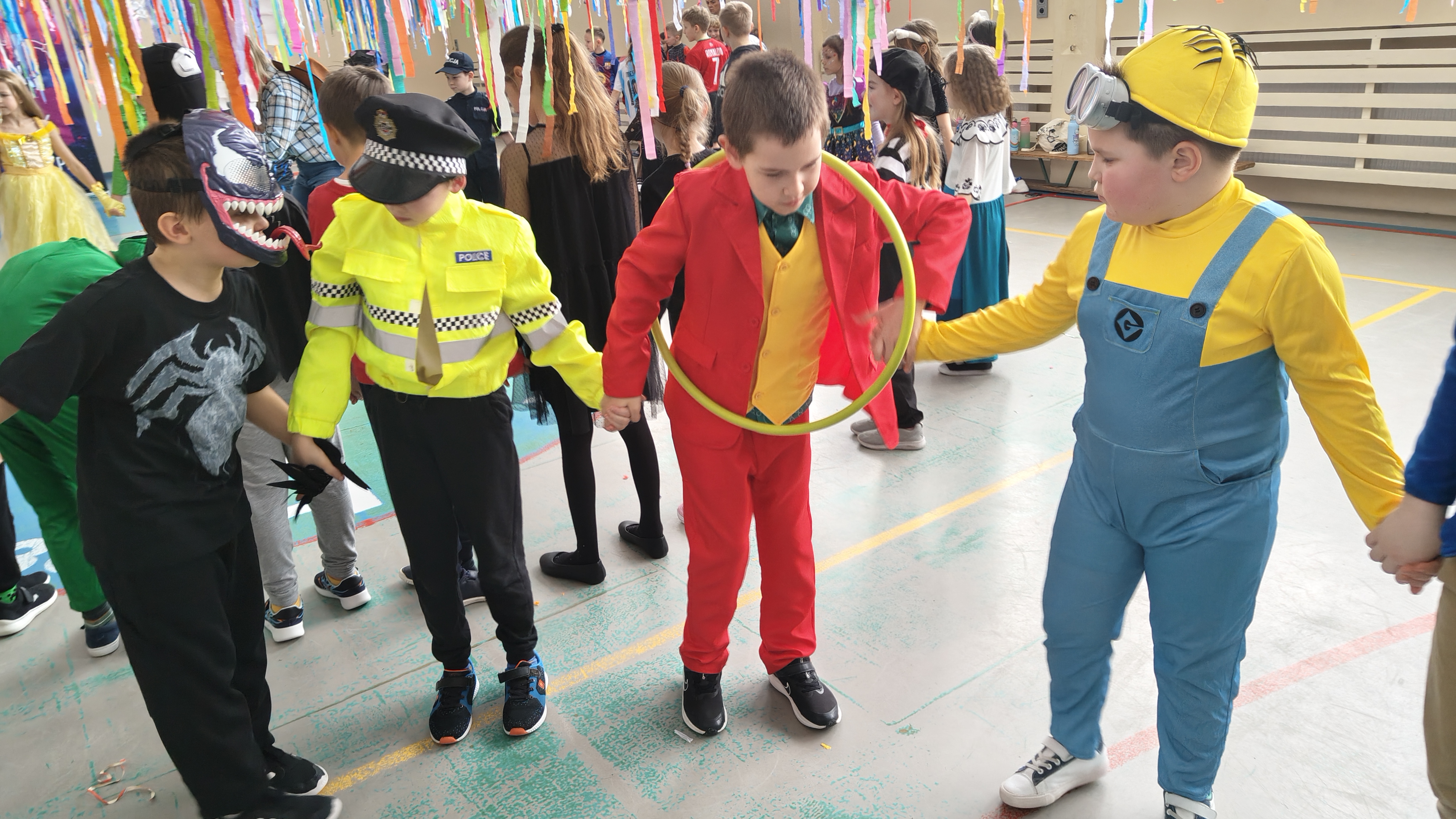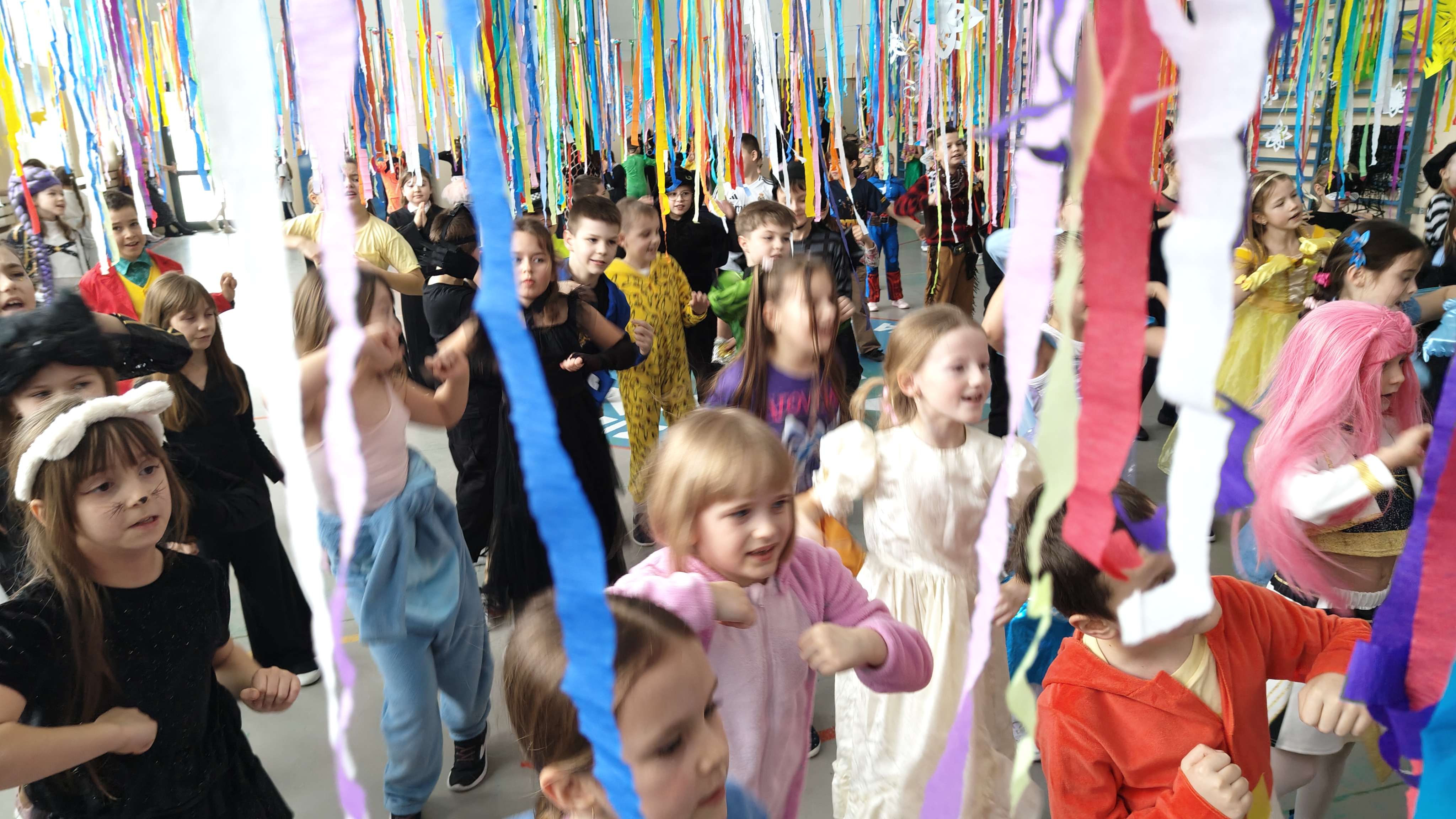 W "tłusty czwartek" 12.02. odbył się w szkole bal karnawałowy dla klas 1-3, prowadzony przez Szkołę Tańca "GABI". Różnorodne stroje, dobry humor i muzyka zagwarantowały świetną zabawę, przeplataną konkursami sprawnościowymi. Aby tradycji stało się zadość, na zmęczonych uczniów w sali czekał słodki poczęstunek, zorganizowany przez rodziców. Natomiast nazajutrz obchodziliśmy "WALENTYNKI": była poczta walentynkowa, symboliczny lizak dla każdego oraz pamiątkowe zdjęcie z przepiękną dekoracją w tle.
