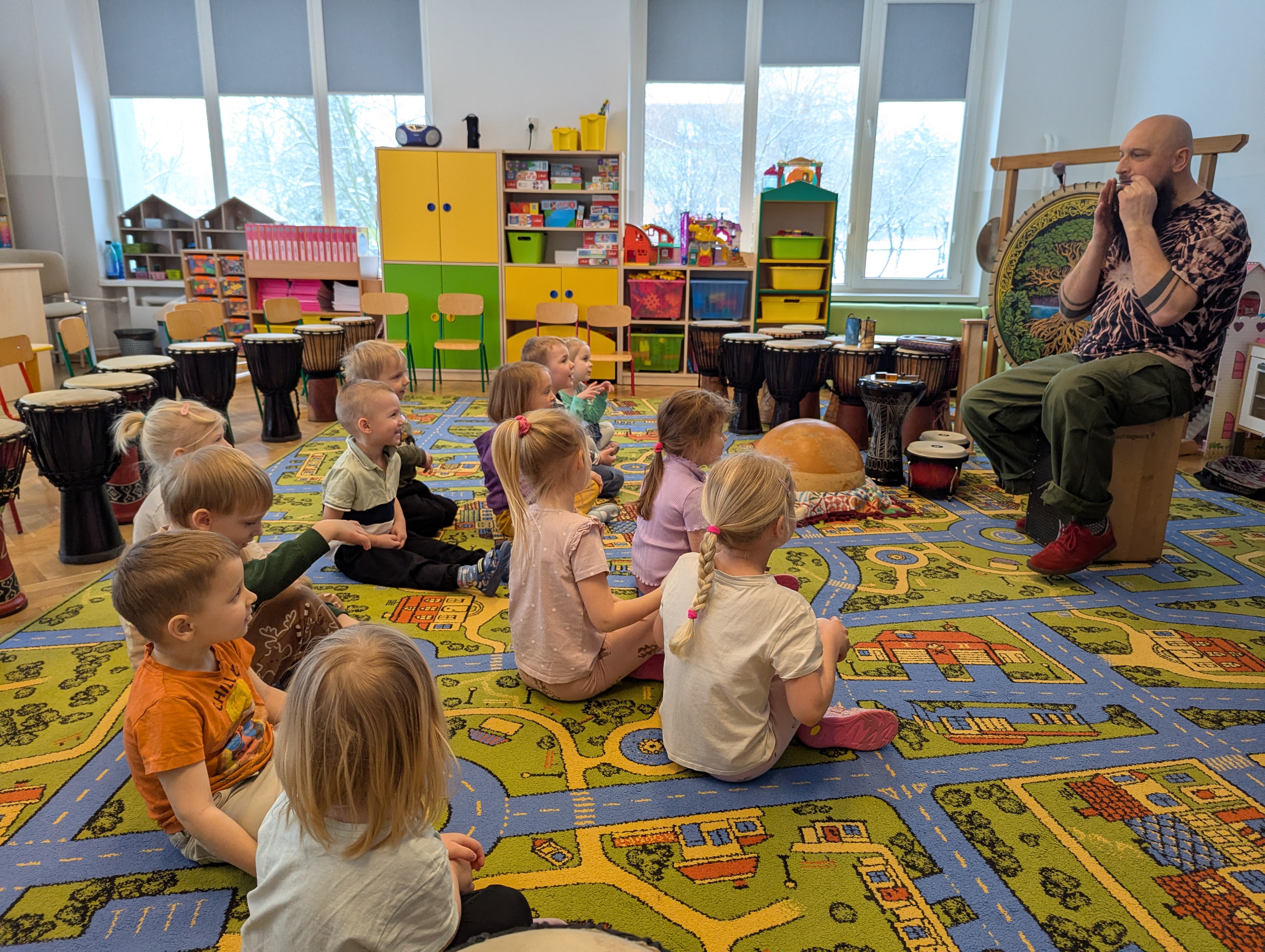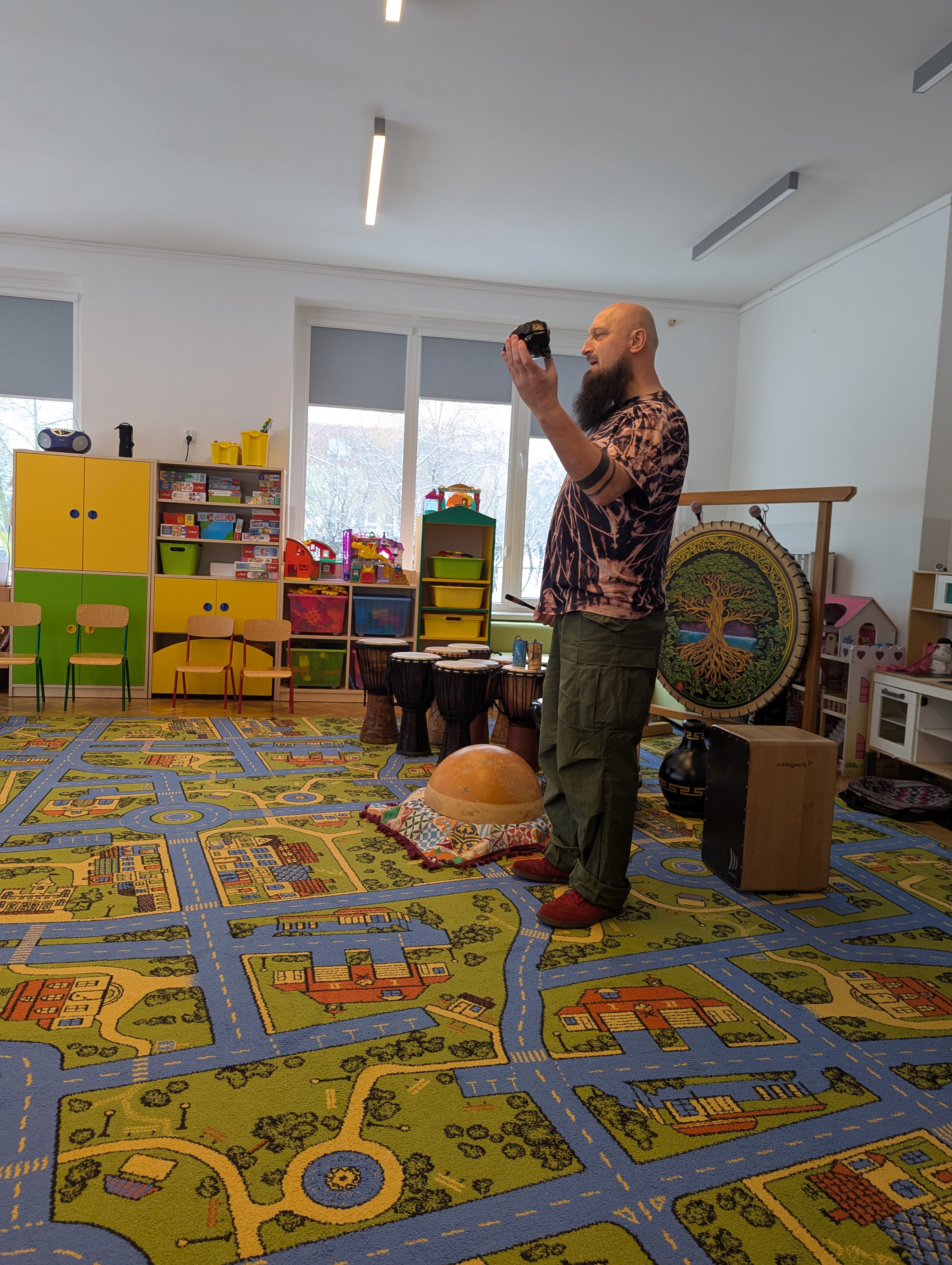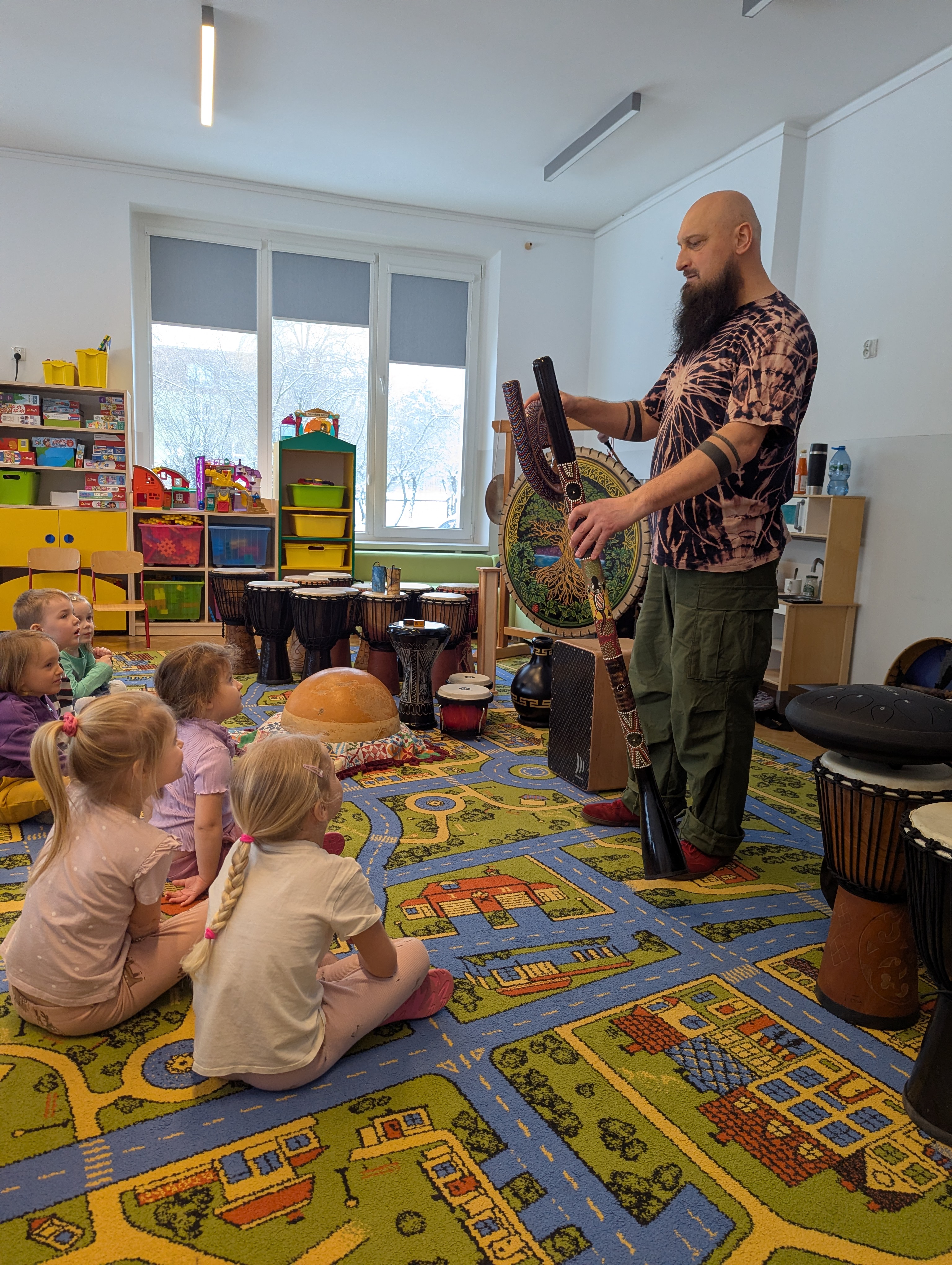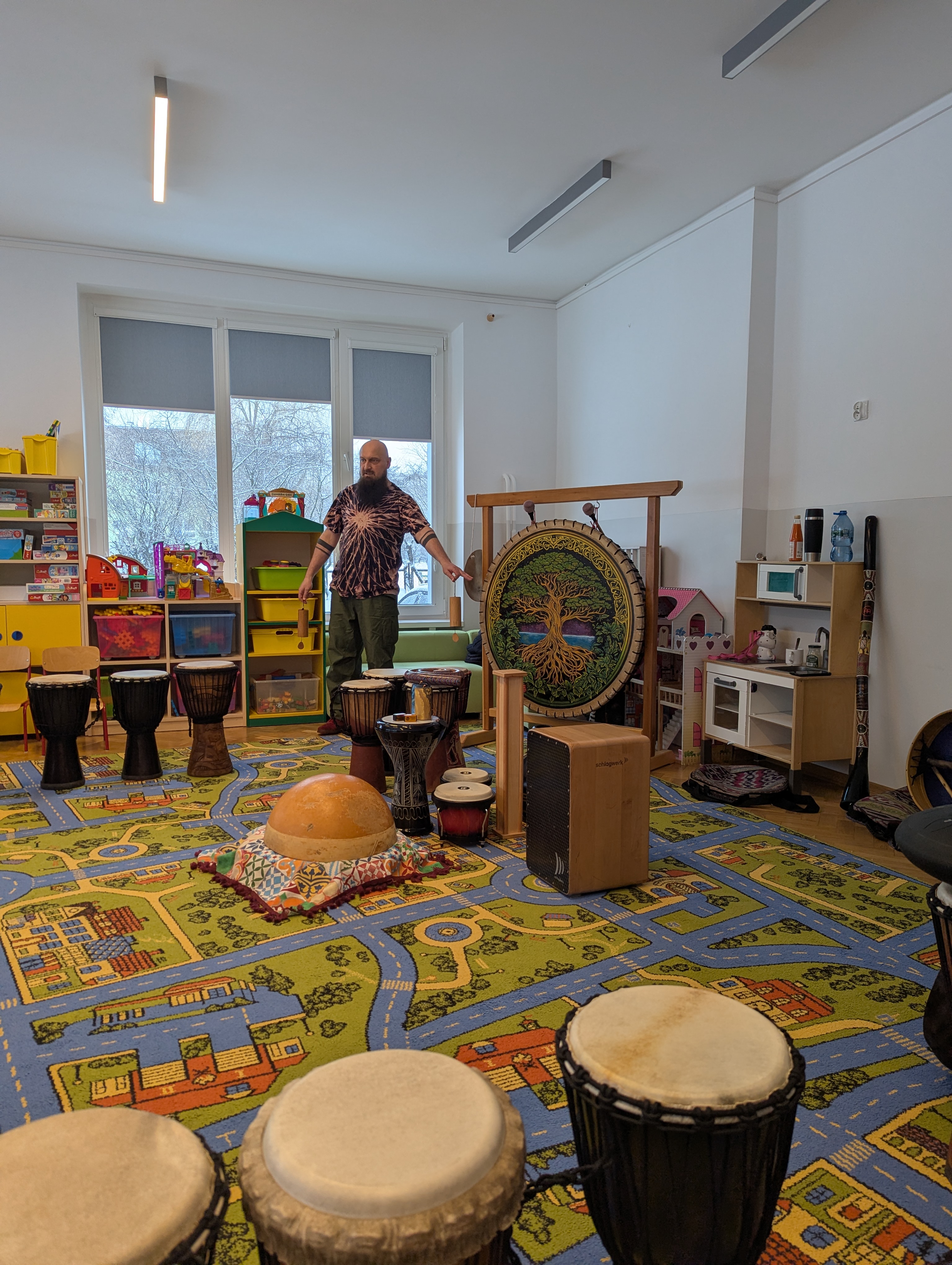11.02.2026 r. odbyły się wyjątkowe warsztaty rytmiczno-bębniarskie, które dostarczyły dzieciom wielu nowych muzycznych doświadczeń. Pan Bogdan Kulik zaprezentował różnorodne instrumenty z różnych stron świata, opowiadając o ich pochodzeniu i sposobie wydobywania dźwięków.