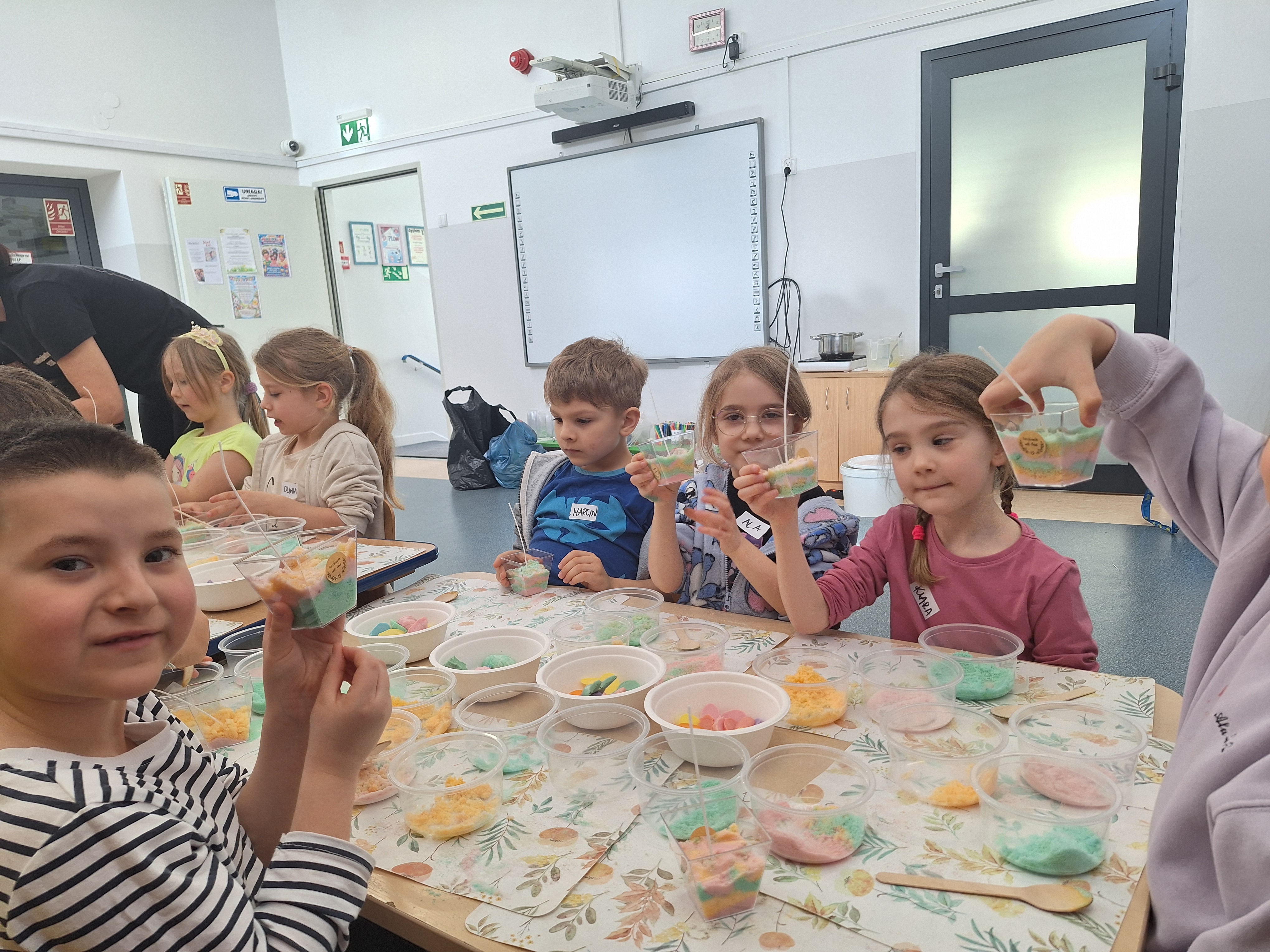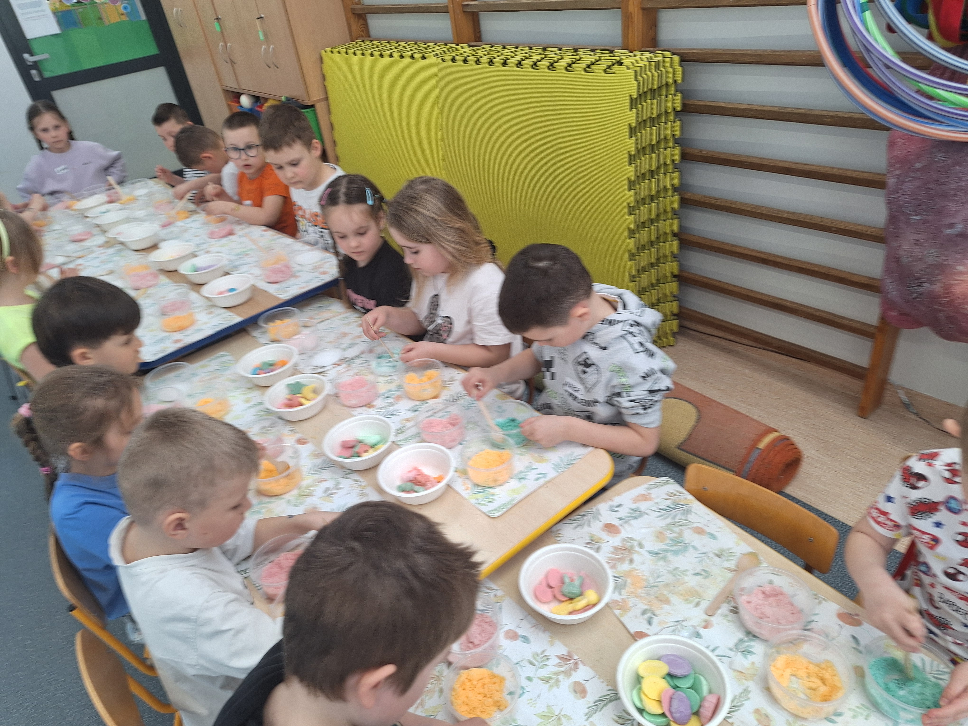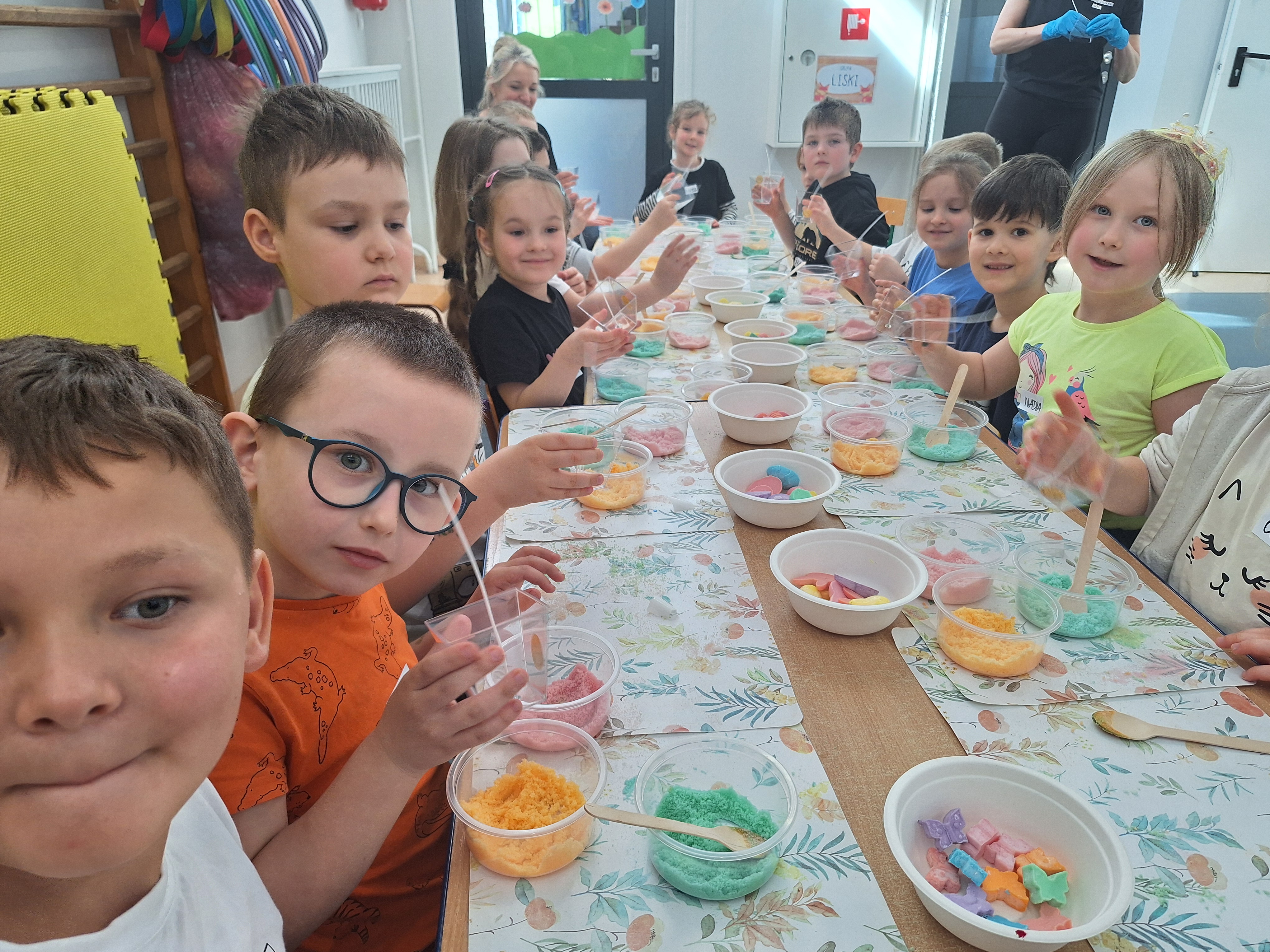 Zajęcia przebiegały w miłej i twórczej atmosferze, a dzieci z dużym zaangażowaniem tworzyły swoje unikalne prace. Każda świeca była wyjątkowa i odzwierciedlała indywidualne pomysły oraz wyobraźnię jej autora.