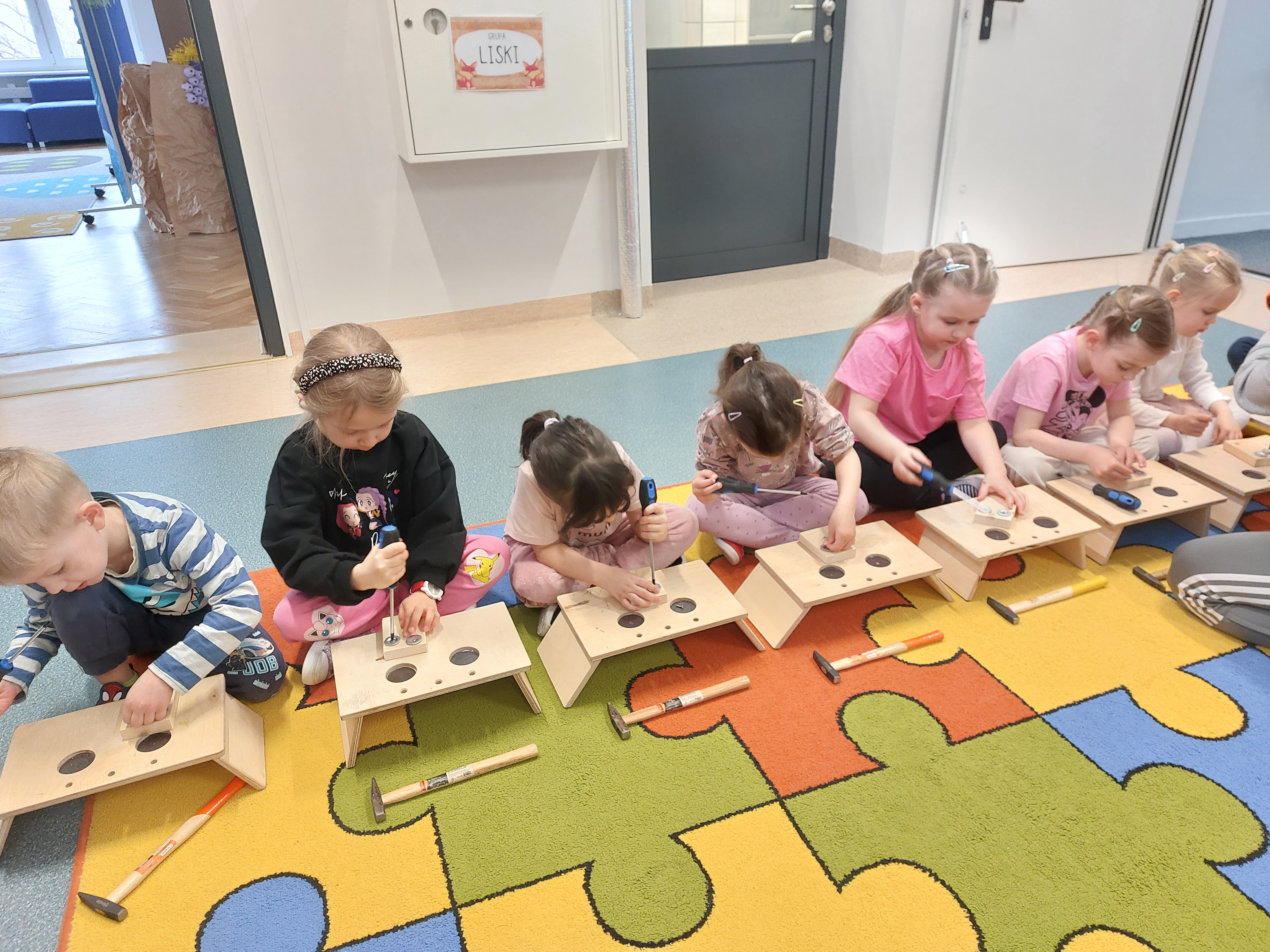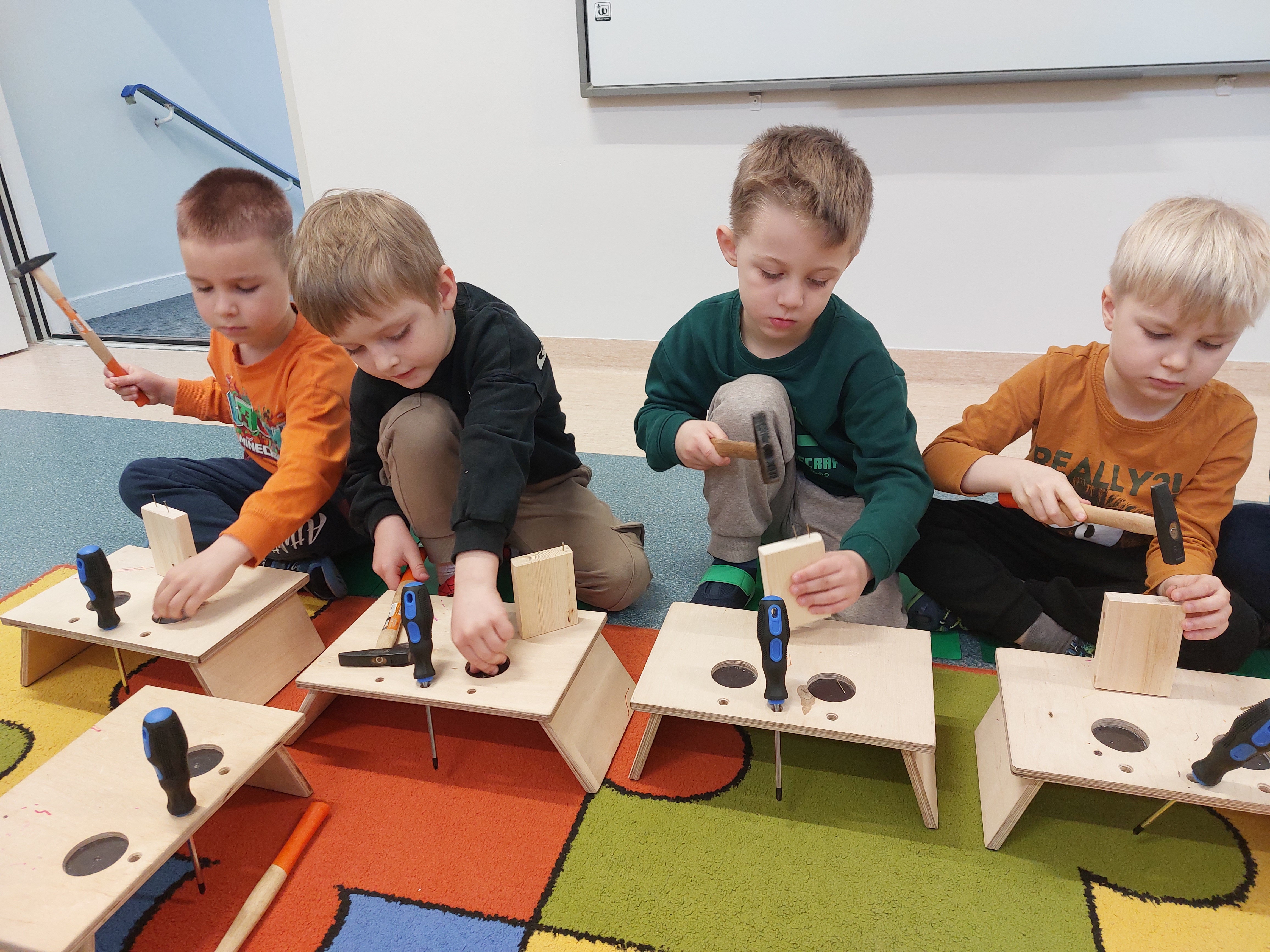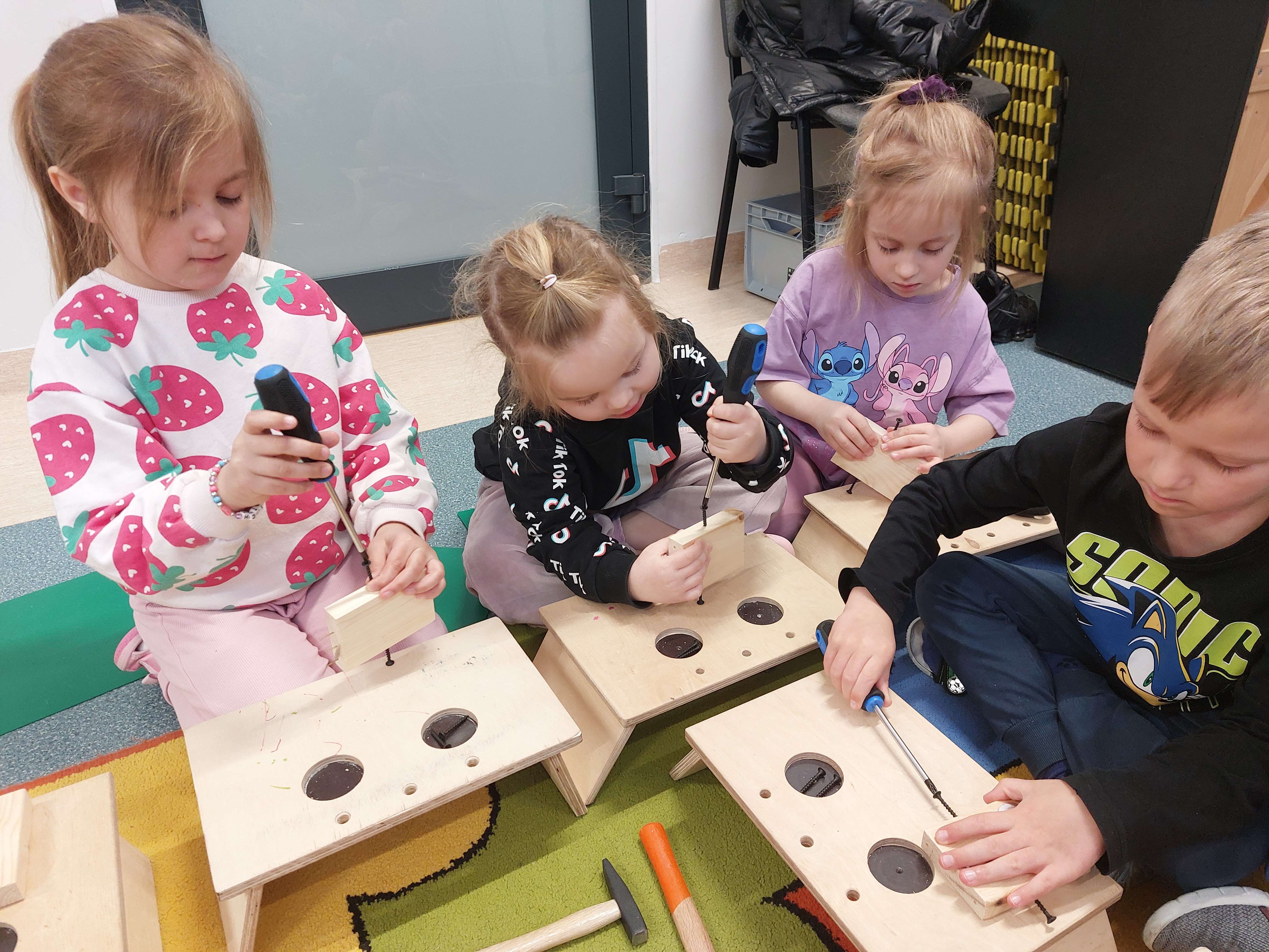 8 kwietnia w naszych Oddziałach Przedszkolnych odbyły się warsztaty majsterkowania, prowadzone przez firmę Sport i Zabawa. Tym razem nasze przedszkolaki, przy pomocy prawdziwych narzędzi, wykonały drewnianego ludzika - sportowca. Przykręcanie śrubek, wbijanie gwoździ... Cóż to były za emocje!