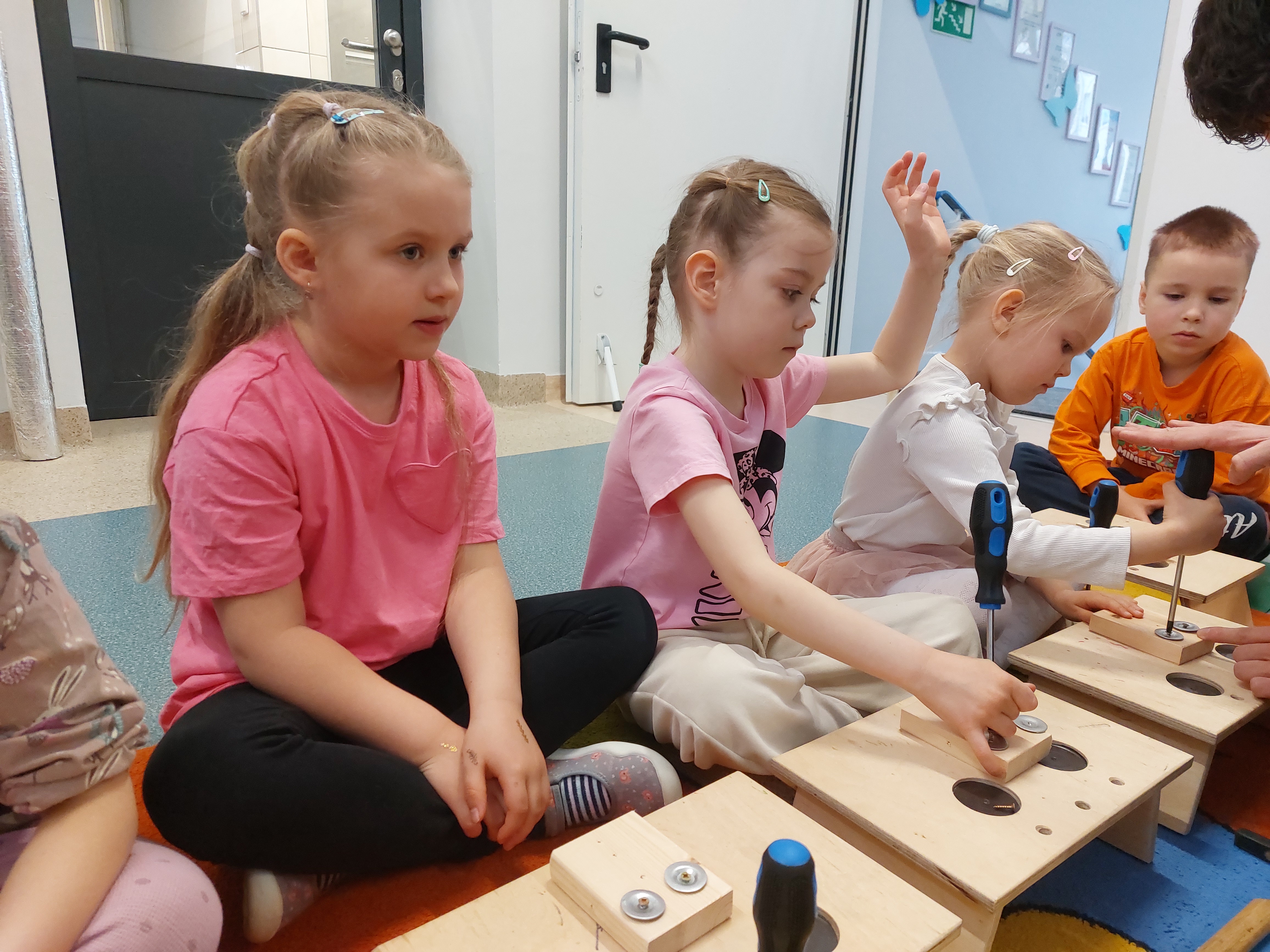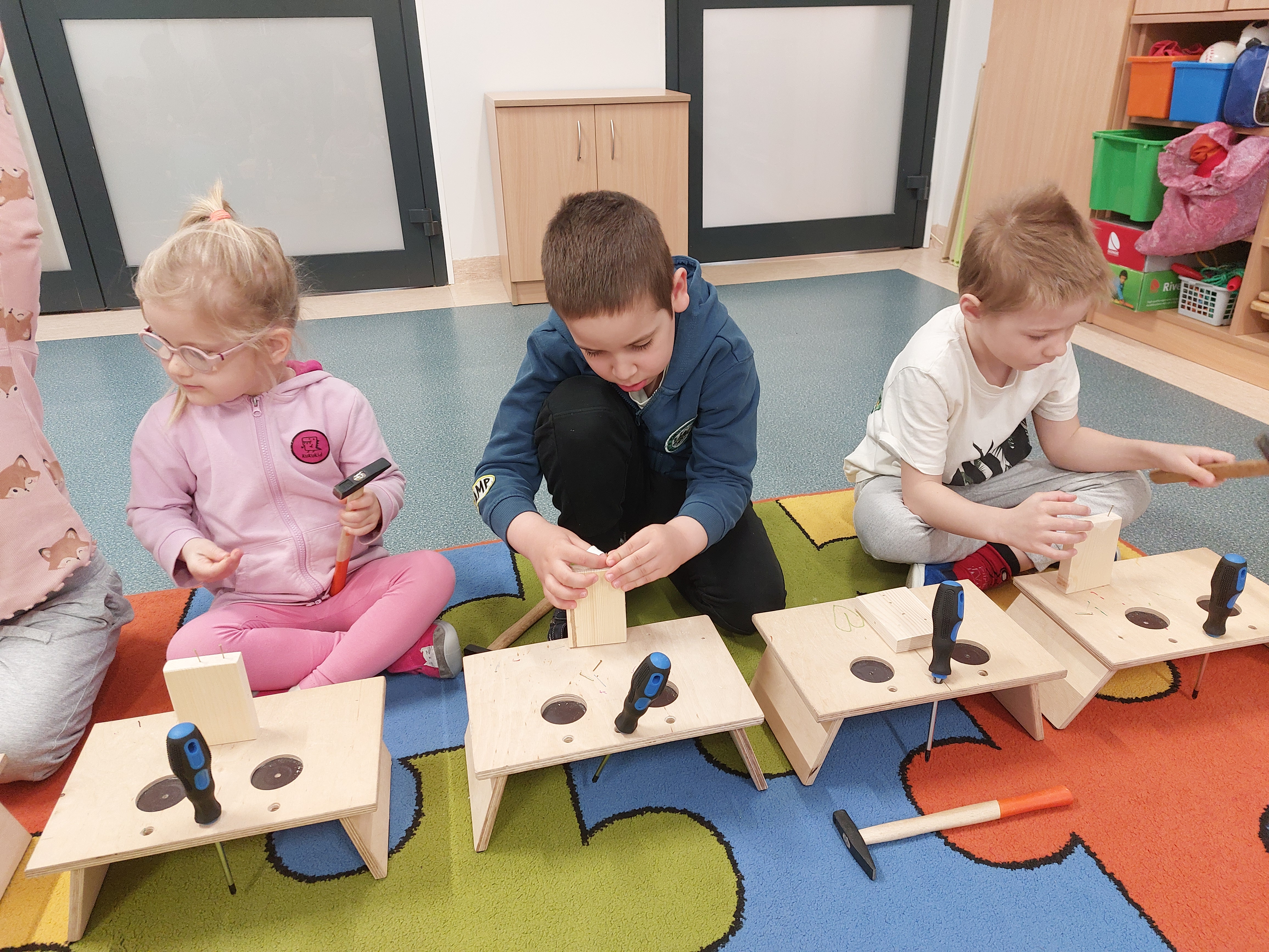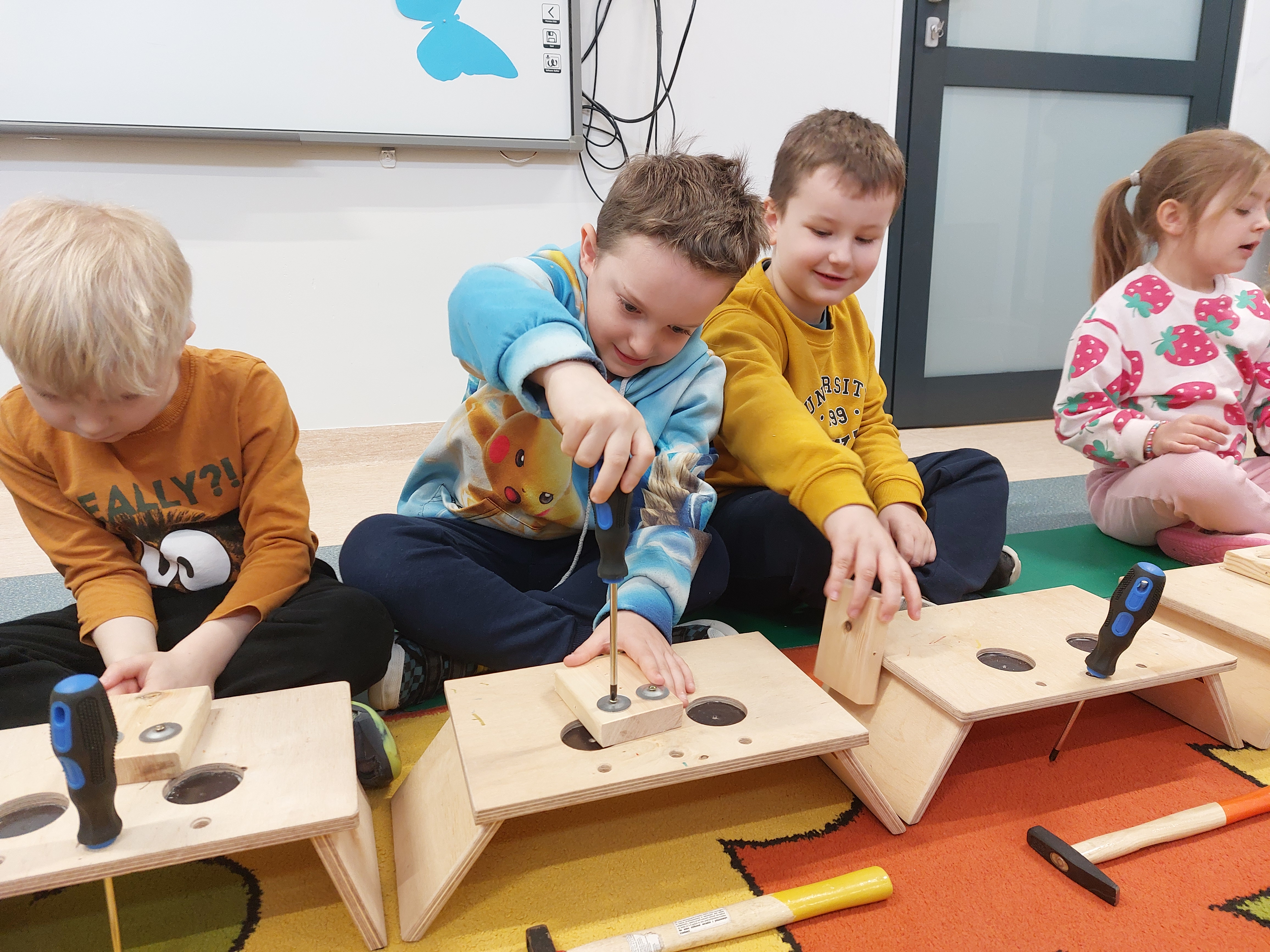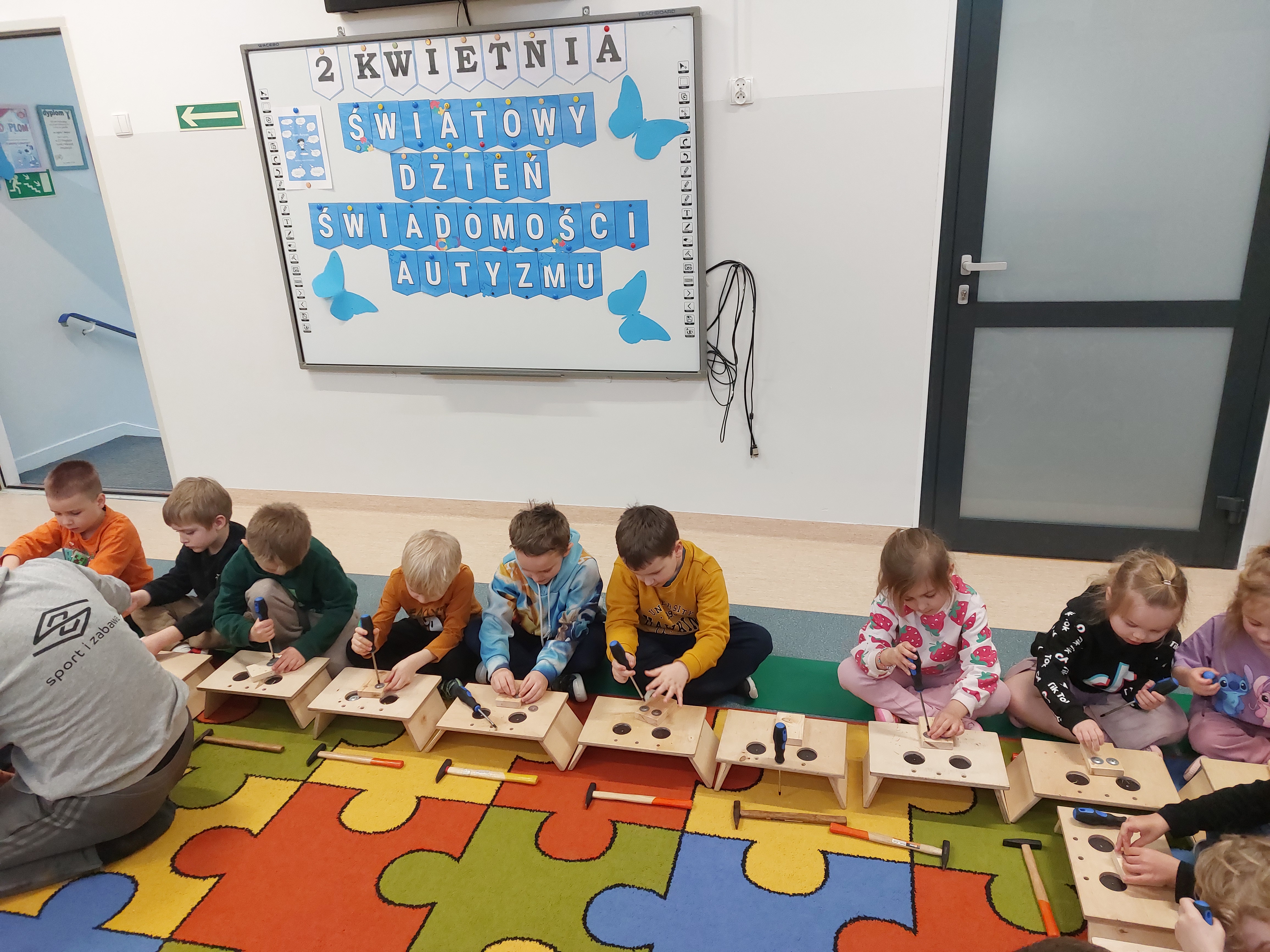 8 kwietnia w naszych Oddziałach Przedszkolnych odbyły się warsztaty majsterkowania, prowadzone przez firmę Sport i Zabawa. Tym razem nasze przedszkolaki, przy pomocy prawdziwych narzędzi, wykonały drewnianego ludzika - sportowca. Przykręcanie śrubek, wbijanie gwoździ... Cóż to były za emocje!