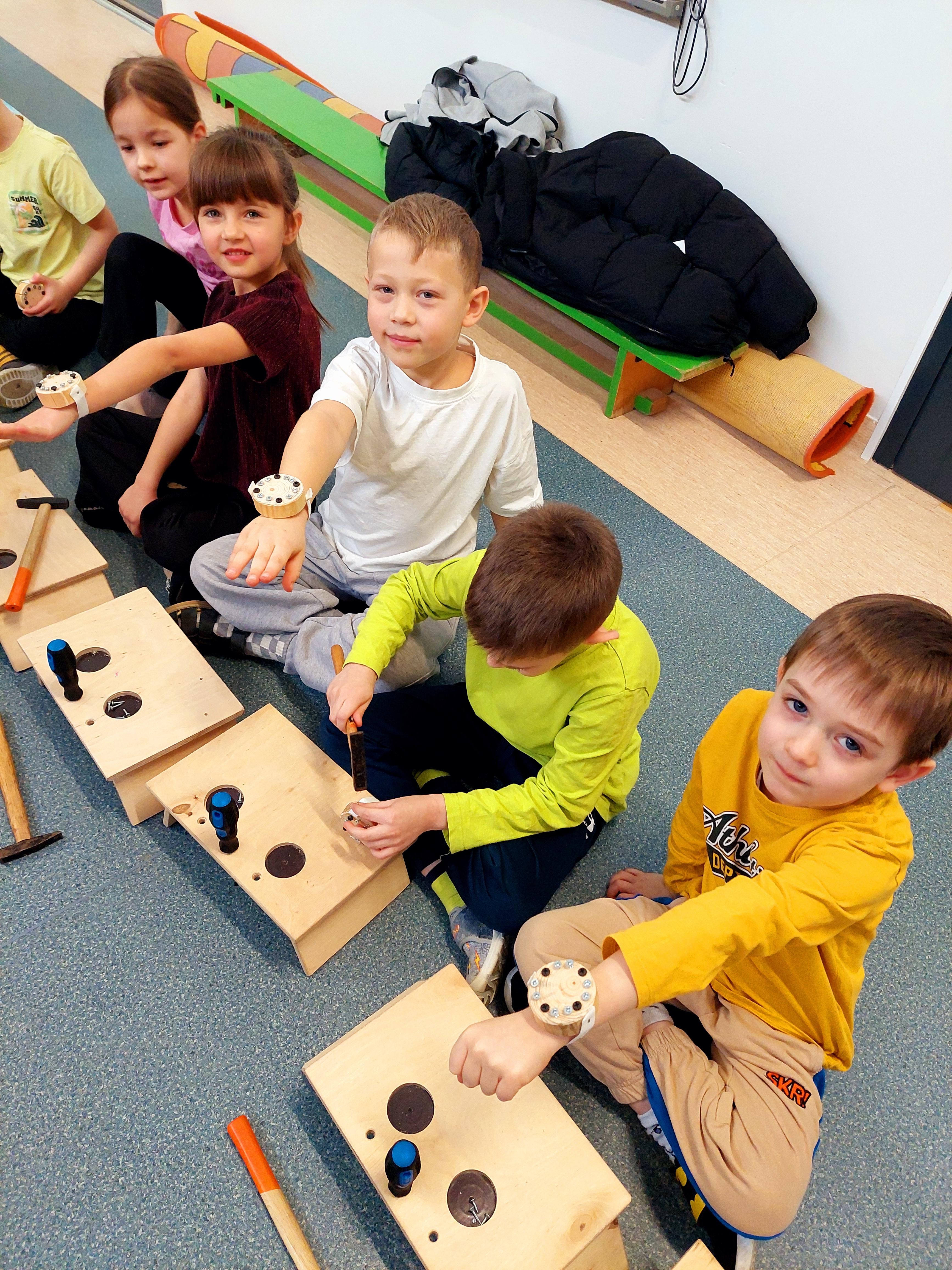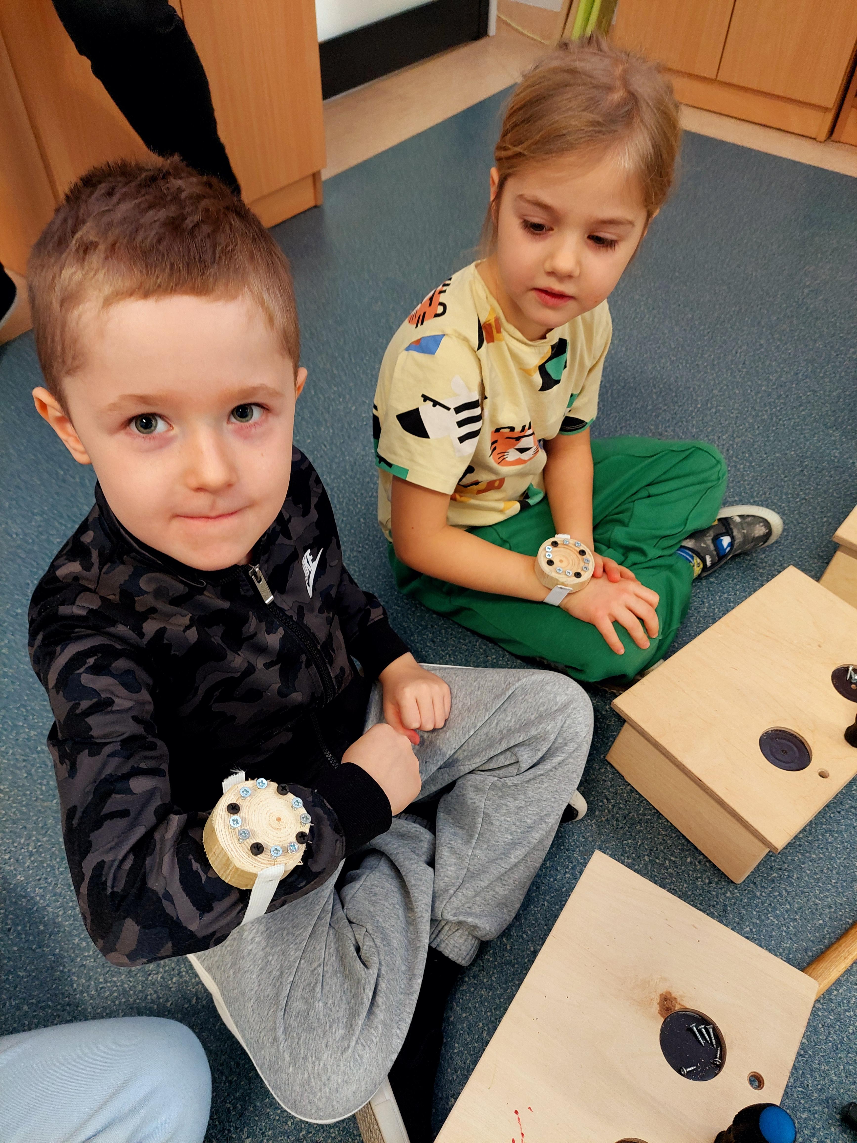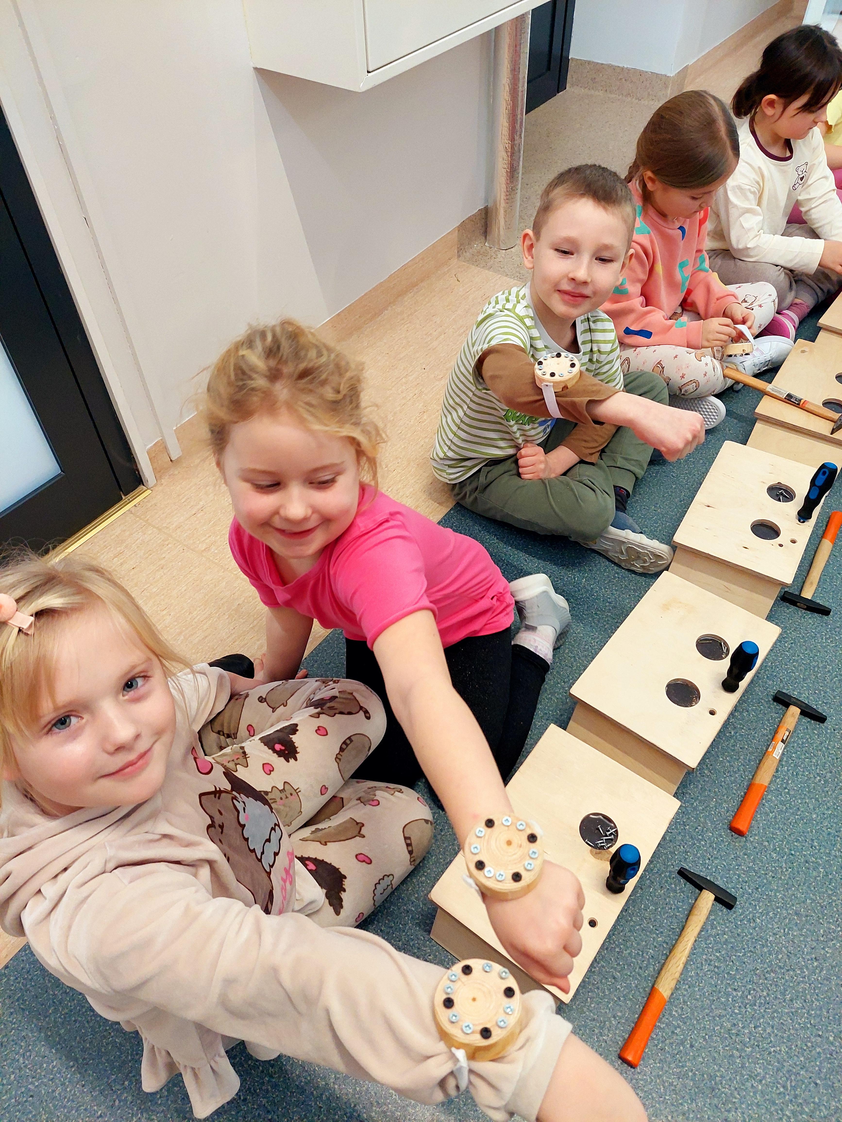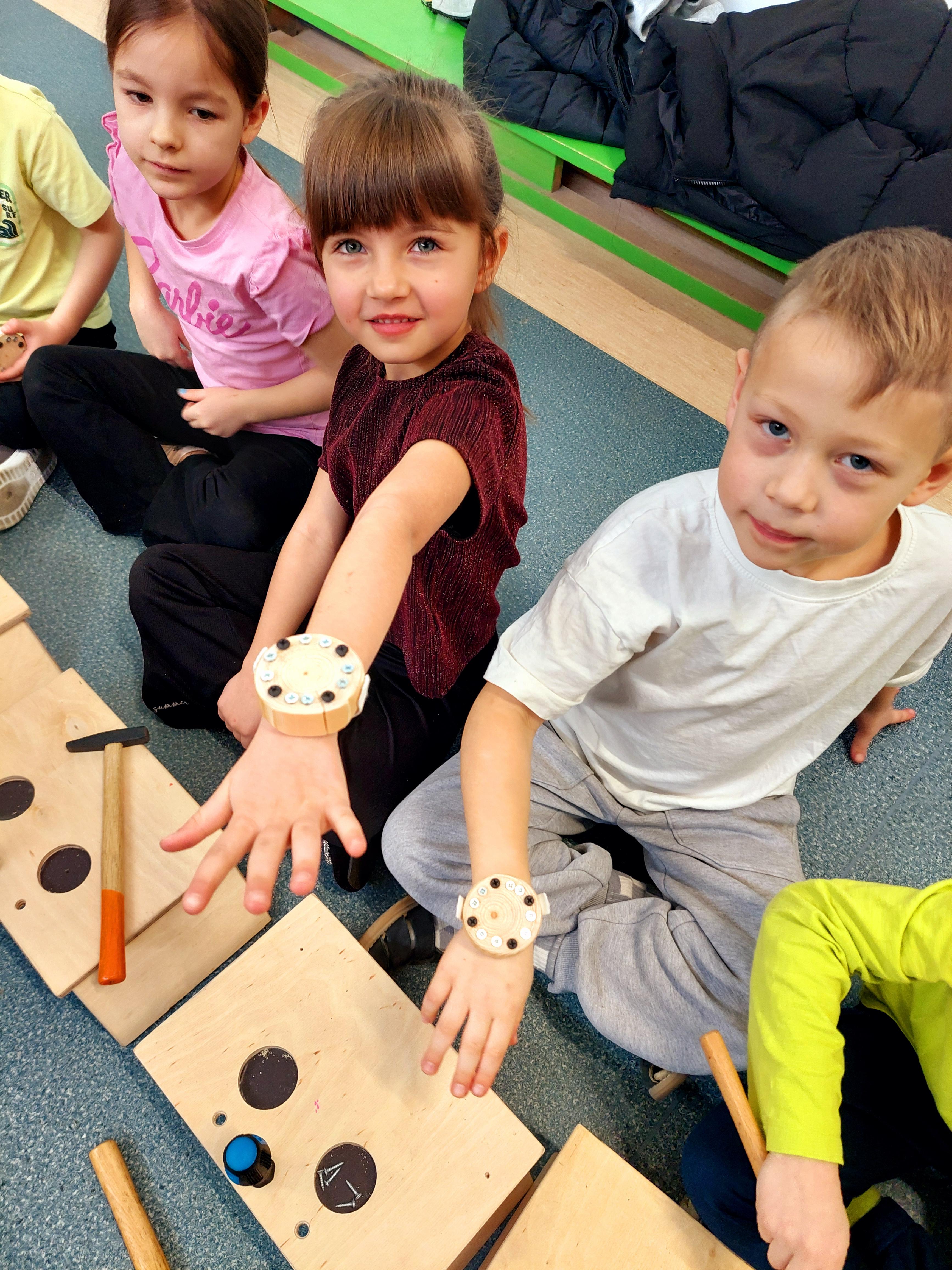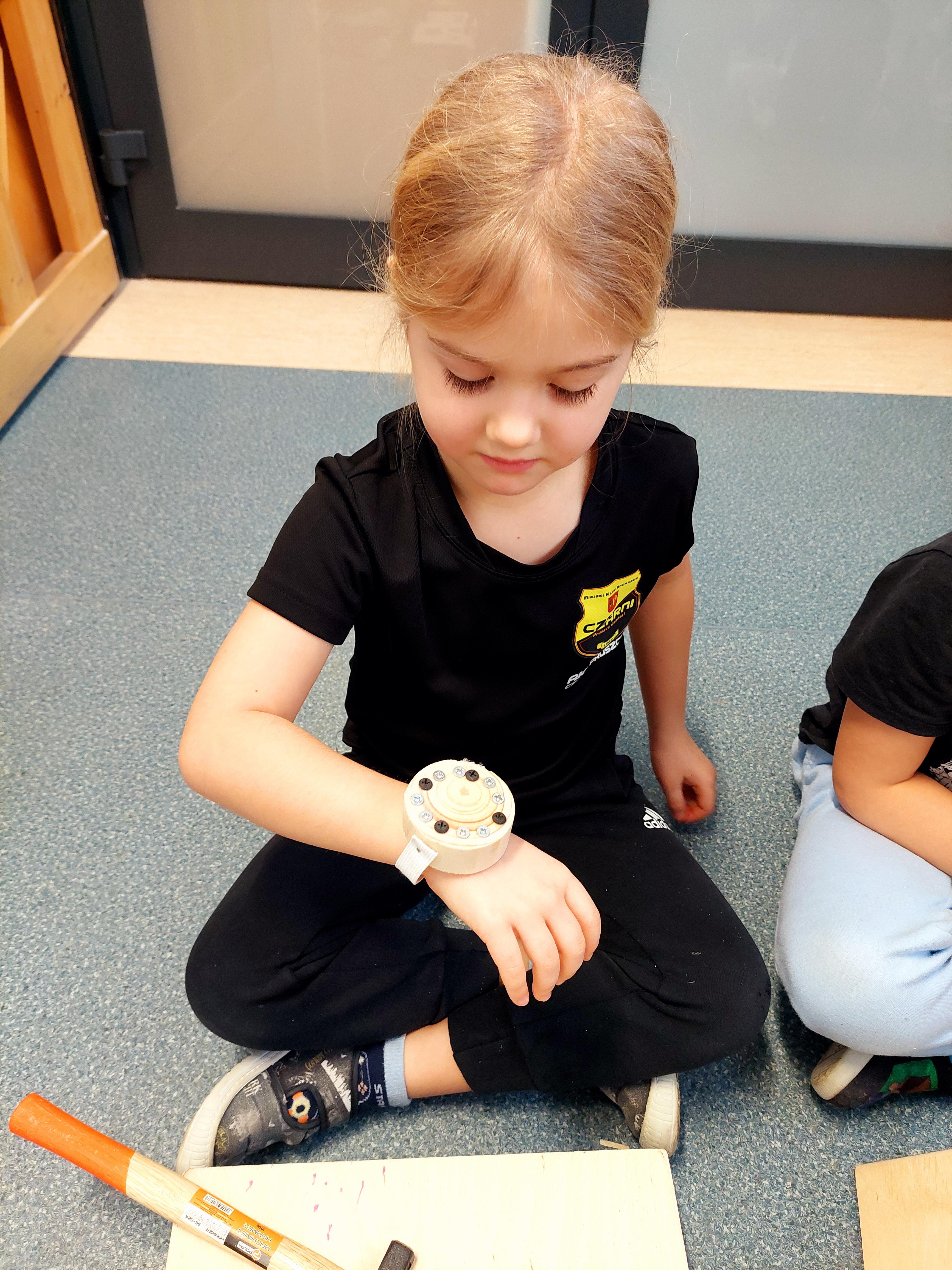 Podczas zajęć własnoręcznie robiły zegarki i trzeba przyznać – było widać, kto już majsterkuje z rodzicami w domu :)