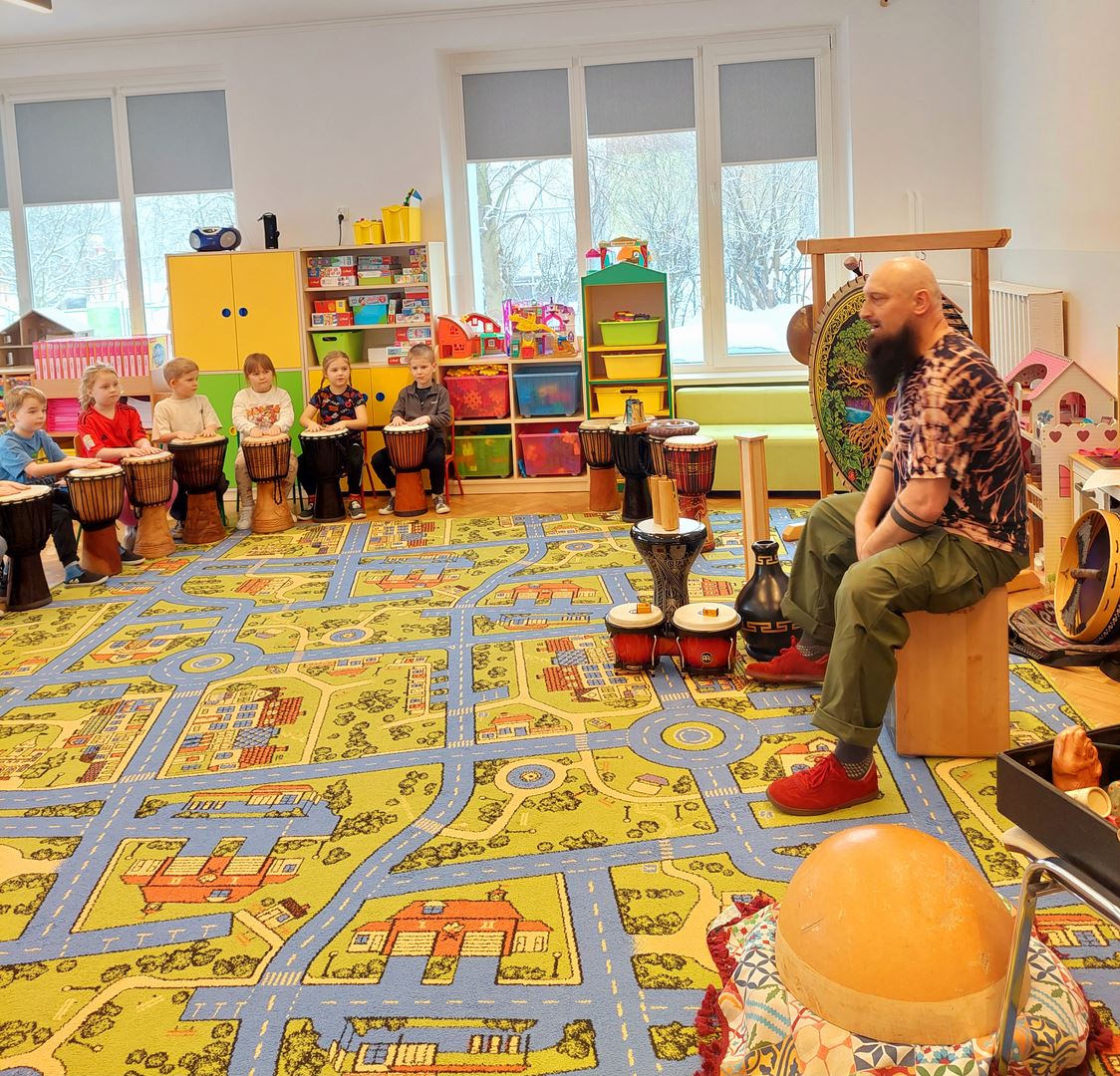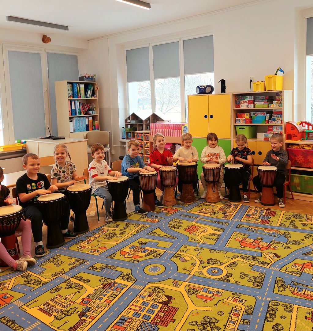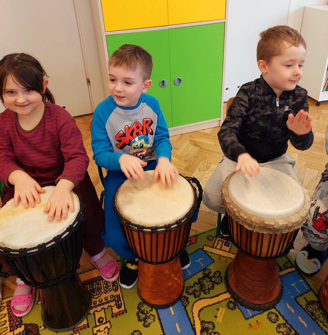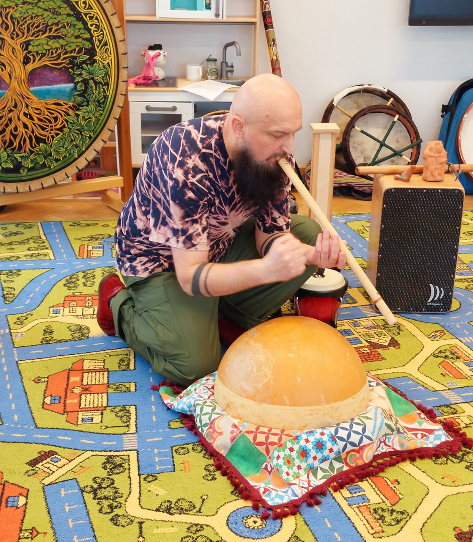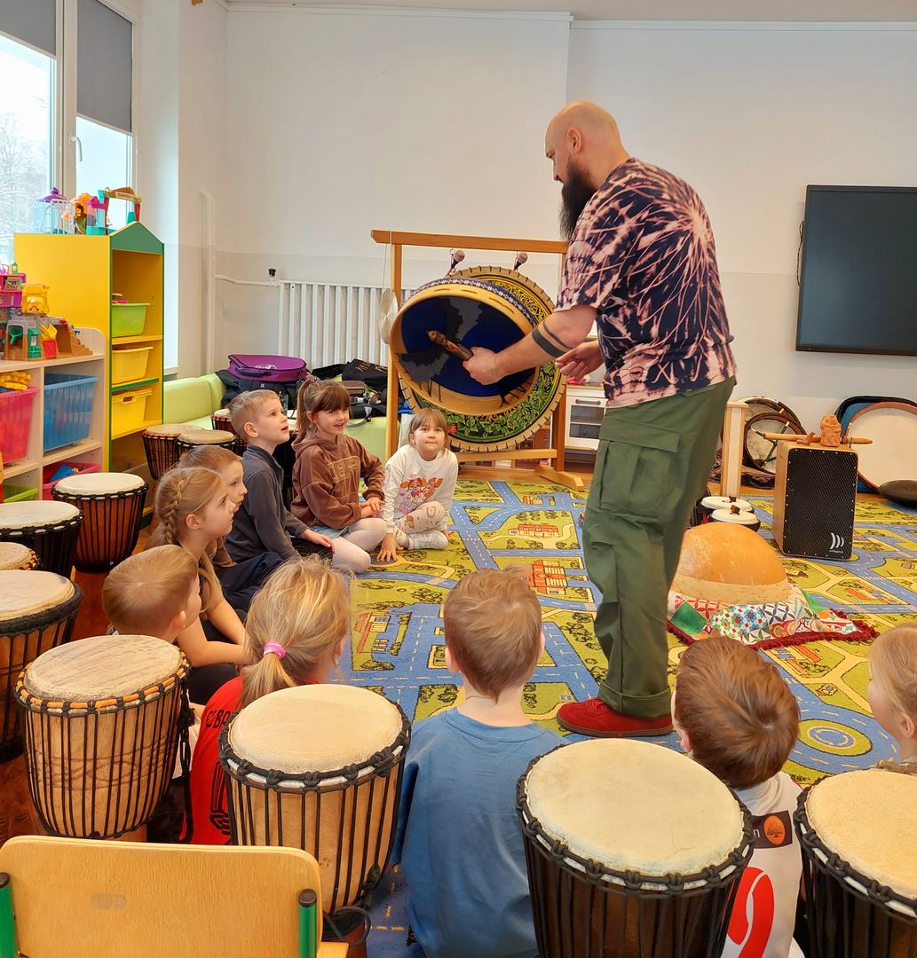 Dzieci były zachwycone! Z ogromnym zainteresowaniem słuchały, próbowały i odkrywały nowe dźwięki. Wśród ogromu prezentowanych instrumentów znalazły się m.in.: djembe, kazu, didgeridoo, handpan, drumla i wiele innych. Były także takie, imitujące dźwięk ptaków , deszcz czy szum oceanu...