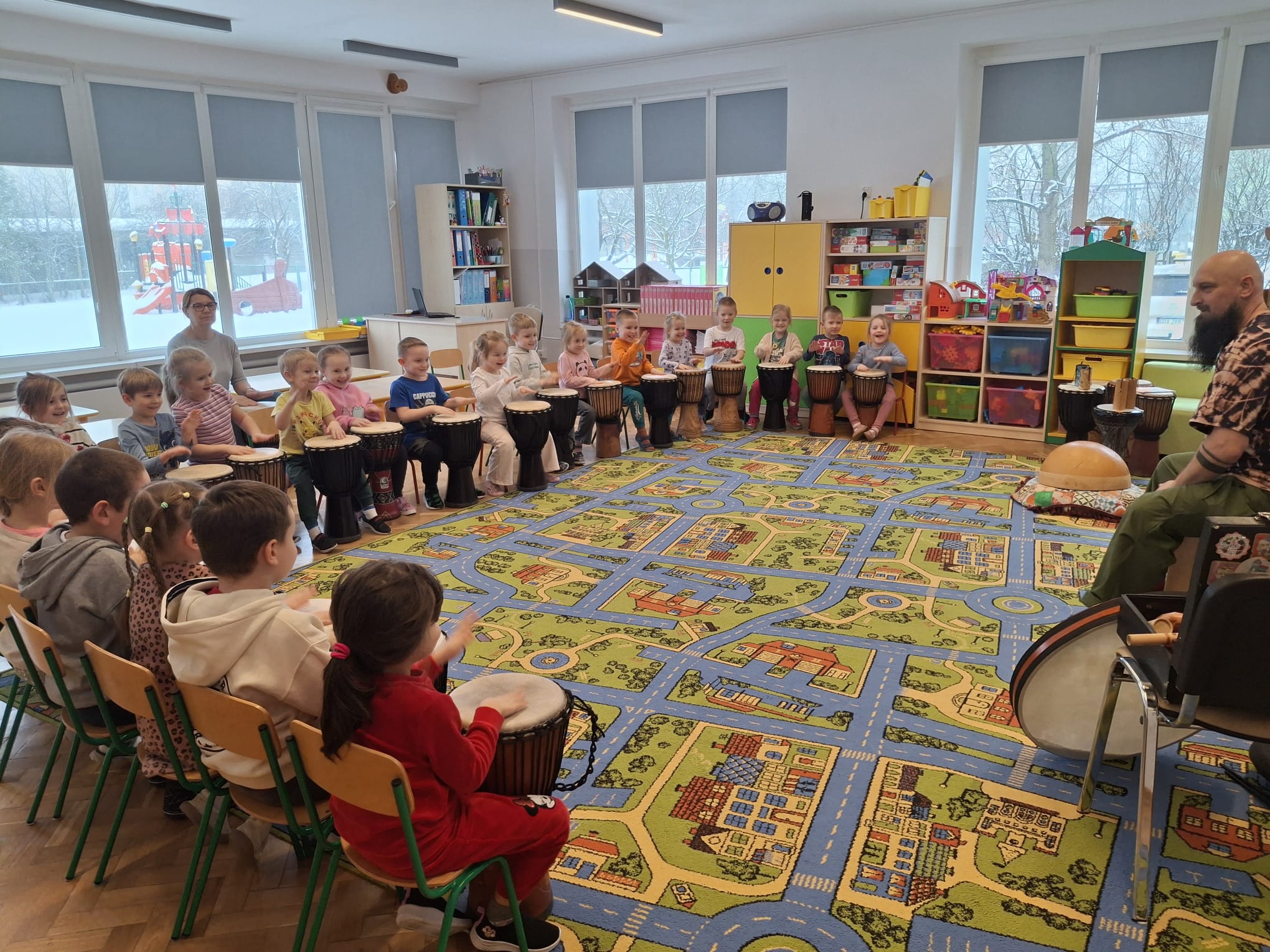 W każdej z grup naszych oddziałów przedszkolnych przeprowadził wyjątkowe warsztaty rytmiczno-bębniarskie połączone z prezentacją instrumentów etnicznych. Uwierzcie - mieliśmy dziś prawdziwe muzyczne święto!
