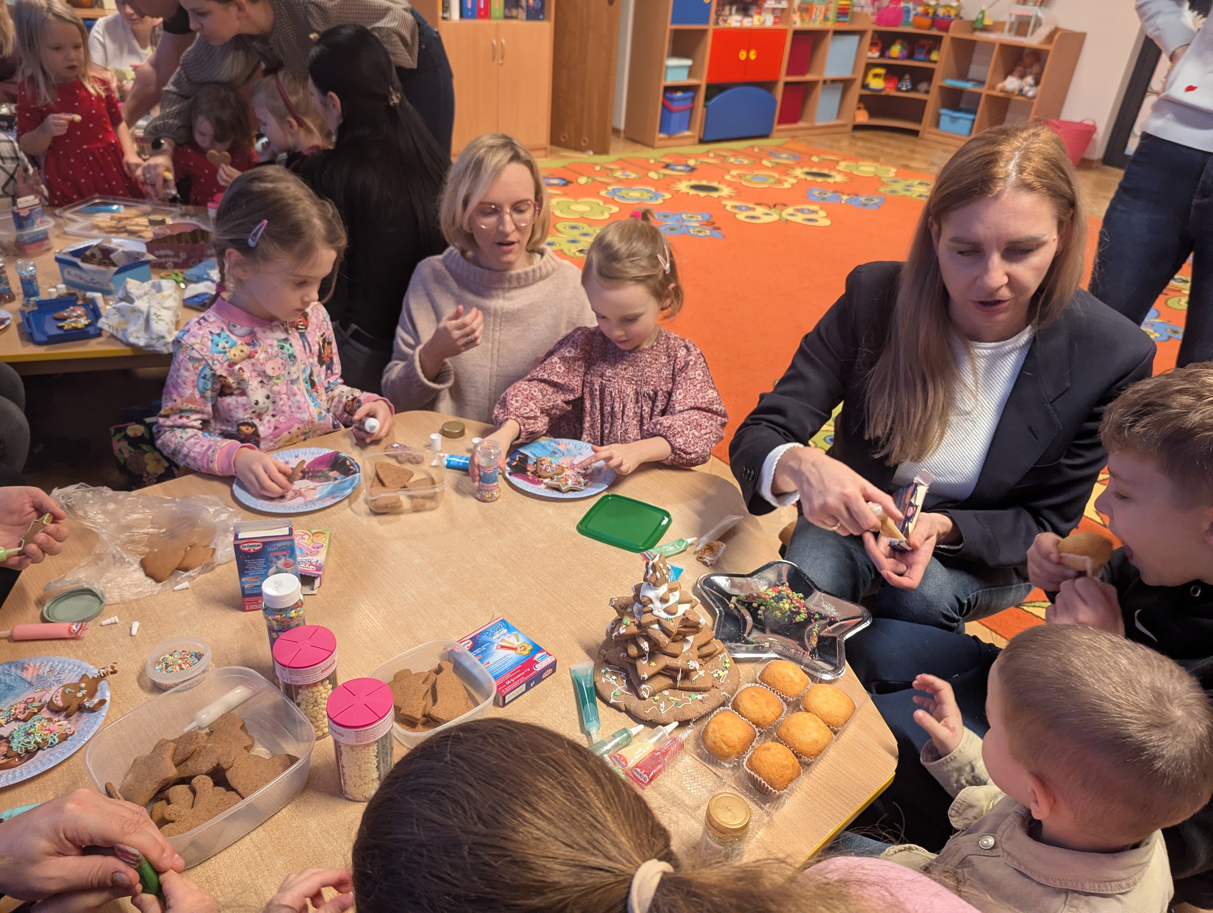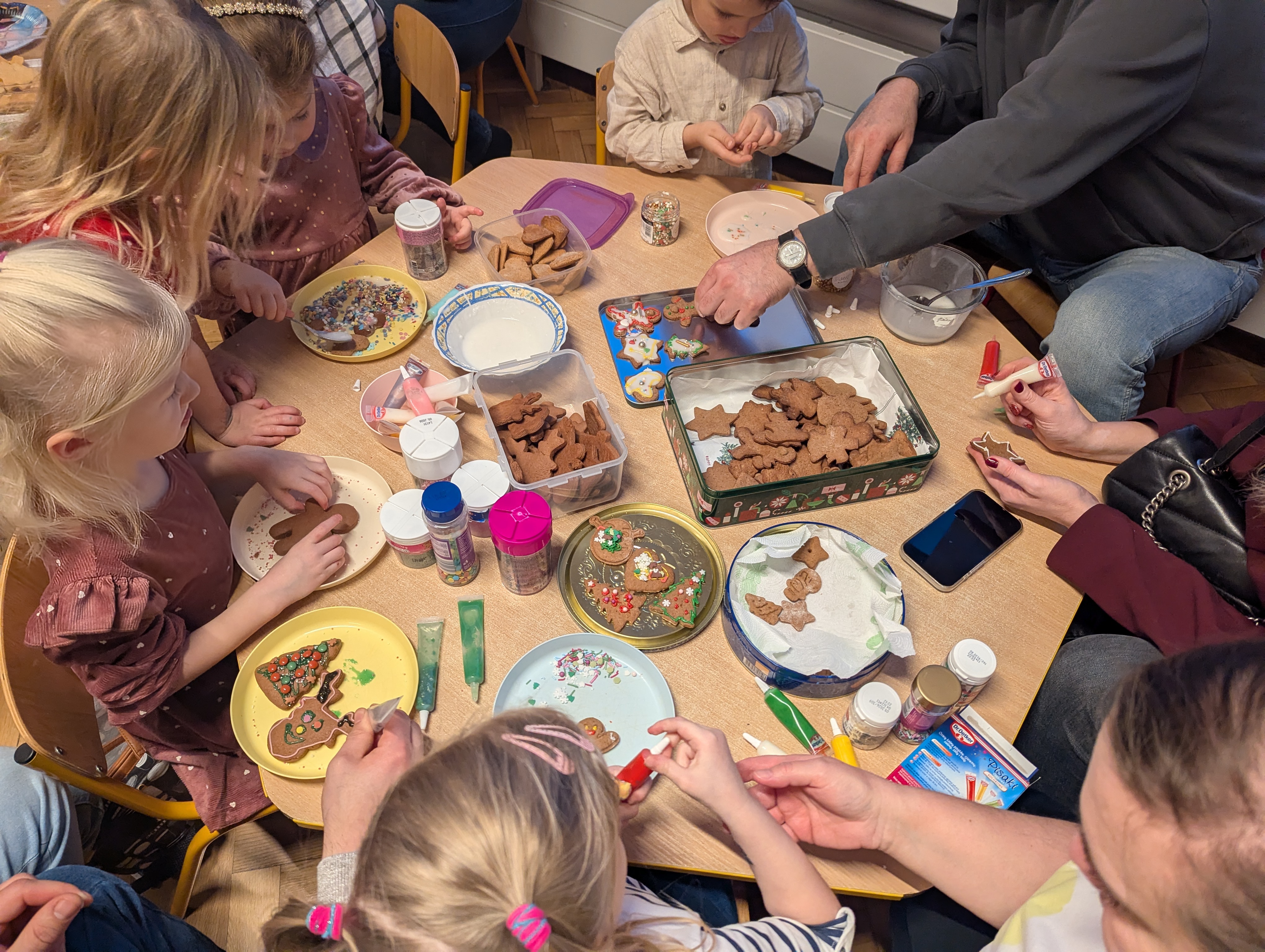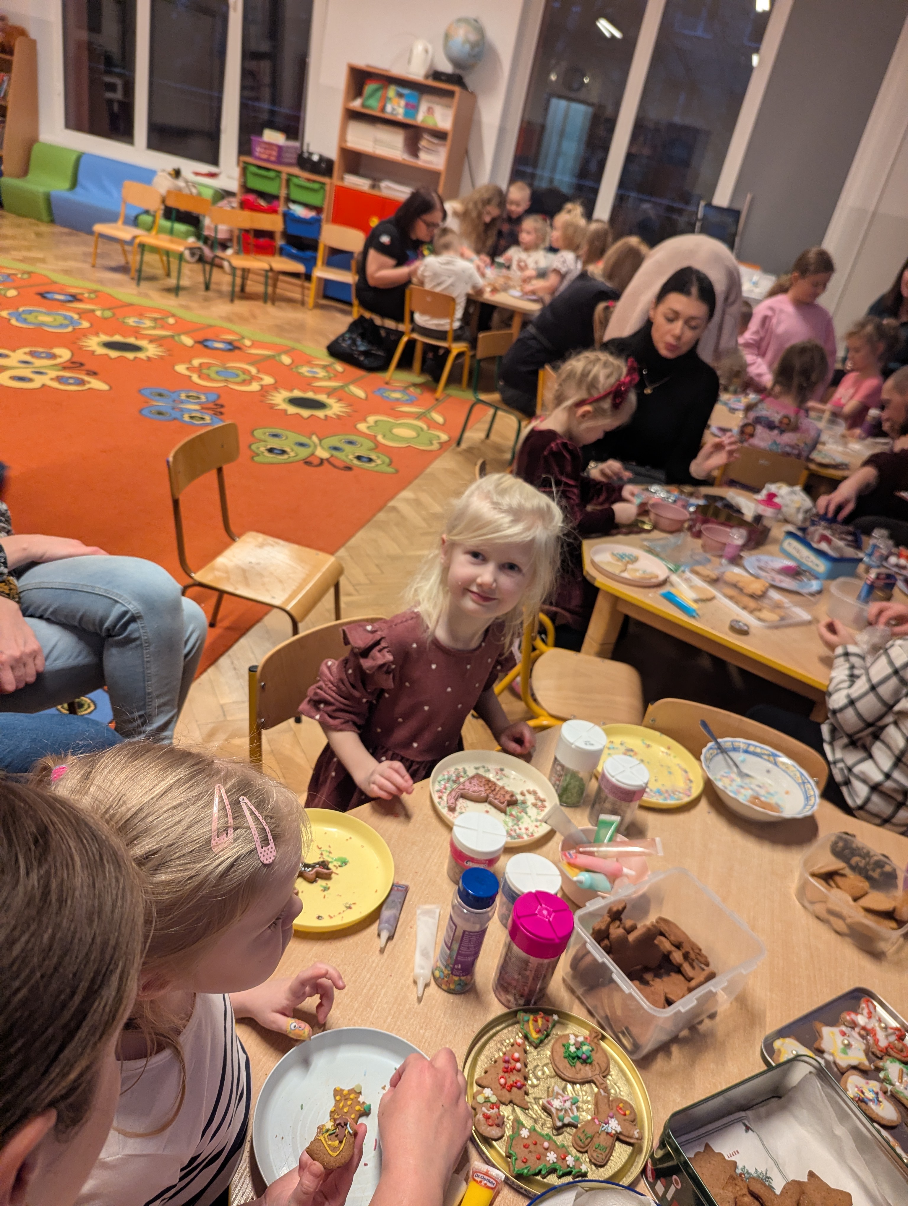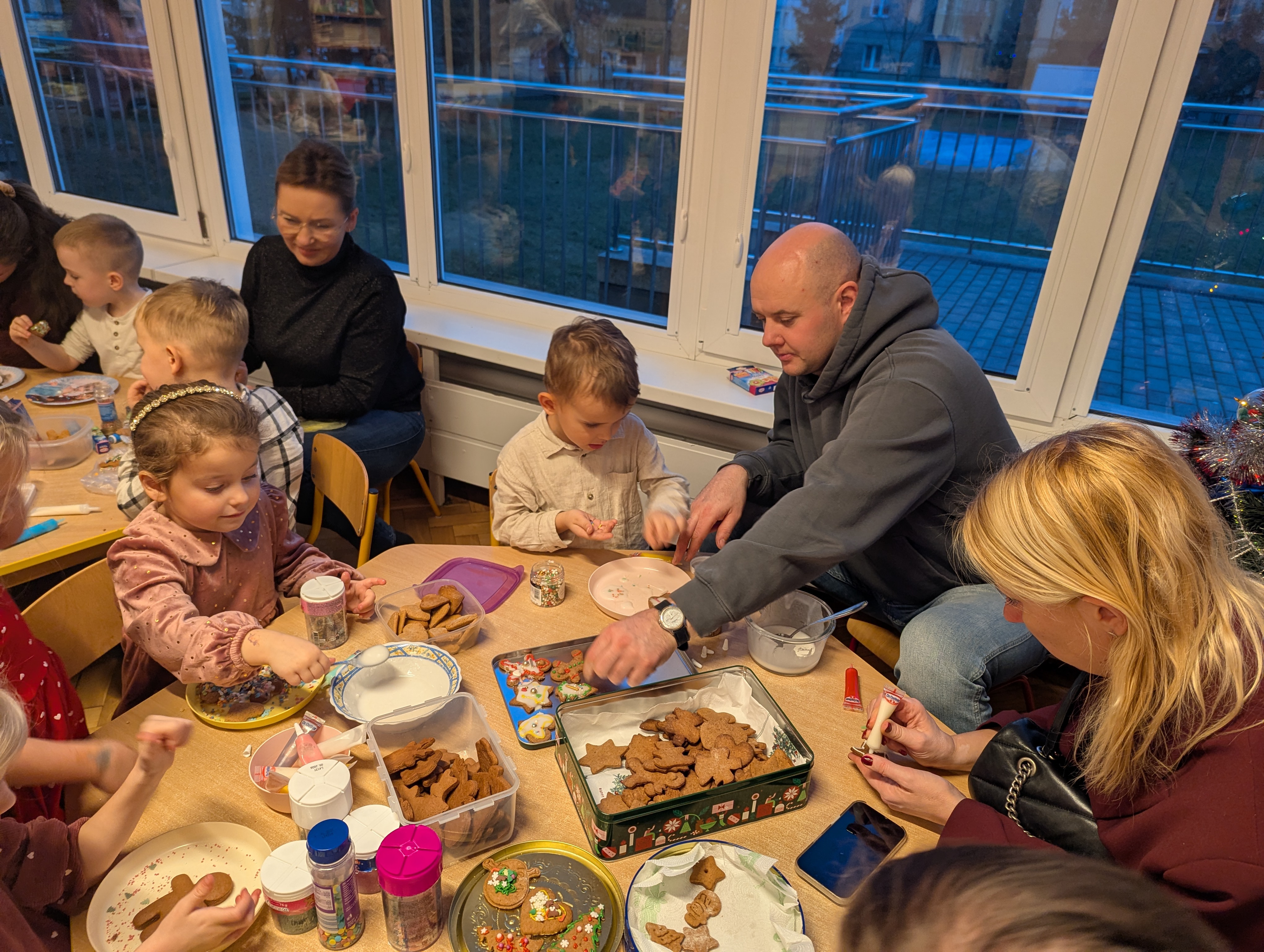 Po części artystycznej dzieci wraz z rodzicami wzięły udział we wspólnym ozdabianiu pierników. Warsztaty przebiegały w radosnej, ciepłej i świątecznej atmosferze, sprzyjającej integracji oraz wspólnemu przeżywaniu nadchodzących świąt.