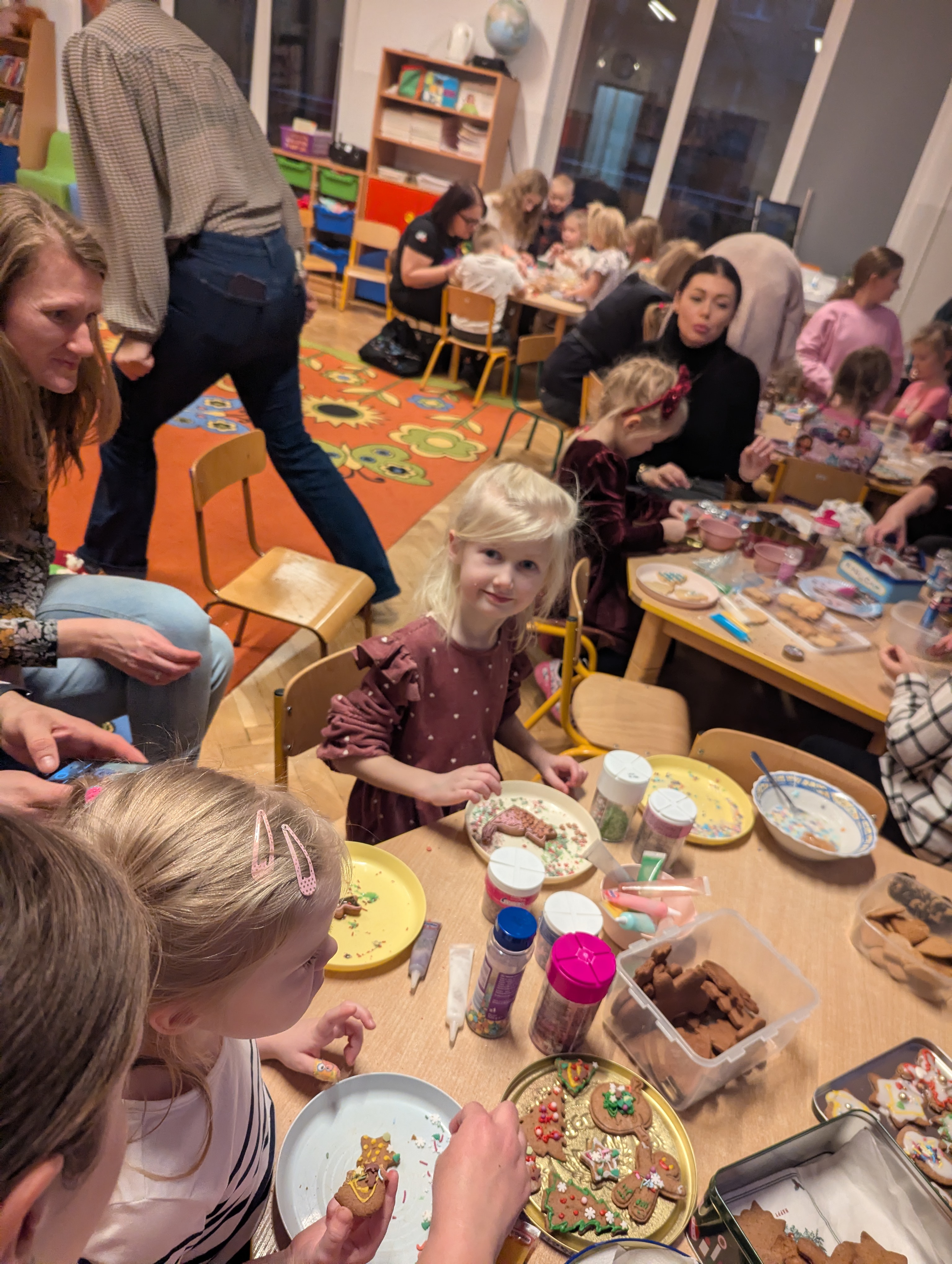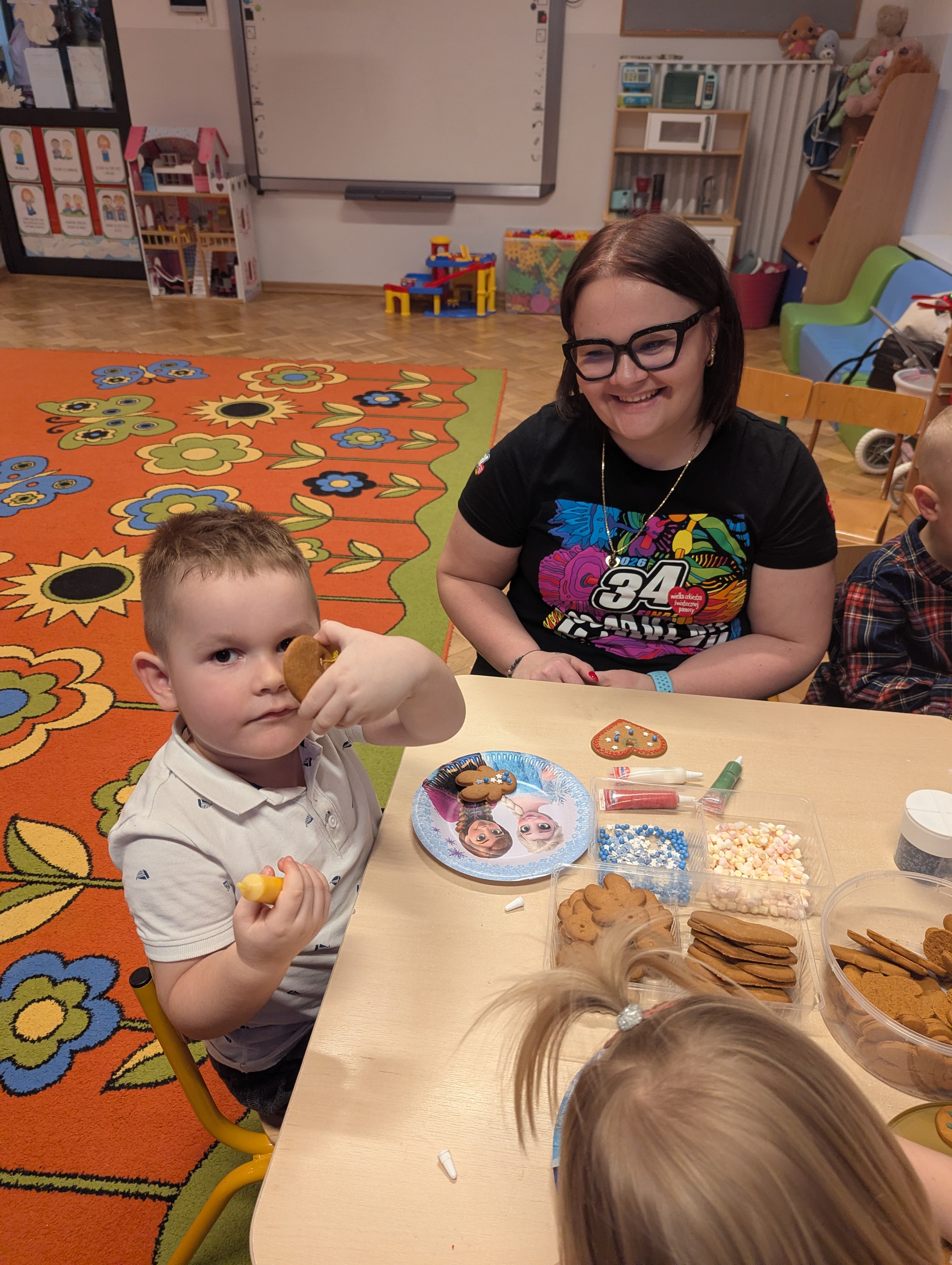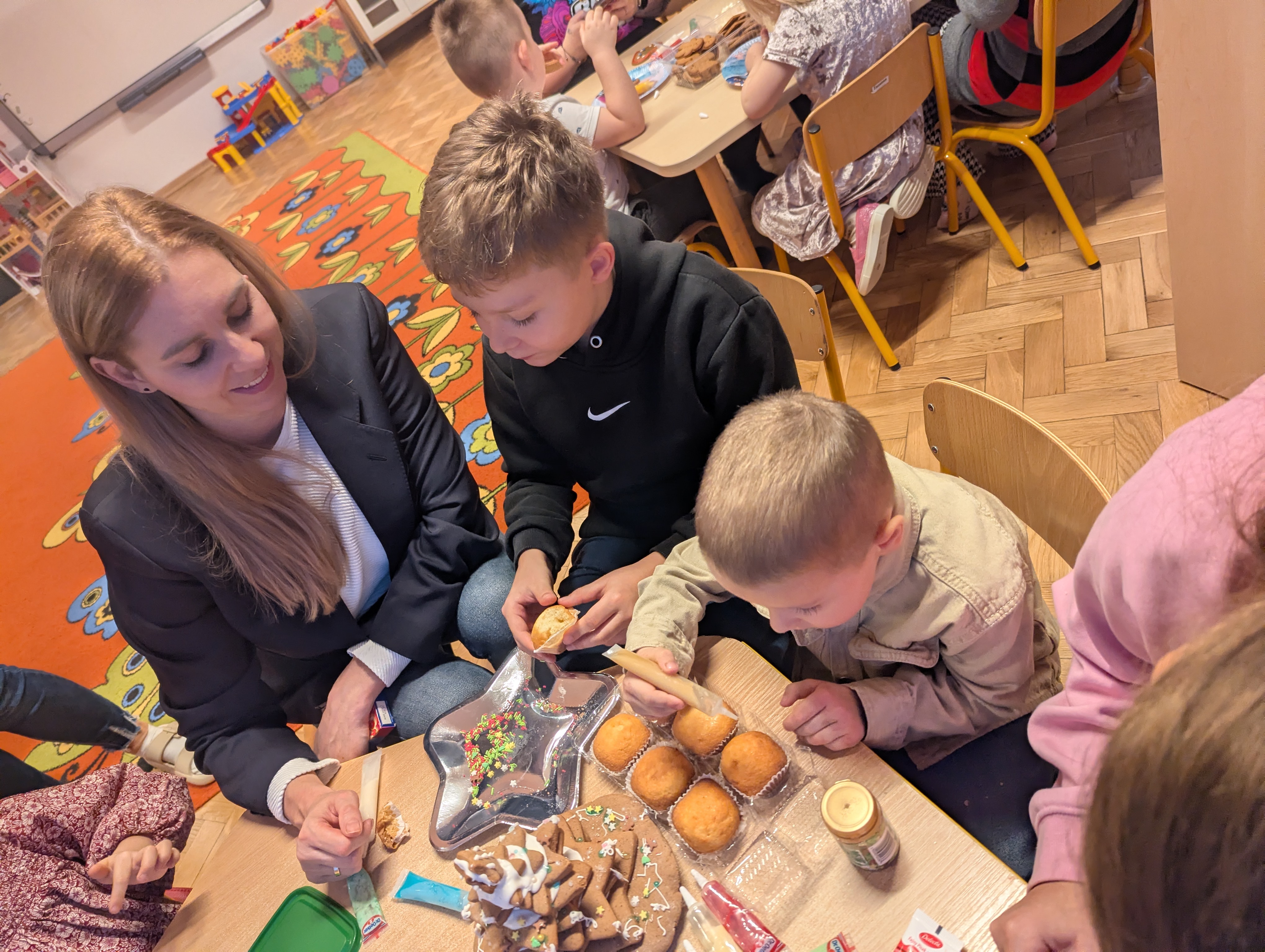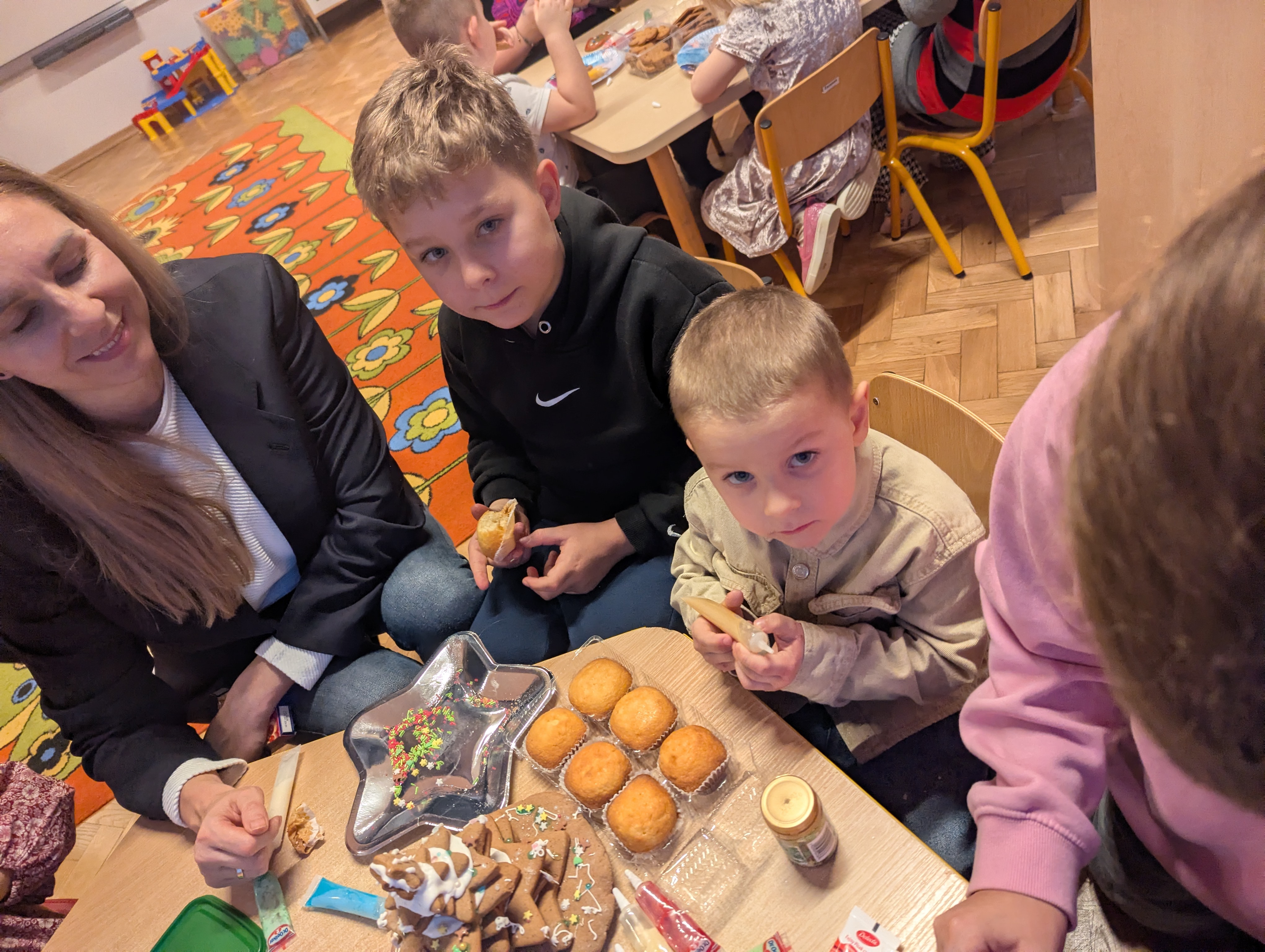 Po części artystycznej dzieci wraz z rodzicami wzięły udział we wspólnym ozdabianiu pierników. Warsztaty przebiegały w radosnej, ciepłej i świątecznej atmosferze, sprzyjającej integracji oraz wspólnemu przeżywaniu nadchodzących świąt.