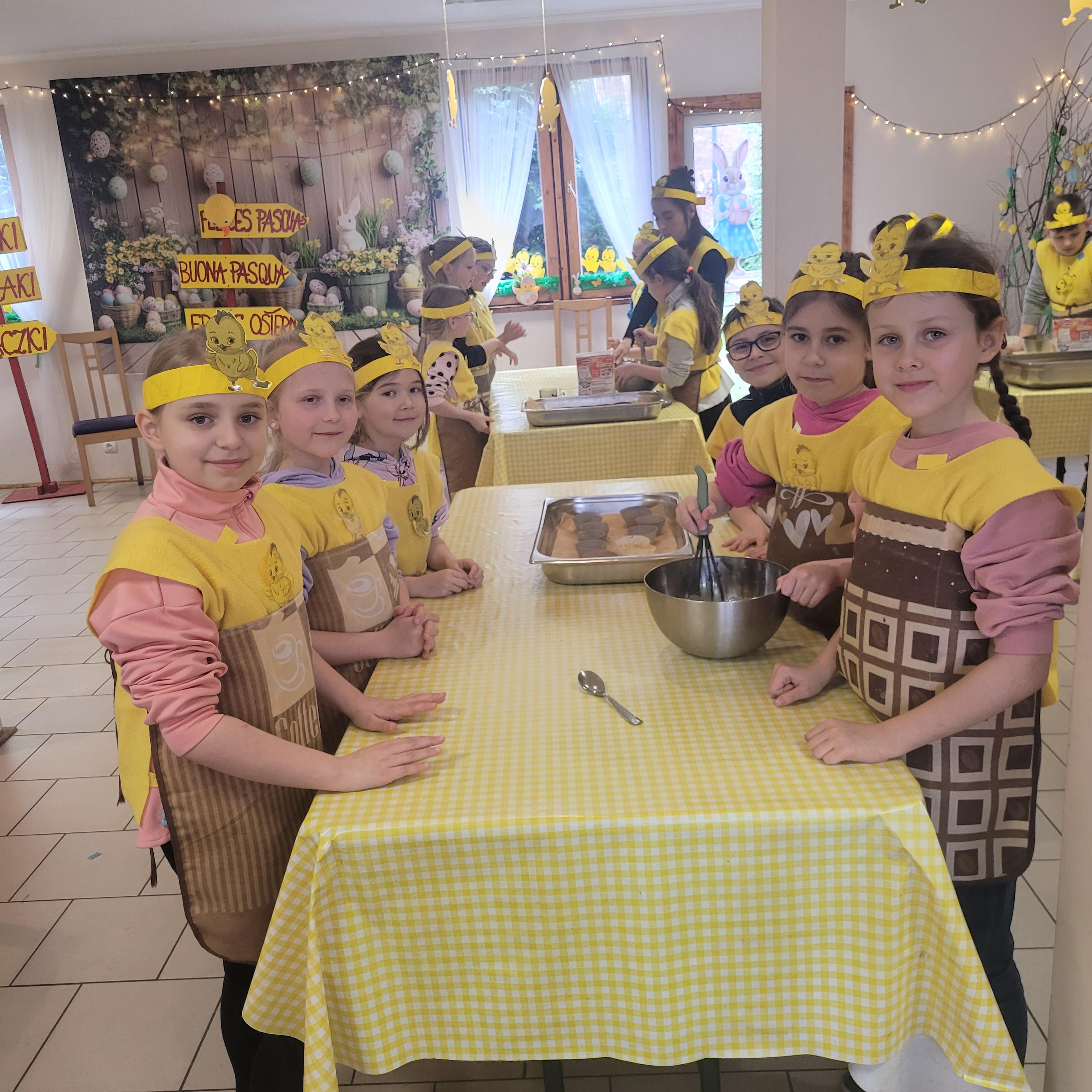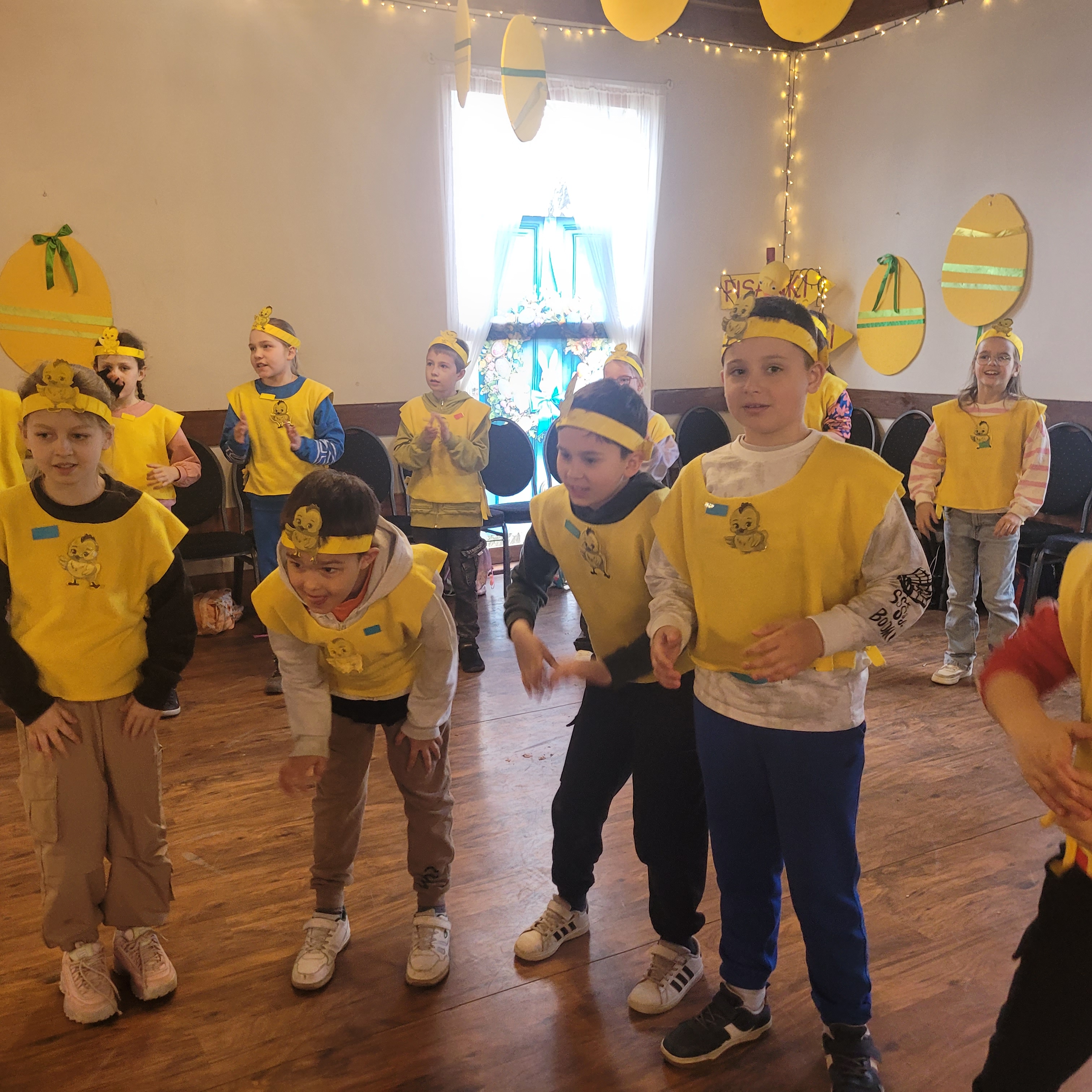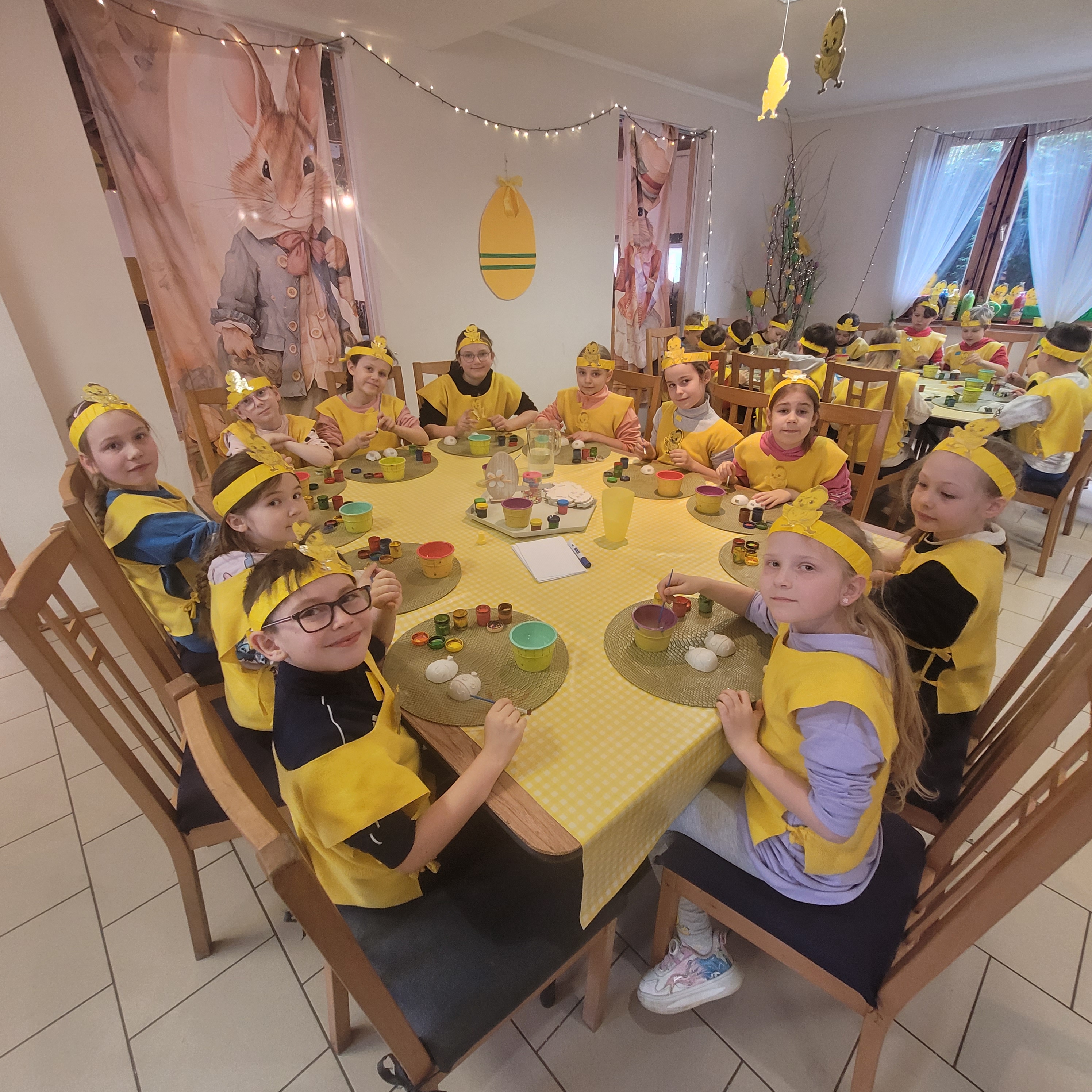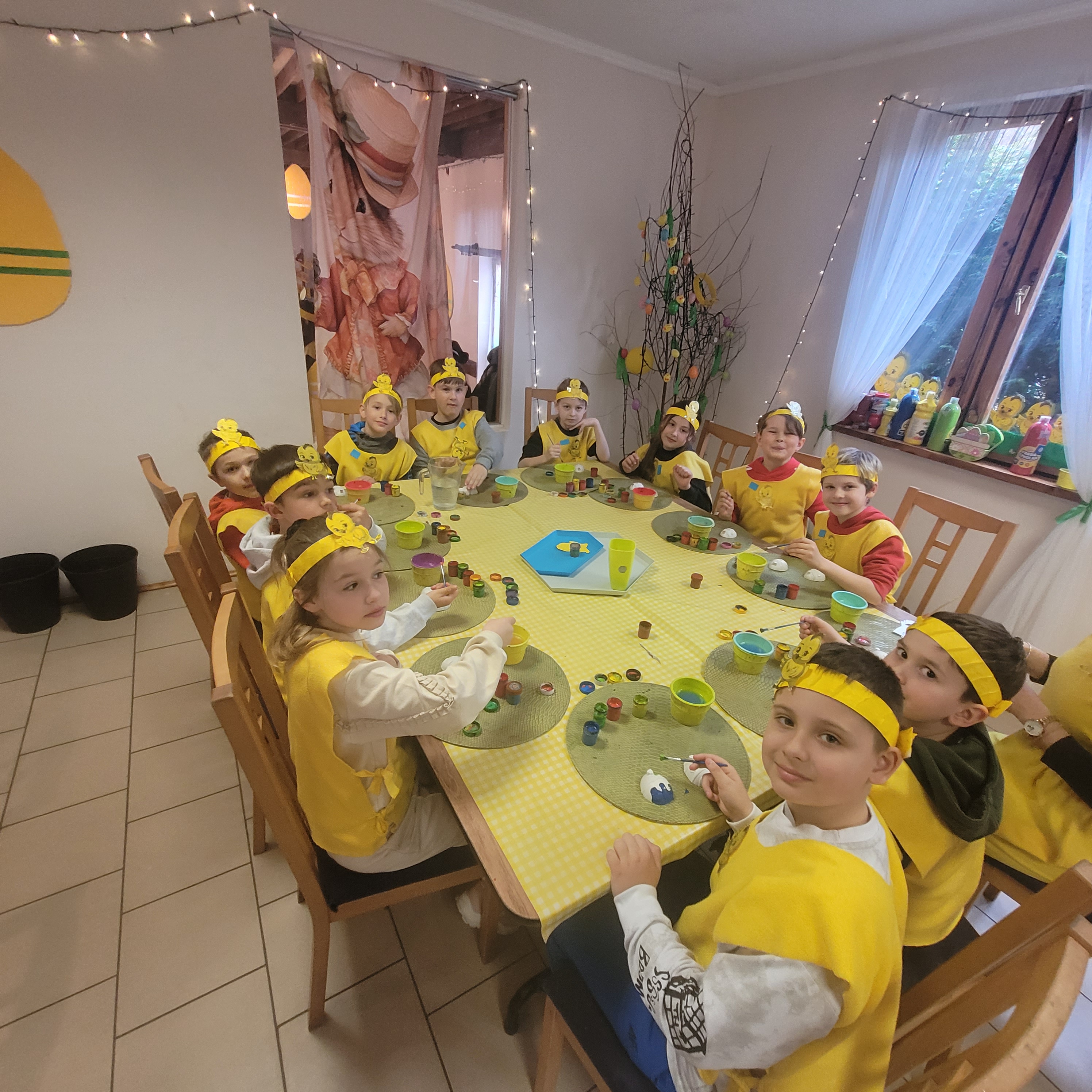Podczas zajęć artystycznych uczestnicy własnoręcznie wykonywali ozdoby wielkanocne, a projekcja filmu edukacyjnego przybliżyła tradycje i zwyczaje związane ze Świętami Wielkanocnymi. Program wydarzenia obejmował również zabawy ruchowe, taneczne i muzyczne prowadzone przez animatorów, a także warsztaty kulinarne, podczas których uczniowie piekli i dekorowali świąteczne babeczki.