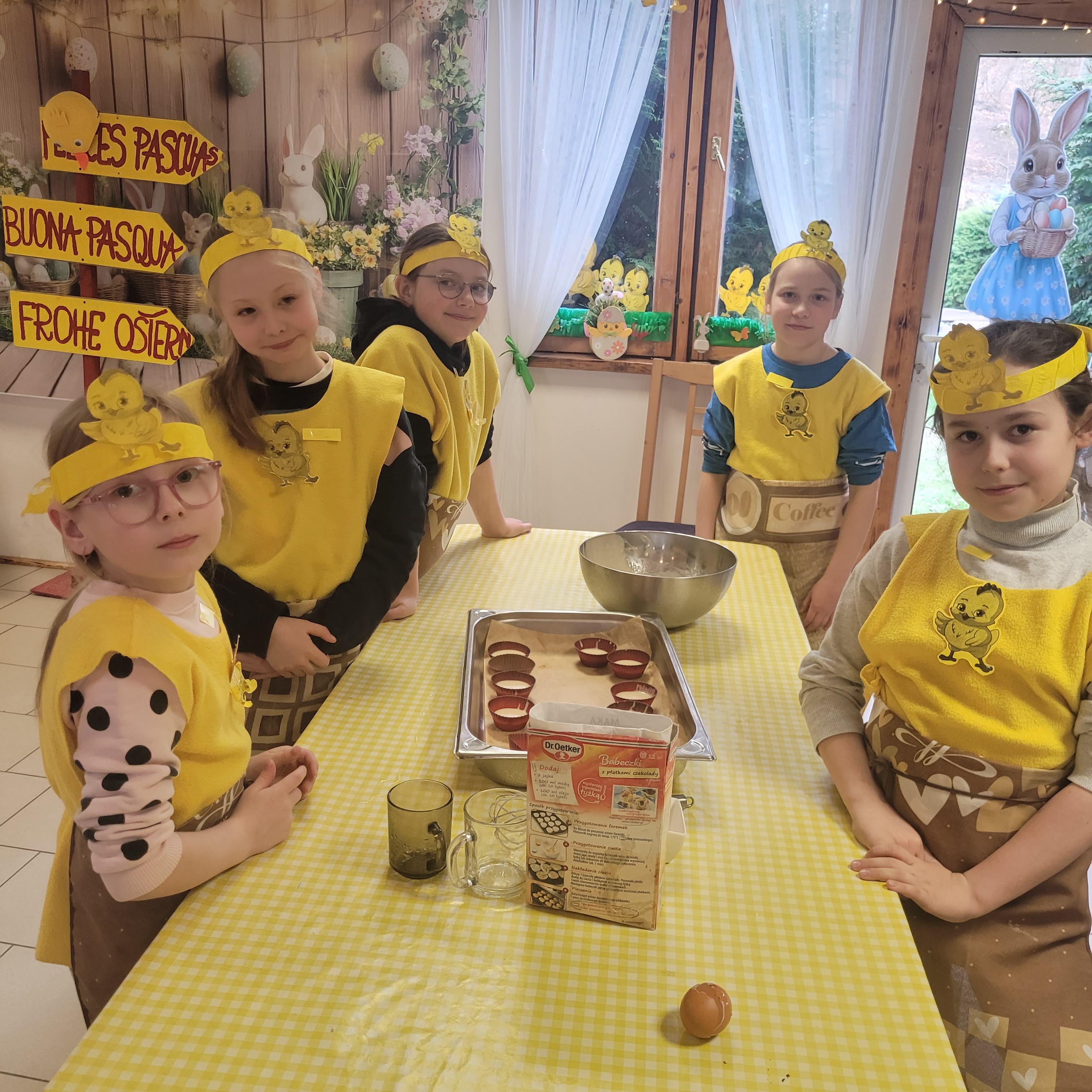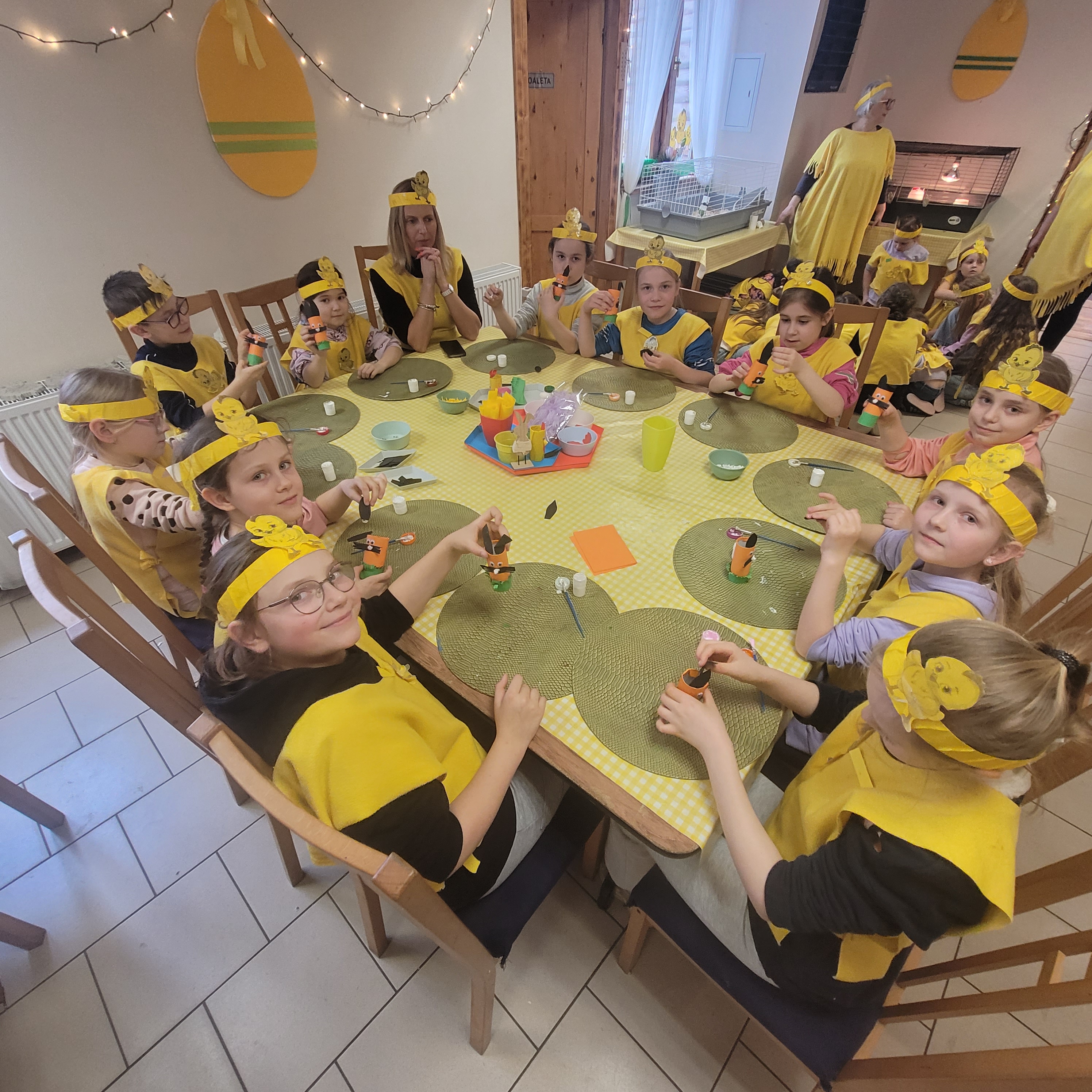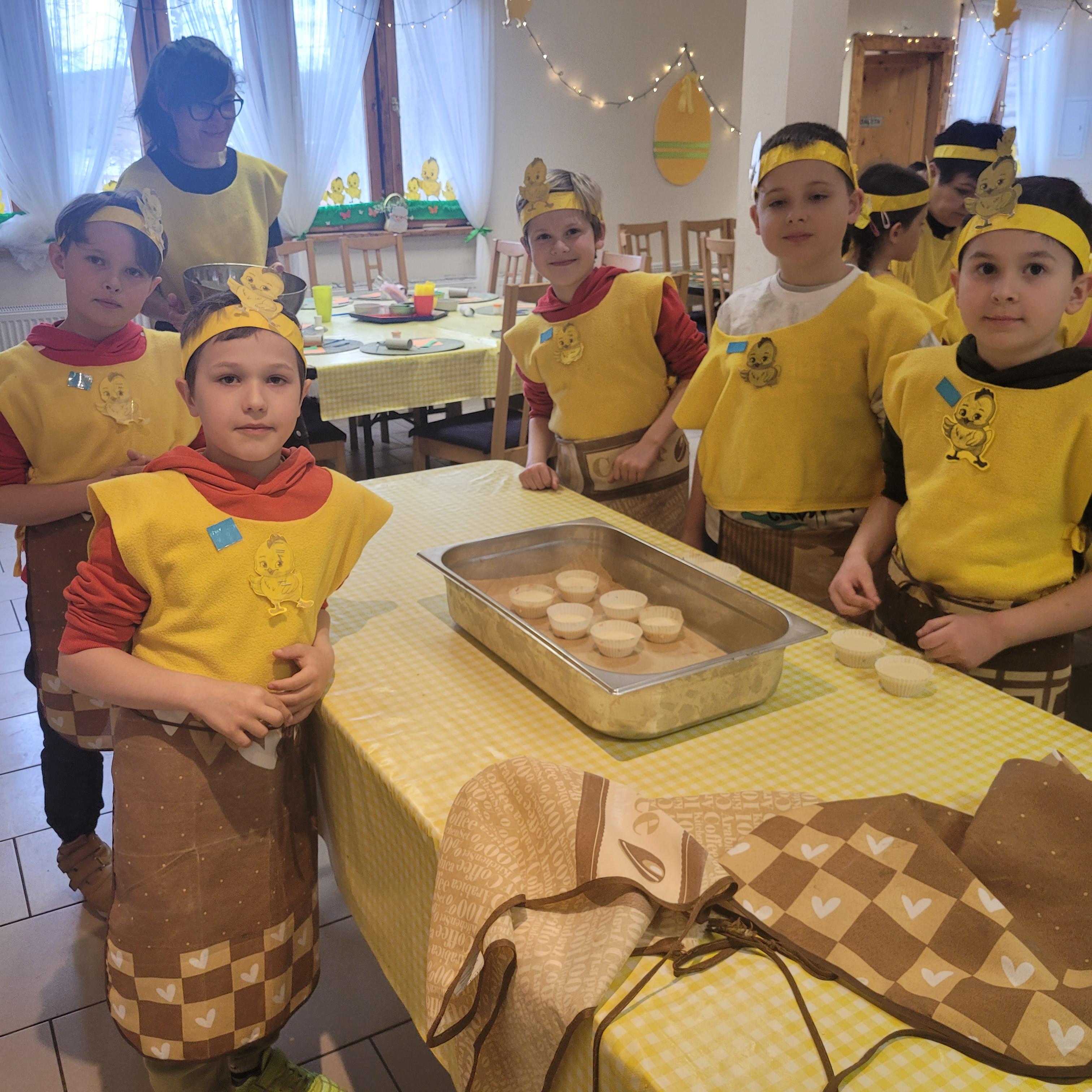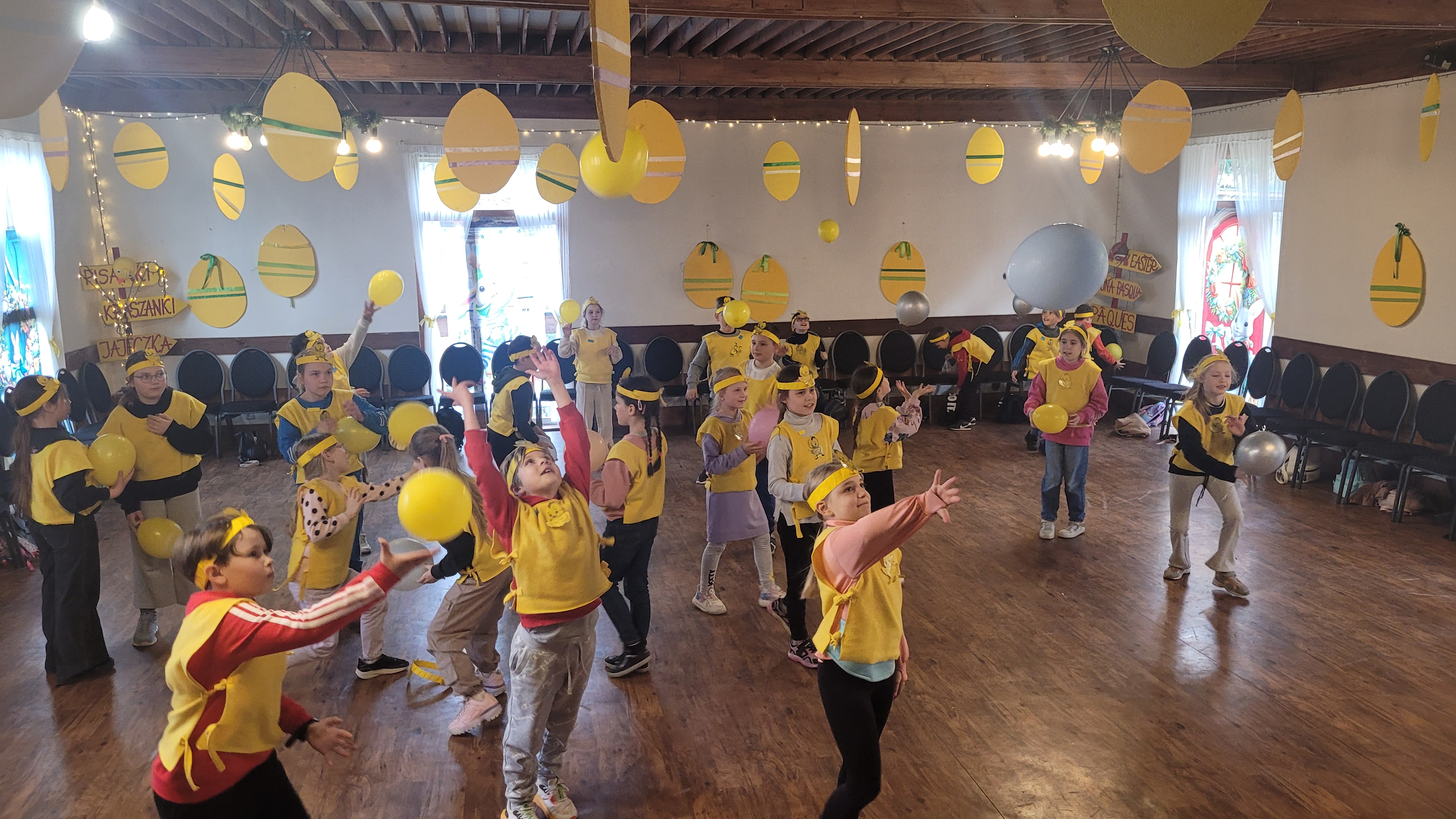 Podczas zajęć artystycznych uczestnicy własnoręcznie wykonywali ozdoby wielkanocne, a projekcja filmu edukacyjnego przybliżyła tradycje i zwyczaje związane ze Świętami Wielkanocnymi. Program wydarzenia obejmował również zabawy ruchowe, taneczne i muzyczne prowadzone przez animatorów, a także warsztaty kulinarne, podczas których uczniowie piekli i dekorowali świąteczne babeczki.