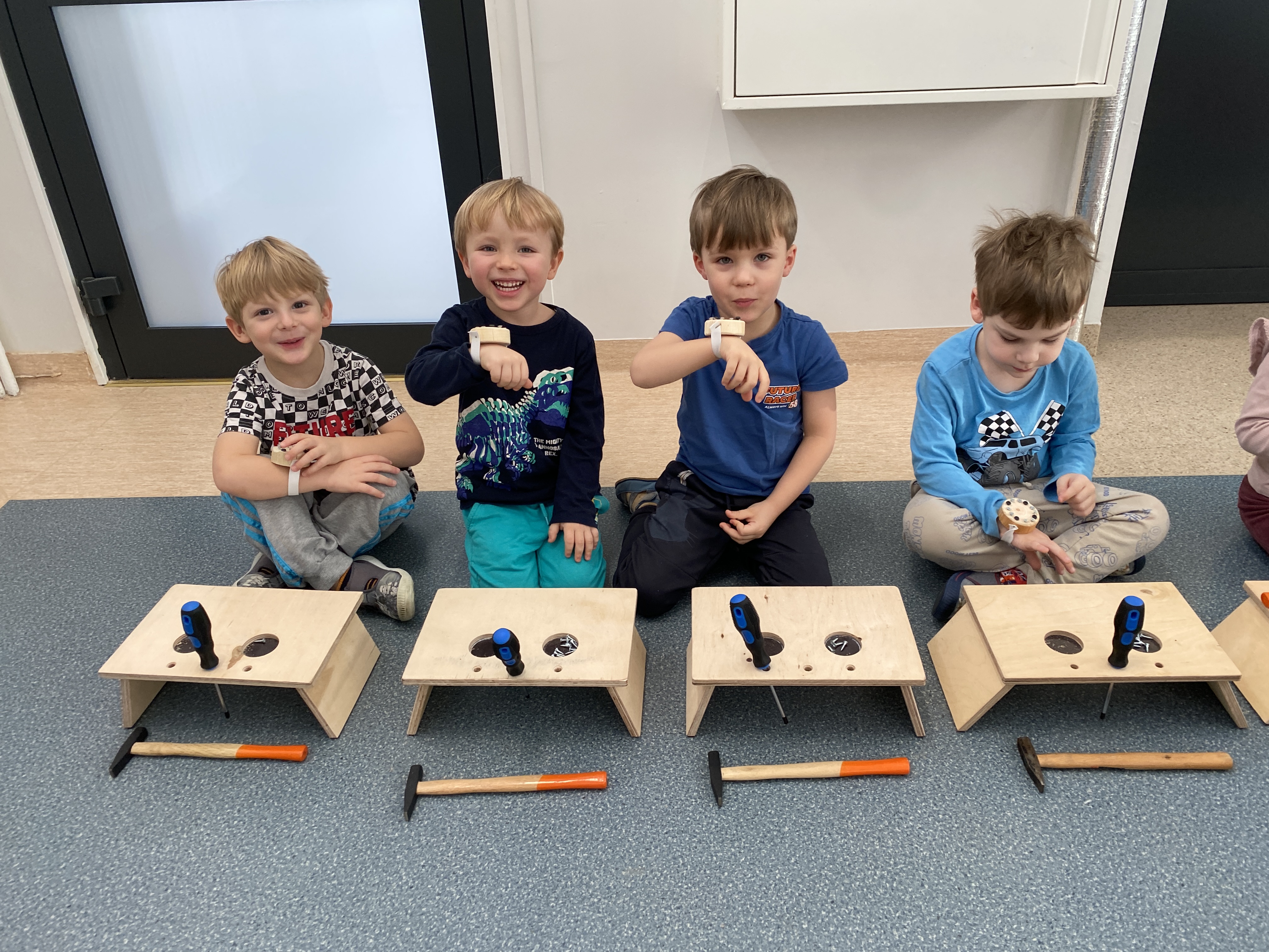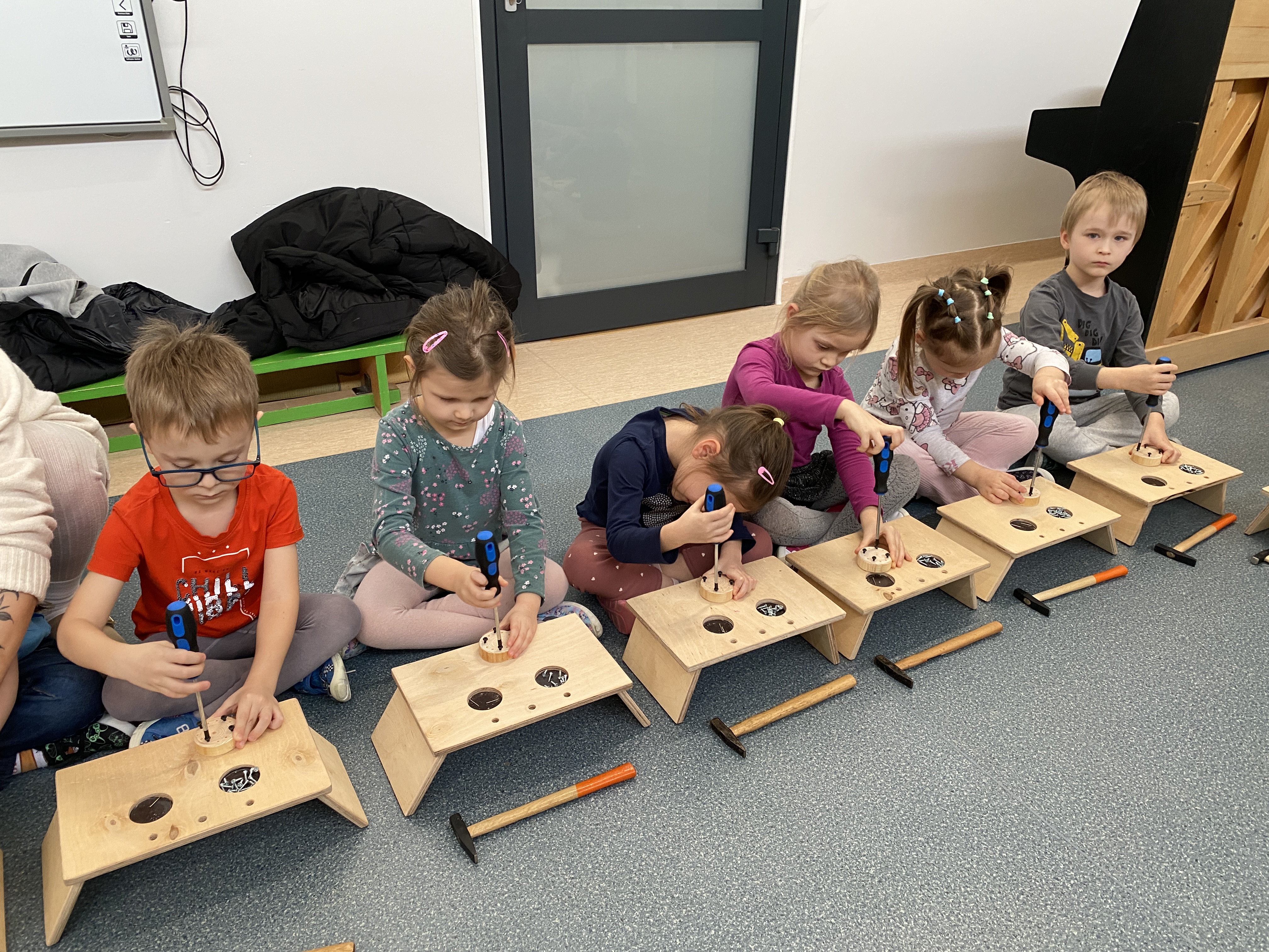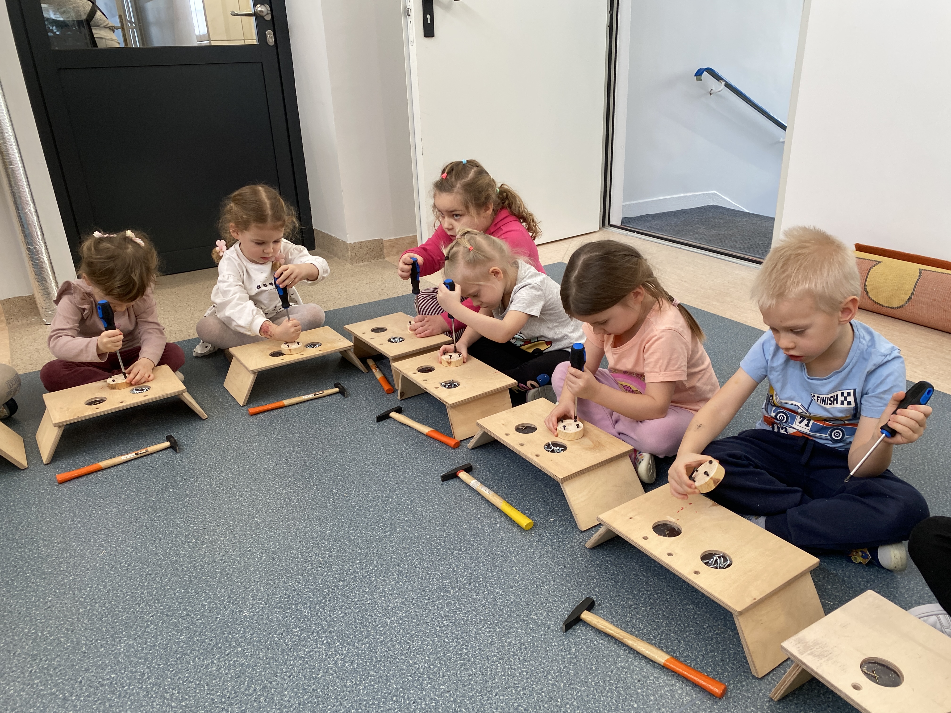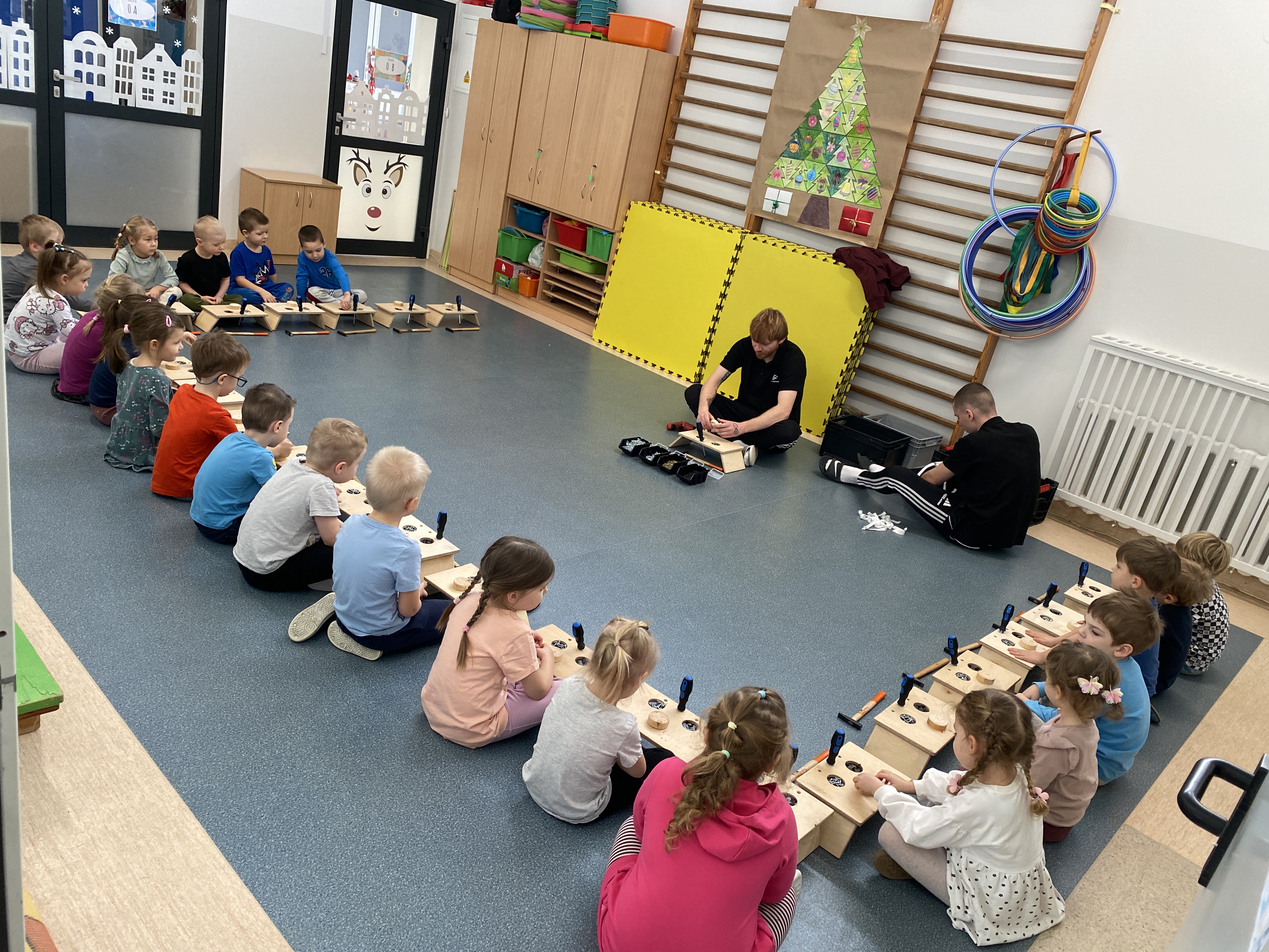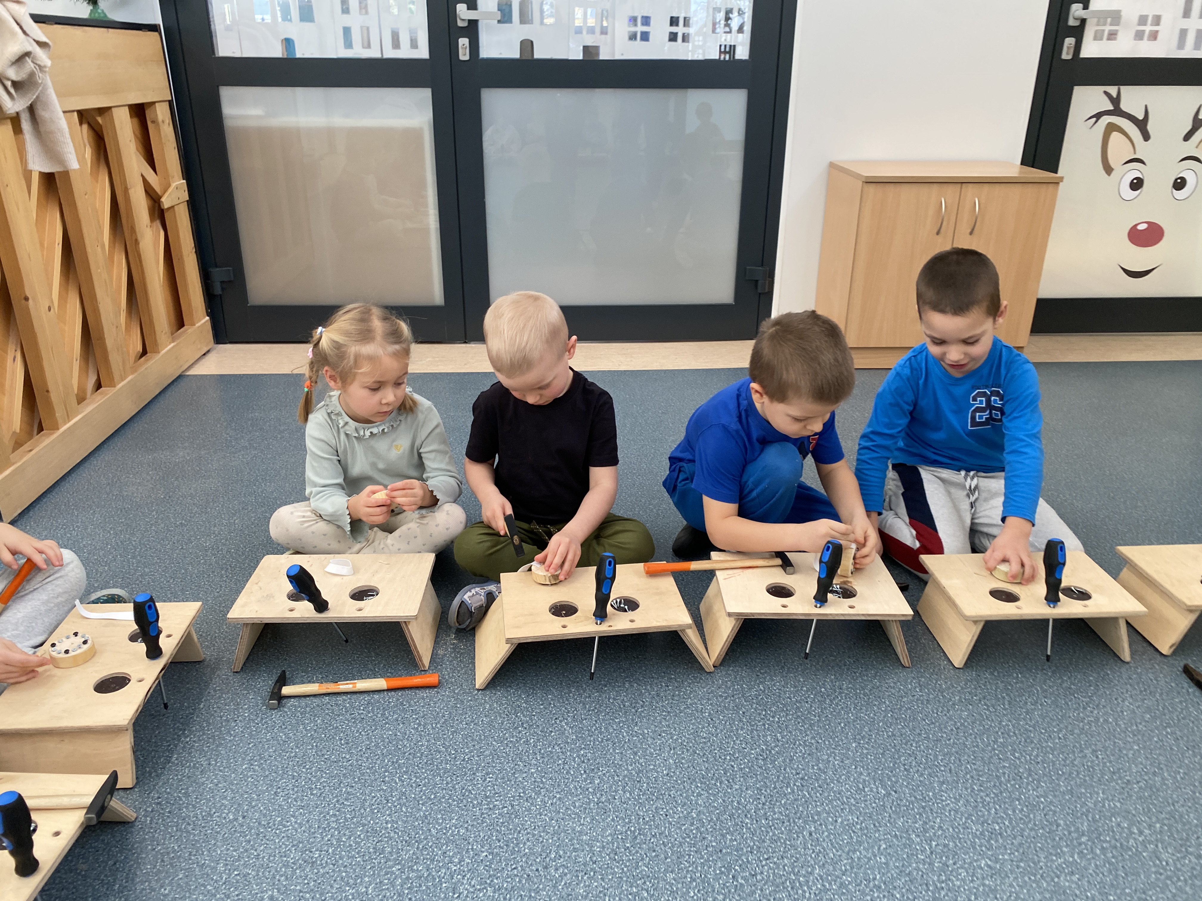8 stycznia Kreciki miały przyjemność wziąć udział w warszatach z majsterkowania. Dzieci z ogromnym zaangażowaniem wykonywały drewniane zegarki na rękę. Samodzielnie wkręcały śrubki oraz przybijały gwoździe, ćwicząc przy tym sprawność manualną i koordynację ruchową. Zajęcia sprawiły dzieciom wiele radości i były doskonałą okazją do rozwijania kreatywności oraz samodzielności.
