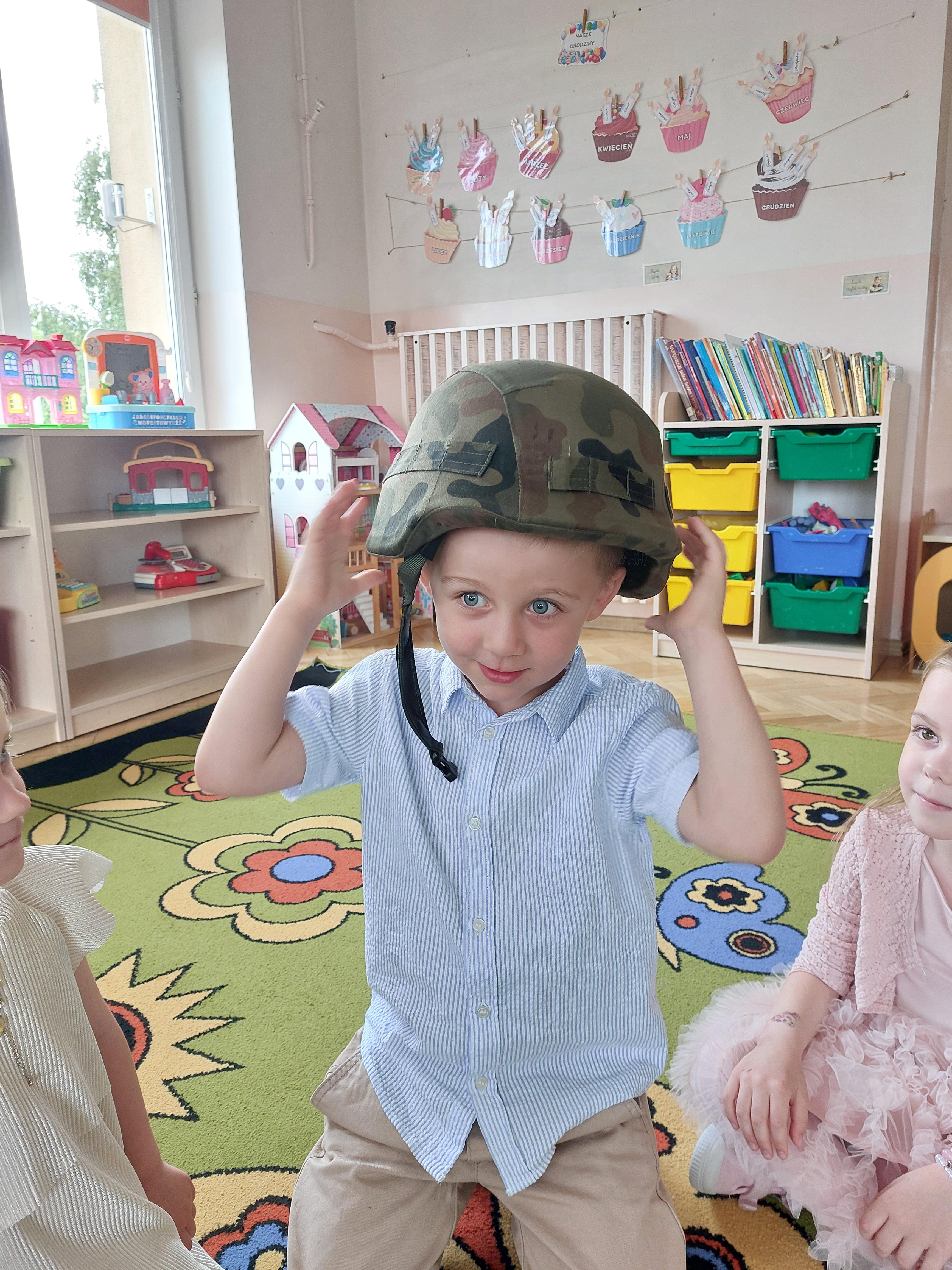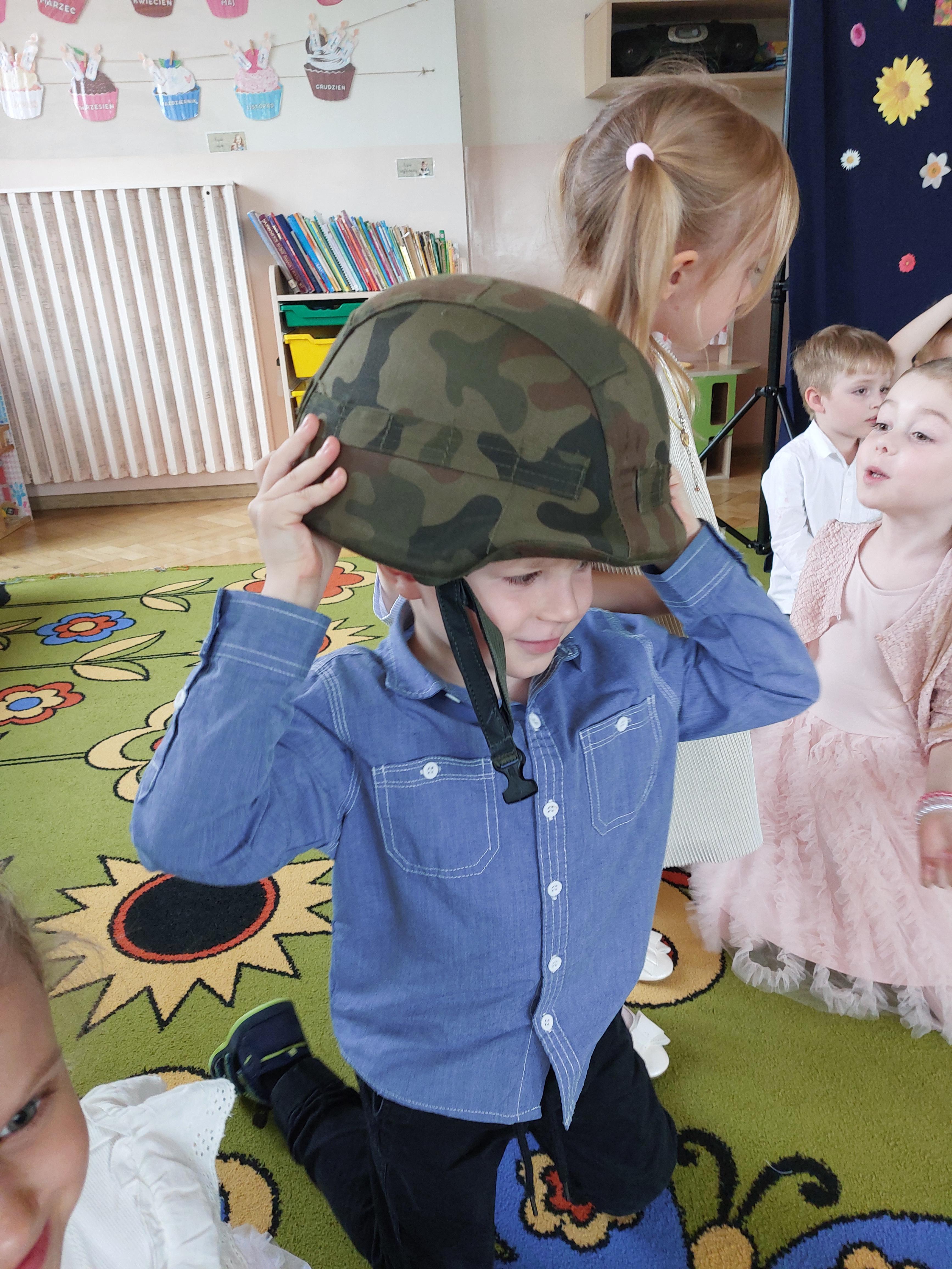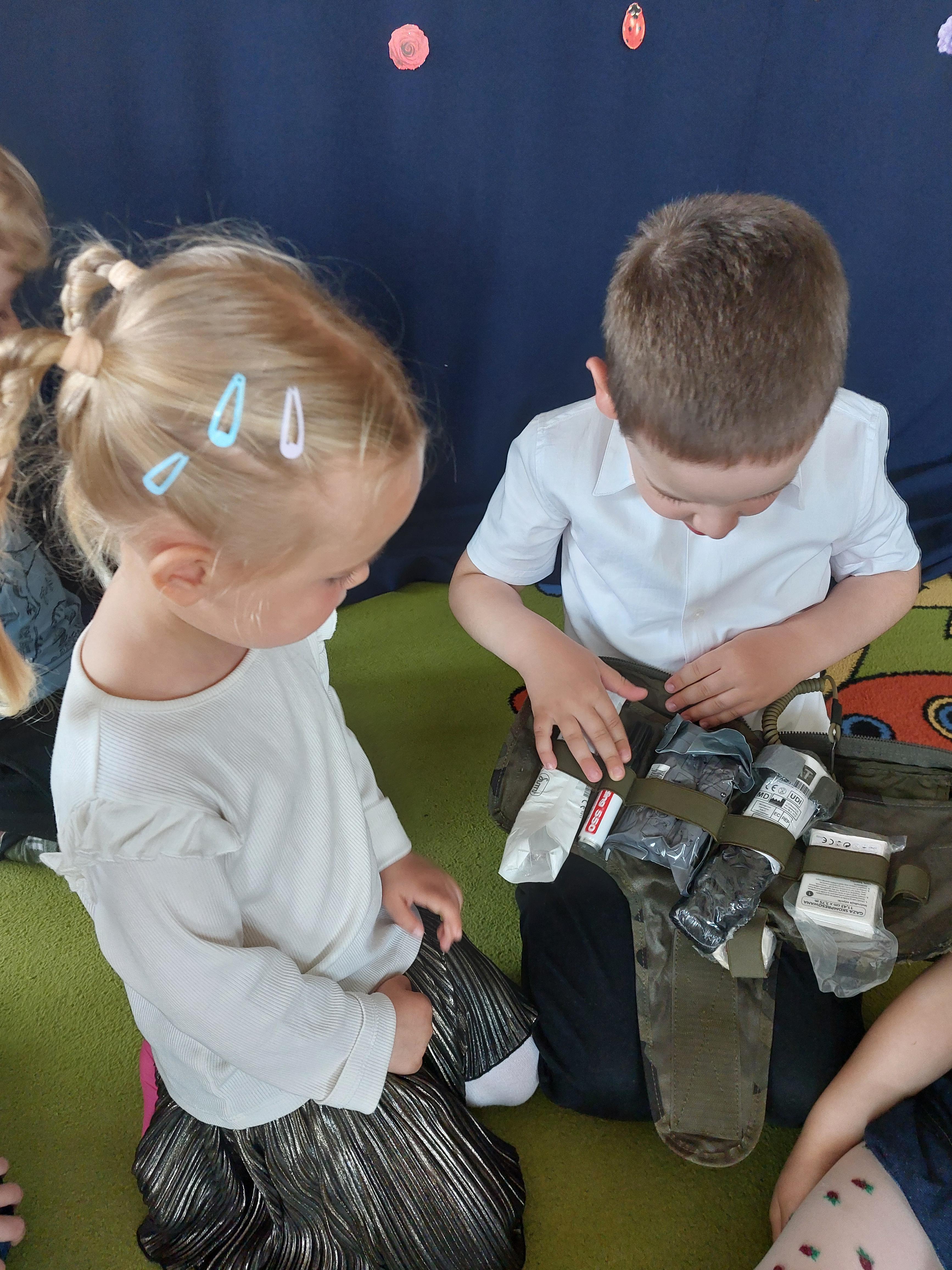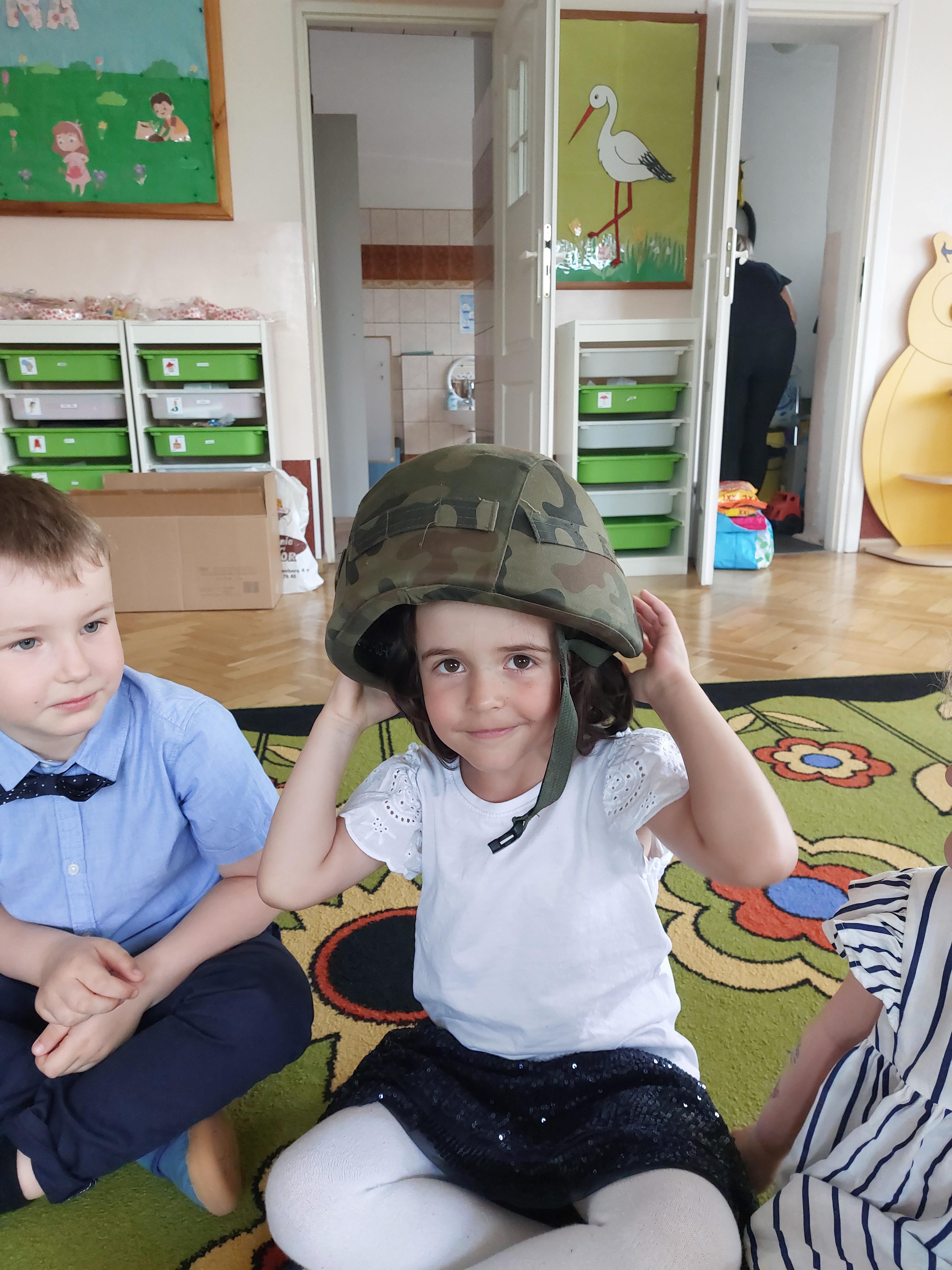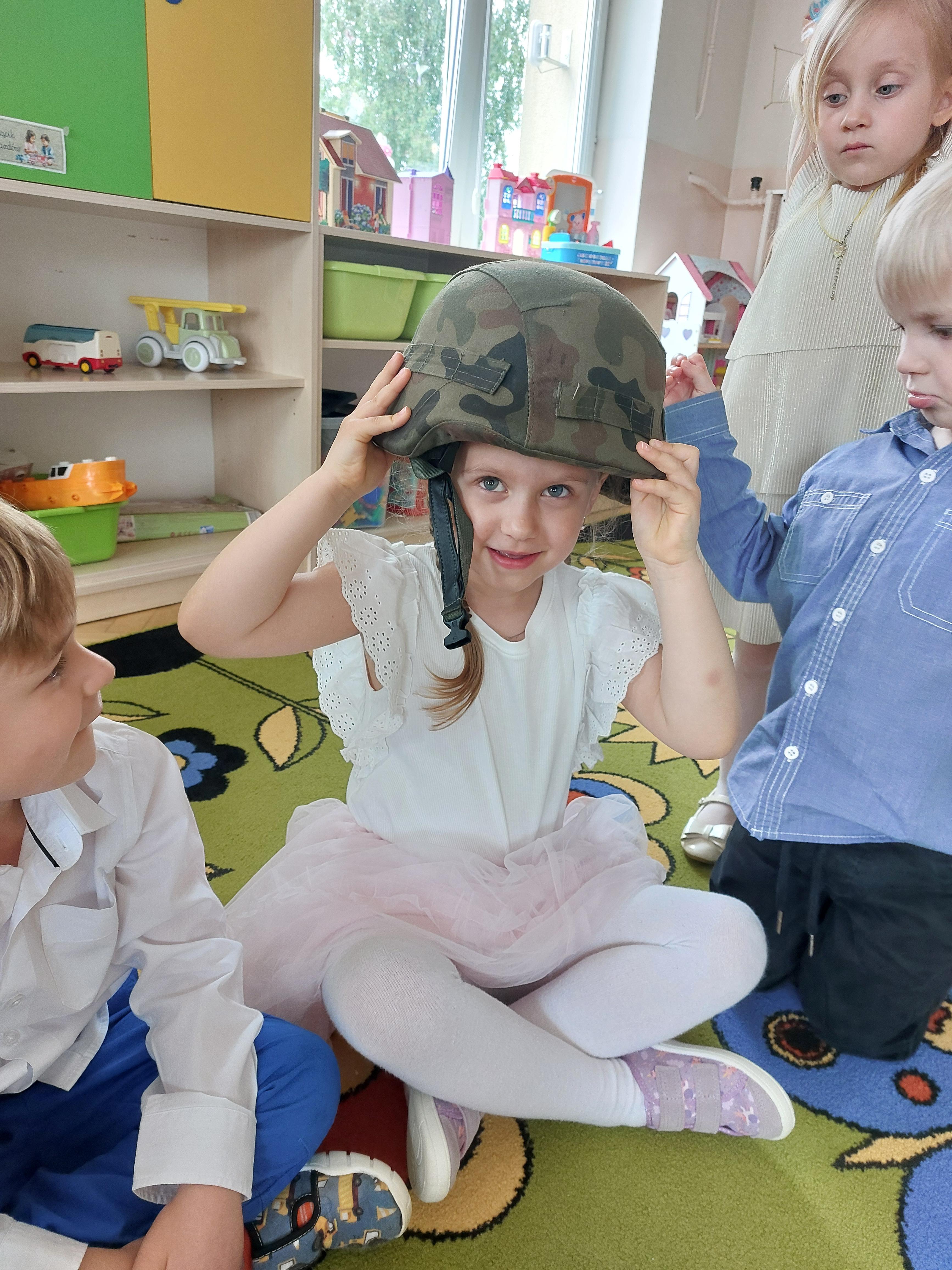 W dniu 5.06 nasze przedszkole odwiedził żołnierz z 49 Bazy Lotniczej w Pruszczu Gdańskim. Przy pomocy fantoma zaprezentował nam, jak przeprowadza się pierwszą pomoc, opowiedział nam o swojej pracy i pokazał przedmioty z wyposażenia, które posiada każdy żołnierz. Chętne dzieci mogły przymierzyć nawet prawdziwy wojskowy hełm! To nietypowe spotkanie wzbudziło wśród dzieci wiele emocji, a pytaniom nie było końca.