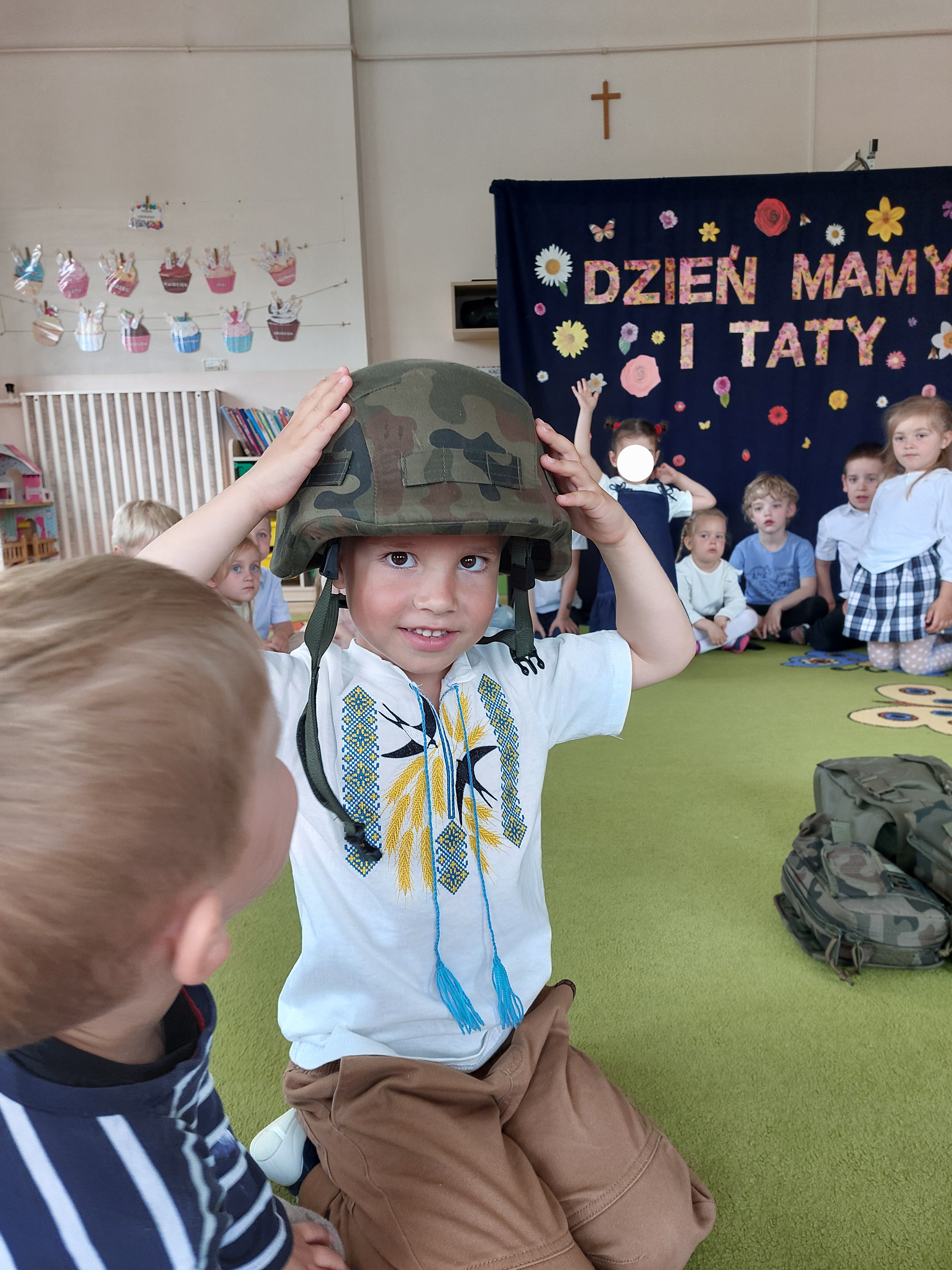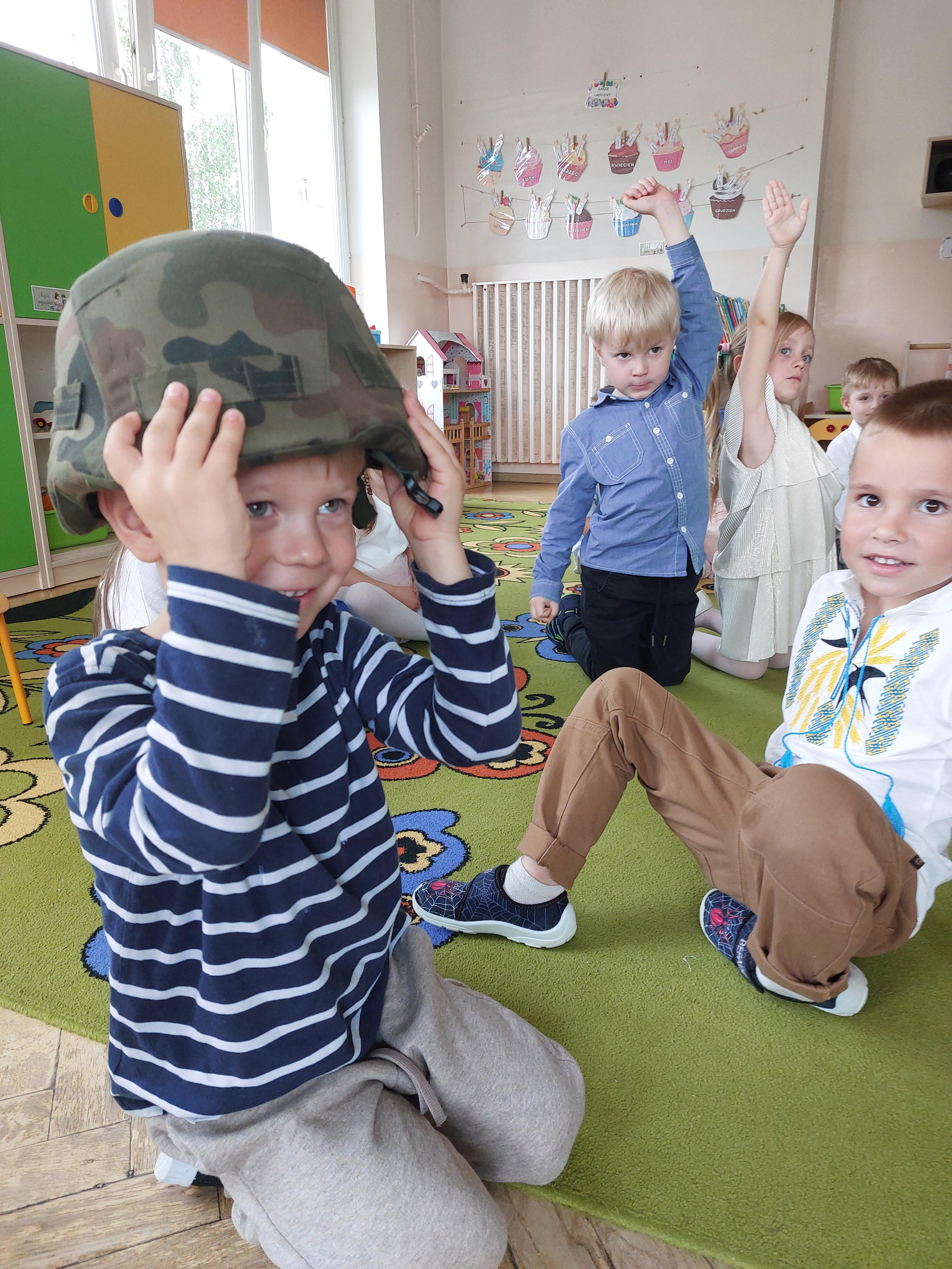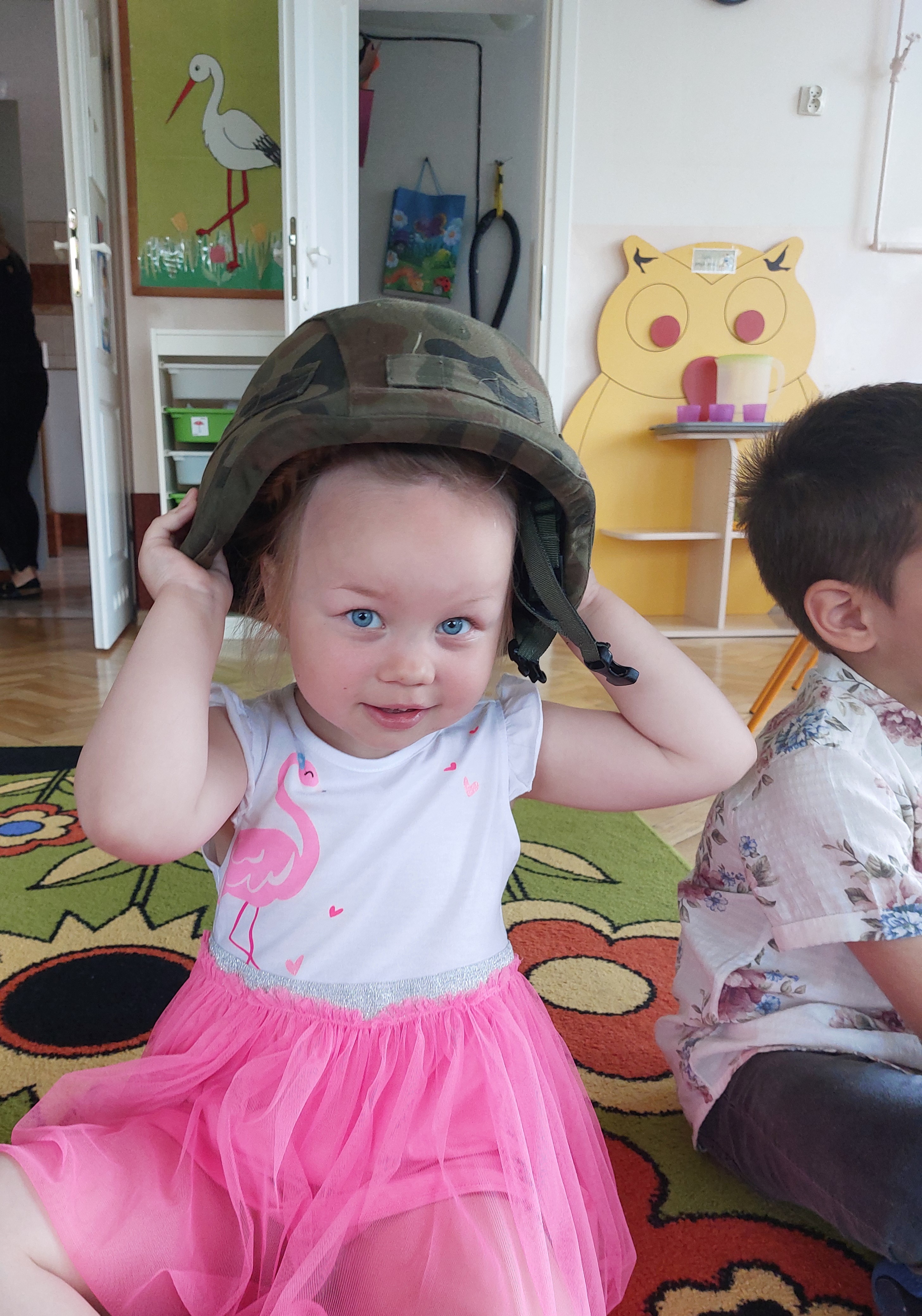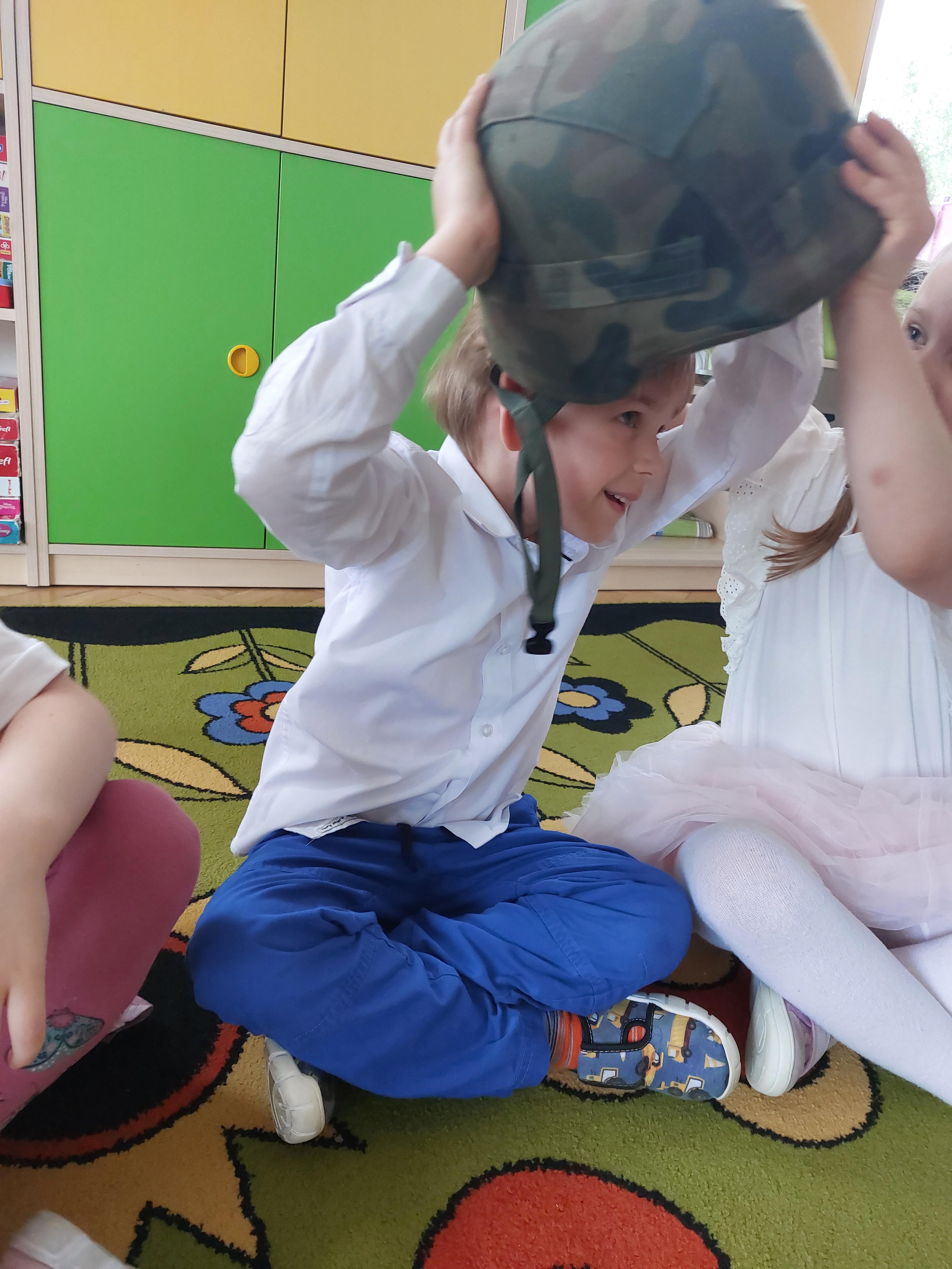 W dniu 5.06 nasze przedszkole odwiedził żołnierz z 49 Bazy Lotniczej w Pruszczu Gdańskim. Przy pomocy fantoma zaprezentował nam, jak przeprowadza się pierwszą pomoc, opowiedział nam o swojej pracy i pokazał przedmioty z wyposażenia, które posiada każdy żołnierz. Chętne dzieci mogły przymierzyć nawet prawdziwy wojskowy hełm! To nietypowe spotkanie wzbudziło wśród dzieci wiele emocji, a pytaniom nie było końca.
