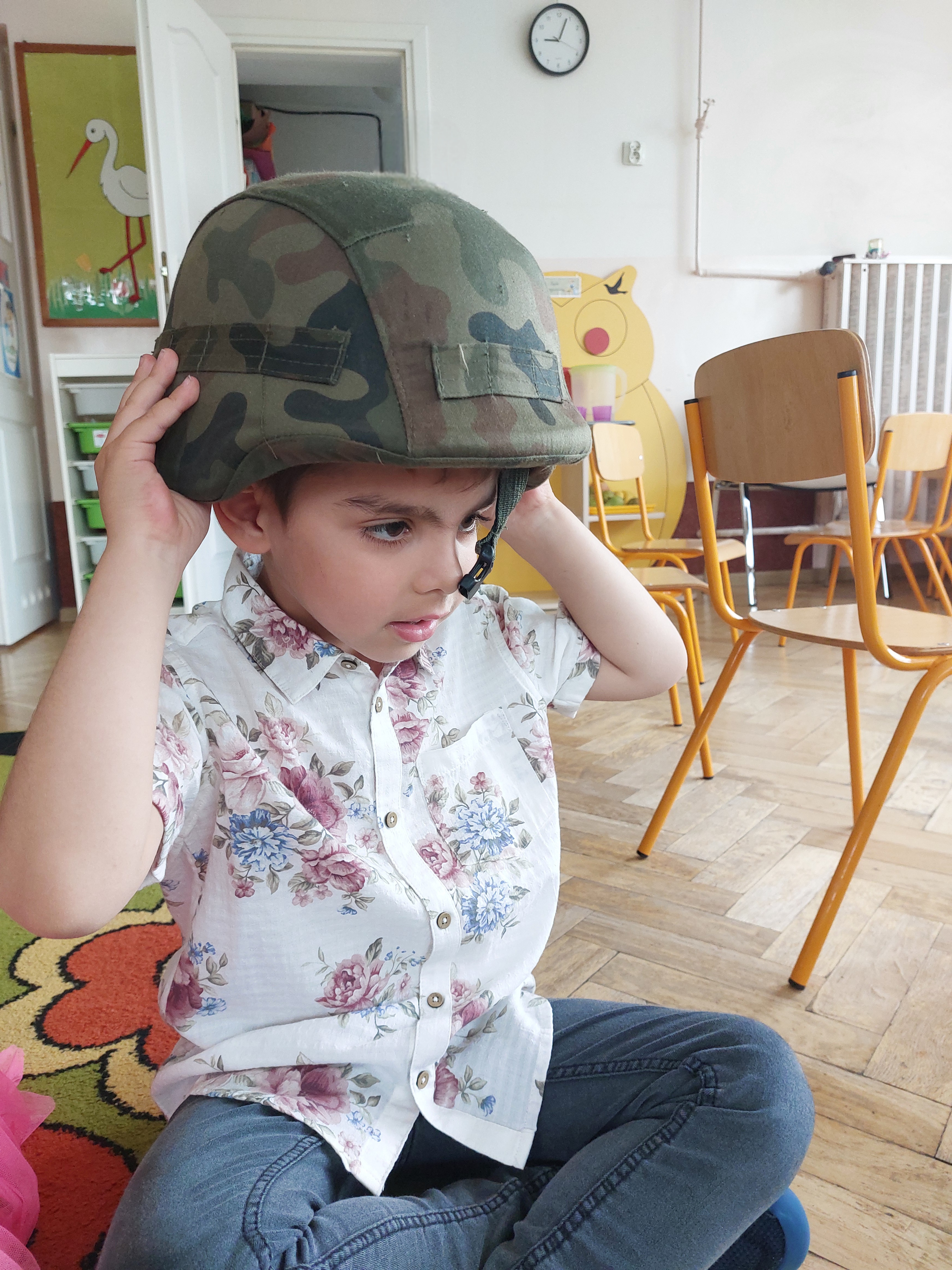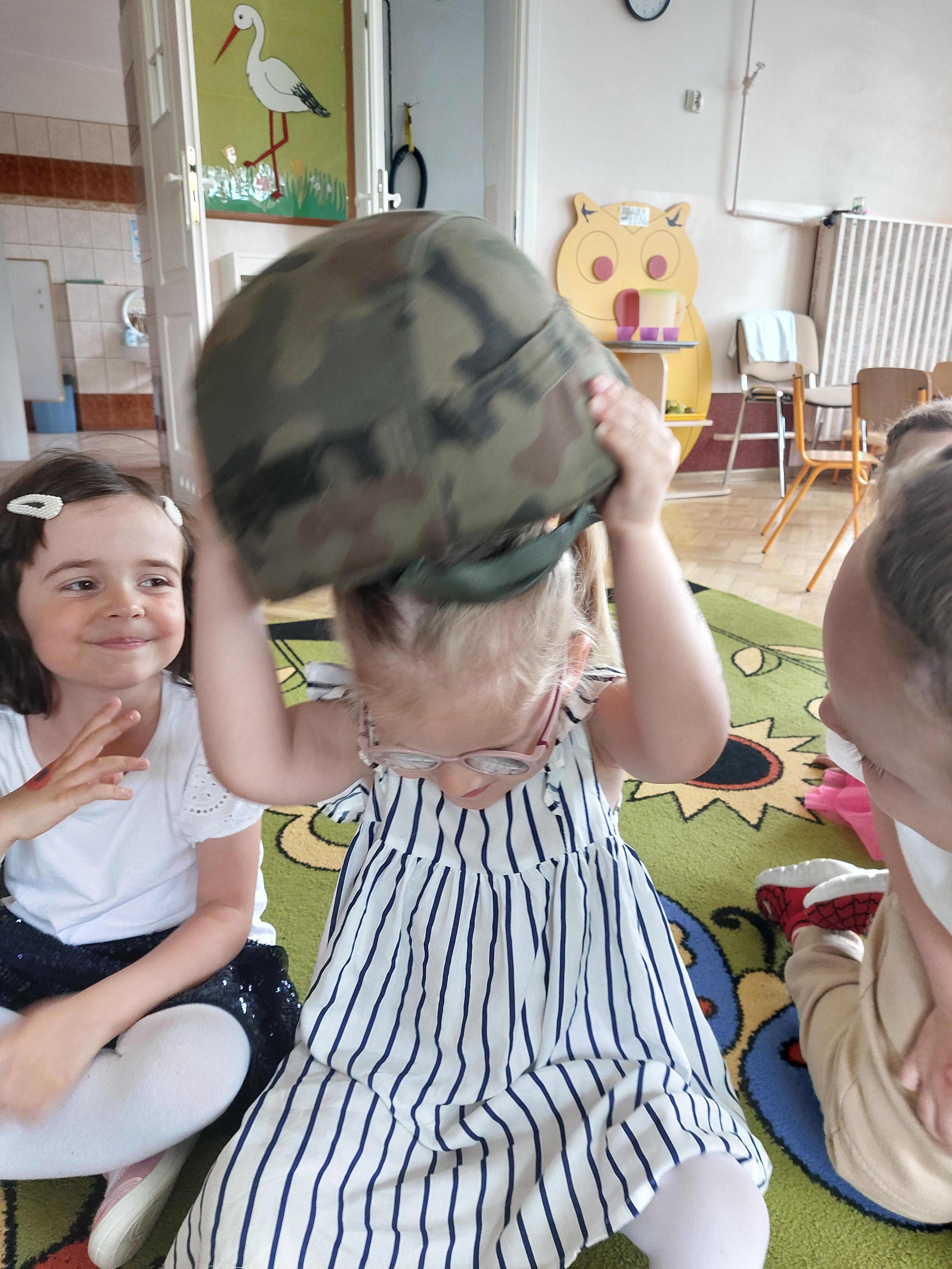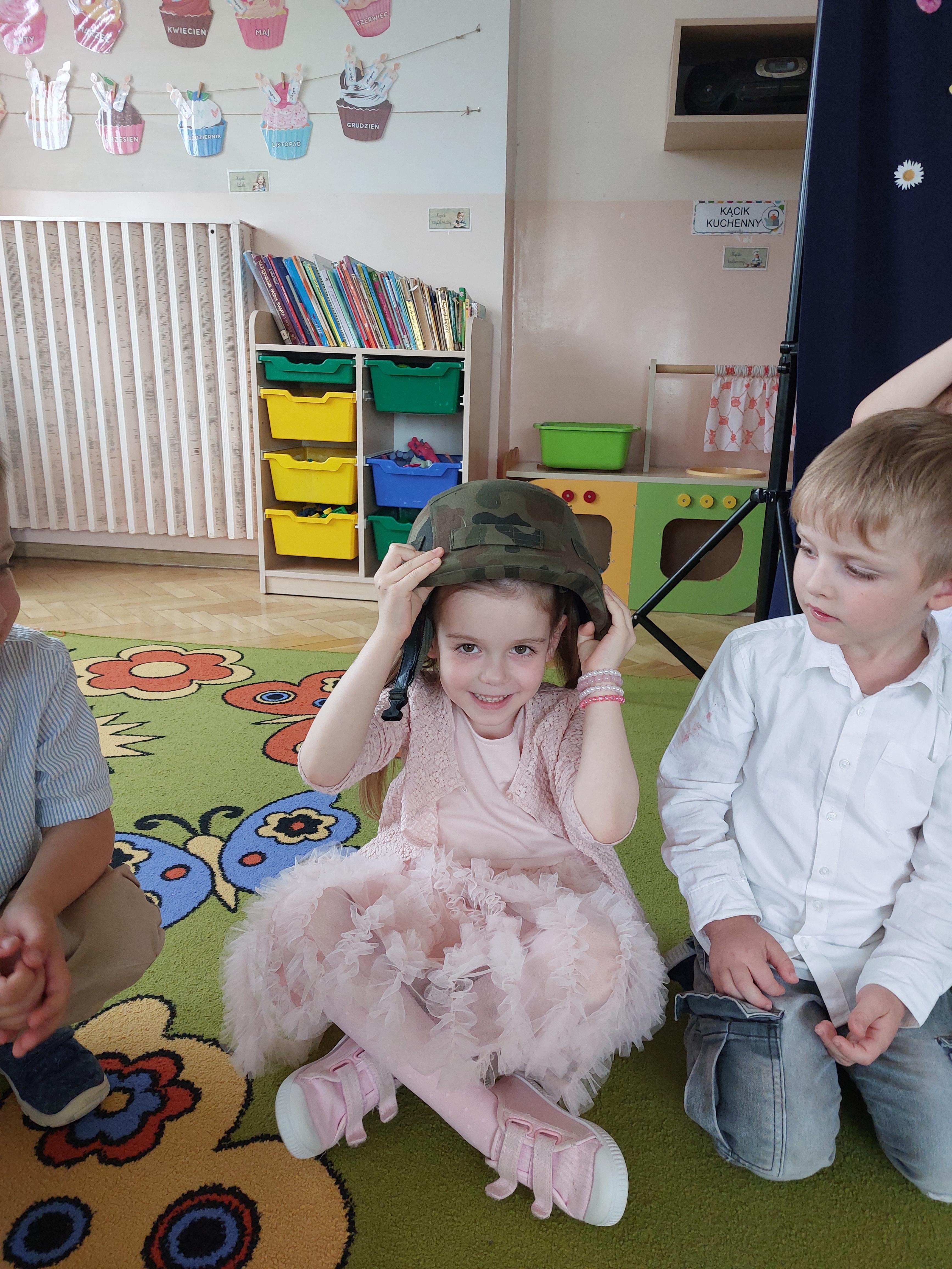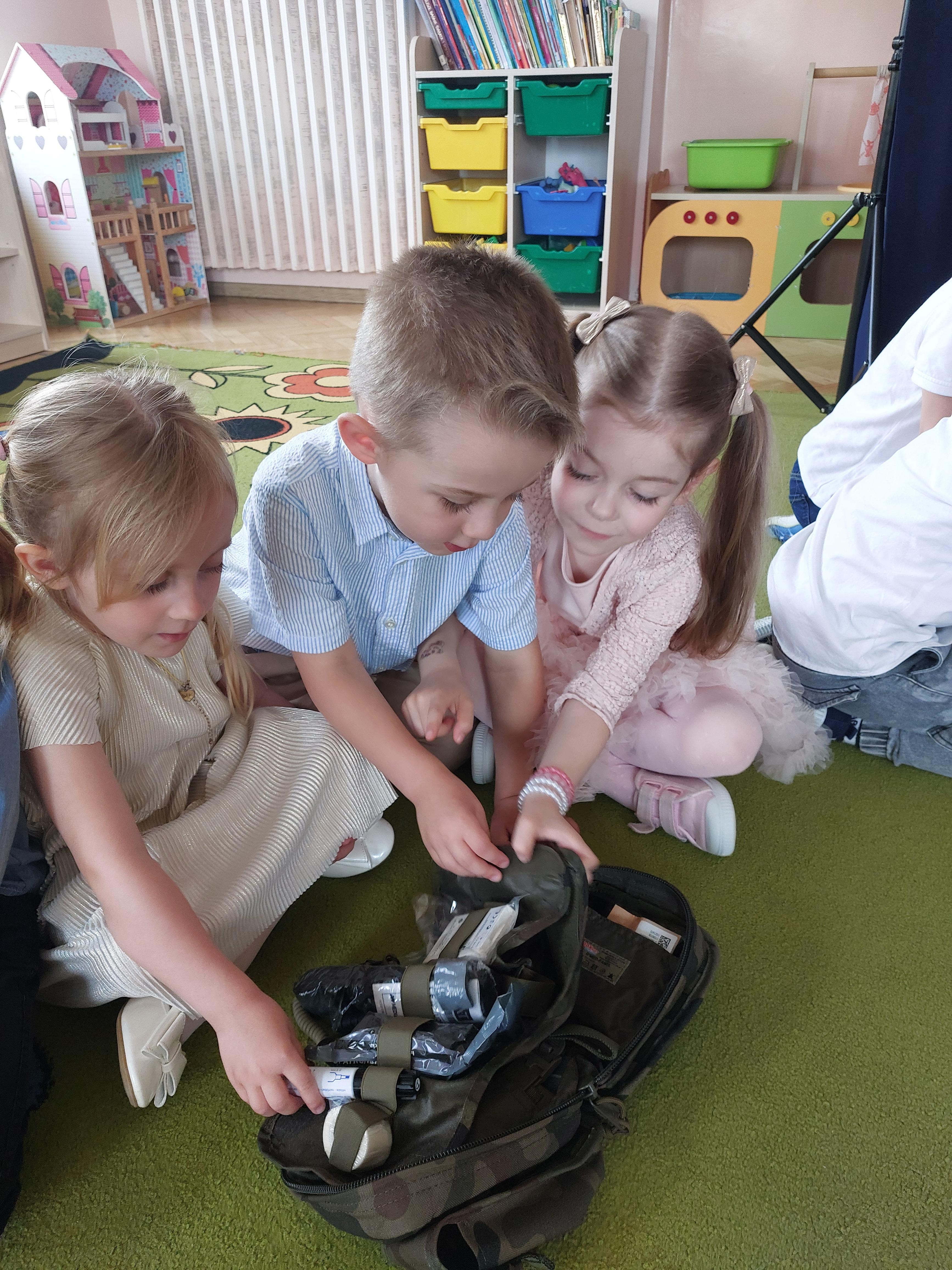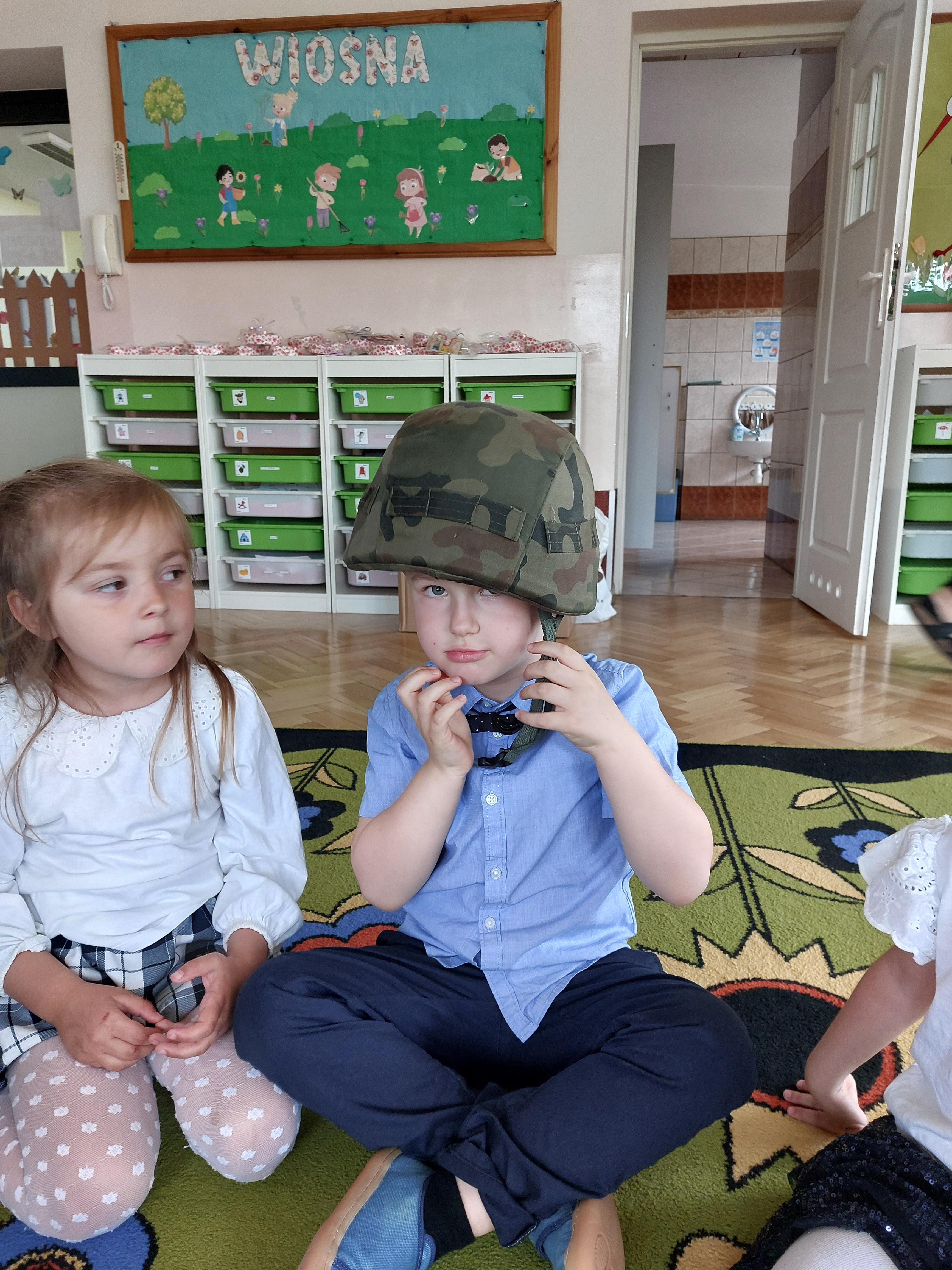W dniu 5.06 nasze przedszkole odwiedził żołnierz z 49 Bazy Lotniczej w Pruszczu Gdańskim. Przy pomocy fantoma zaprezentował nam, jak przeprowadza się pierwszą pomoc, opowiedział nam o swojej pracy i pokazał przedmioty z wyposażenia, które posiada każdy żołnierz. Chętne dzieci mogły przymierzyć nawet prawdziwy wojskowy hełm! To nietypowe spotkanie wzbudziło wśród dzieci wiele emocji, a pytaniom nie było końca.