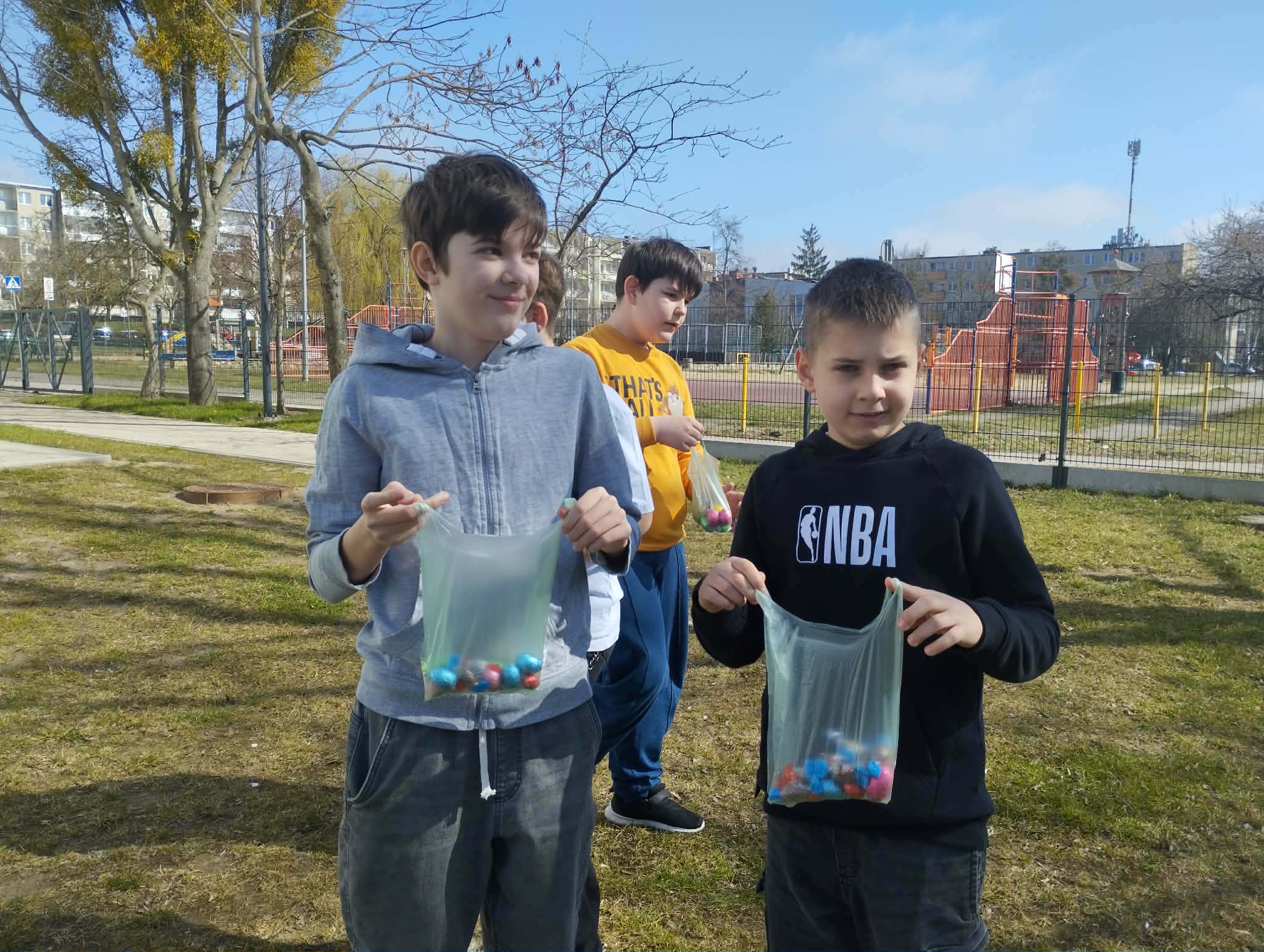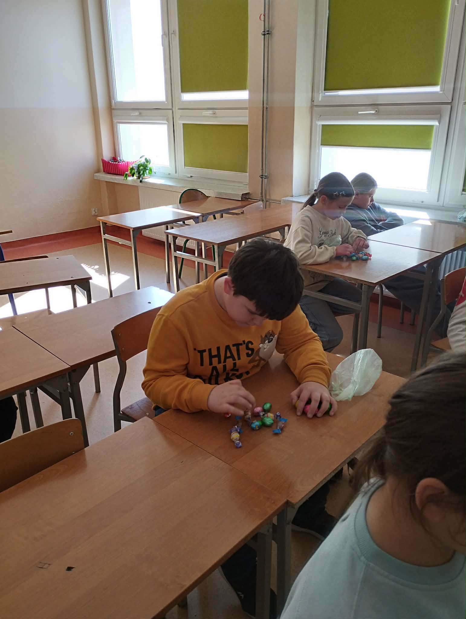 W środę przed świętami w 4b odbyło się poszukiwanie wilekanocnych jajek. Nad całością akcji czuwała Pani Basia - pomysłodawca i sędzia sprawiedliwy w jednym:). Były emocje i pyszny finał nie tylko dla zwycięzców. A Zajączkowi dziękujemy za piękne upominki!