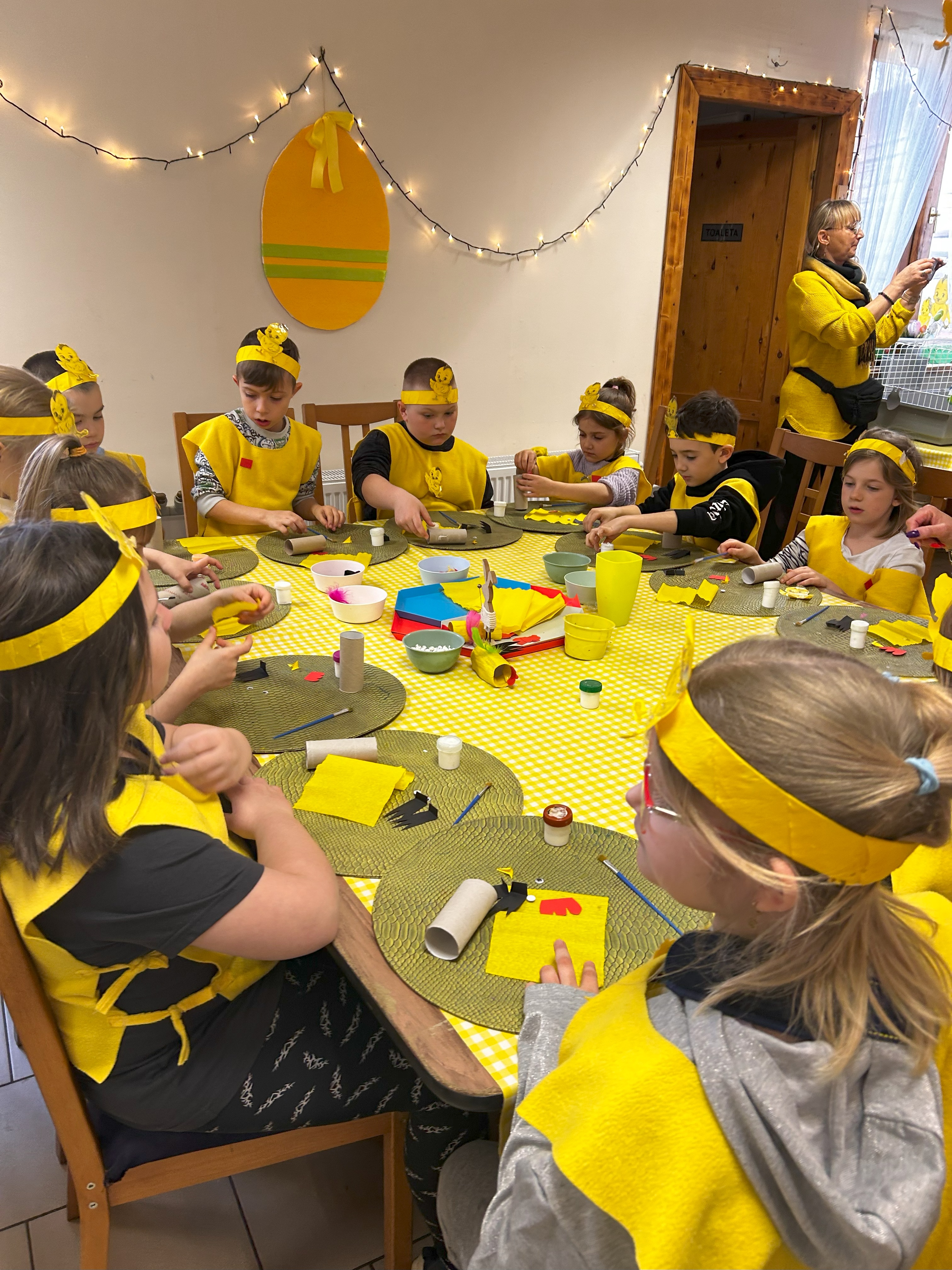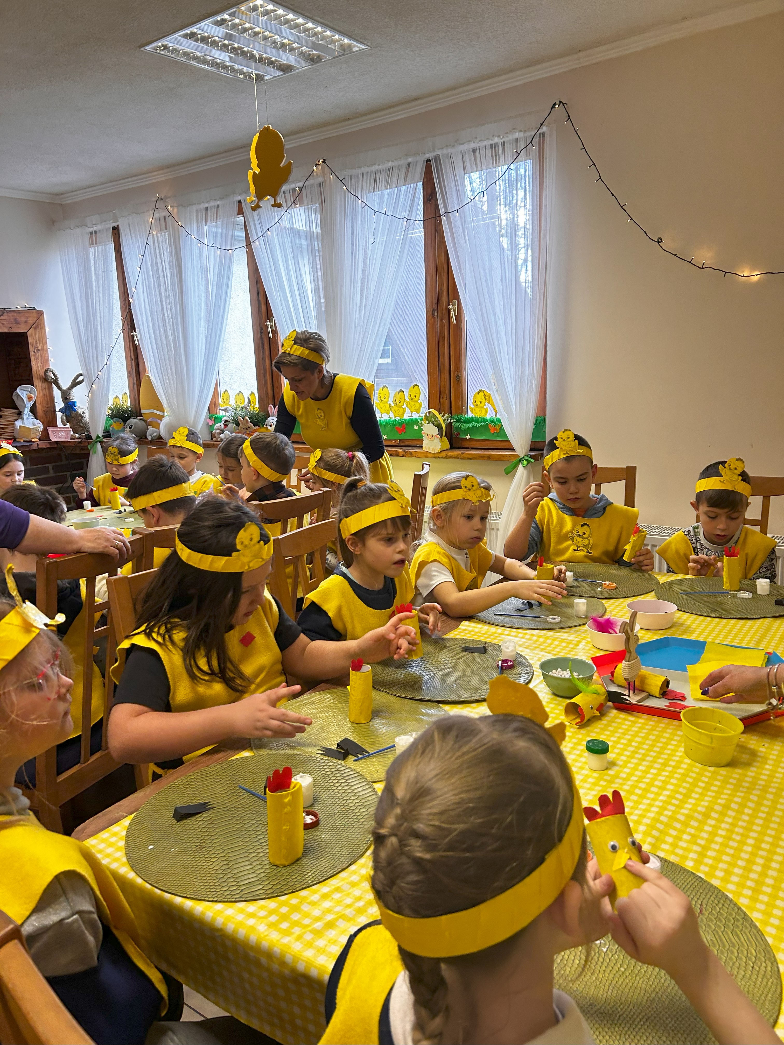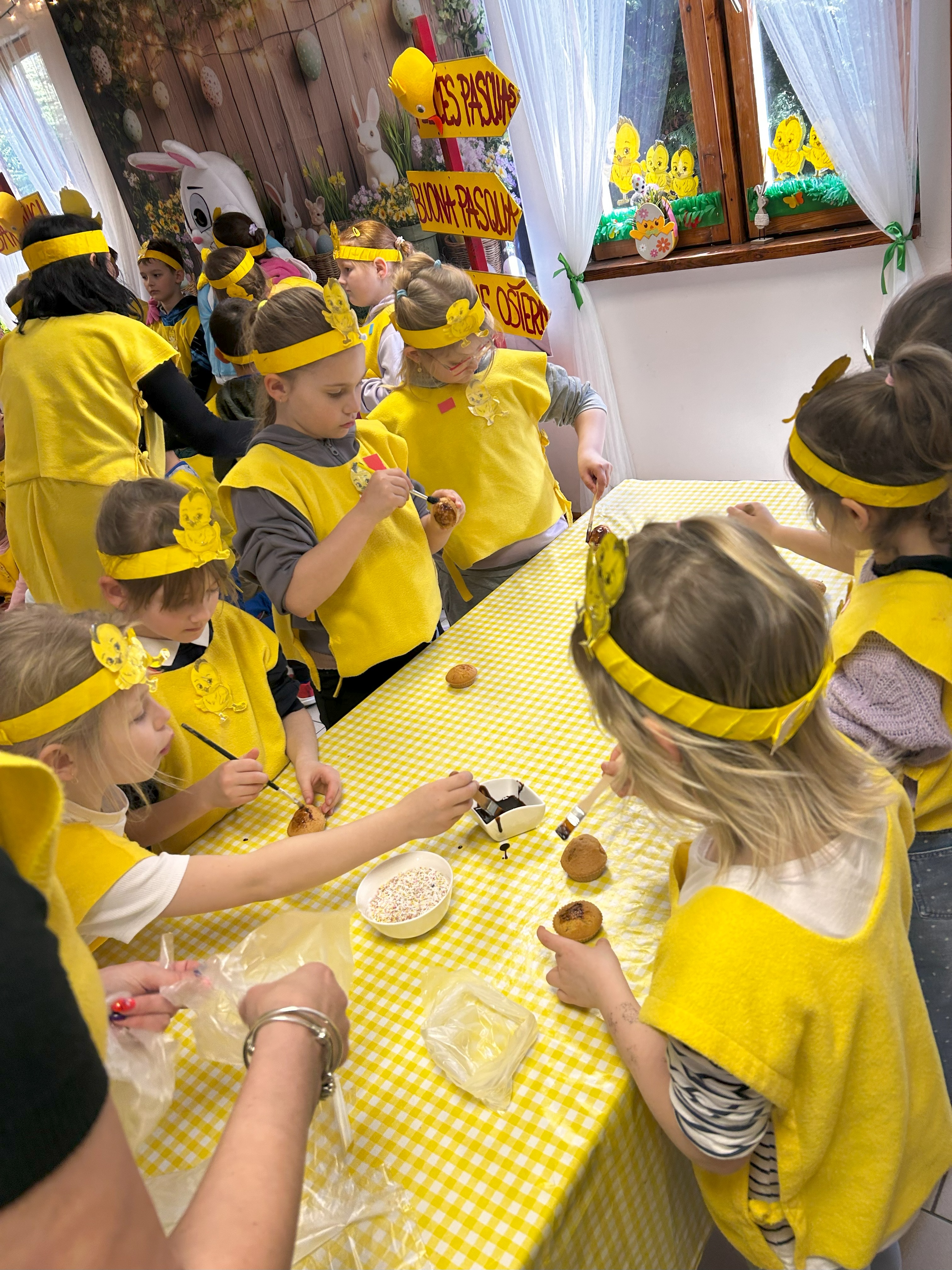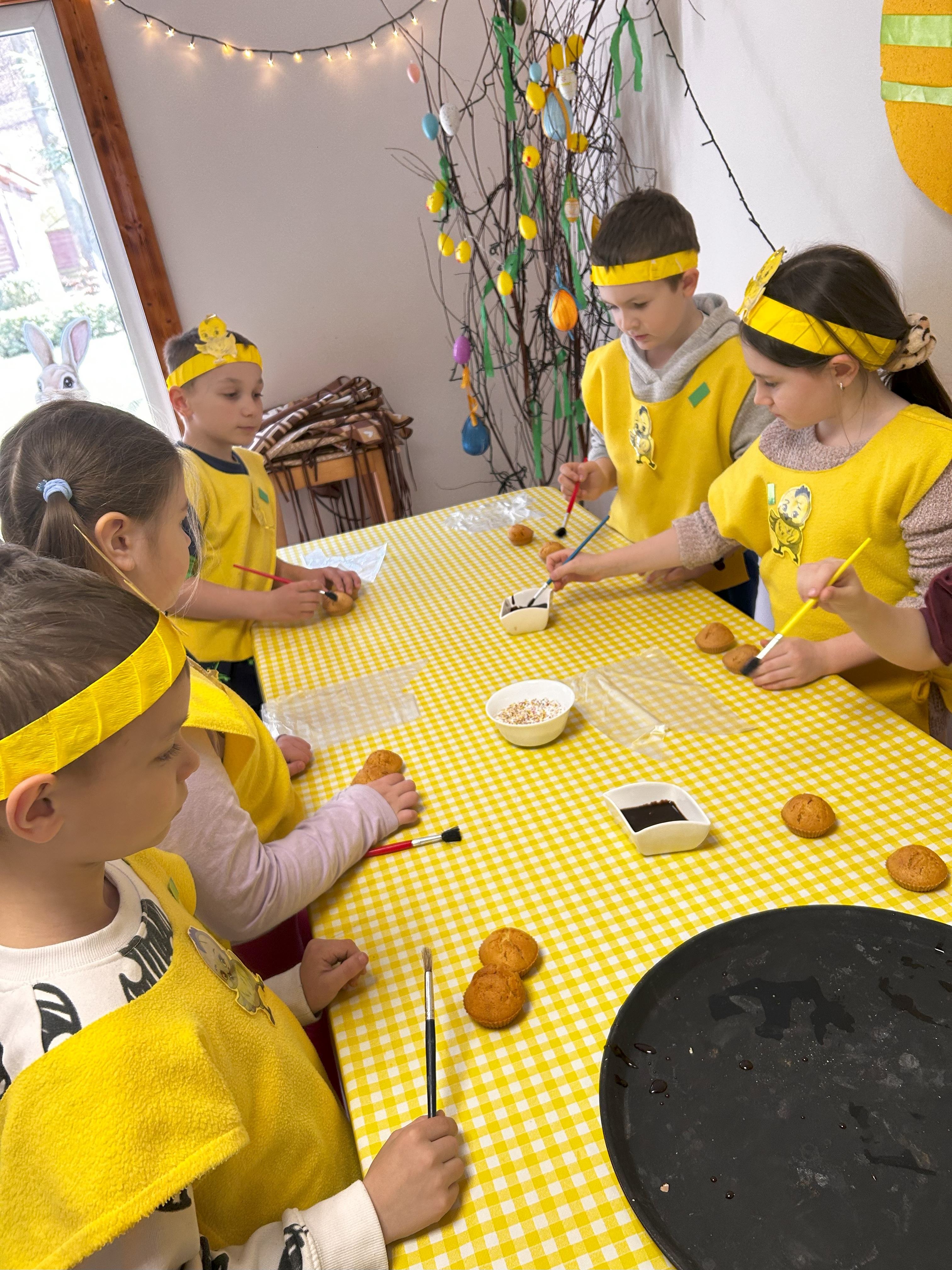 Uczniowie klasy 1 d uczestniczyli w wyjątkowych warsztatach wielkanocnych! W ramach wydarzenia dzieci poznały tradycyjne techniki zdobienia pisanek, tworzyły własnoręczne dekoracje oraz przygotowały świąteczne babeczki. To była doskonała okazja, by spędzić czas w kreatywnej atmosferze, rozwijać swoje umiejętności plastyczne i cieszyć się wspólnym świętowaniem. Podczas warsztatów uczniowie mogli zobaczyć i wziąć na ręce prawdziwe małe kurczaczki oraz wiekanocne króliczki.