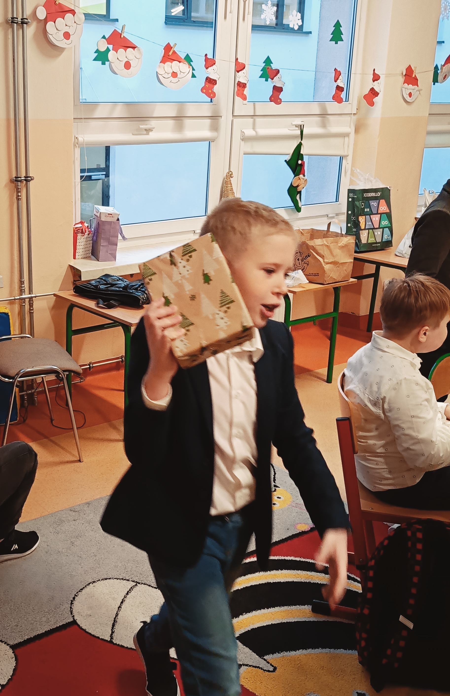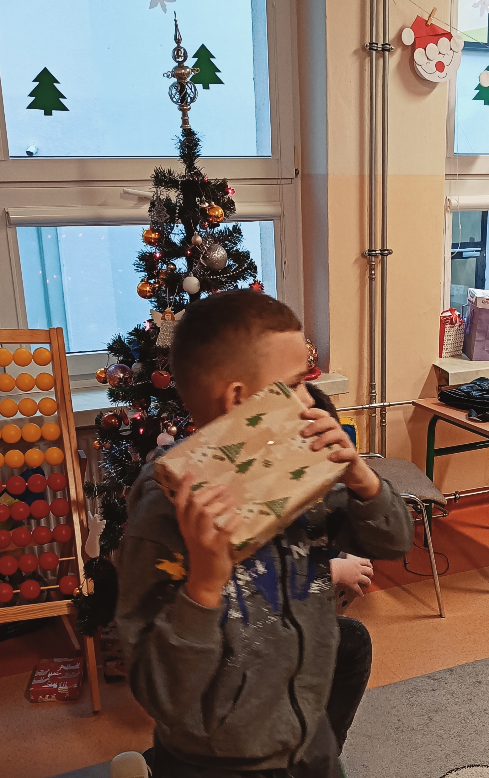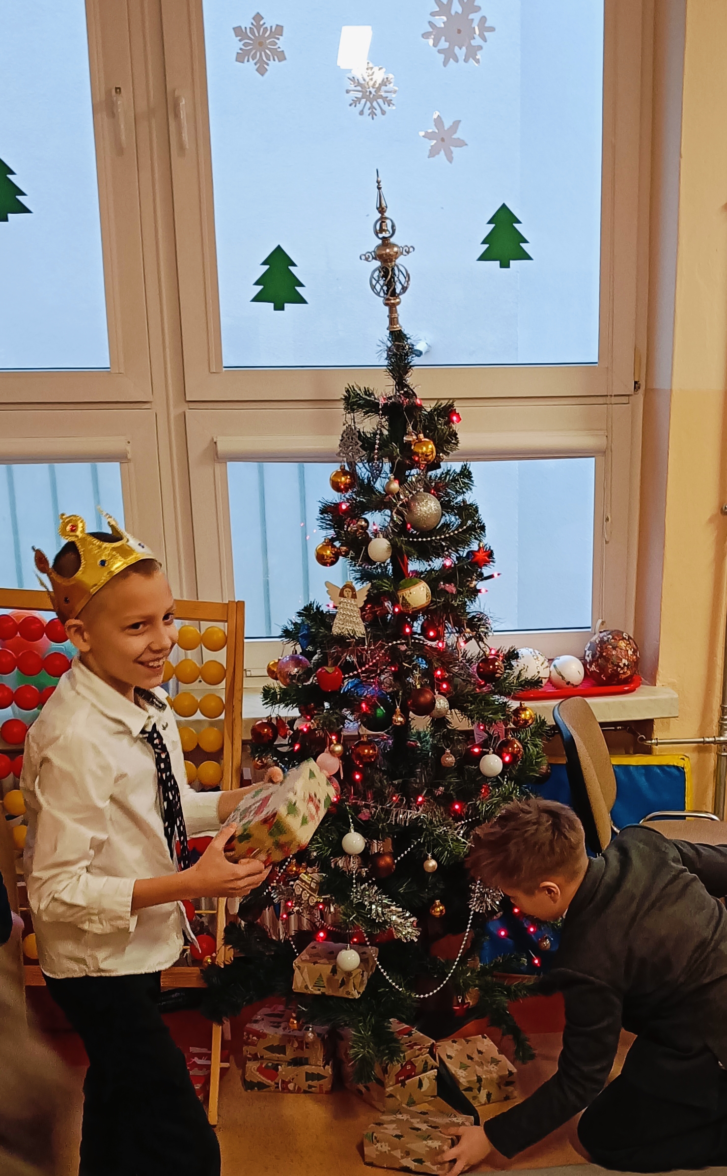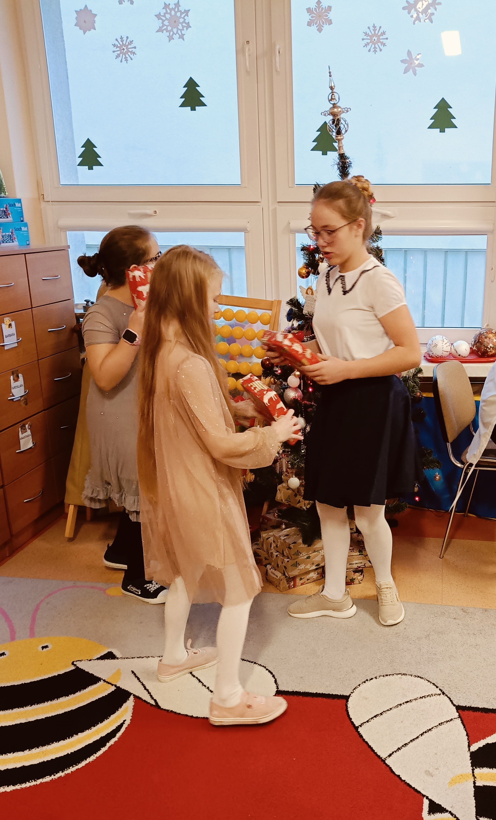 Uczniowie sami udekorowali stół wigilijny, na którym czekał słodki poczęstunek, a pod choinką znalazły się prezenty. Dzieci wraz z wychowawczynią dzieliły się opłatkiem, składały sobie serdeczne życzenia, śpiewały kolędy i cieszyły się wręczanymi upominkami.