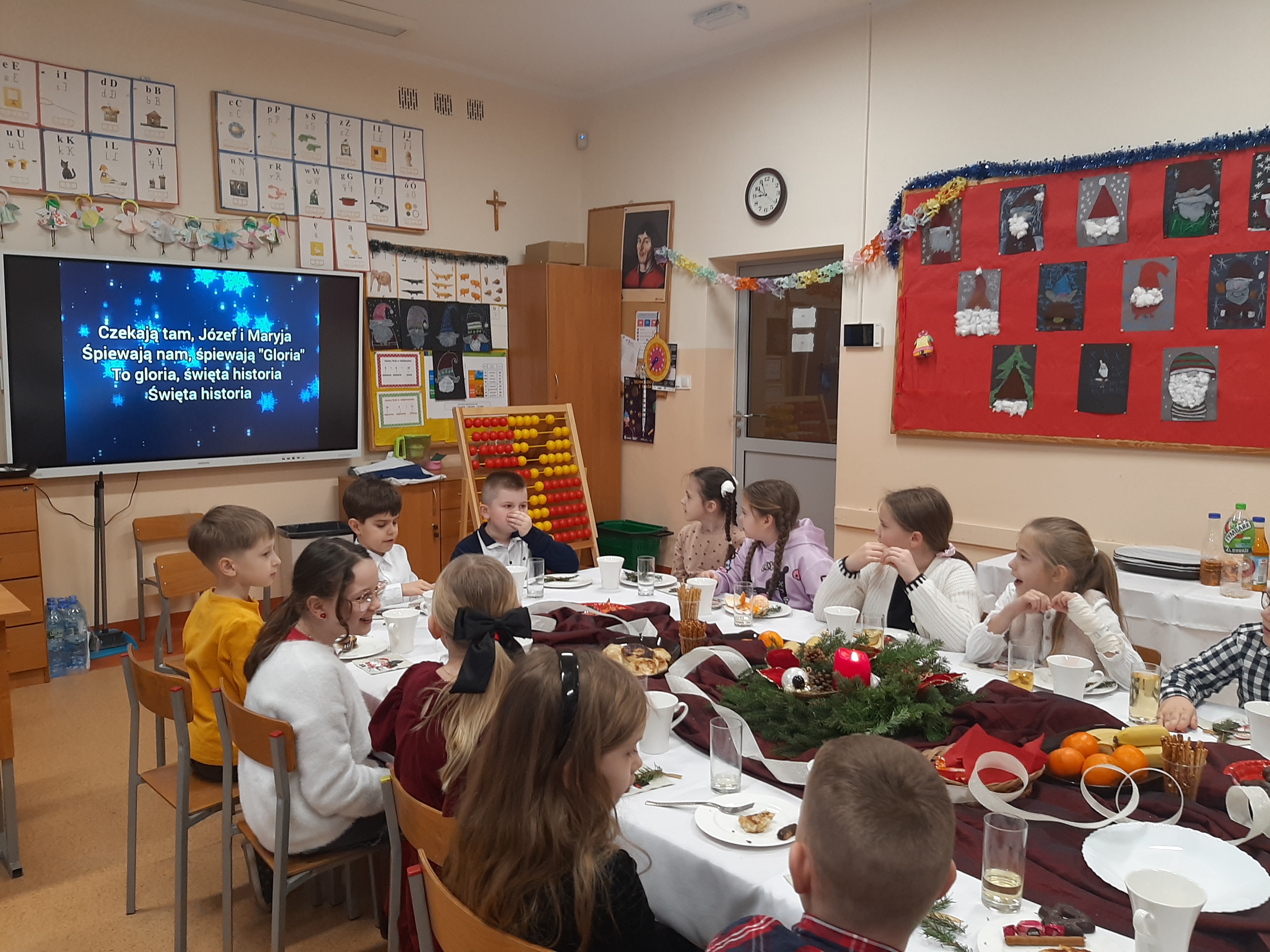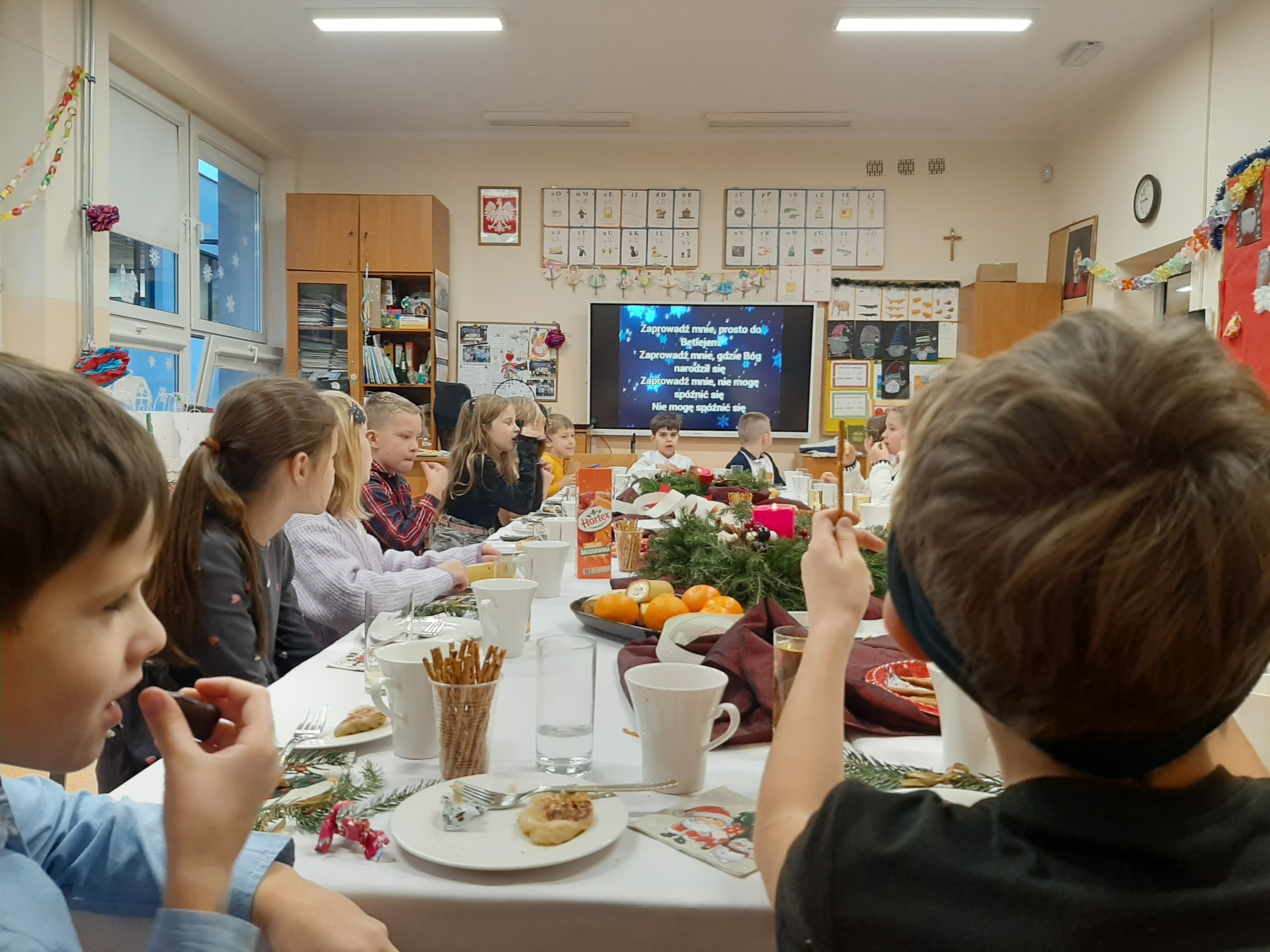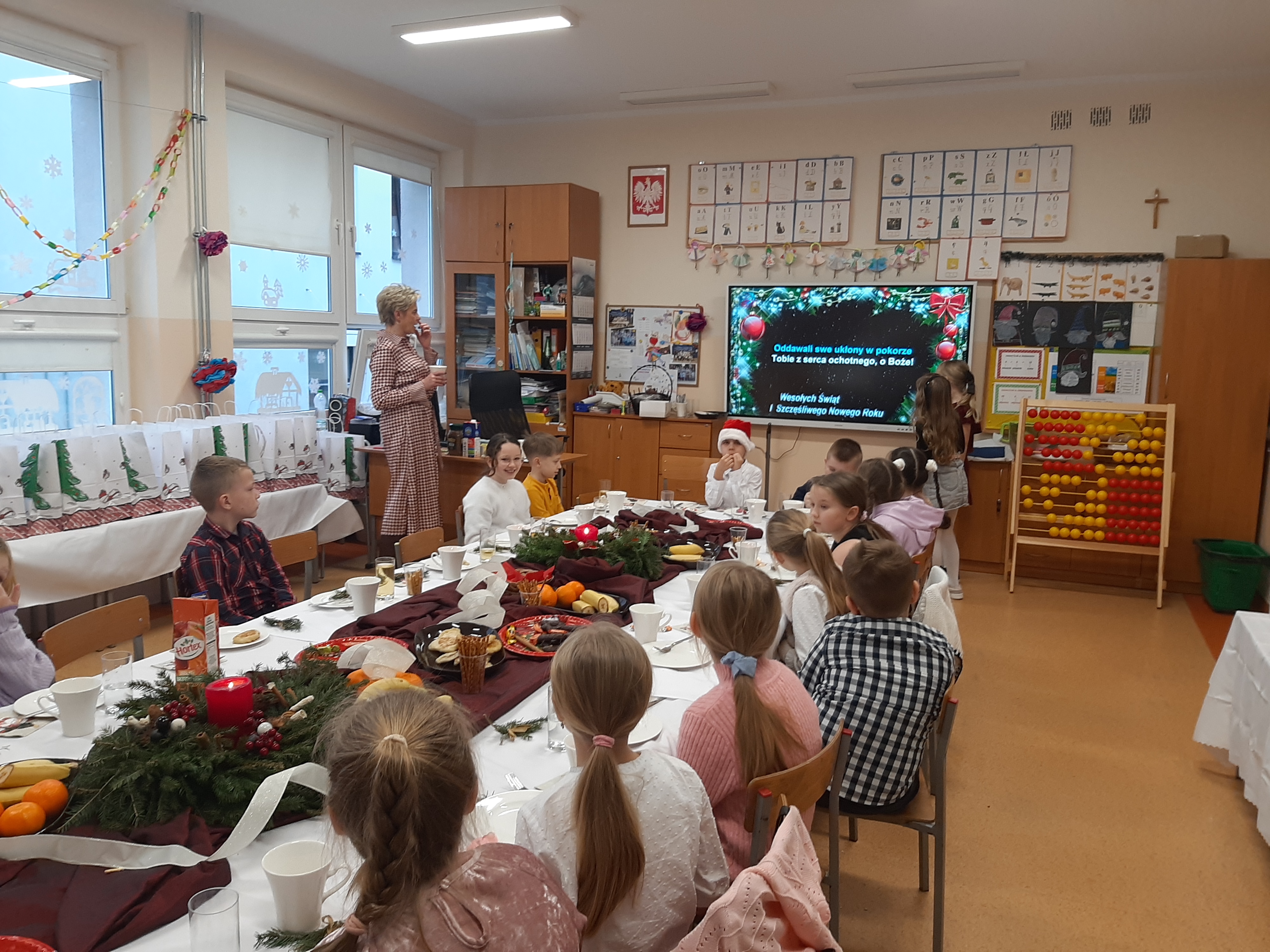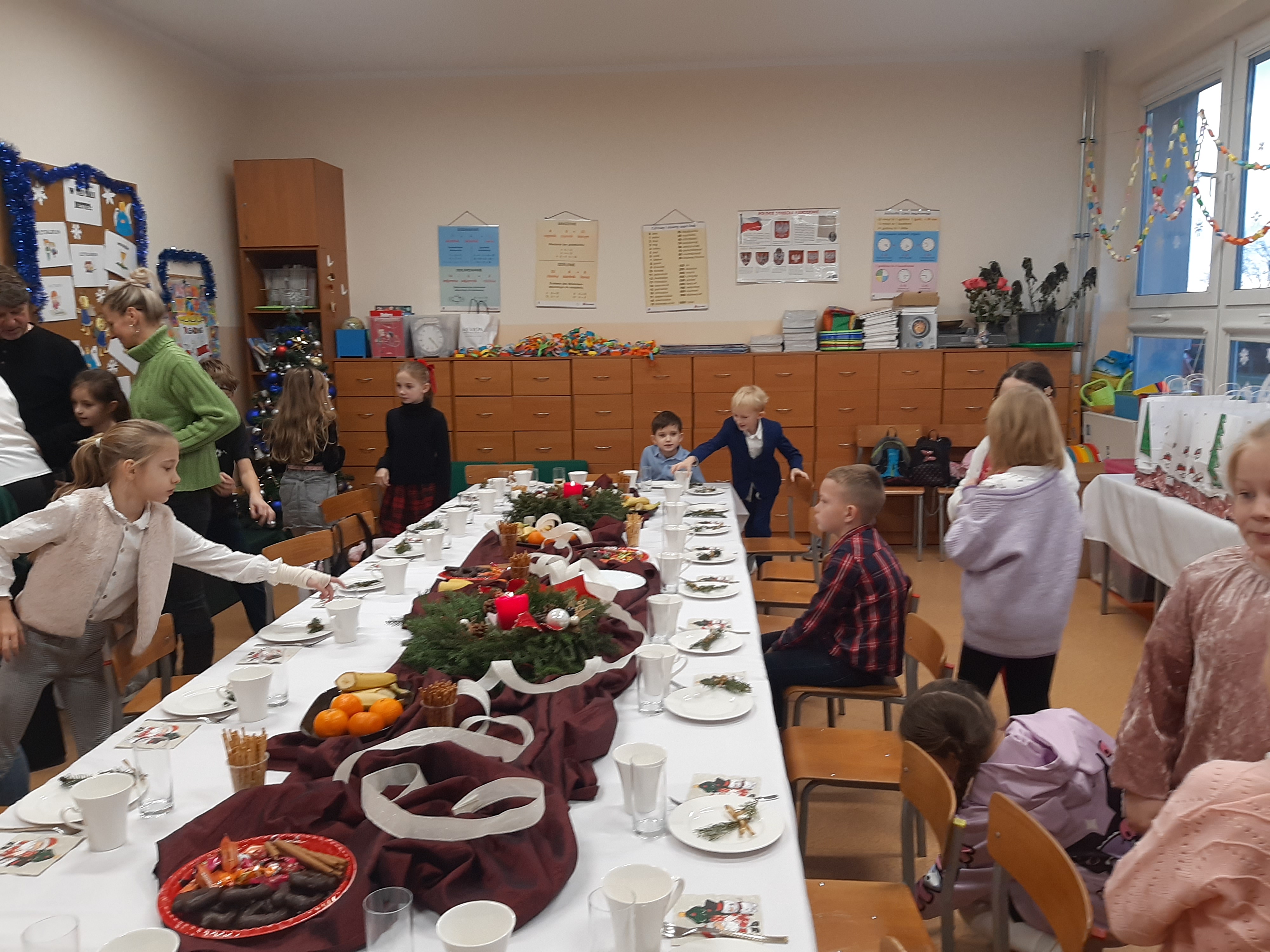 20 grudnia 2024 r. klasa 2b zsiadła do pięknie nakrytego stołu, który przygotowali rodzice uczniów. Podzieliliśmy się opłatkiem, zaśpiewaliśmy kolędy, uczniowie odpowiadali na pytania związane ze Światami Bożego Narodzenia. Podczas spotkania panowała miła, radosna atmosfera, którą zapamiętamy na długo.