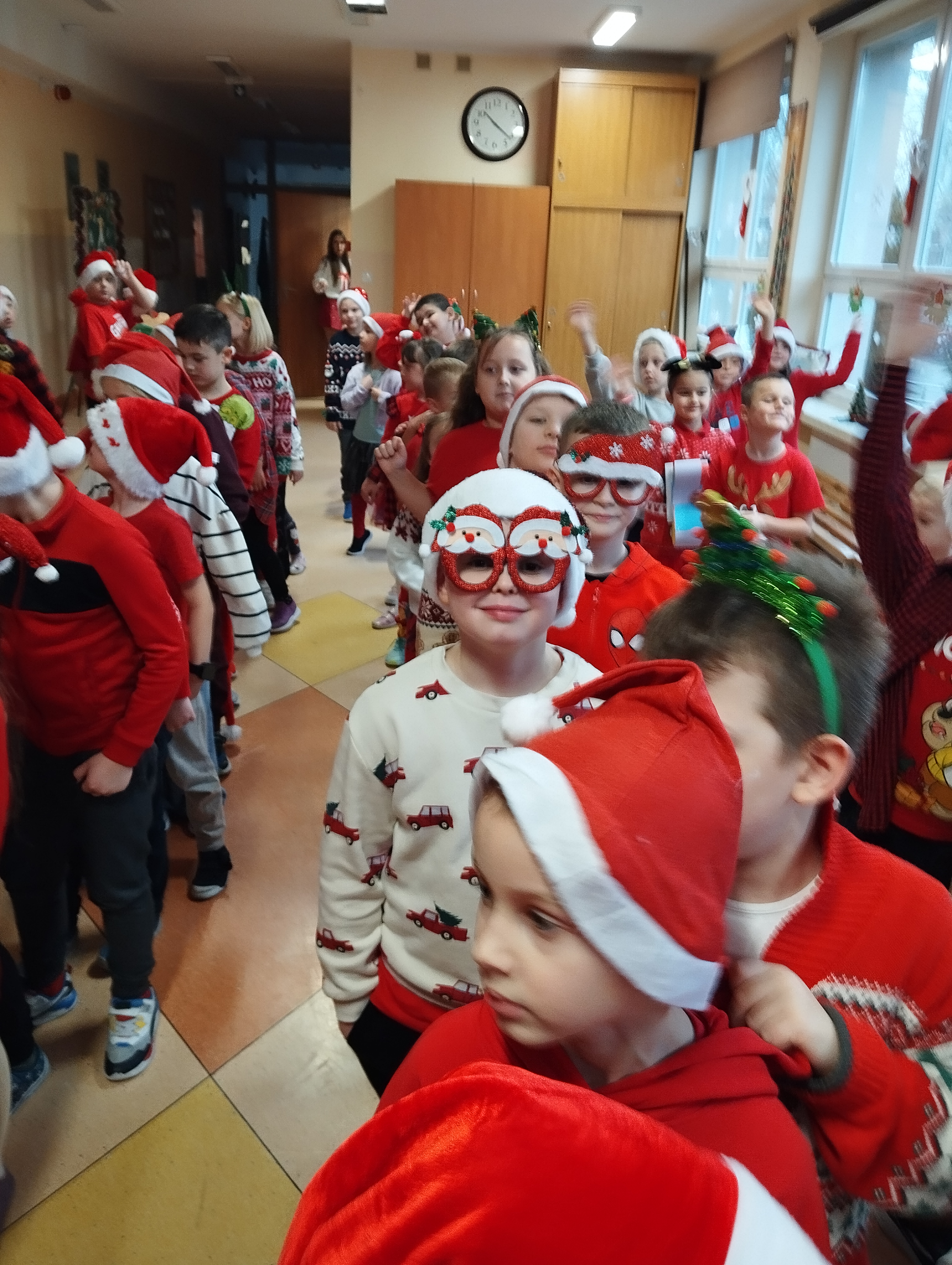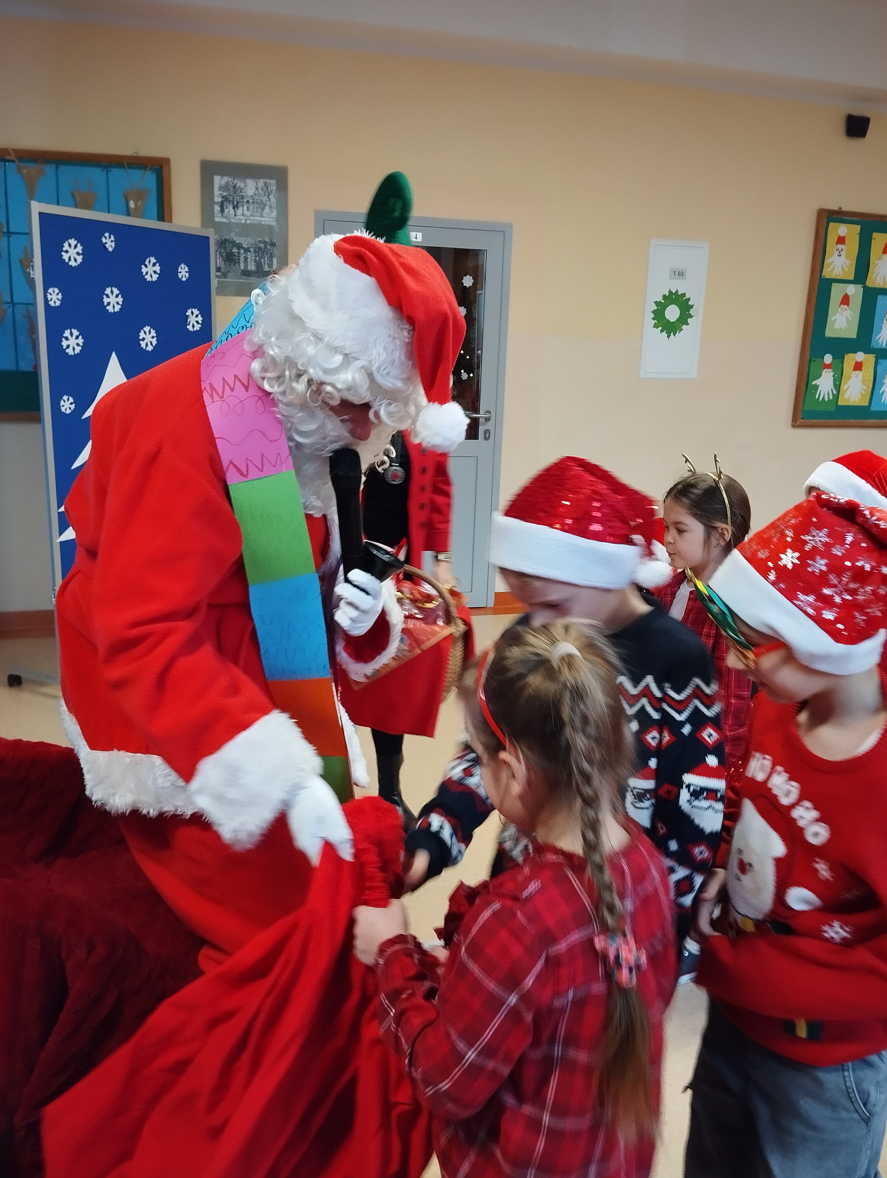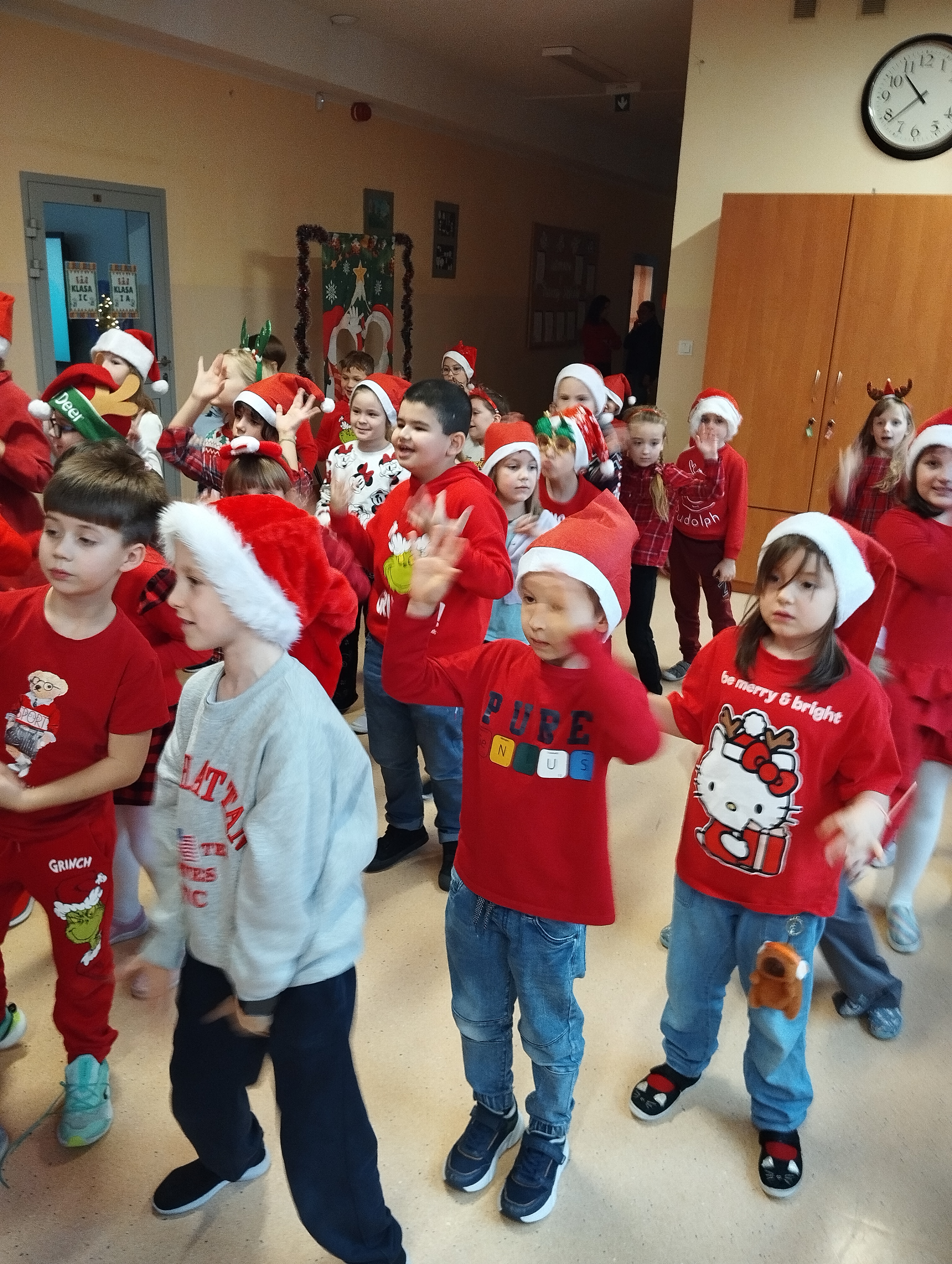5 grudnia naszą szkołę odwiedził wyjątkowy gość – Święty Mikołaj. Dzieci z niecierpliwością czekały na jego przybycie, a na tę szczególną okazję przygotowały piękny wiersz oraz radosną piosenkę. Uczniowie z ogromnym zaangażowaniem zaprezentowali swoje występy, za co zostali nagrodzeni gromkimi brawami i szerokim uśmiechem Mikołaja. Spotkanie przebiegło w serdecznej, świątecznej atmosferze i dostarczyło wszystkim wielu wzruszeń oraz radości. To był dzień pełen magii, uśmiechu i wspólnego świętowania.