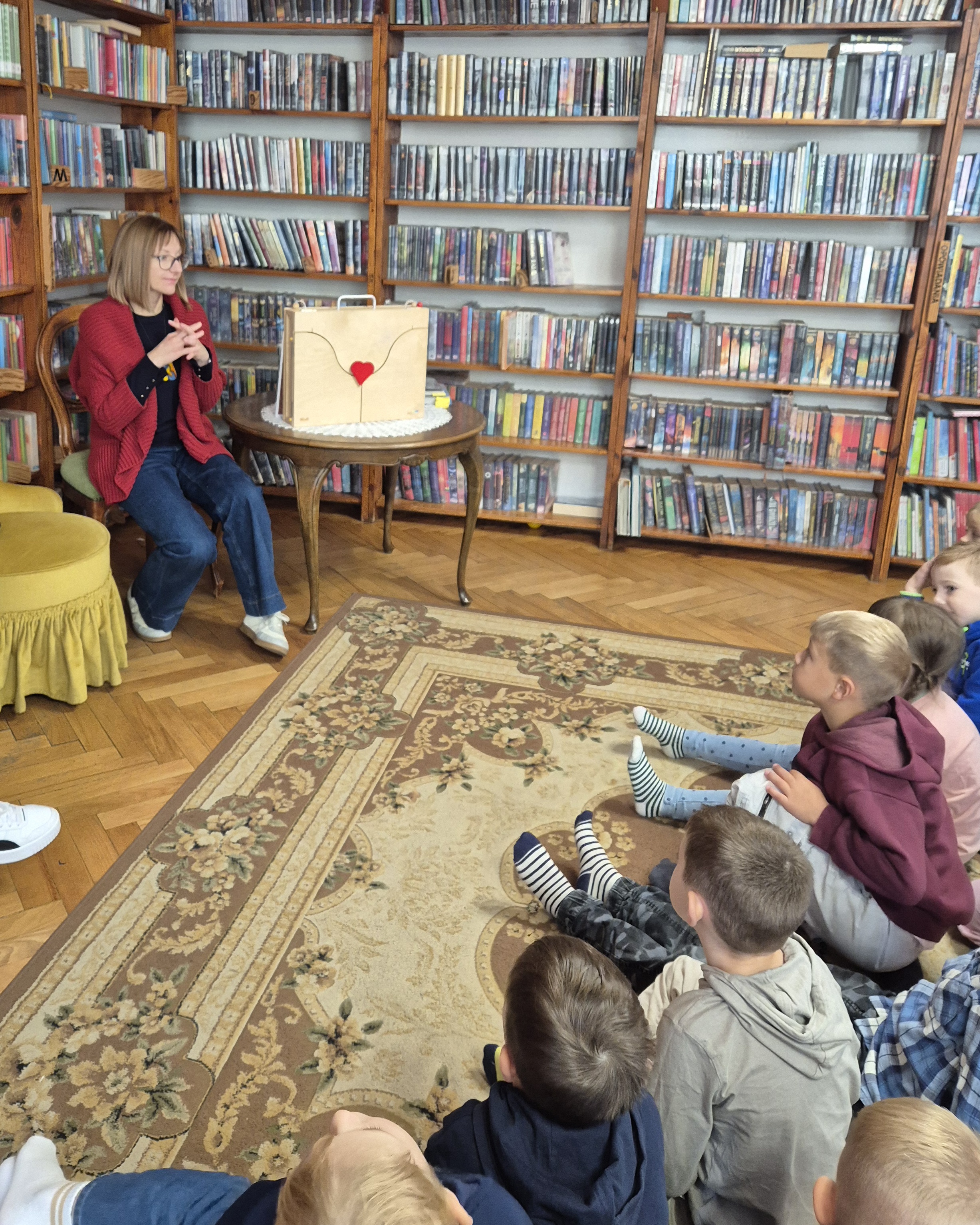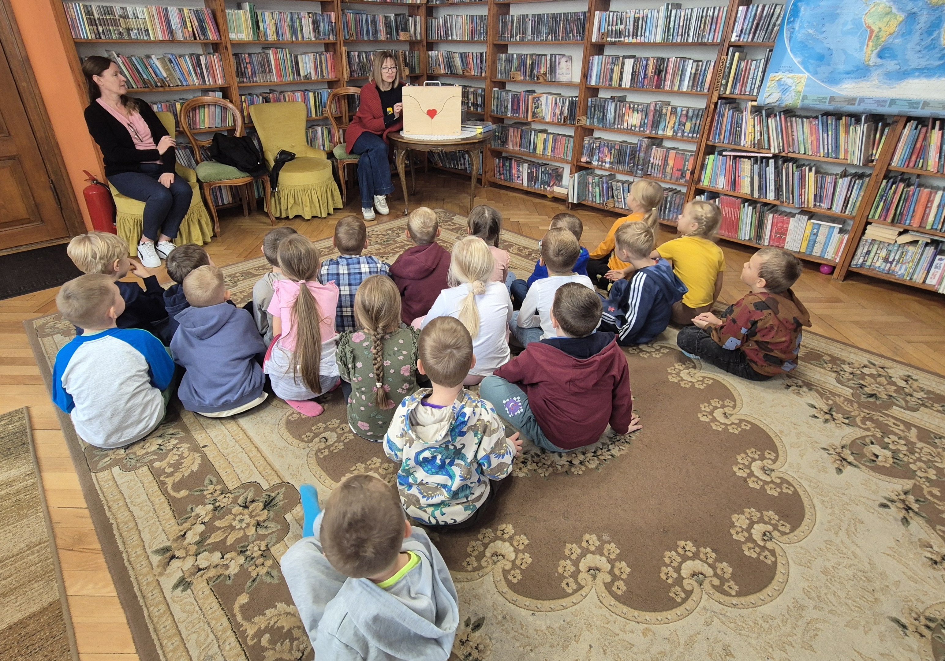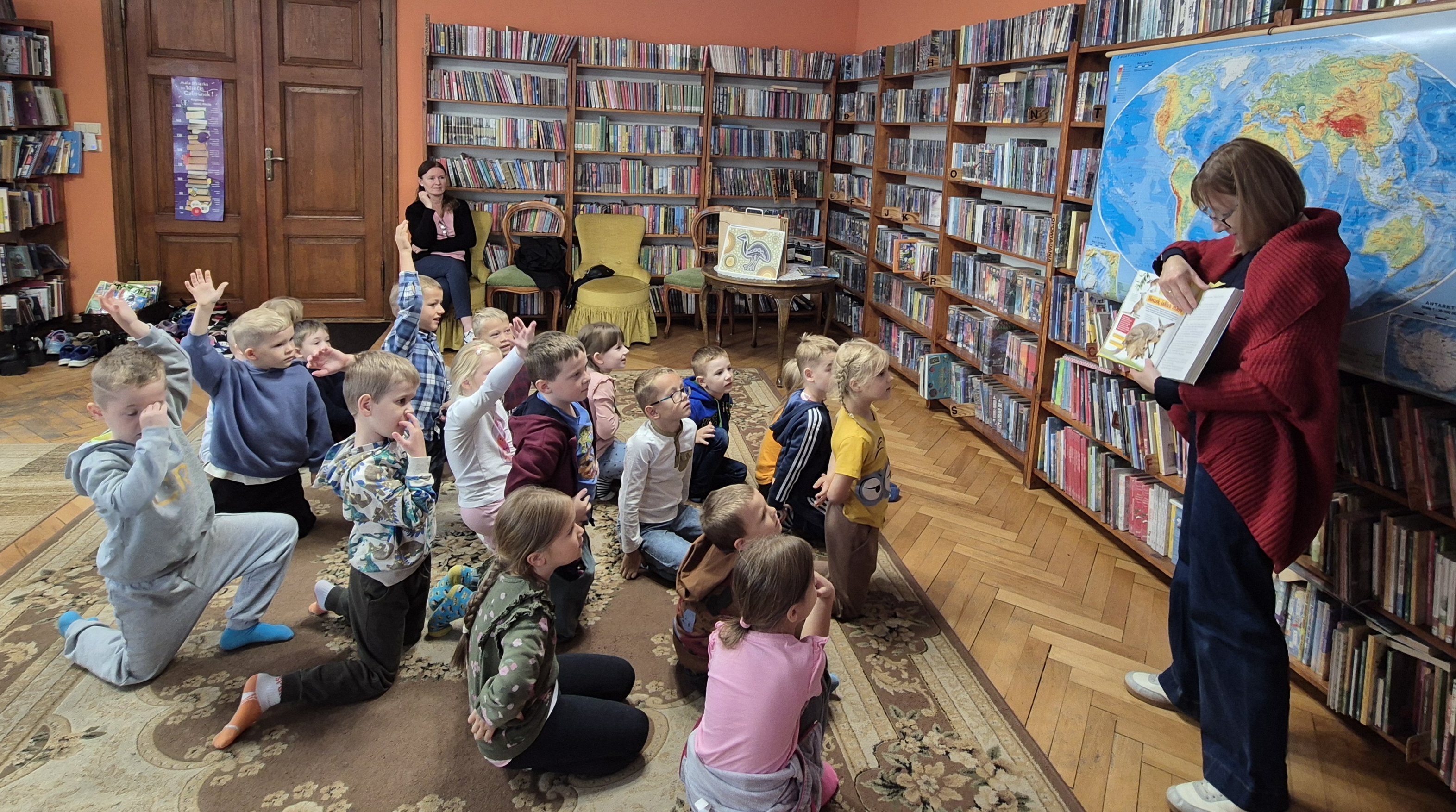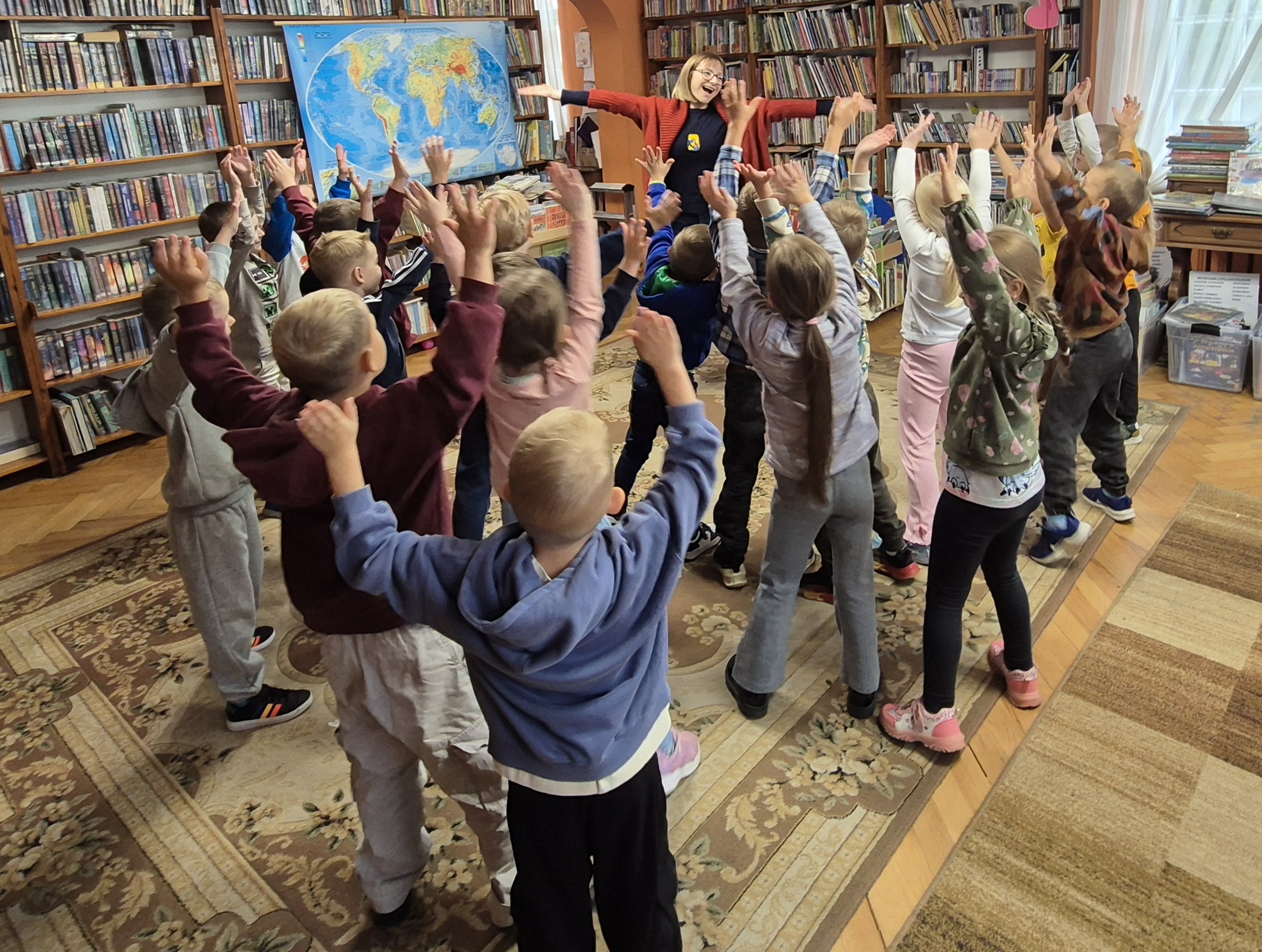 Dzieci 30 września wybrały się na wizytę do biblioteki, gdzie wzięły udział w spotkaniu z panią Asią. Na początku wysłuchały dwóch ciekawych opowieści: „Bajki o gąsienicy, która zamieniła się w motyla” oraz historii o tym, dlaczego ptaki wiją gniazda. Pani Asia opowiadała także wiele interesujących ciekawostek o zwierzętach z różnych kontynentów, m.in. o dingo.