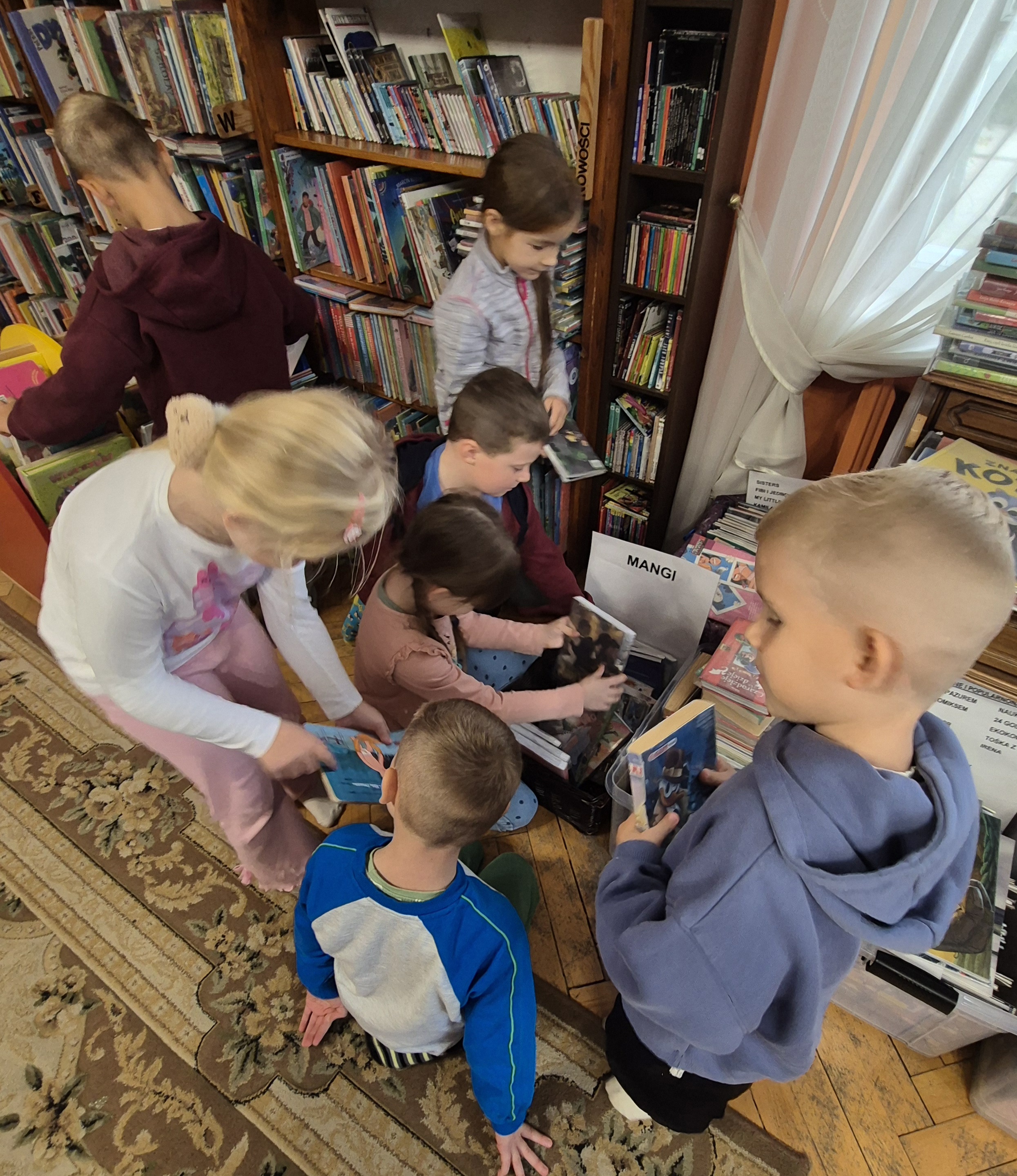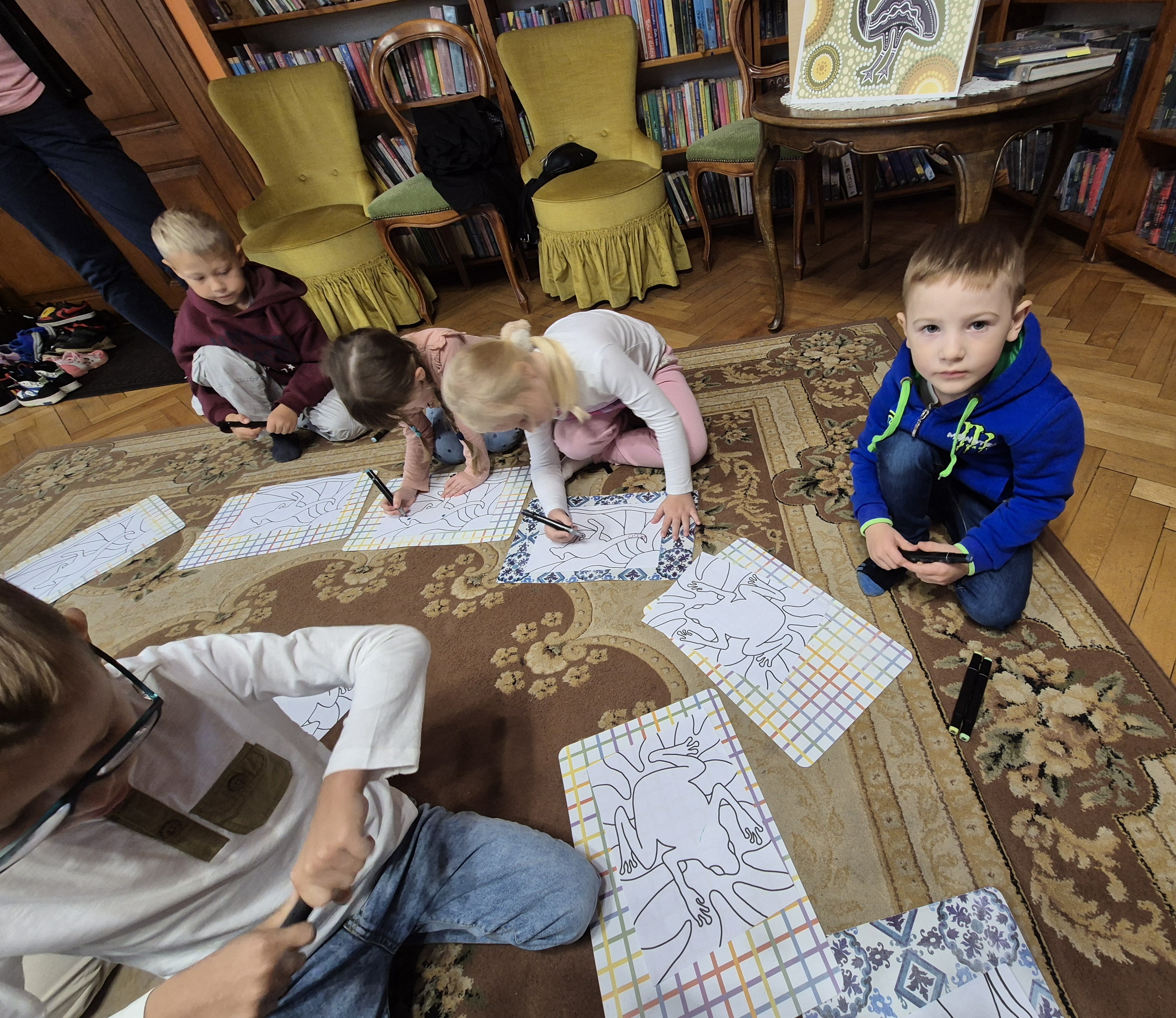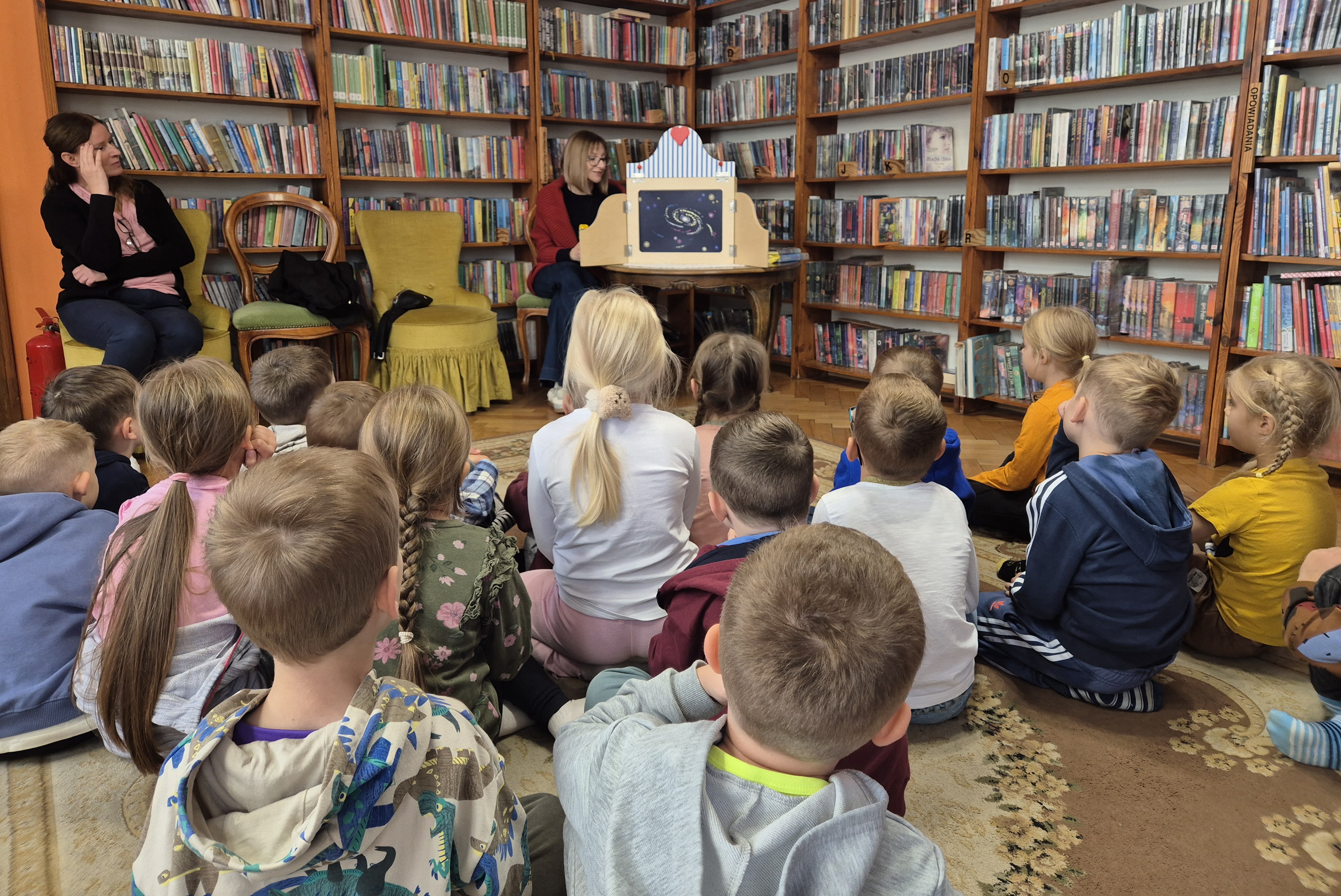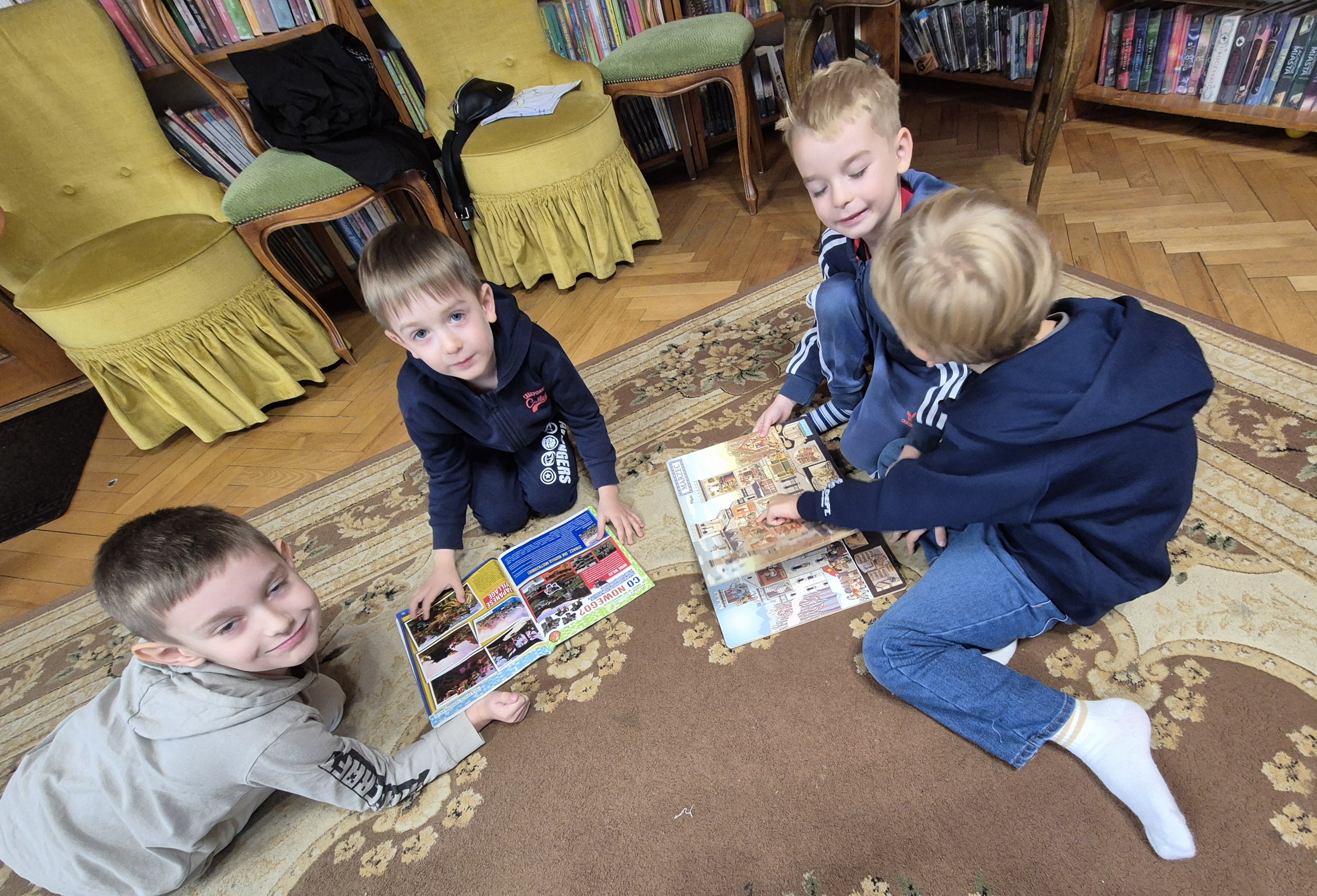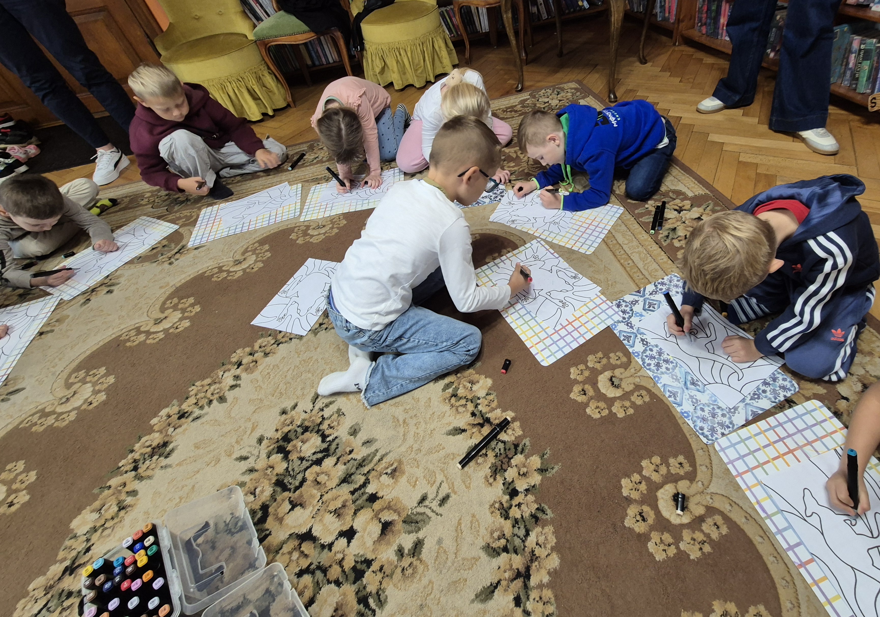 Po części słuchanej dzieci ozdabiały samodzielnie kolorowanki w formie kropek, a na zakończenie mogły obejrzeć i poczytać książeczki dostępne w bibliotece. Pani Asia zachęcała wszystkie dzieci do zapisania się do biblioteki i korzystania z jej bogatych zbiorów.