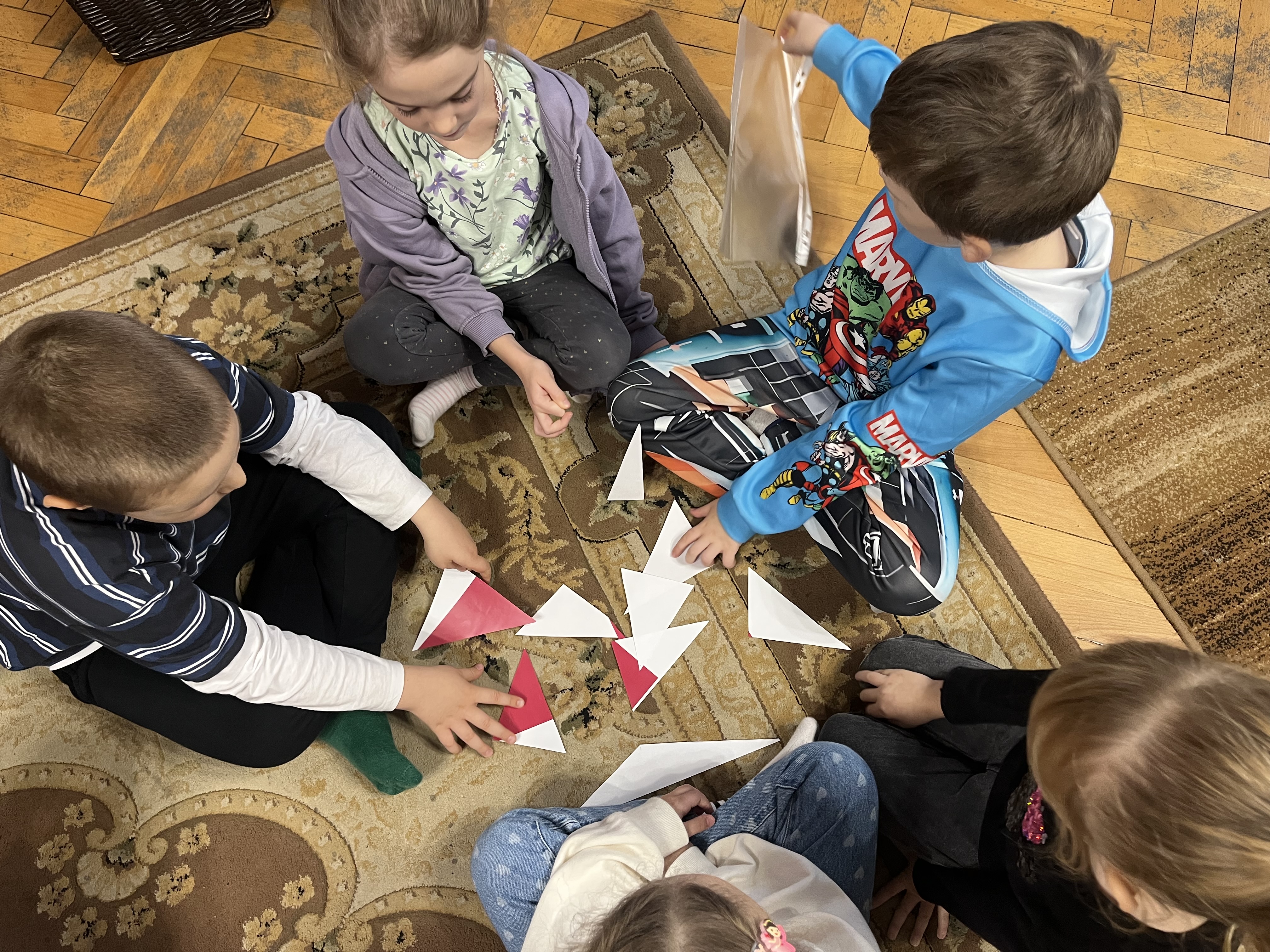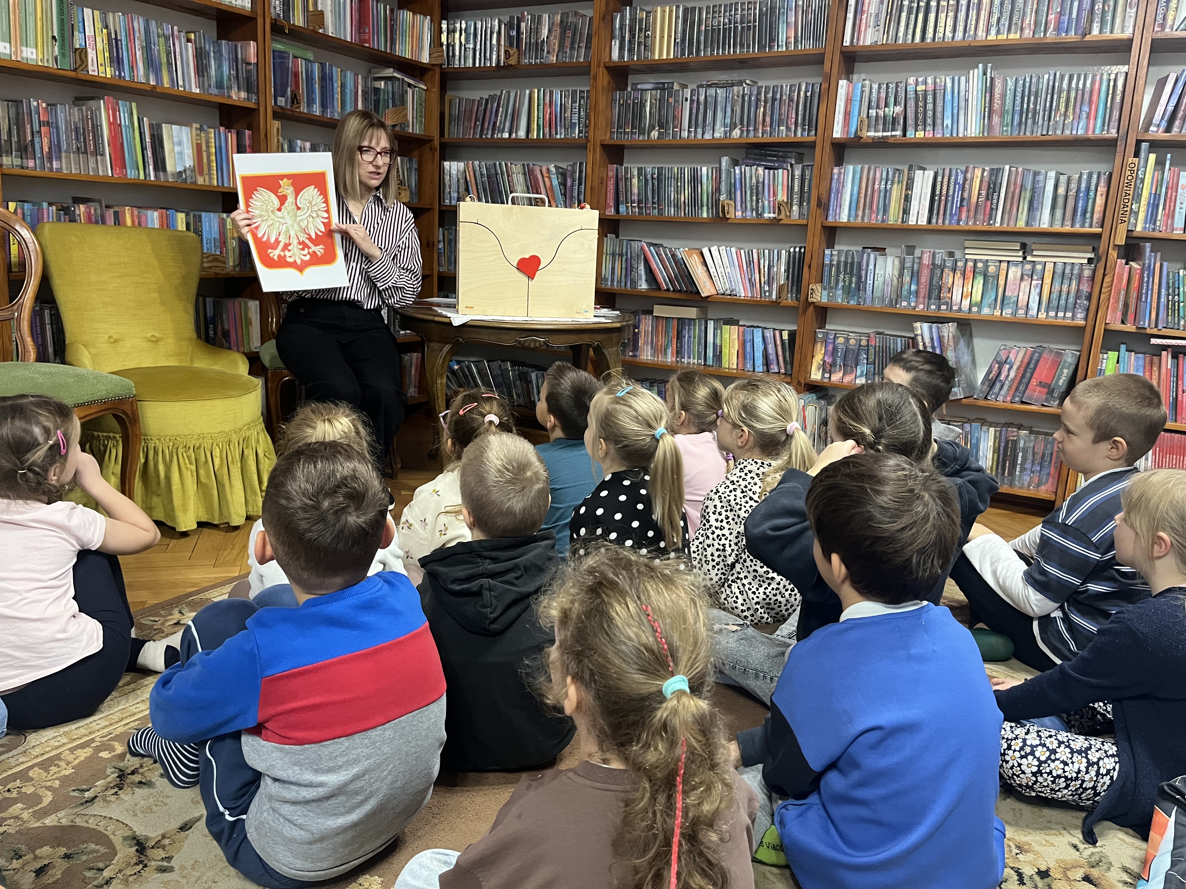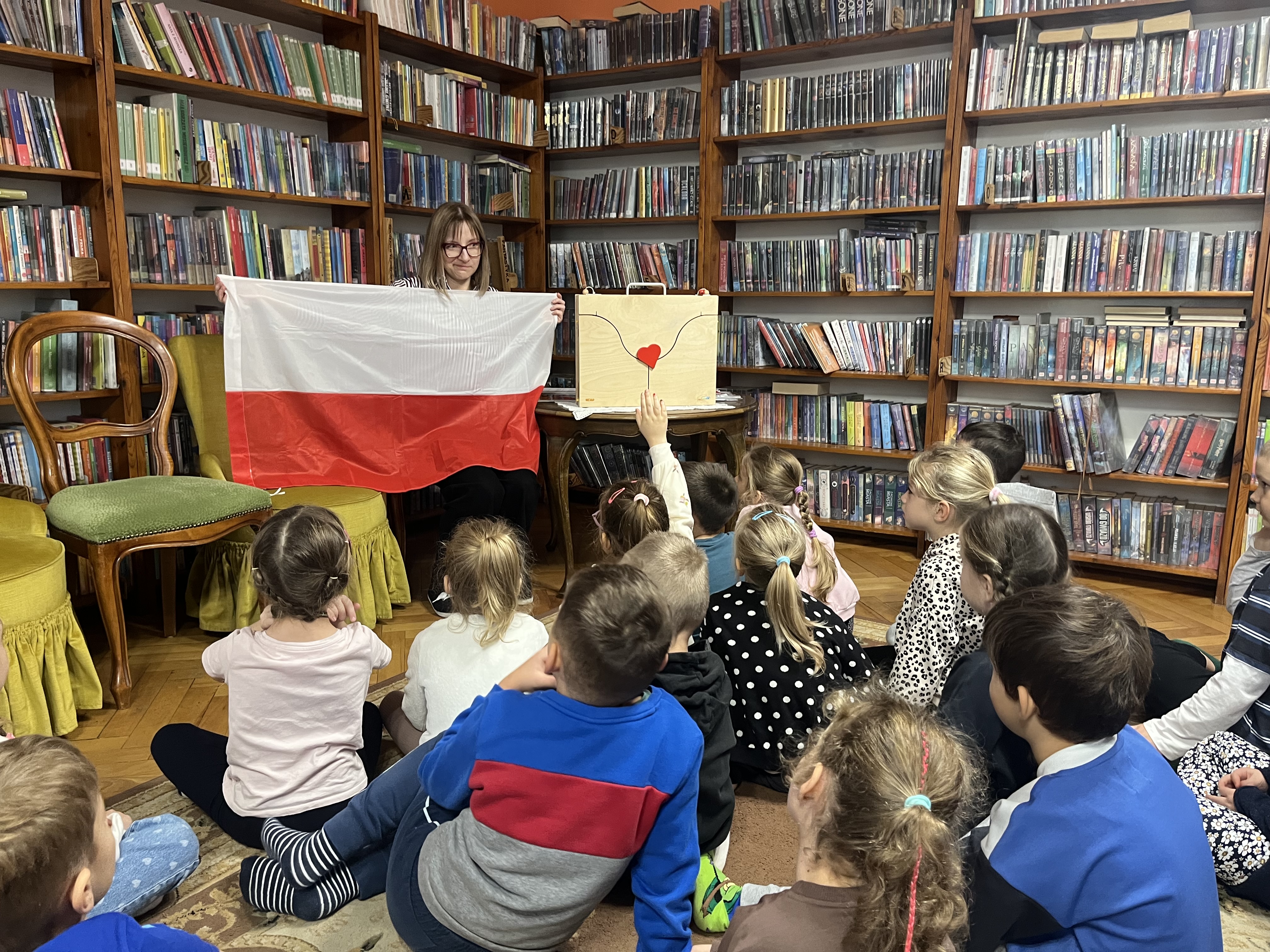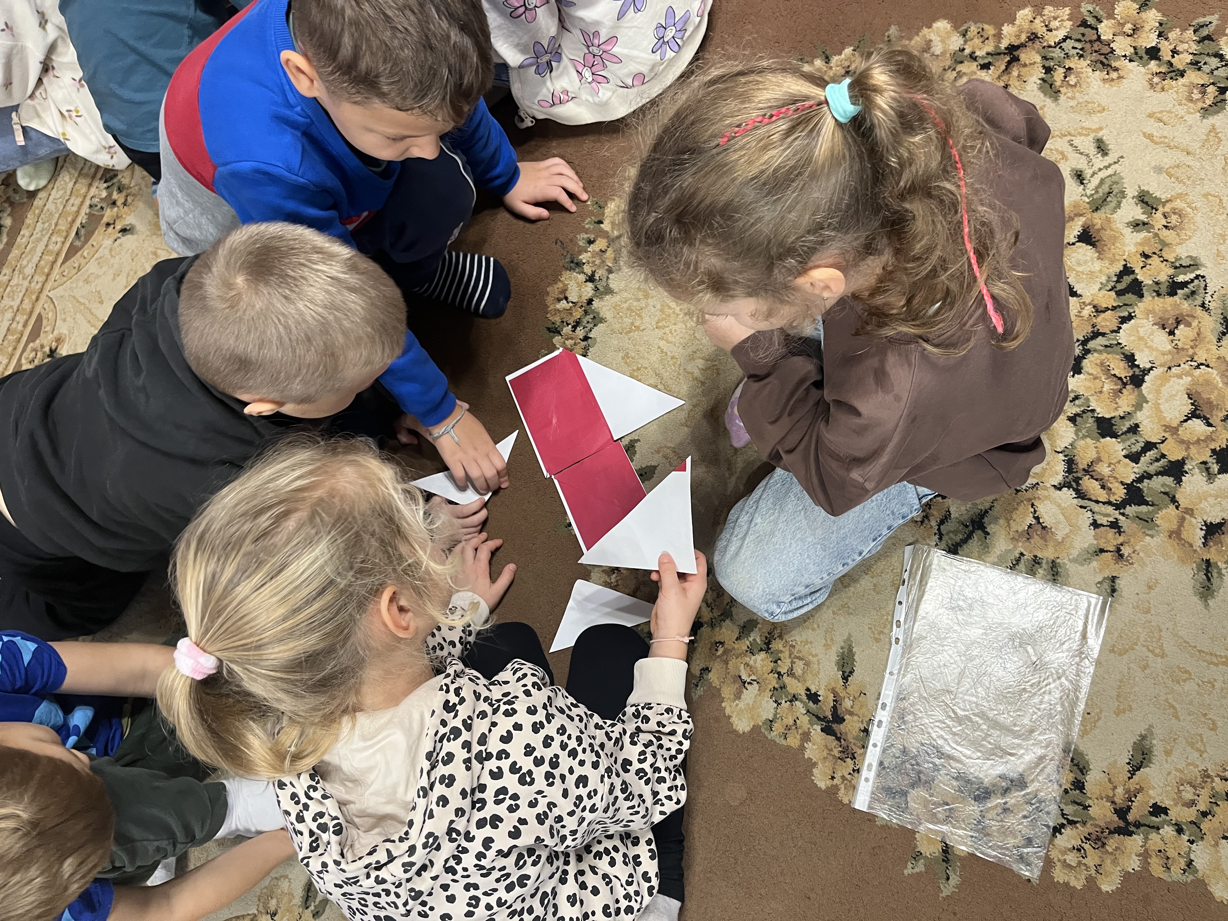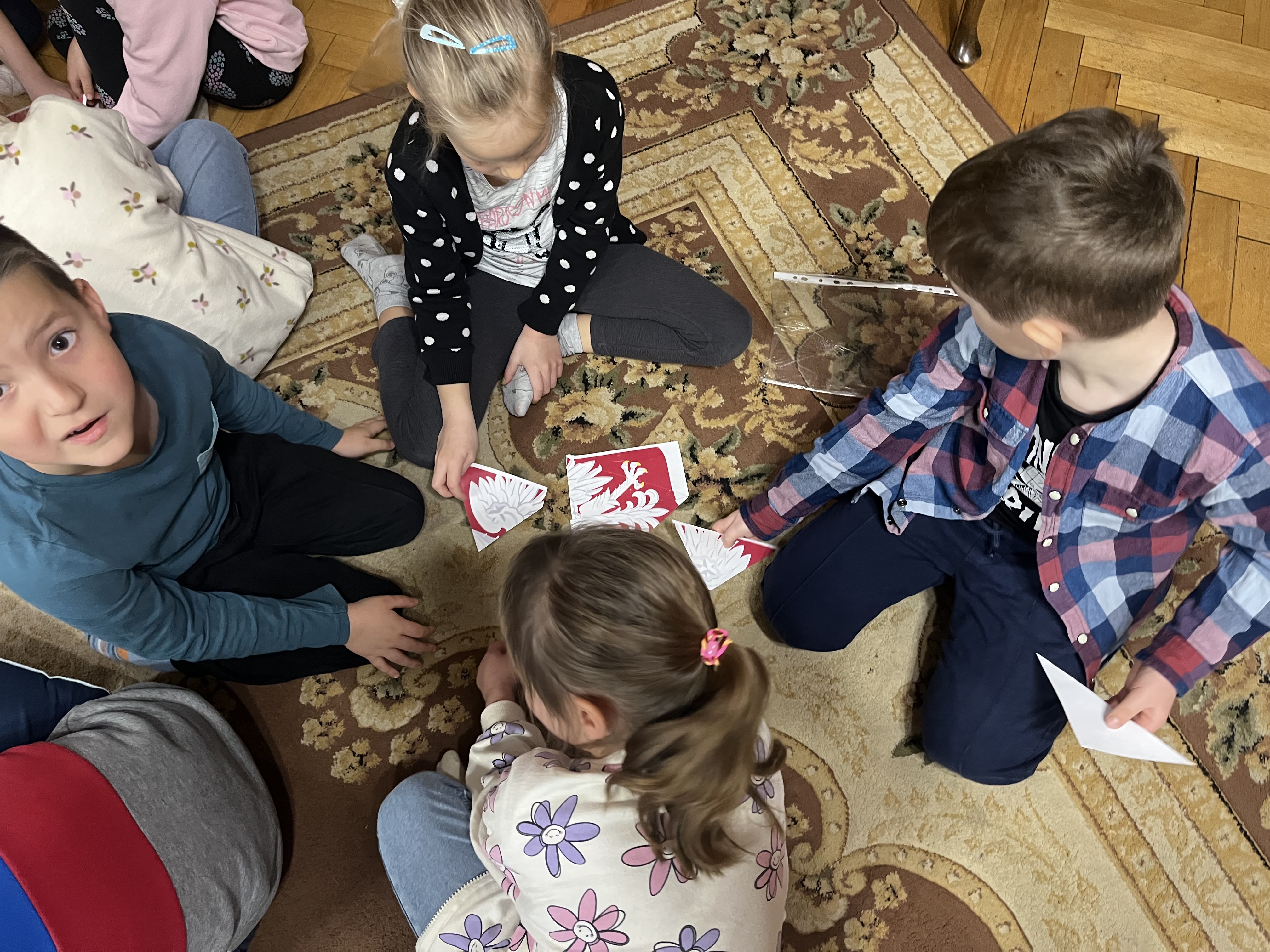 Na początku zajęć pani Asia, korzystając z teatrzyku kamishibai, w ciekawy sposób opowiedziała o znaczeniu Święta Niepodległości oraz o tym, dlaczego jest ono tak ważne dla wszystkich Polaków. Podczas spotkania dzieci uczestniczyły w rozmowie na temat symboli narodowych – przypomniały sobie, jak wygląda flaga Polski, jakie znaczenie mają jej kolory, poznały godło państwowe oraz wspólnie zaśpiewały fragment Hymnu Narodowego.