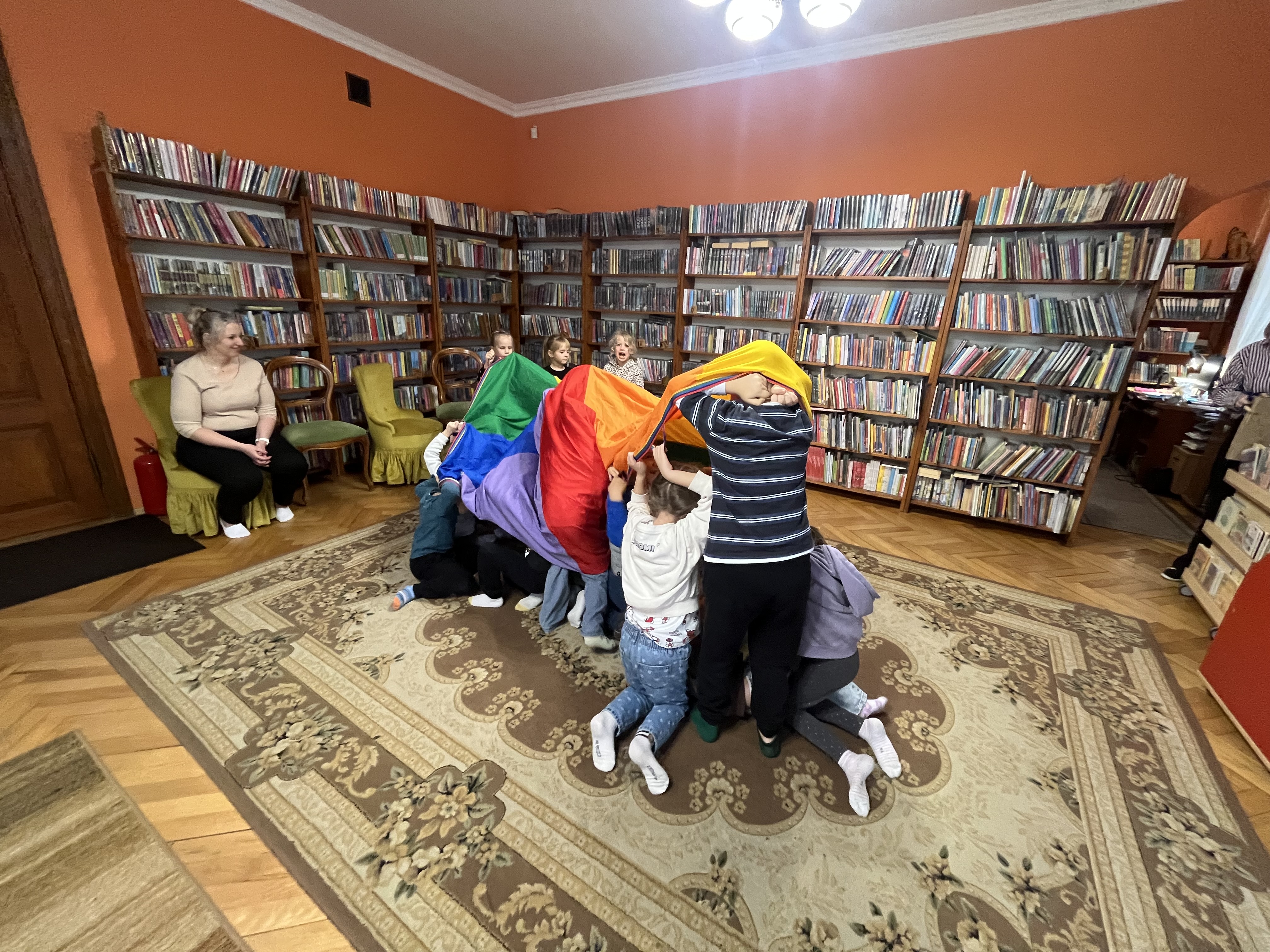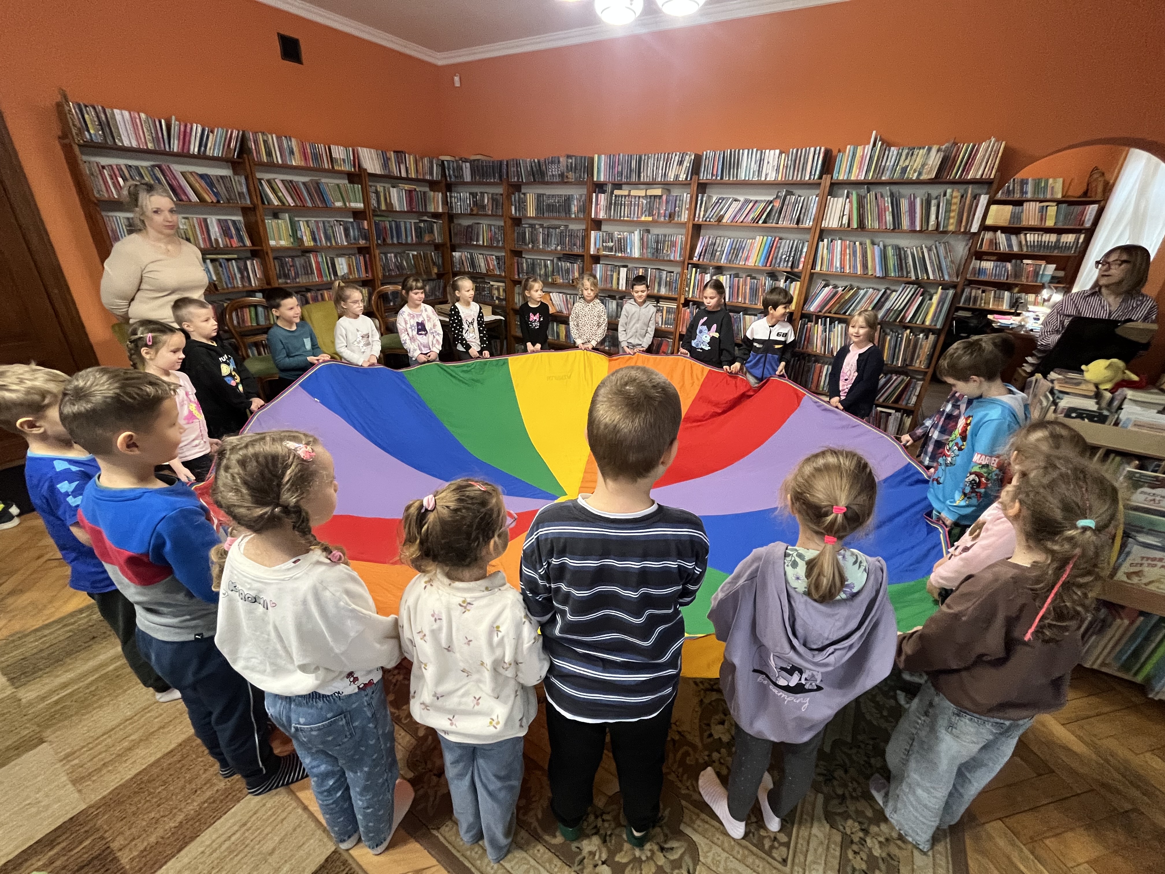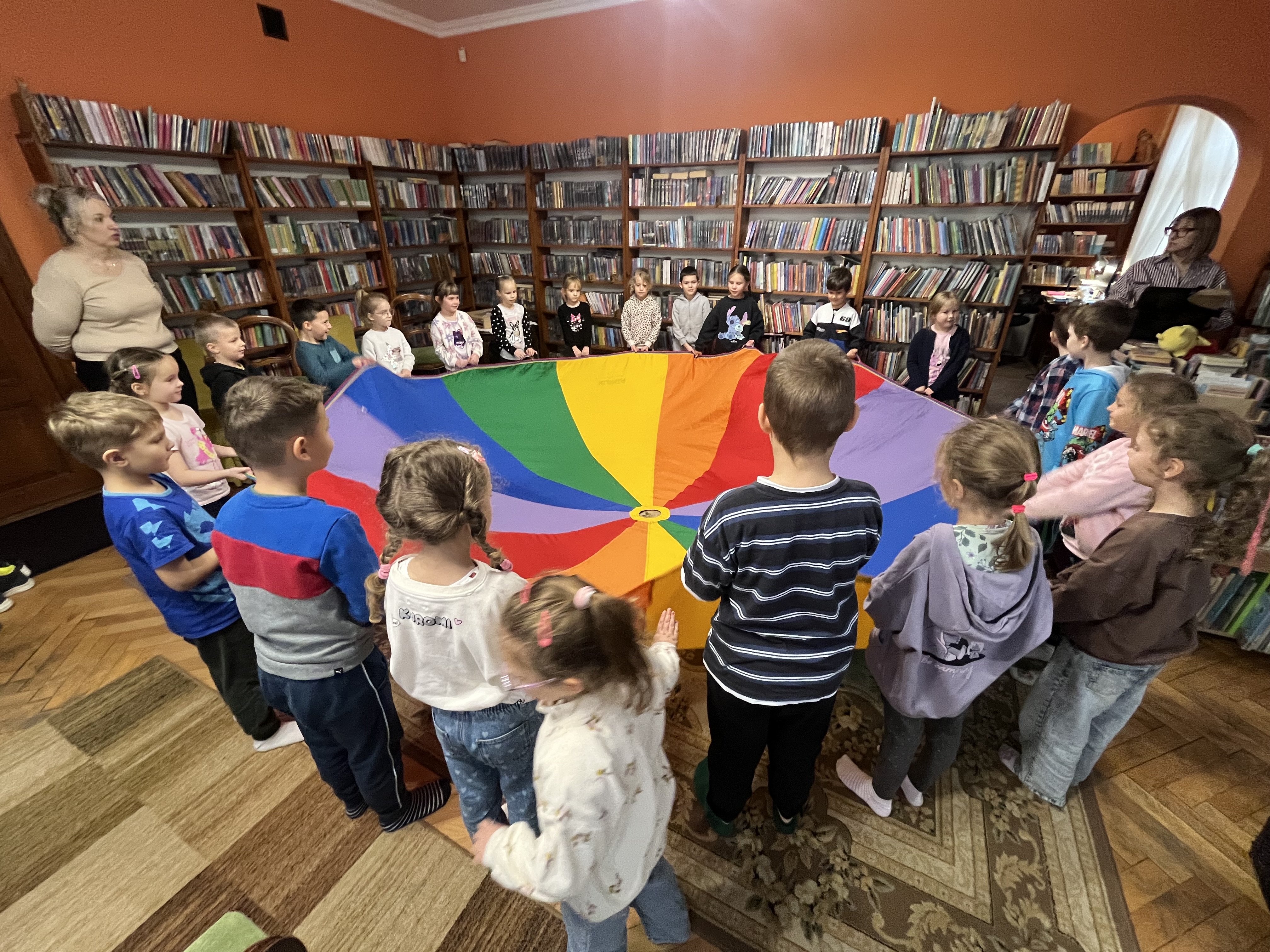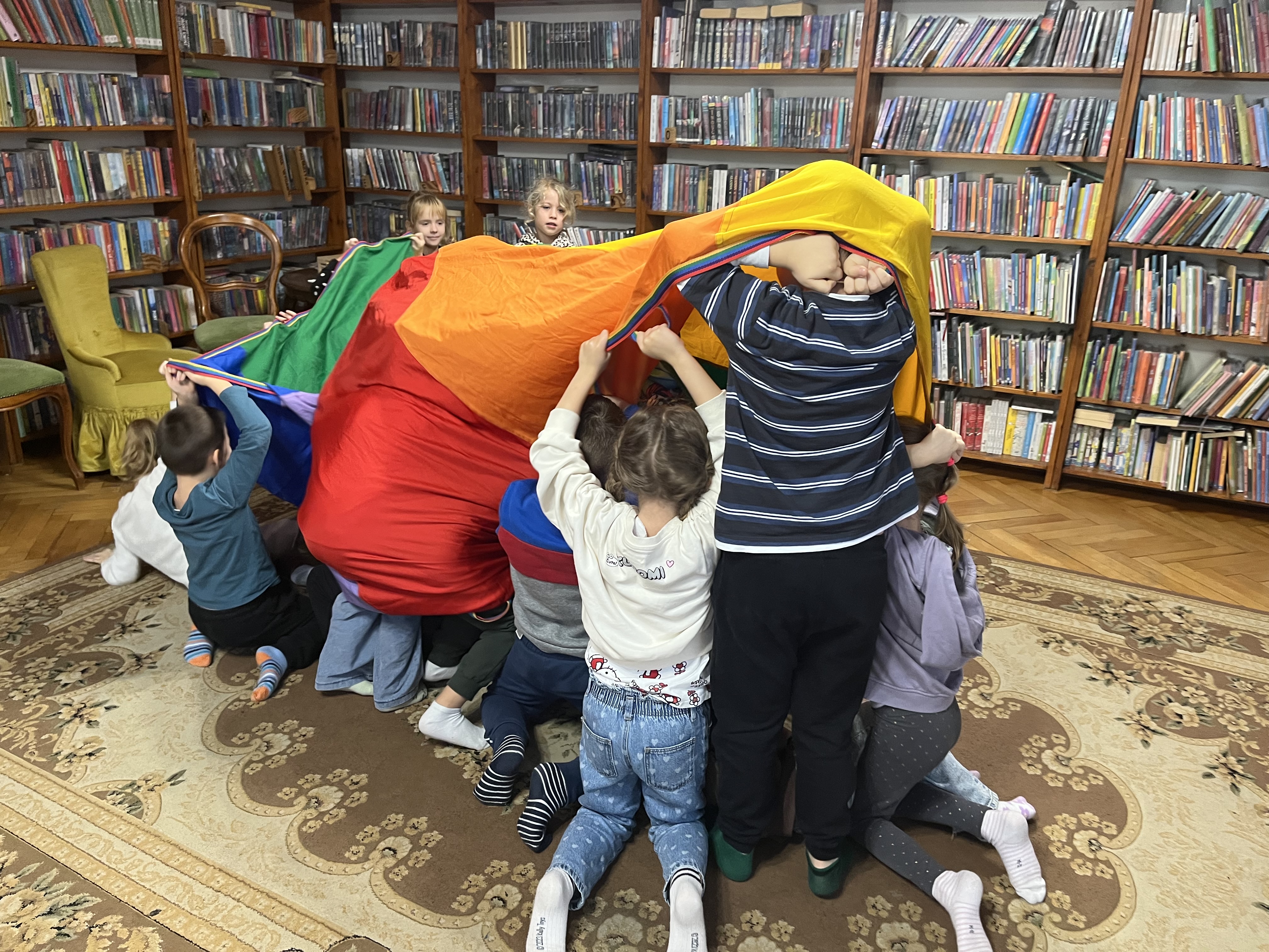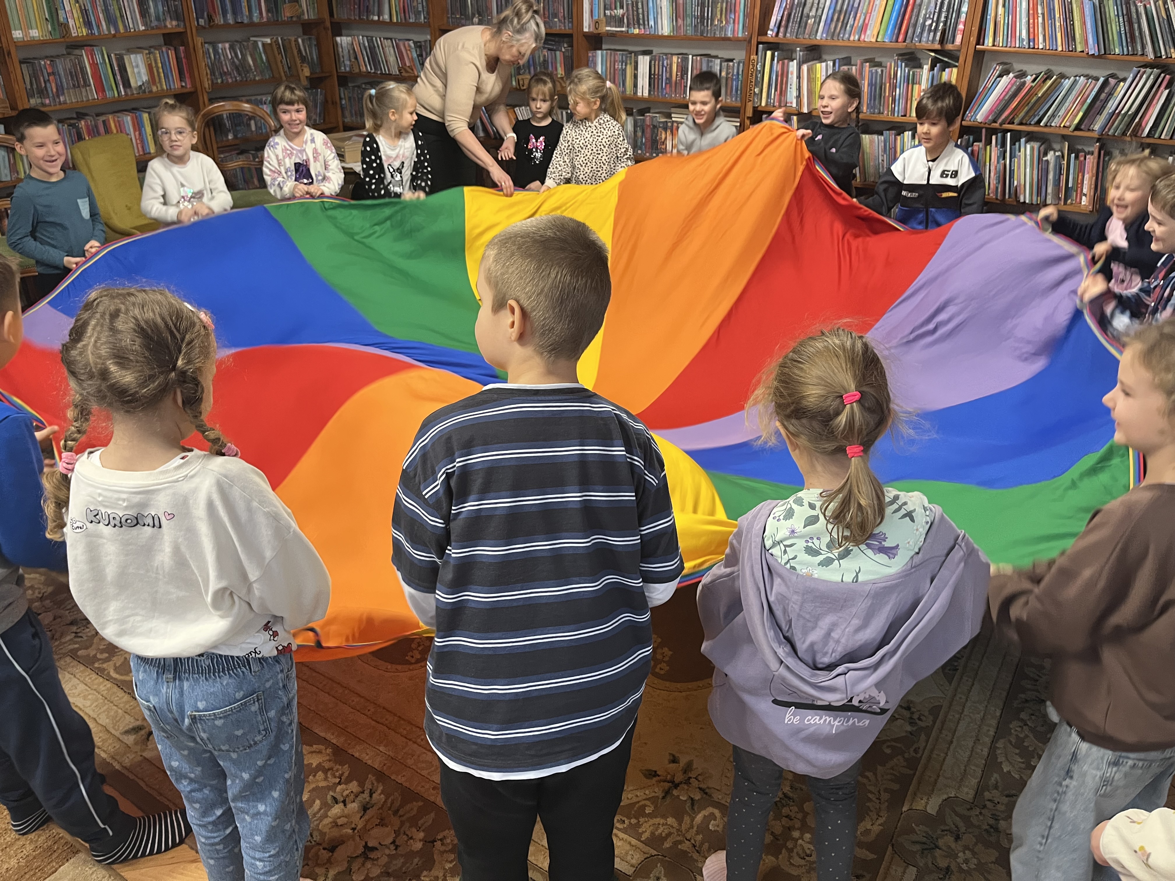 Na zakończenie spotkania nie zabrakło szalonej zabawy z chustą animacyjną, która dostarczyła dzieciom wiele radości. Całe wydarzenie przebiegło w przyjaznej i pełnej zaangażowania atmosferze.
