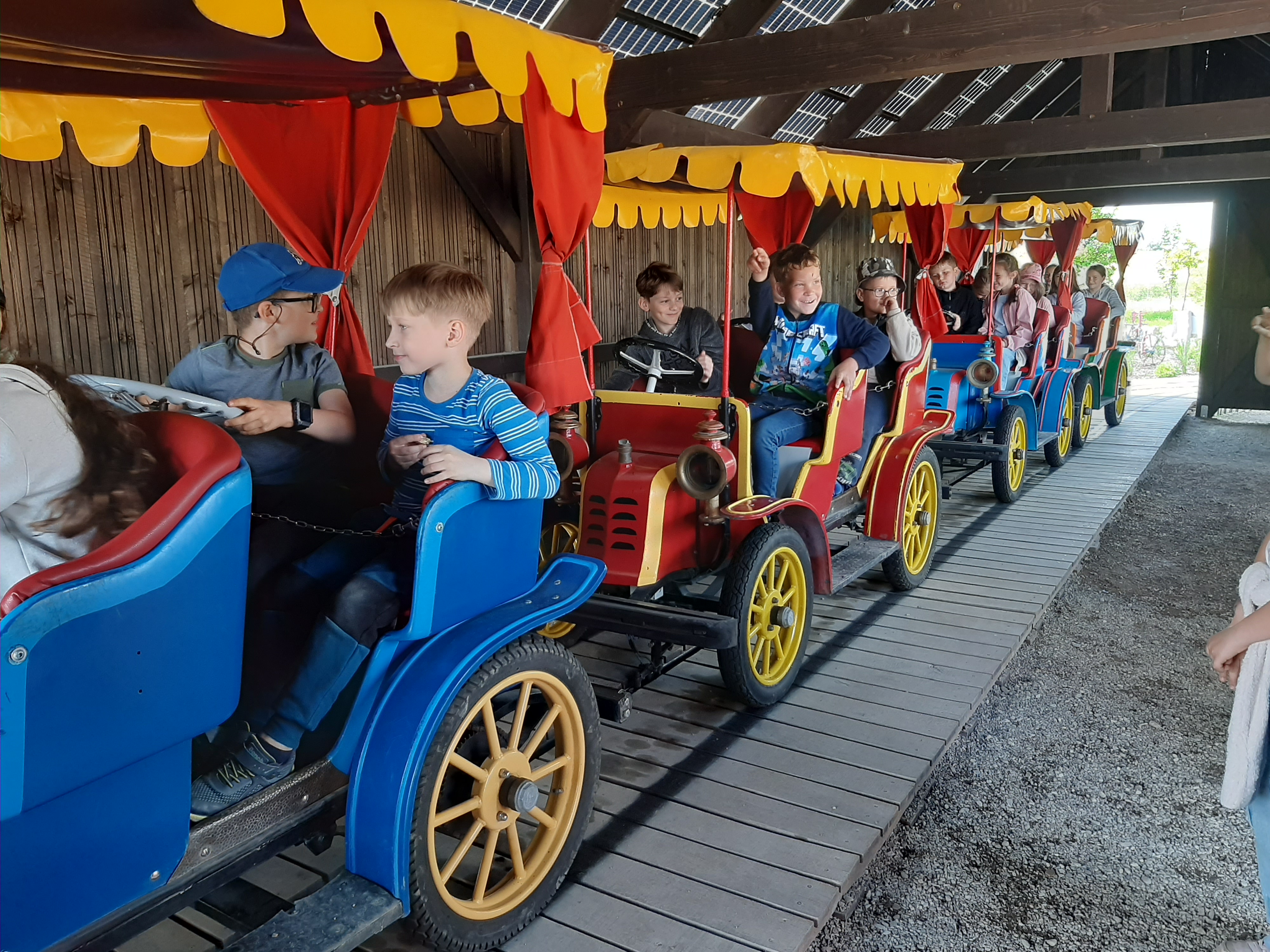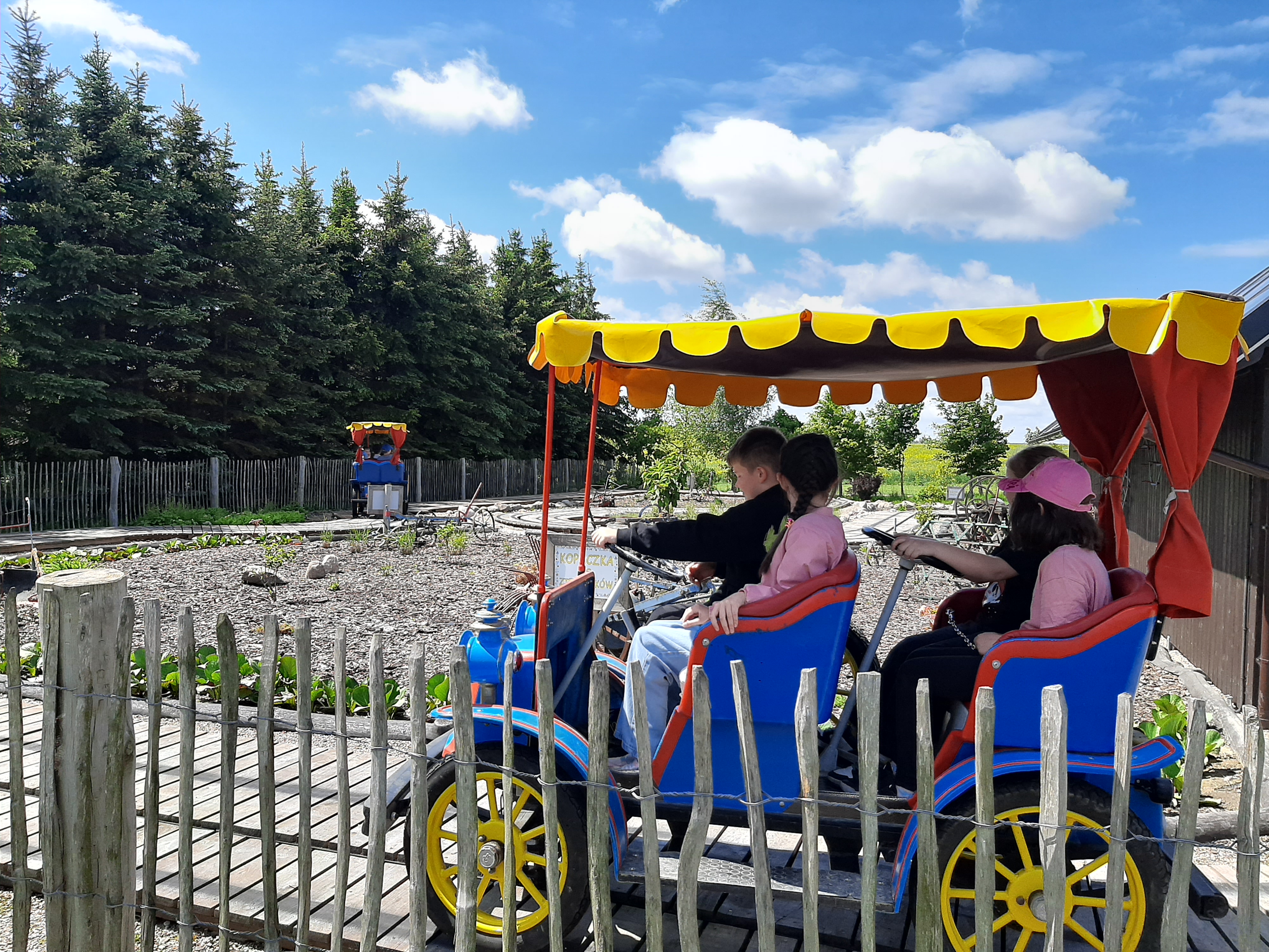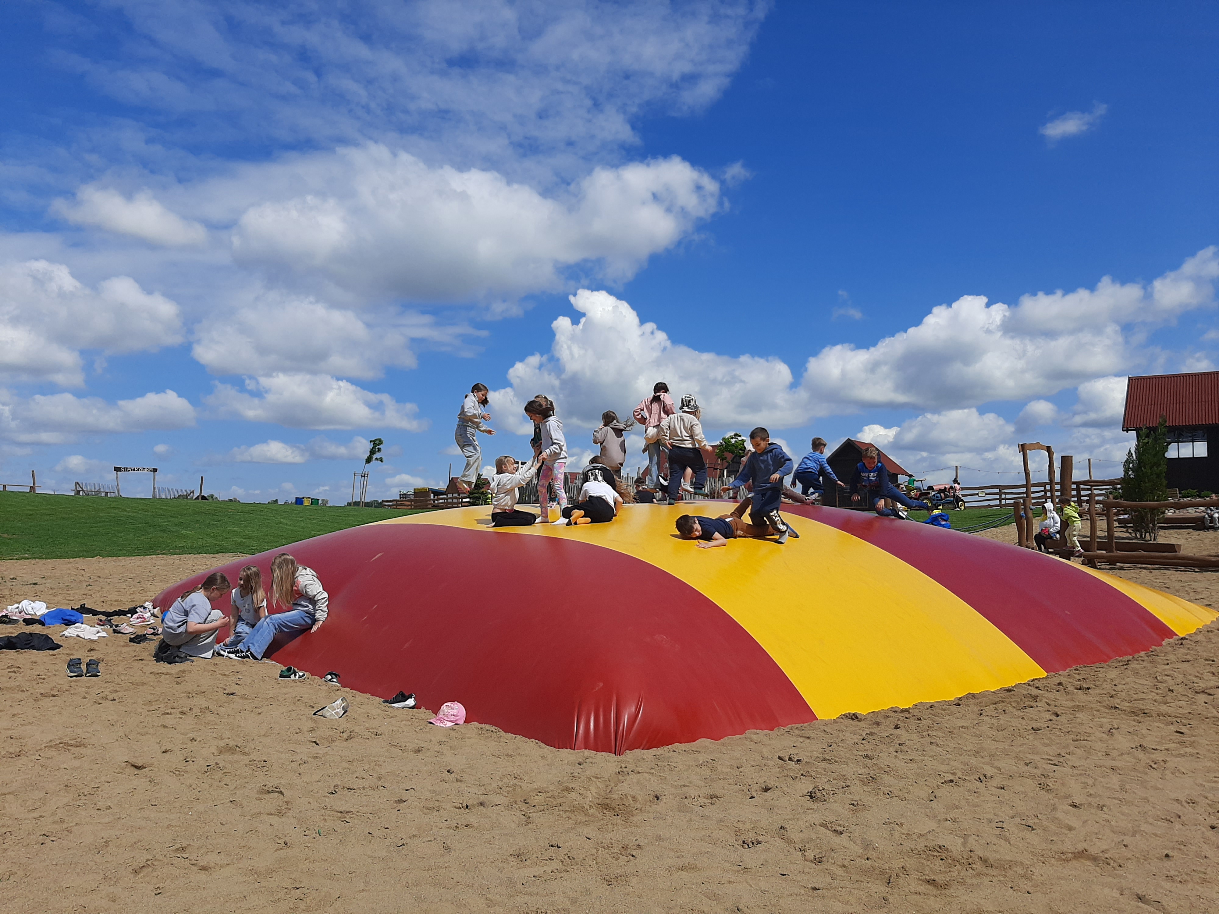 29 maja 2025r. dzieci miały okazję odwiedzić wyjątkowe miejsce – Zagrodę Kociewską w Godziszewie, gdzie czekało na nie mnóstwo atrakcji i niezapomnianych wrażeń. Już od pierwszych chwil z entuzjazmem korzystały z licznych terenów zabaw: dmuchanej poduszki, toru przeszkód, piaskownic, a także mini-kolejki i kolorowych pojazdów.