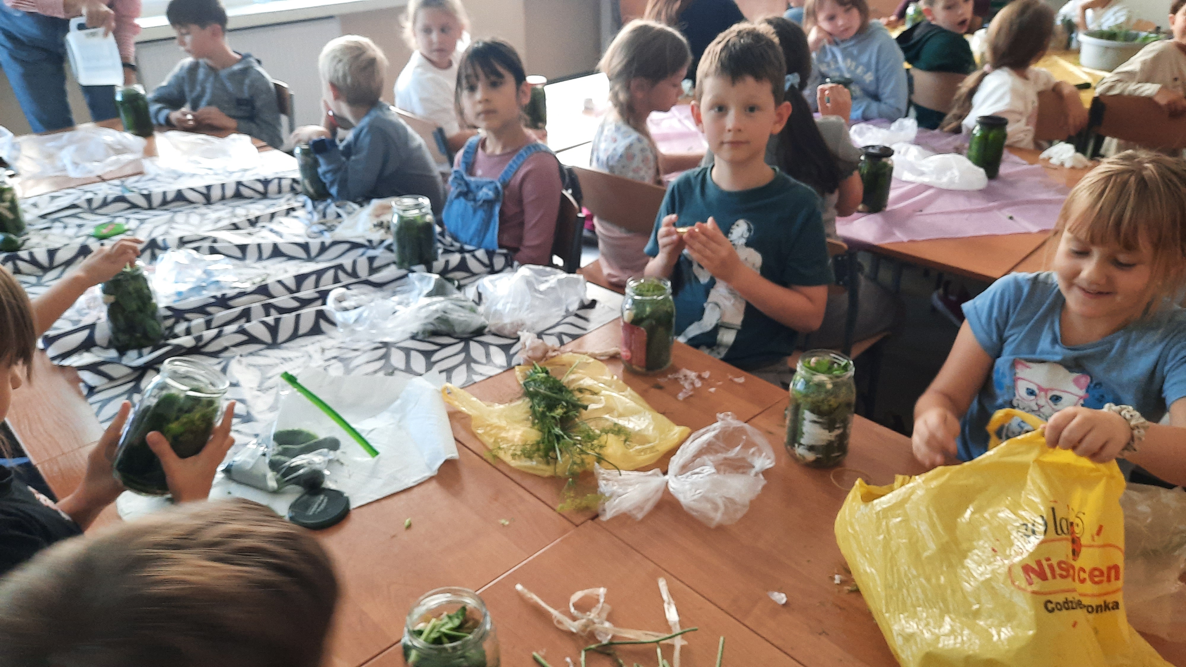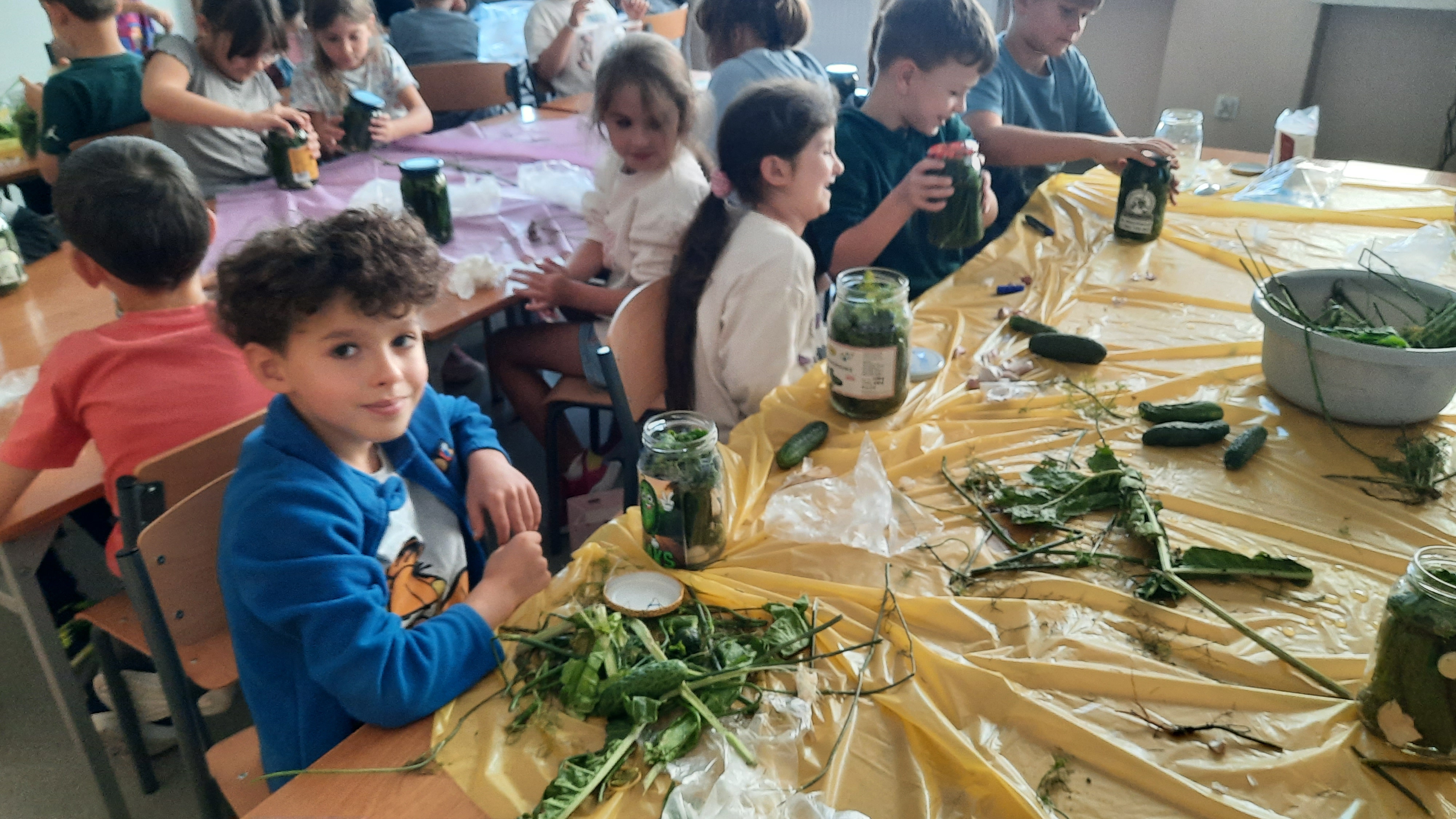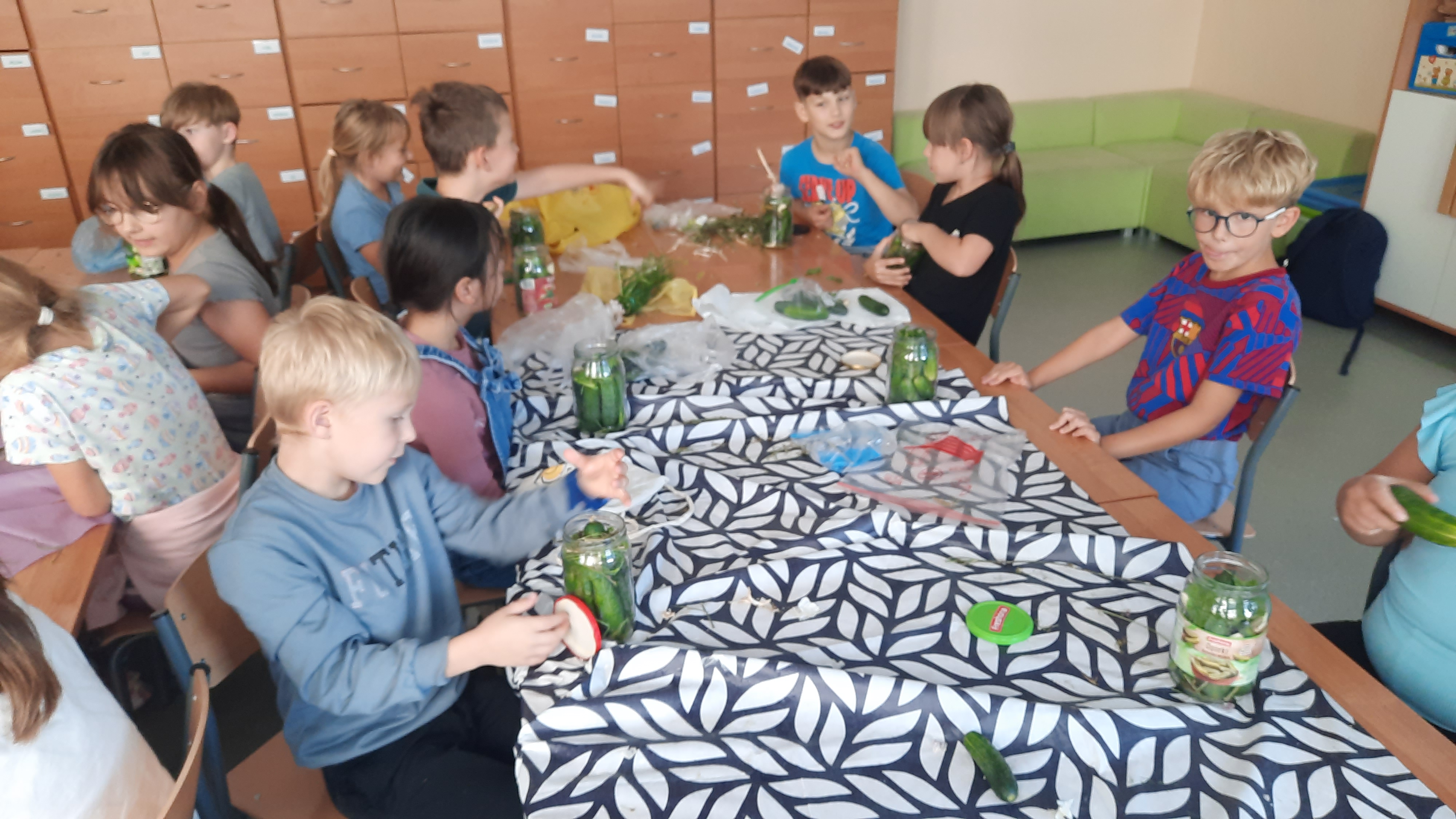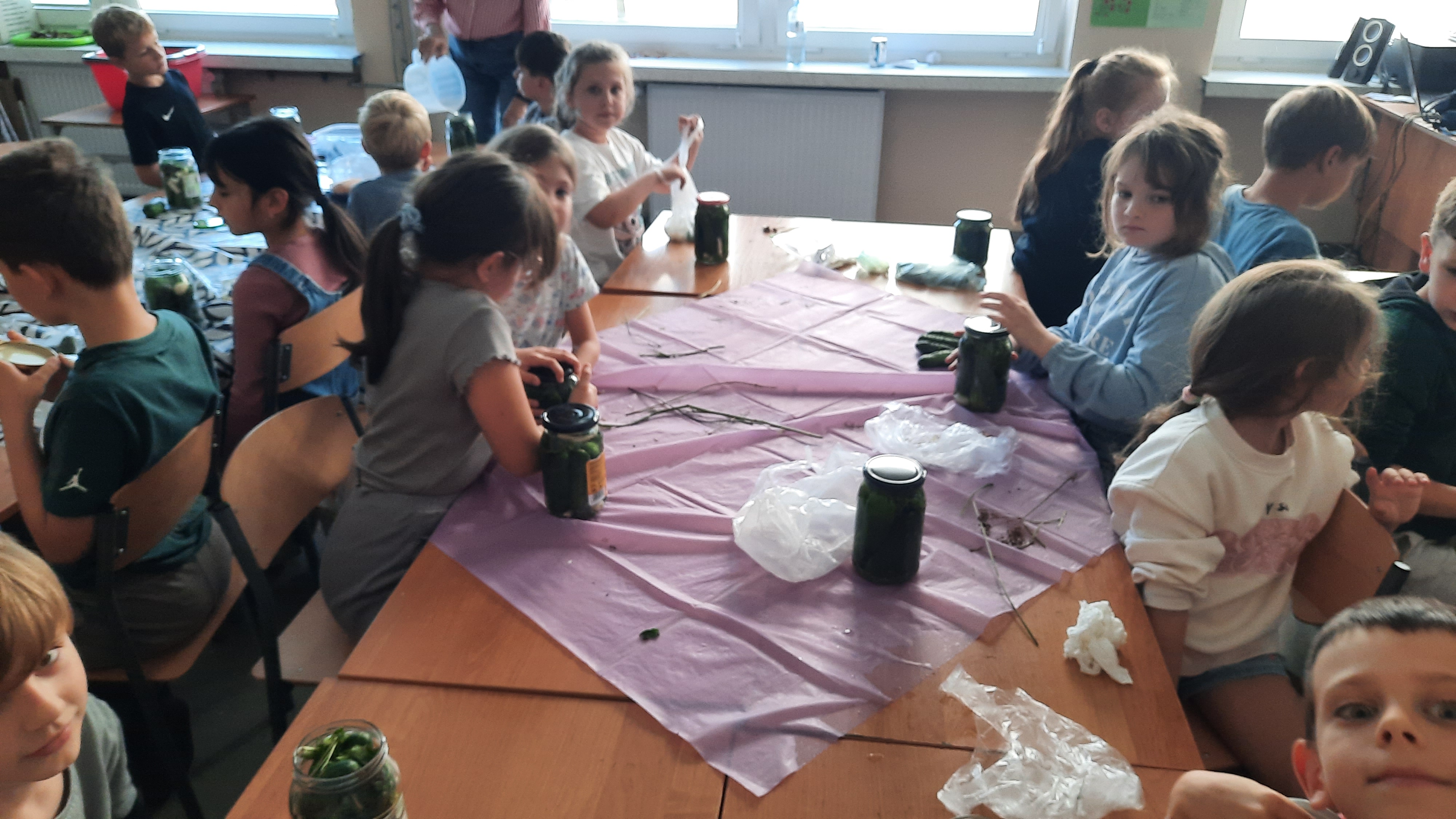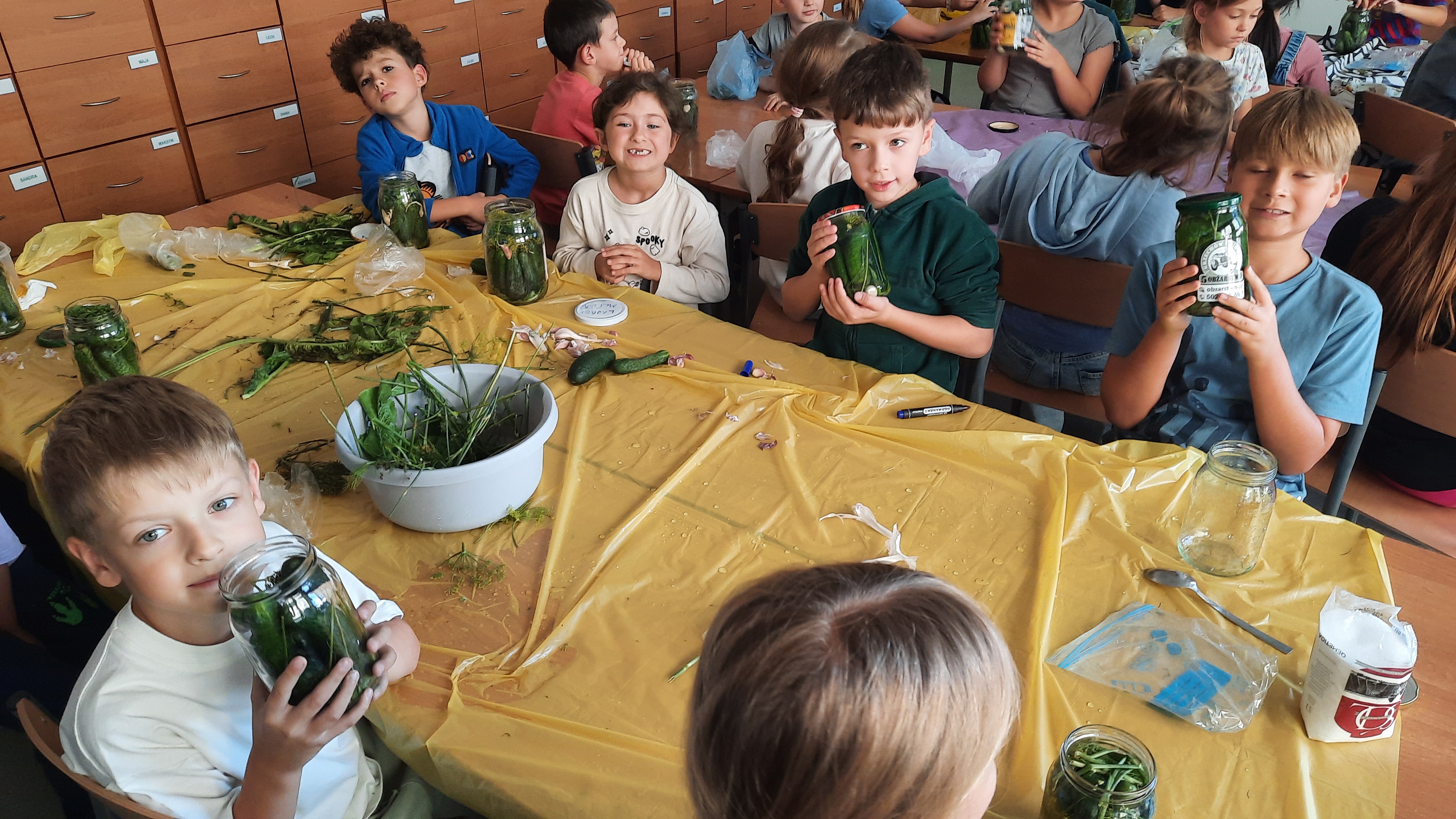 Podczas zajęć o zdrowym odżywianiu uczyliśmy się o różnych sposobach "zamykania słońca w sloikach" a w ramach praktyki przystąpiliśmy do samodzielnego kiszenia ogórków w klasie - to była świetna zabawa połączona z integracją.
