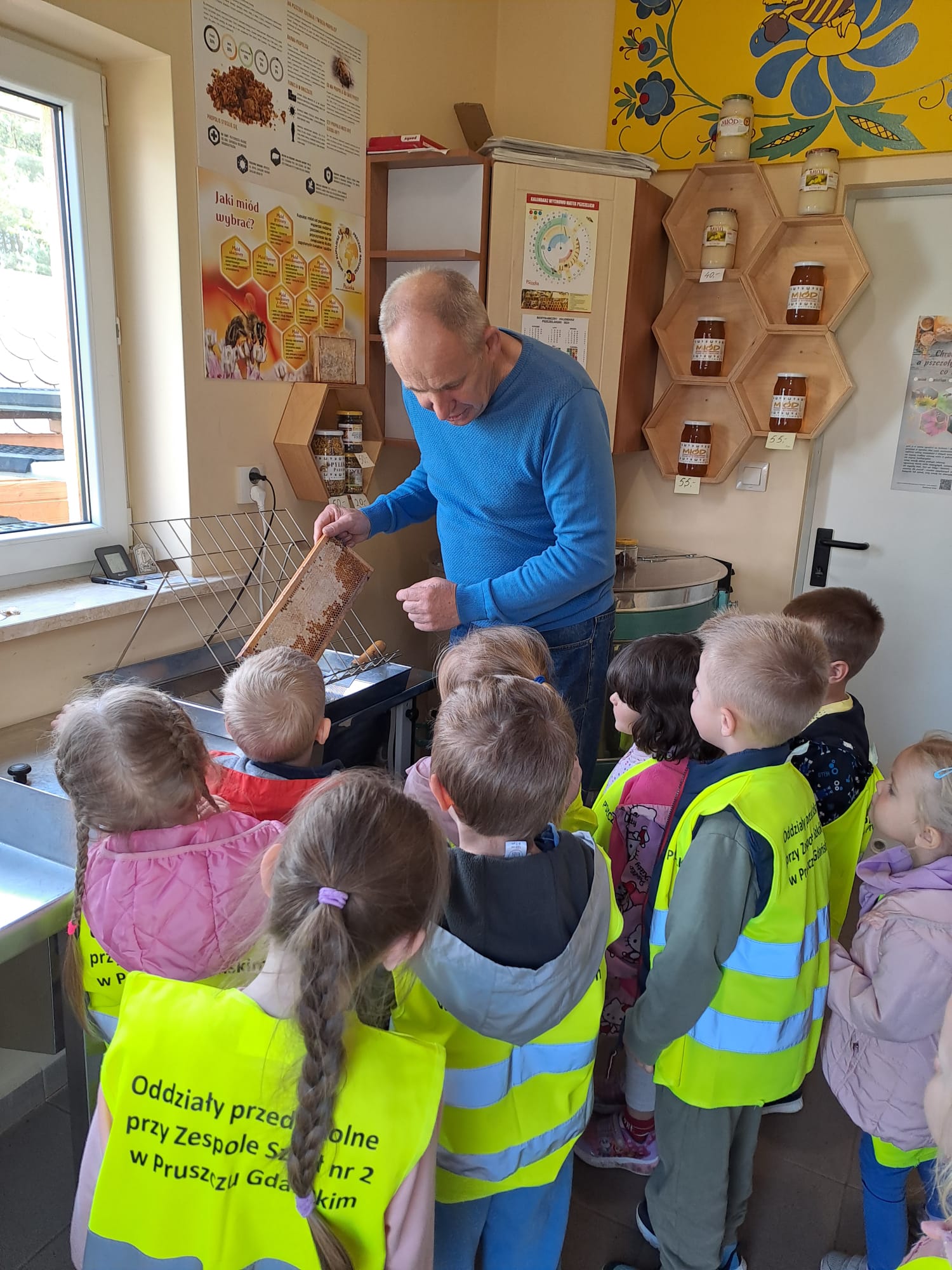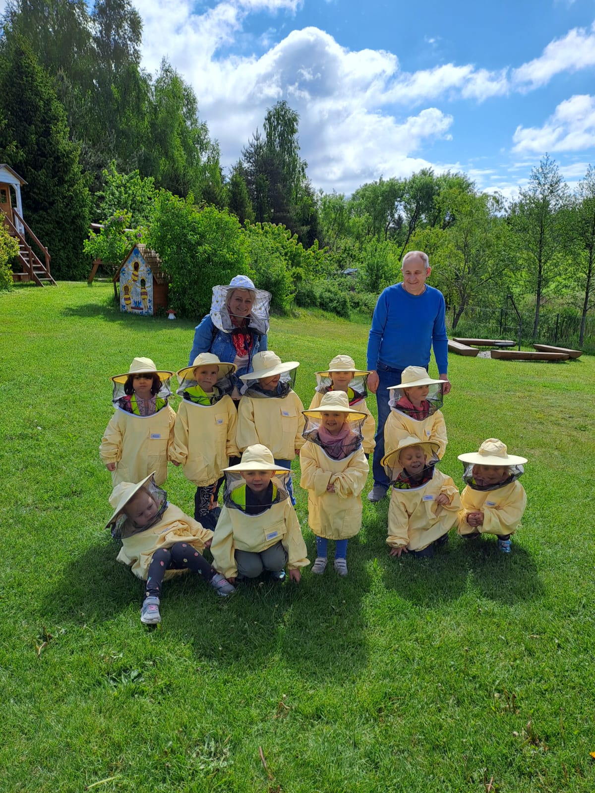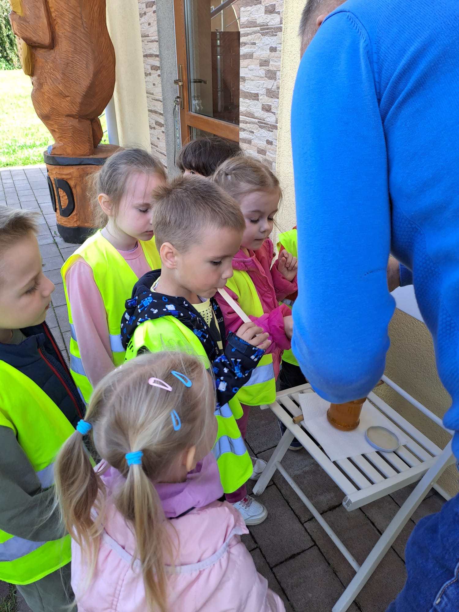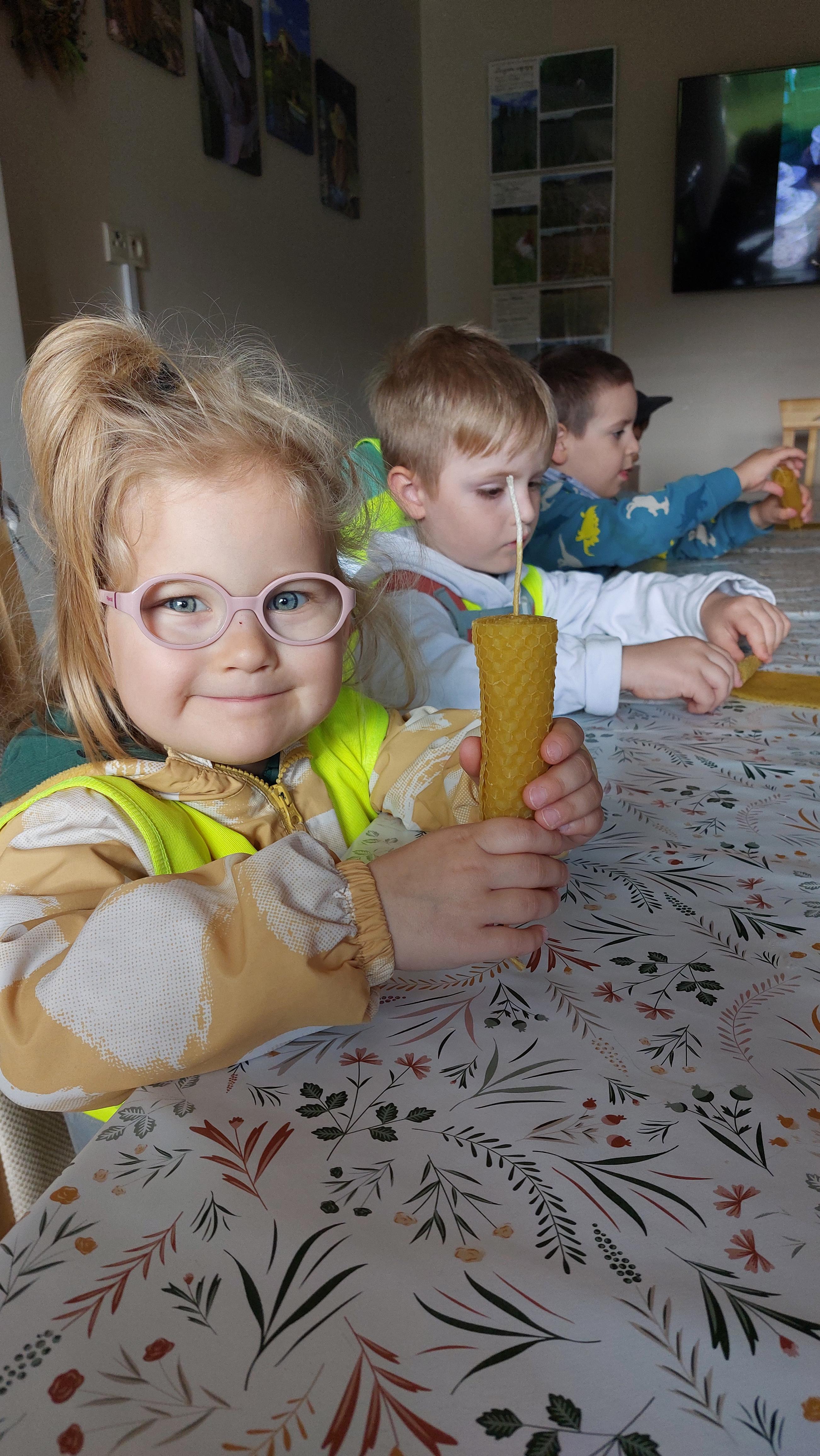 29 maja nasza grupa udała się autokarem na wycieczkę do Borowiny, gdzie odwiedziliśmy Dolinę Miodu! Tam obejrzeliśmy film o pszczołach, samodzielnie zrobiliśmy świeczki z wosku pszczelego i przeszliśmy leśną ścieżką edukacyjną, gdzie widzieliśmy prawdziwe ule i pszczoły oraz wysłuchaliśmy ciekawostek o pszczołach. Widzieliśmy też pszczołę-królową, spróbowaliśmy pysznego miodu i zobaczyliśmy maszynę, w której on wiruje! Później udaliśmy się do altanki, żeby przekąsić małe co nieco, a na końcu mieliśmy czas dla siebie na superanckim placu zabaw! W drogę powrotną wyruszyliśmy w świetnych nastrojach, każdy z nas dostał słoiczek miodu oraz Certyfikat Pracowitej Pszczółki. To był ekstra dzień!