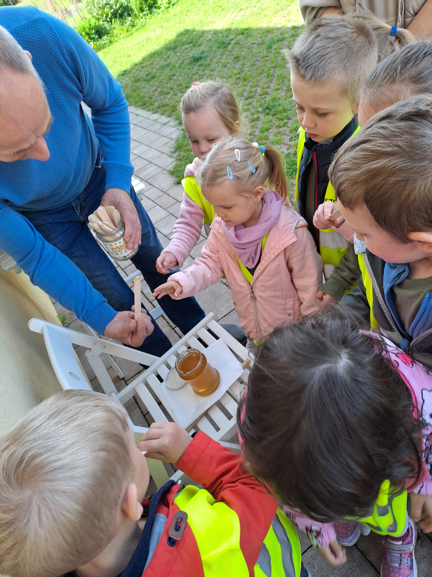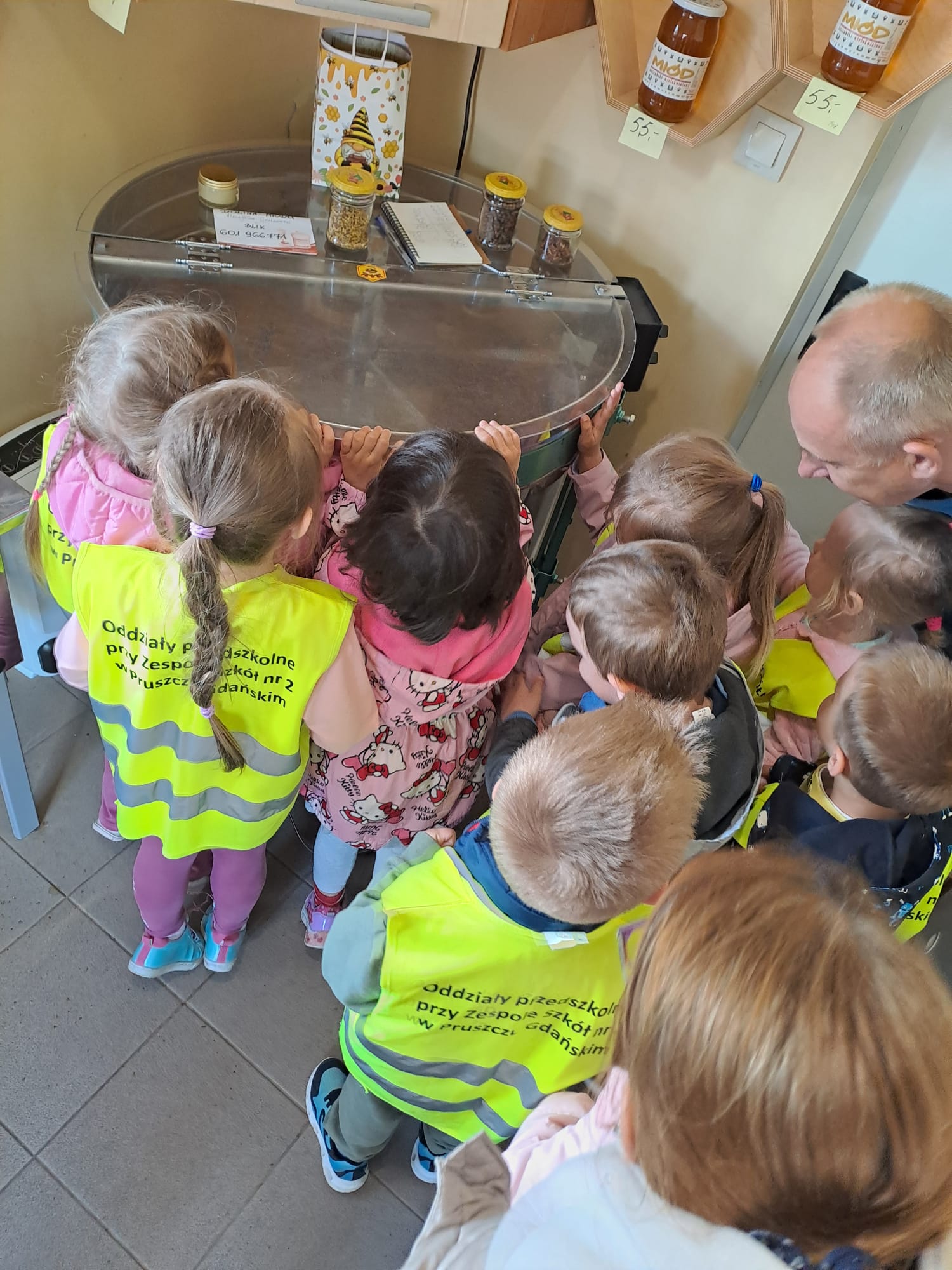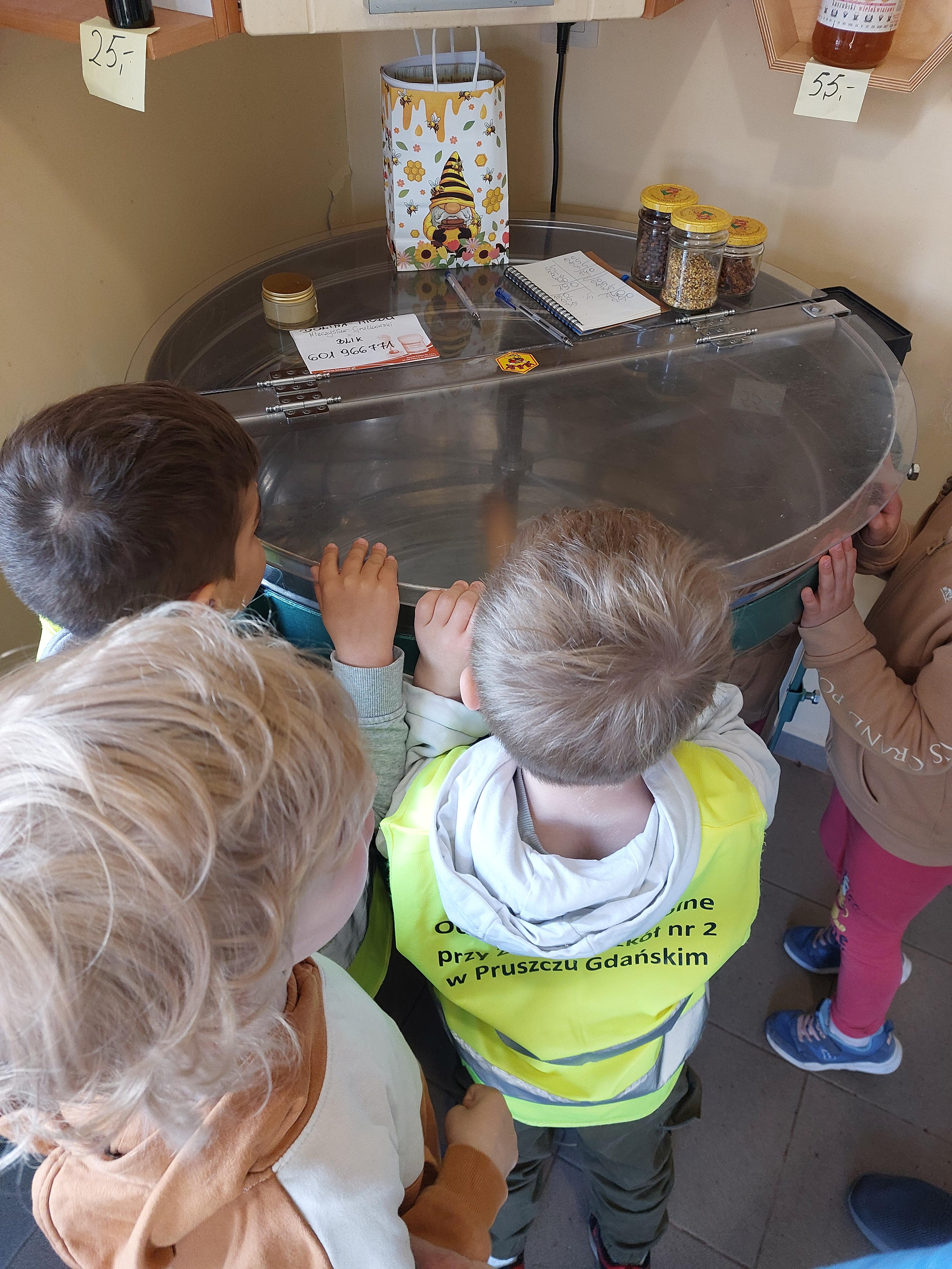 29 maja nasza grupa udała się autokarem na wycieczkę do Borowiny, gdzie odwiedziliśmy Dolinę Miodu! Tam obejrzeliśmy film o pszczołach, samodzielnie zrobiliśmy świeczki z wosku pszczelego i przeszliśmy leśną ścieżką edukacyjną, gdzie widzieliśmy prawdziwe ule i pszczoły oraz wysłuchaliśmy ciekawostek o pszczołach. Widzieliśmy też pszczołę-królową, spróbowaliśmy pysznego miodu i zobaczyliśmy maszynę, w której on wiruje! Później udaliśmy się do altanki, żeby przekąsić małe co nieco, a na końcu mieliśmy czas dla siebie na superanckim placu zabaw! W drogę powrotną wyruszyliśmy w świetnych nastrojach, każdy z nas dostał słoiczek miodu oraz Certyfikat Pracowitej Pszczółki. To był ekstra dzień!