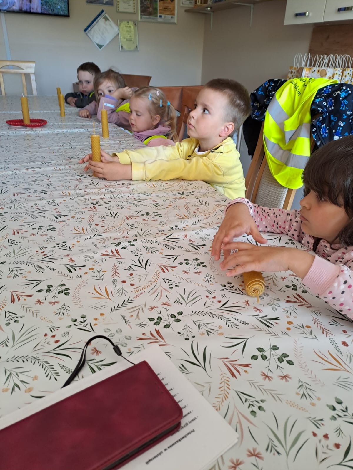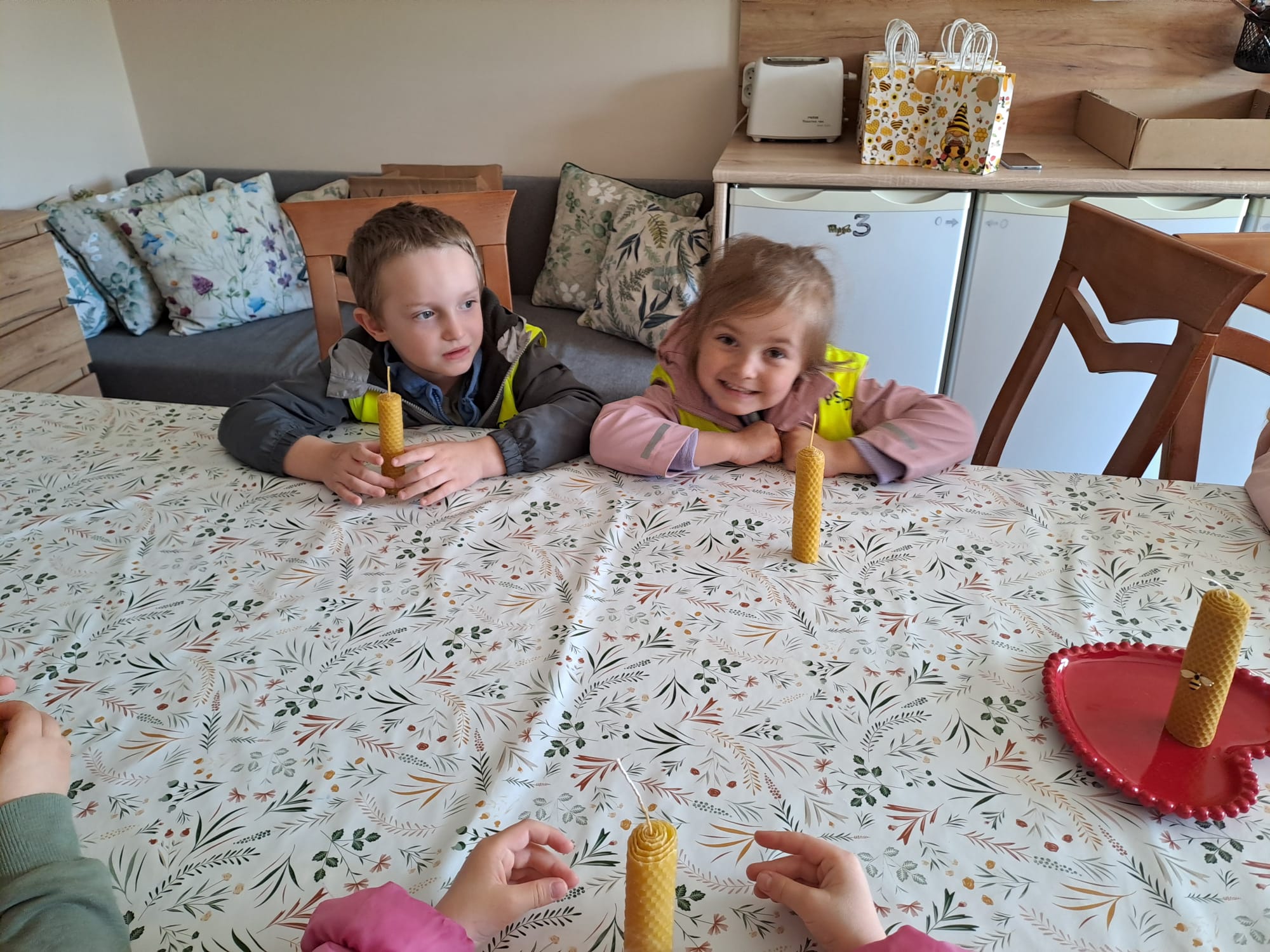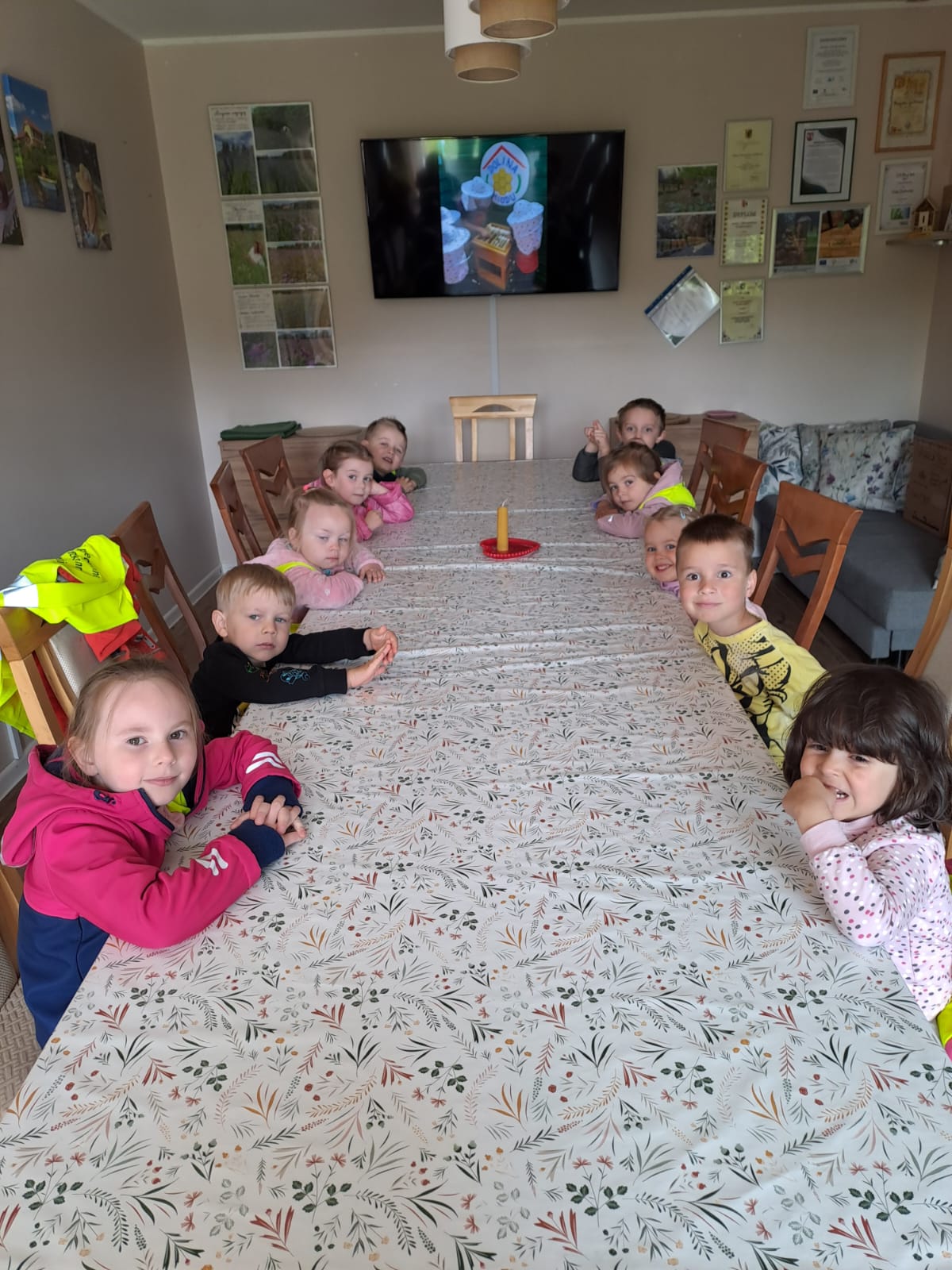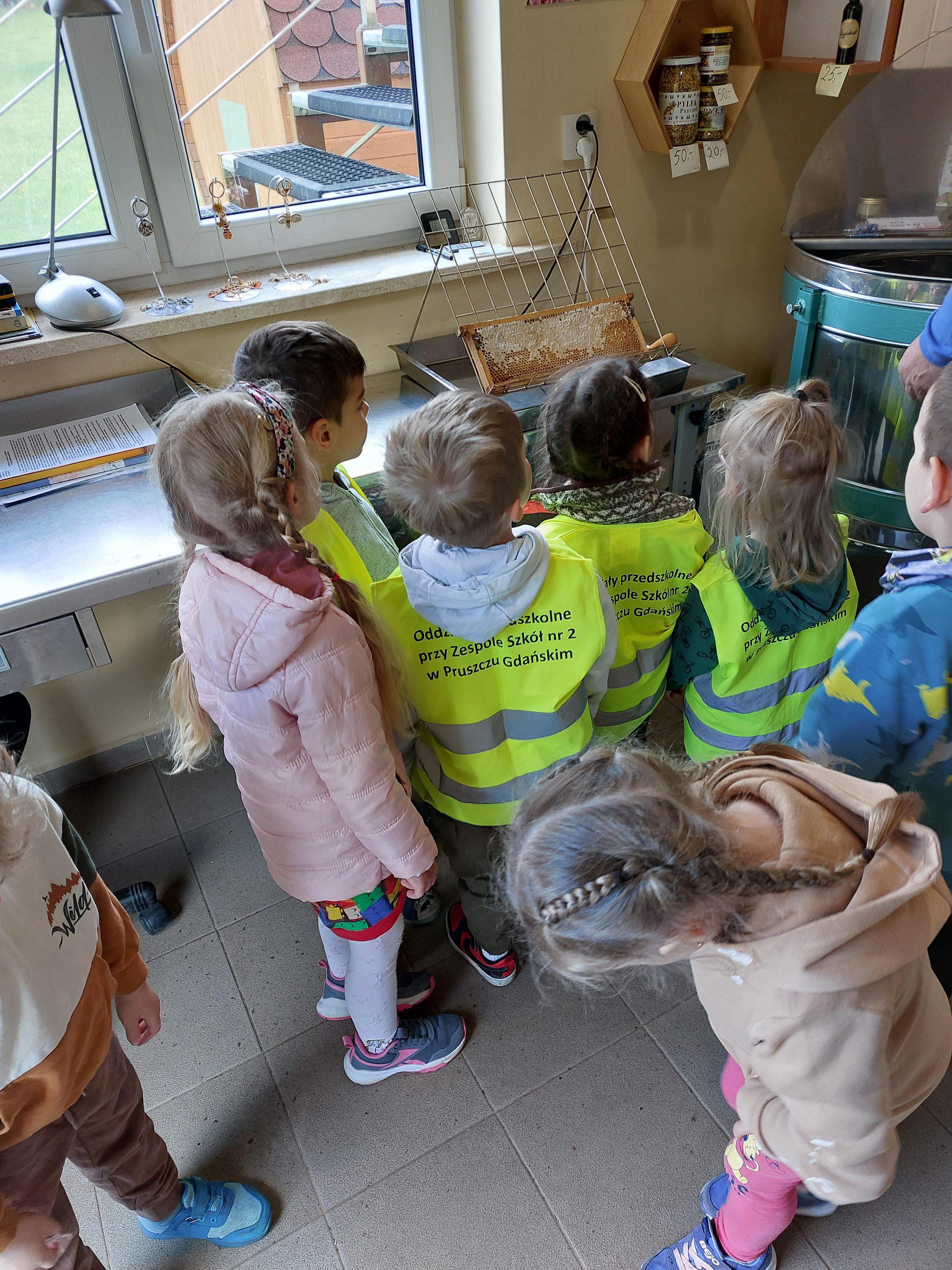 29 maja nasza grupa udała się autokarem na wycieczkę do Borowiny, gdzie odwiedziliśmy Dolinę Miodu! Tam obejrzeliśmy film o pszczołach, samodzielnie zrobiliśmy świeczki z wosku pszczelego i przeszliśmy leśną ścieżką edukacyjną, gdzie widzieliśmy prawdziwe ule i pszczoły oraz wysłuchaliśmy ciekawostek o pszczołach. Widzieliśmy też pszczołę-królową, spróbowaliśmy pysznego miodu i zobaczyliśmy maszynę, w której on wiruje! Później udaliśmy się do altanki, żeby przekąsić małe co nieco, a na końcu mieliśmy czas dla siebie na superanckim placu zabaw! W drogę powrotną wyruszyliśmy w świetnych nastrojach, każdy z nas dostał słoiczek miodu oraz Certyfikat Pracowitej Pszczółki. To był ekstra dzień!
