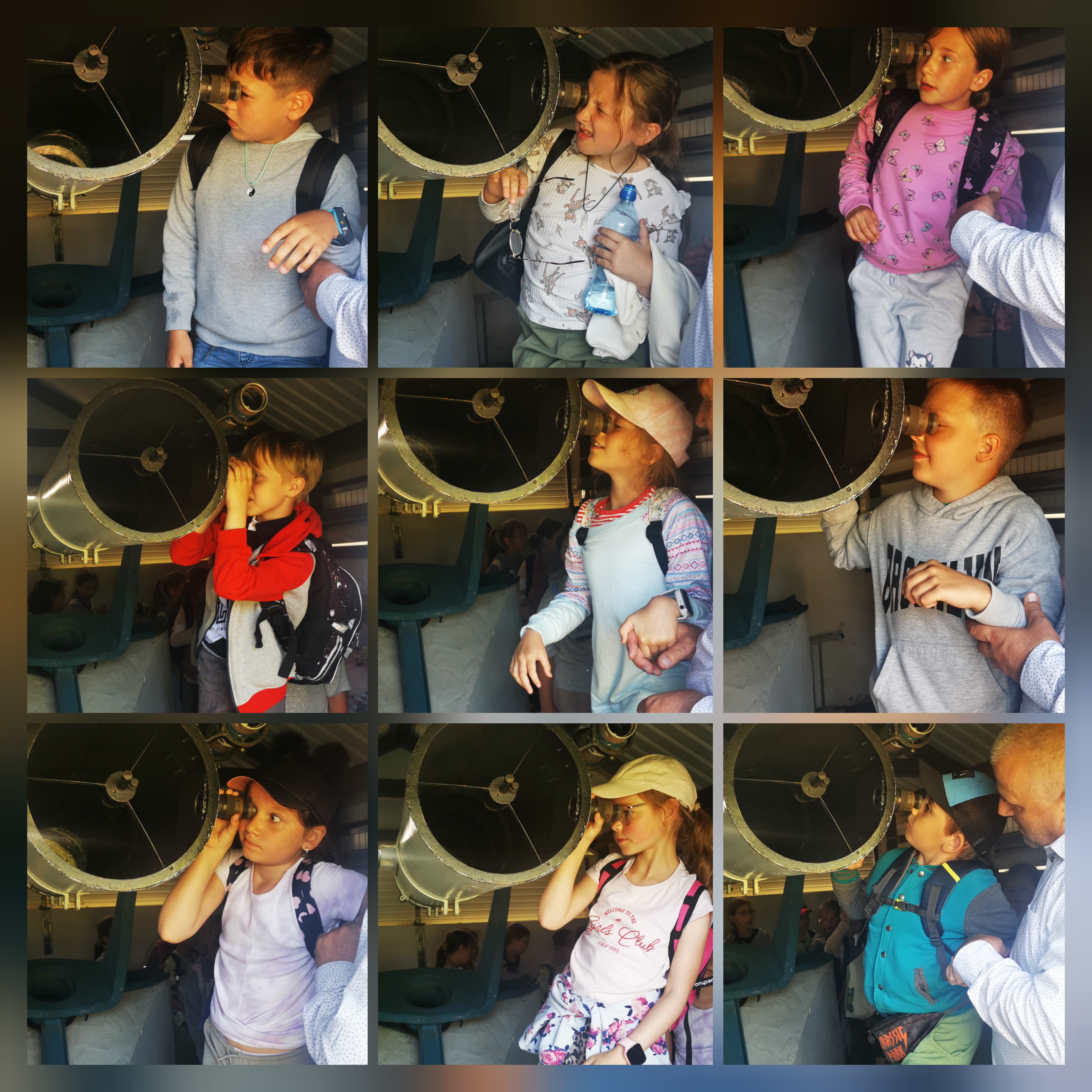 Odwiedziliśmy również Planetarium, w którym obejrzeliśmy projekcję o układzie słonecznym i gwiazdozbiorach. Zaciekawieni obsługą teleskopów i lunet wybraliśmy się do Parku Astronomicznego, gdzie samodzielnie próbowaliśmy podejrzeć gwiazdy, odległe obiekty.