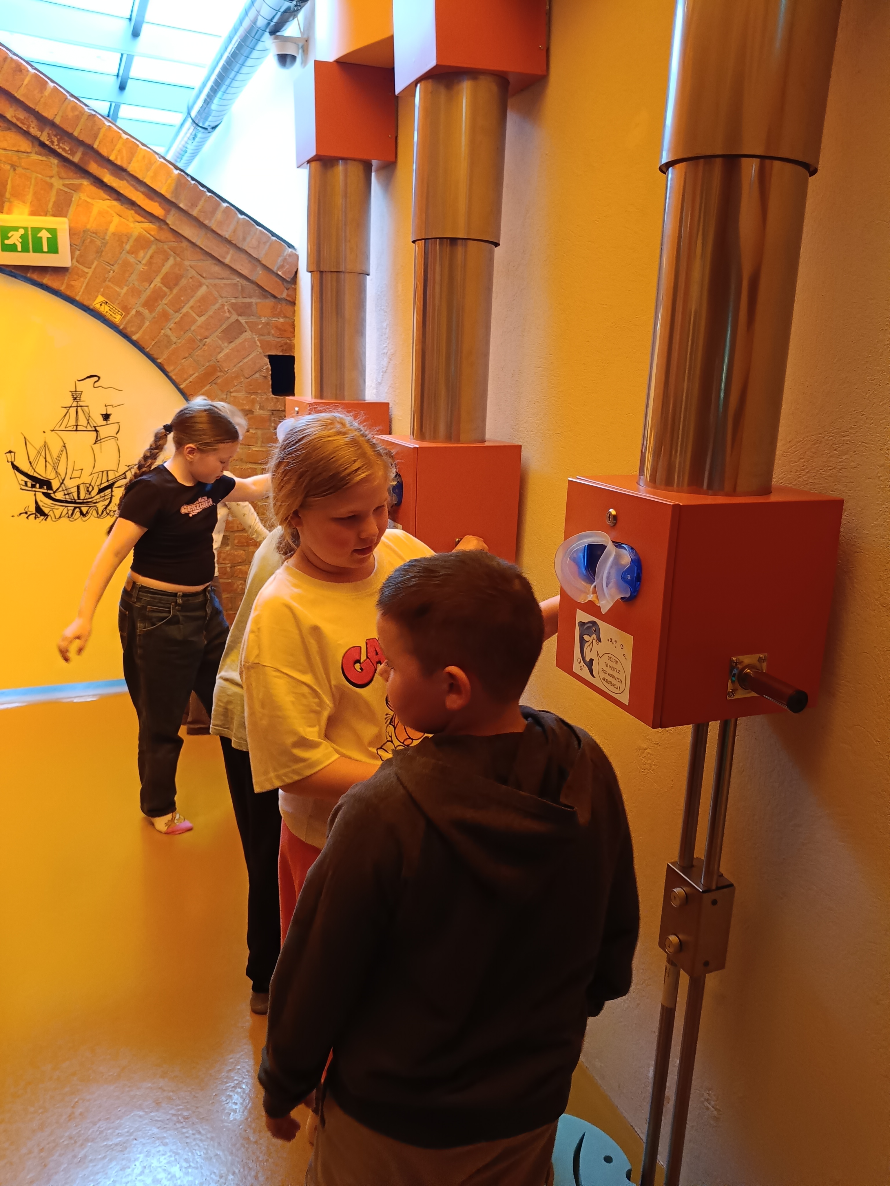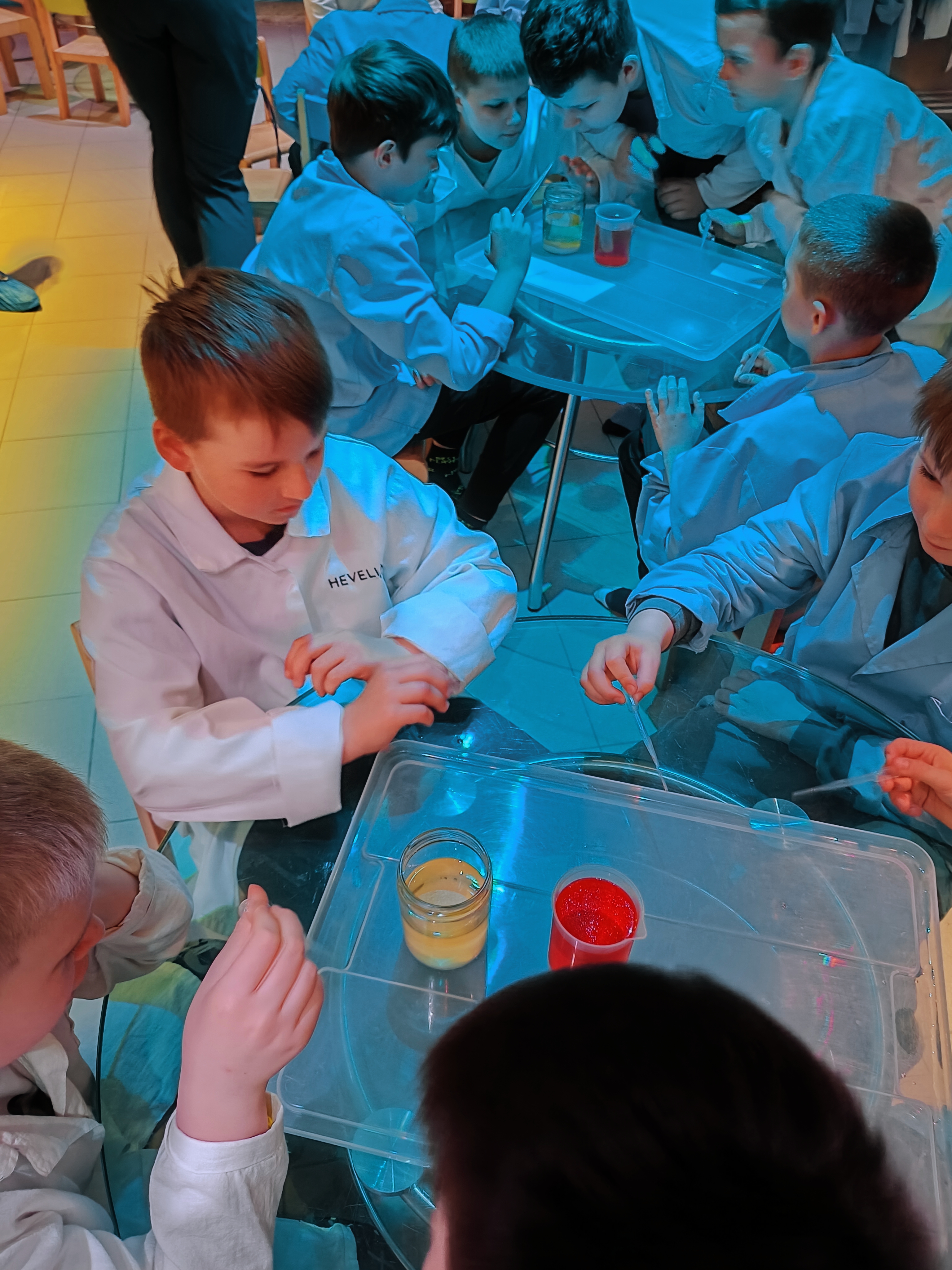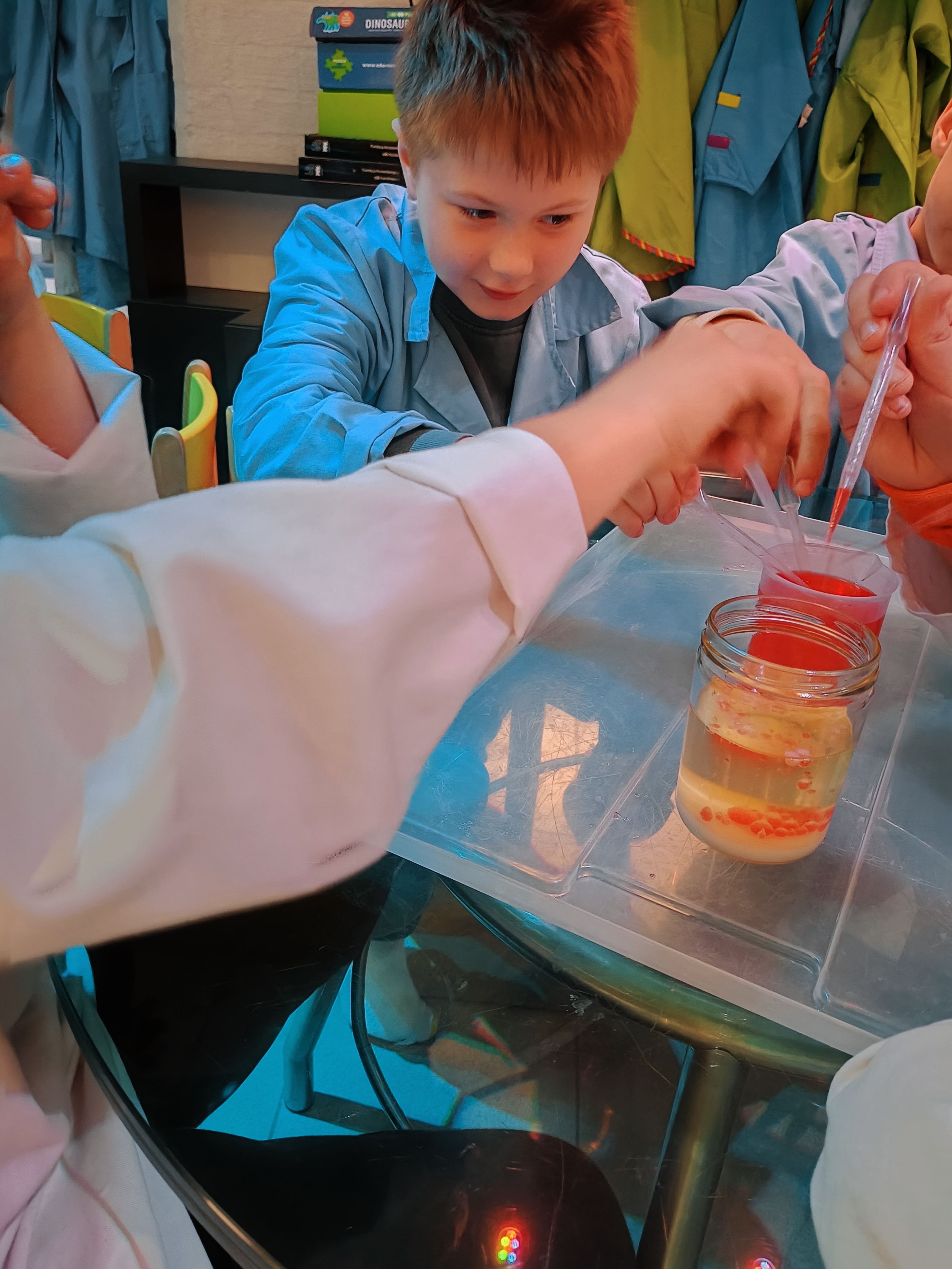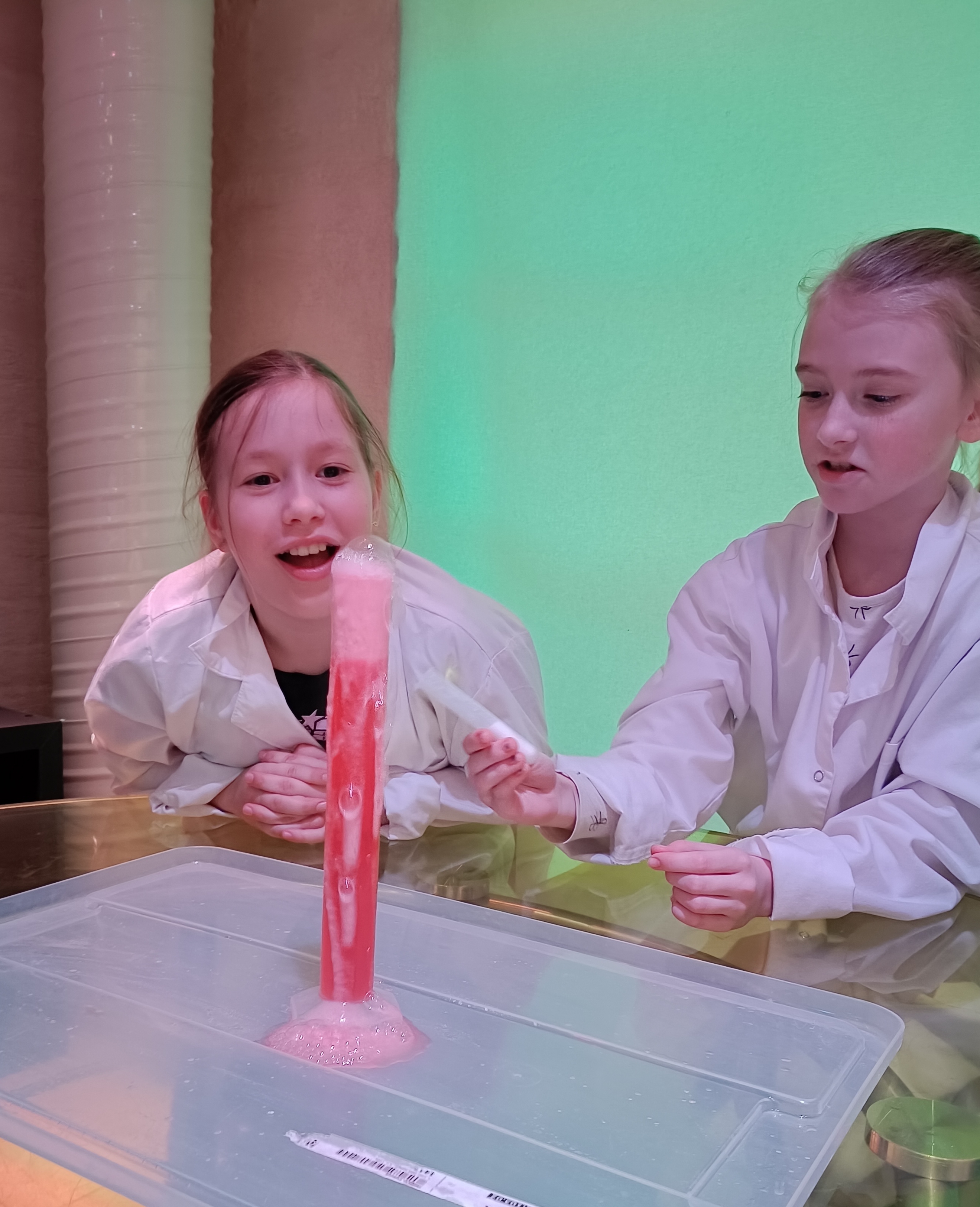 Uczniowie wzięli udział w wyjątkowej wycieczce do Hevelianum w Gdańsku. Podczas wizyty dzieci uczestniczyły w warsztatach „Mali chemicy w kuchni”, gdzie mogły samodzielnie przeprowadzać doświadczenia chemiczne w praktyce.