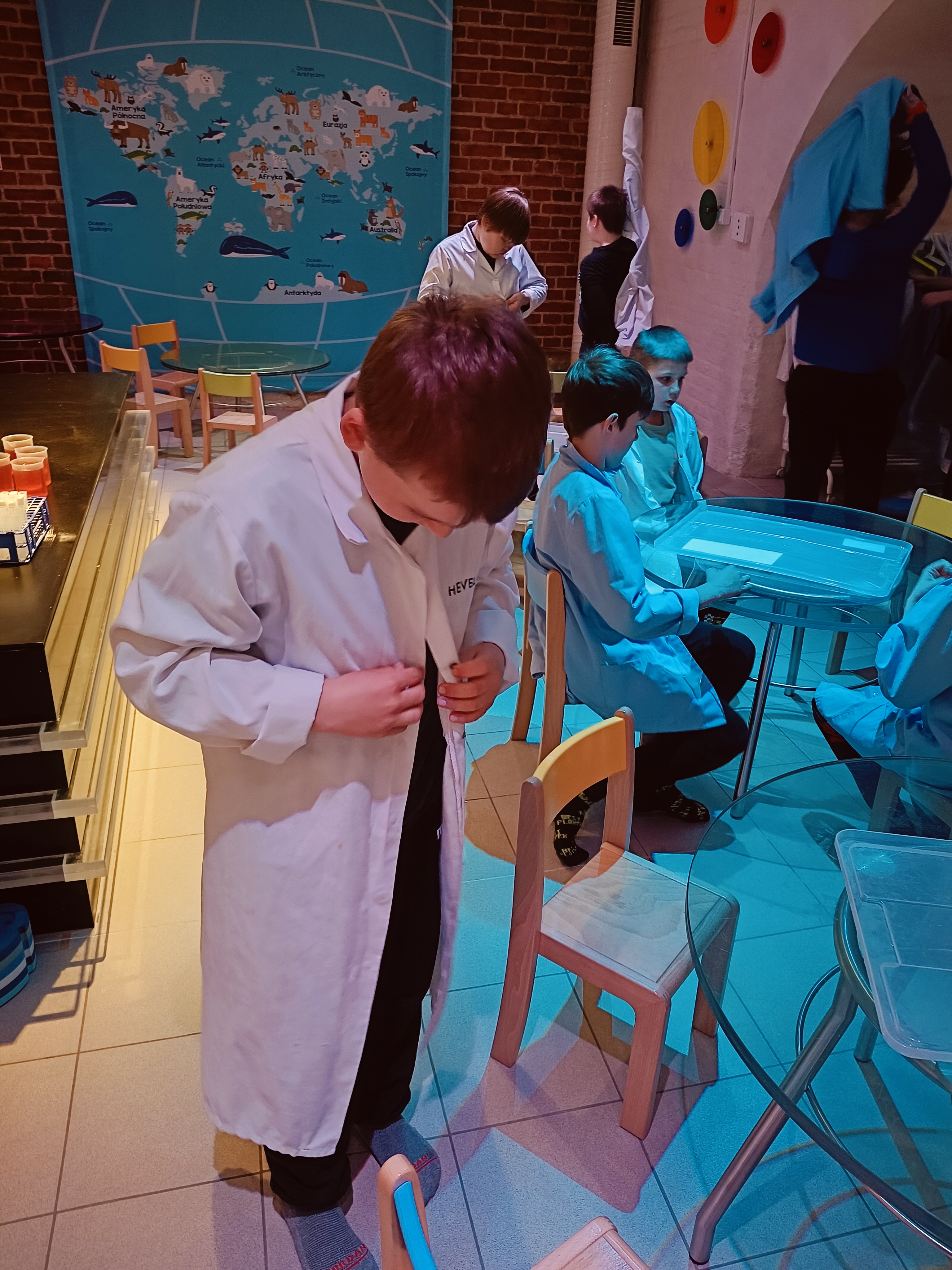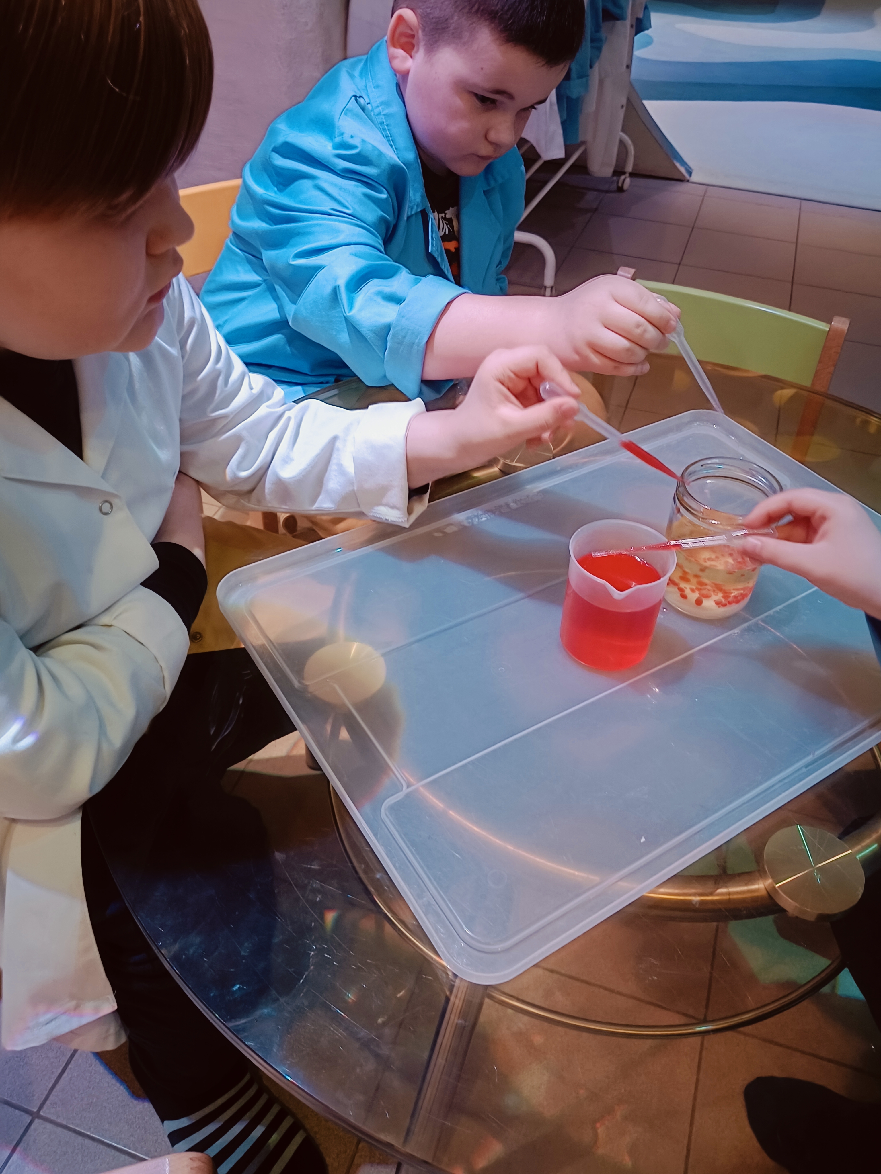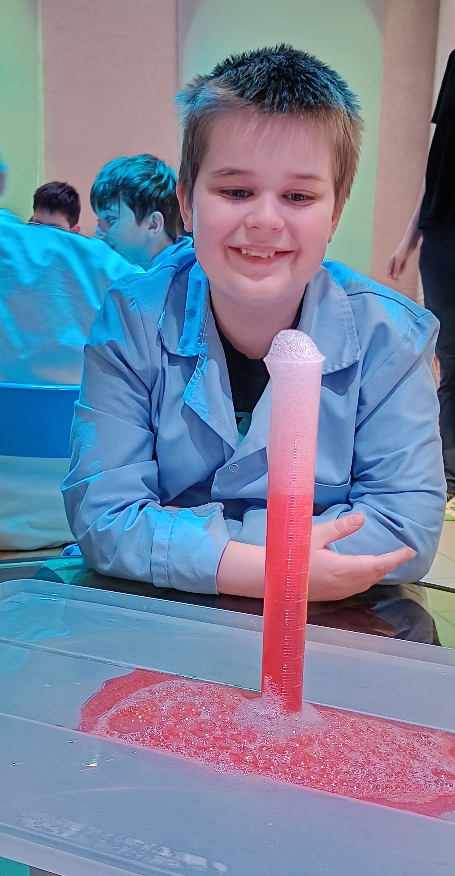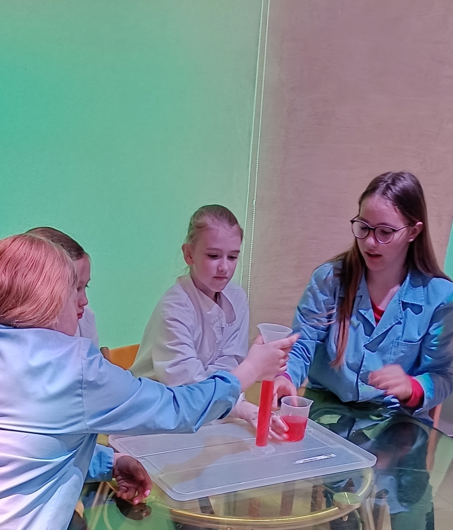 Uczniowie wzięli udział w wyjątkowej wycieczce do Hevelianum w Gdańsku. Podczas wizyty dzieci uczestniczyły w warsztatach „Mali chemicy w kuchni”, gdzie mogły samodzielnie przeprowadzać doświadczenia chemiczne w praktyce.