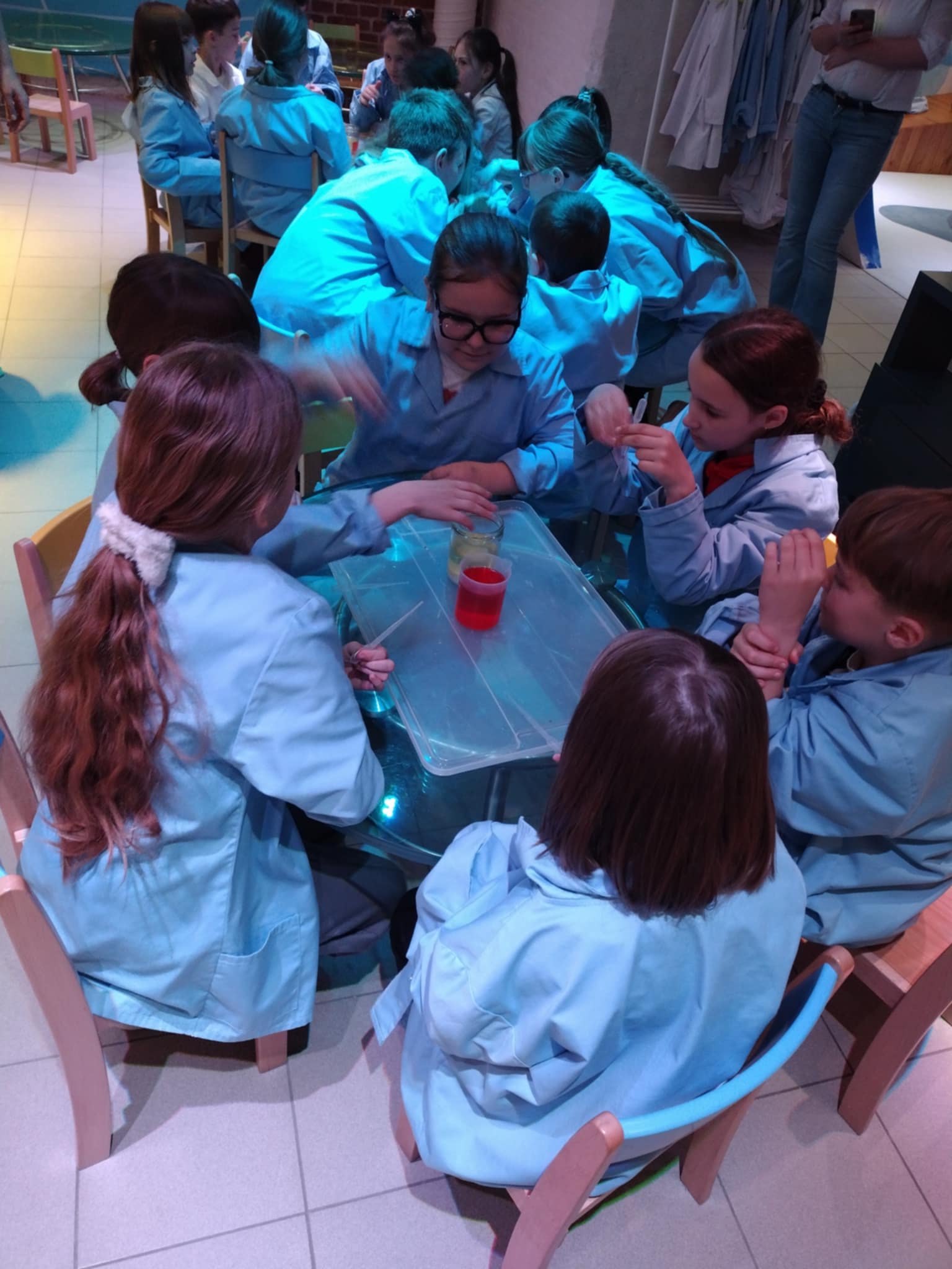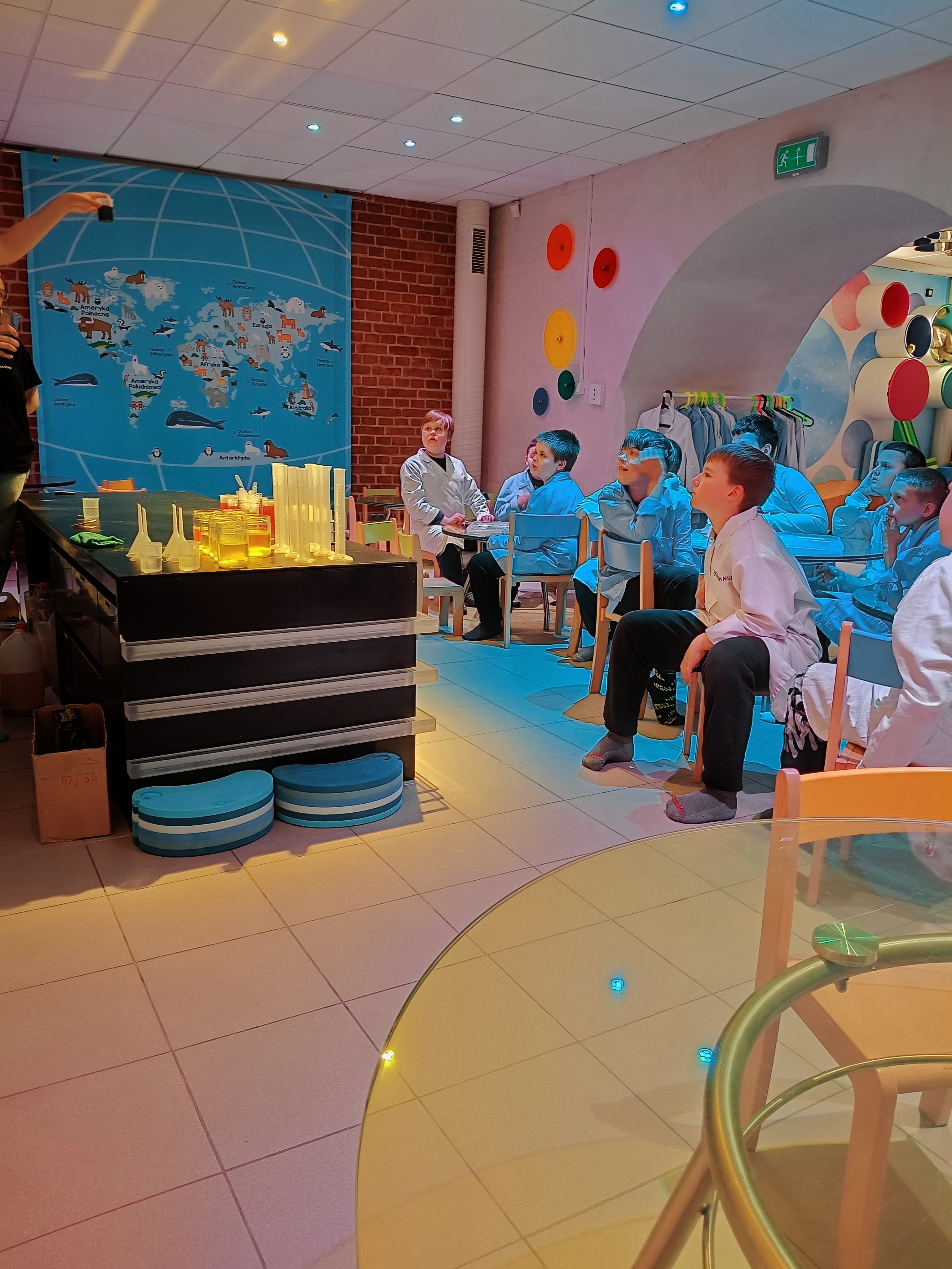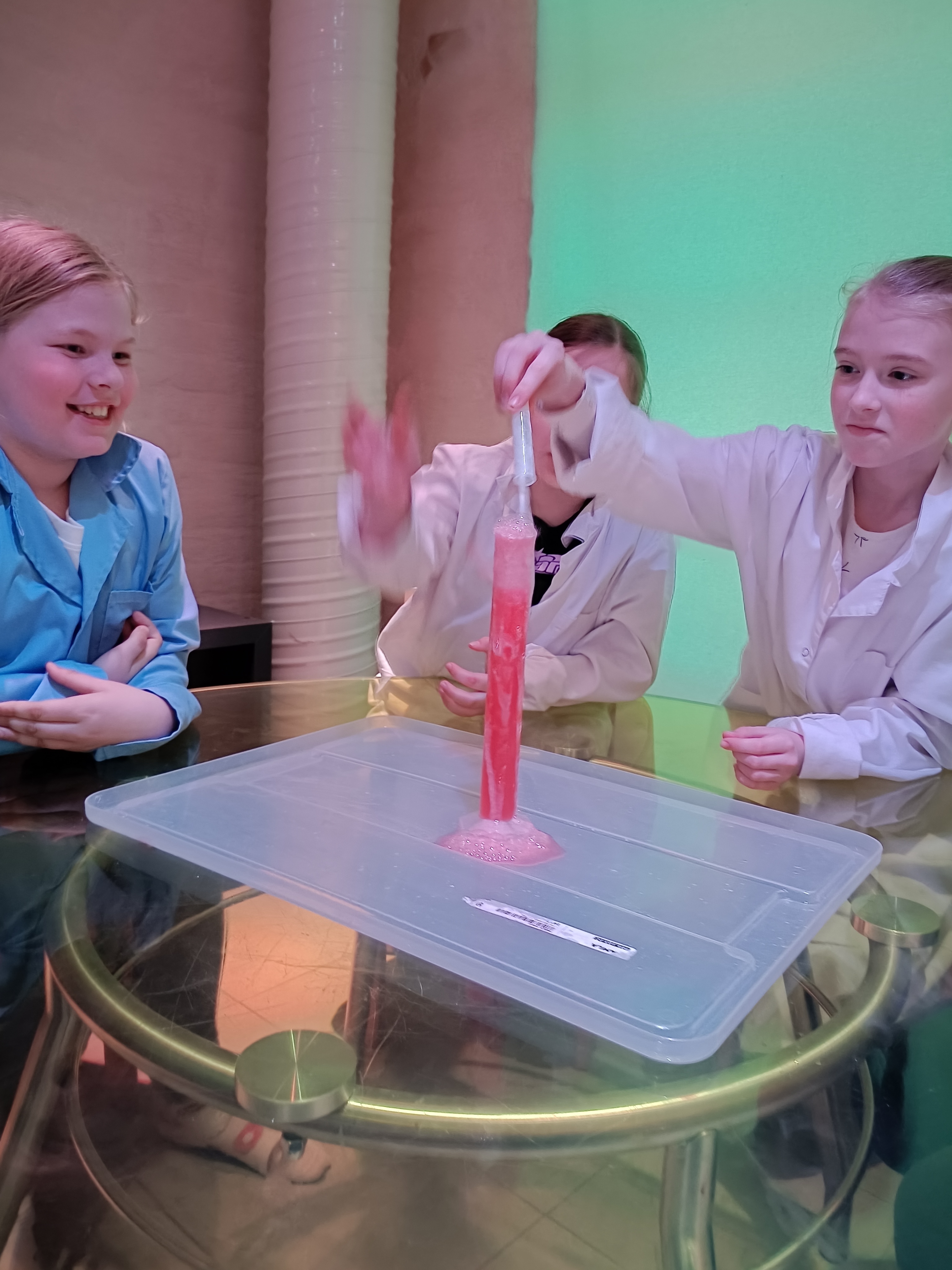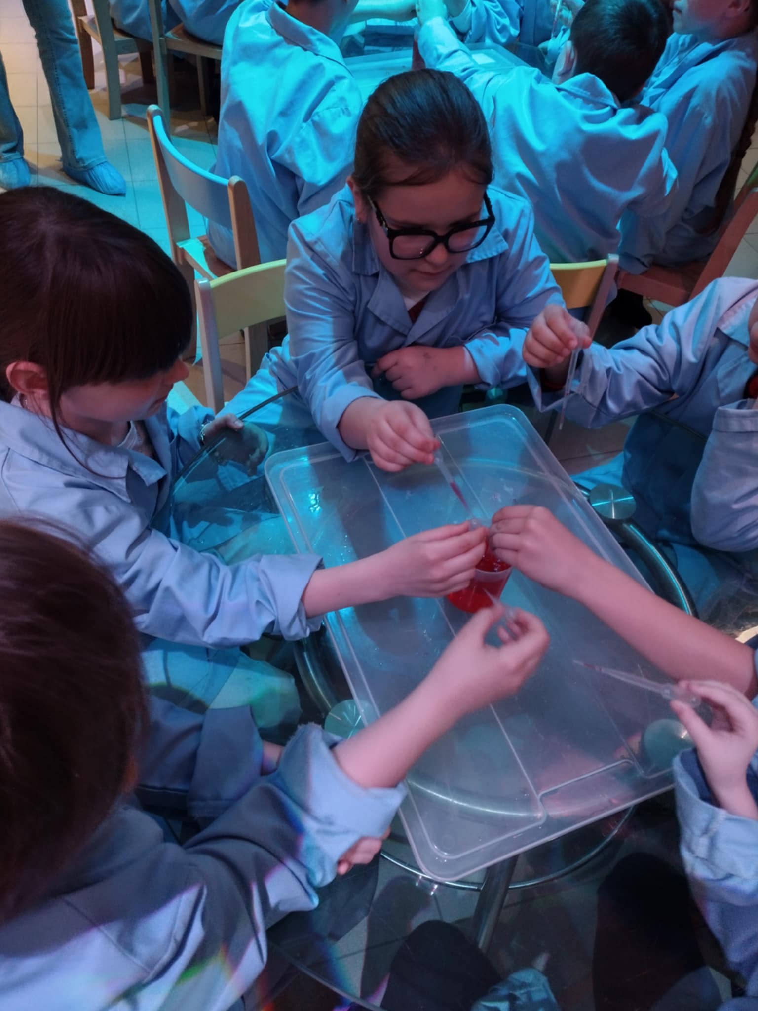 Uczniowie wzięli udział w wyjątkowej wycieczce do Hevelianum w Gdańsku. Podczas wizyty dzieci uczestniczyły w warsztatach „Mali chemicy w kuchni”, gdzie mogły samodzielnie przeprowadzać doświadczenia chemiczne w praktyce.