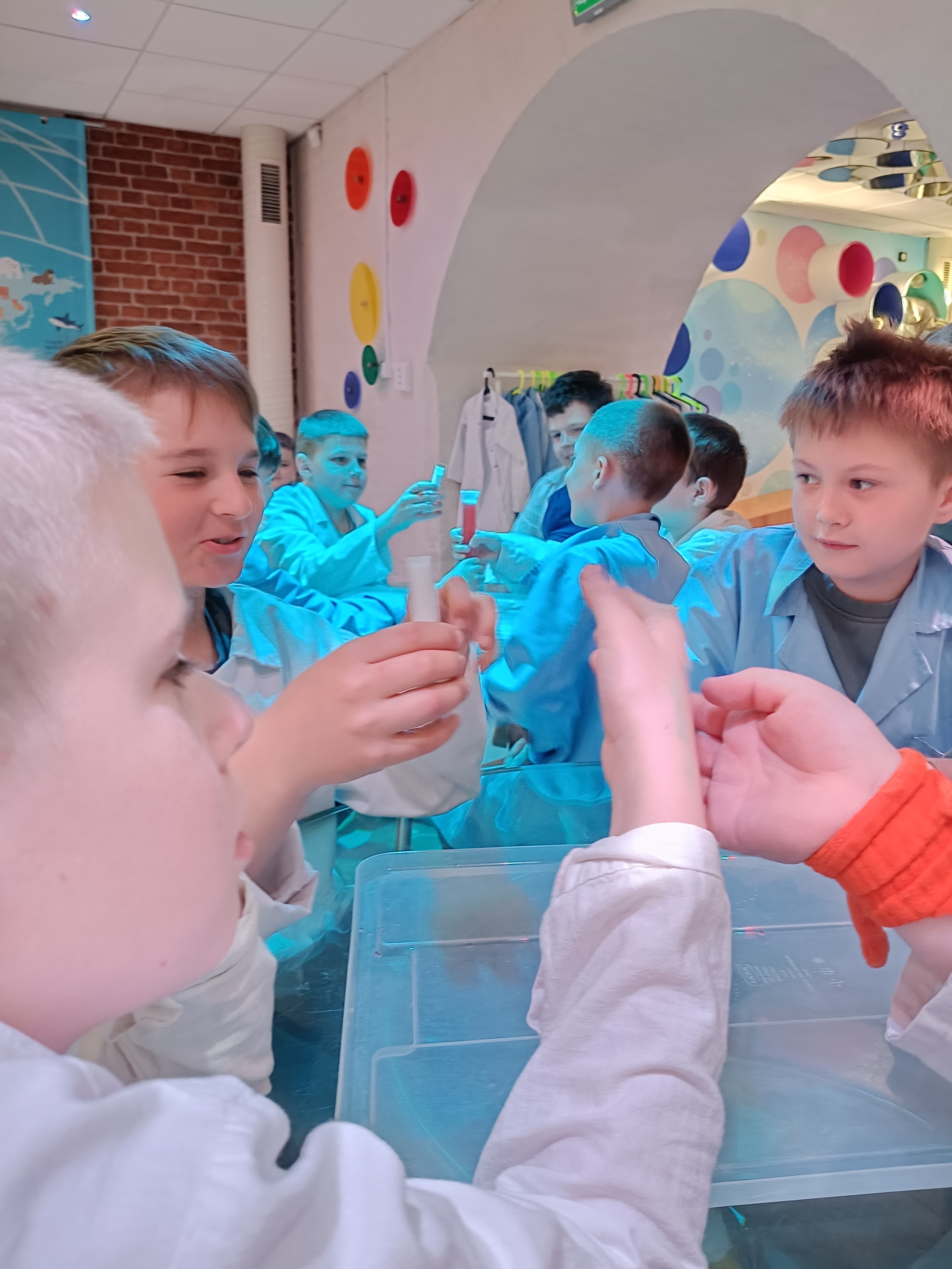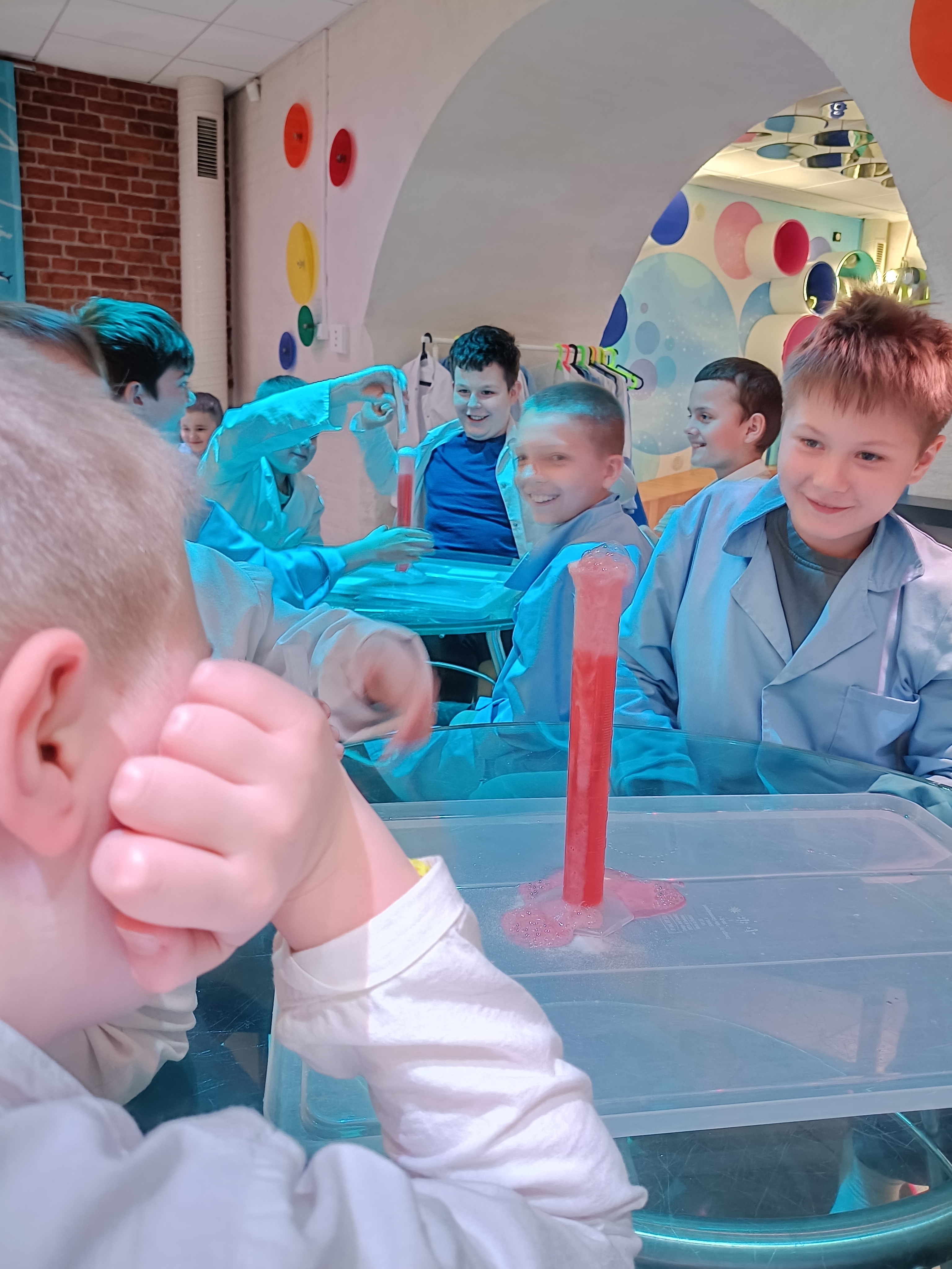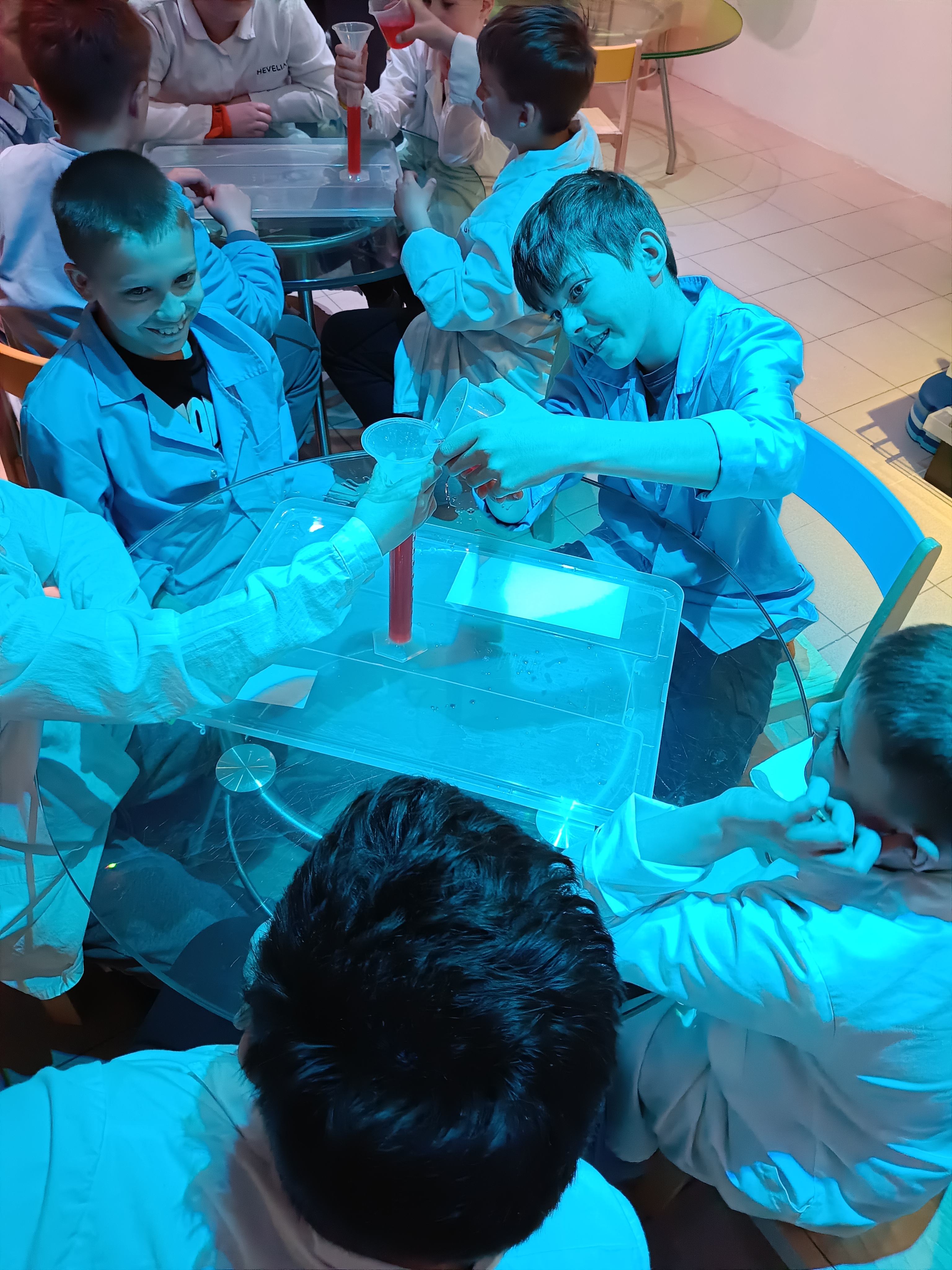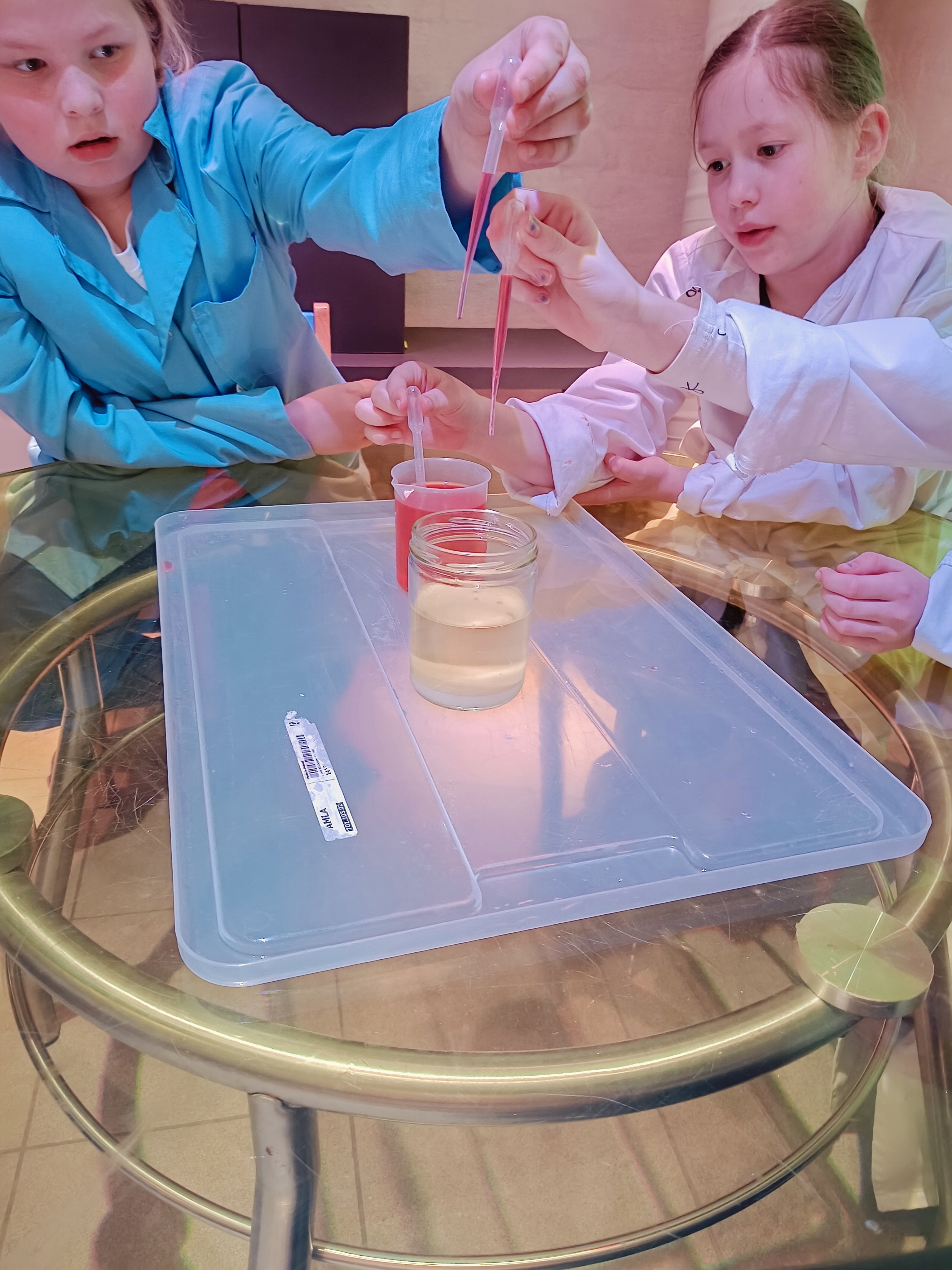Uczniowie wzięli udział w wyjątkowej wycieczce do Hevelianum w Gdańsku. Podczas wizyty dzieci uczestniczyły w warsztatach „Mali chemicy w kuchni”, gdzie mogły samodzielnie przeprowadzać doświadczenia chemiczne w praktyce.