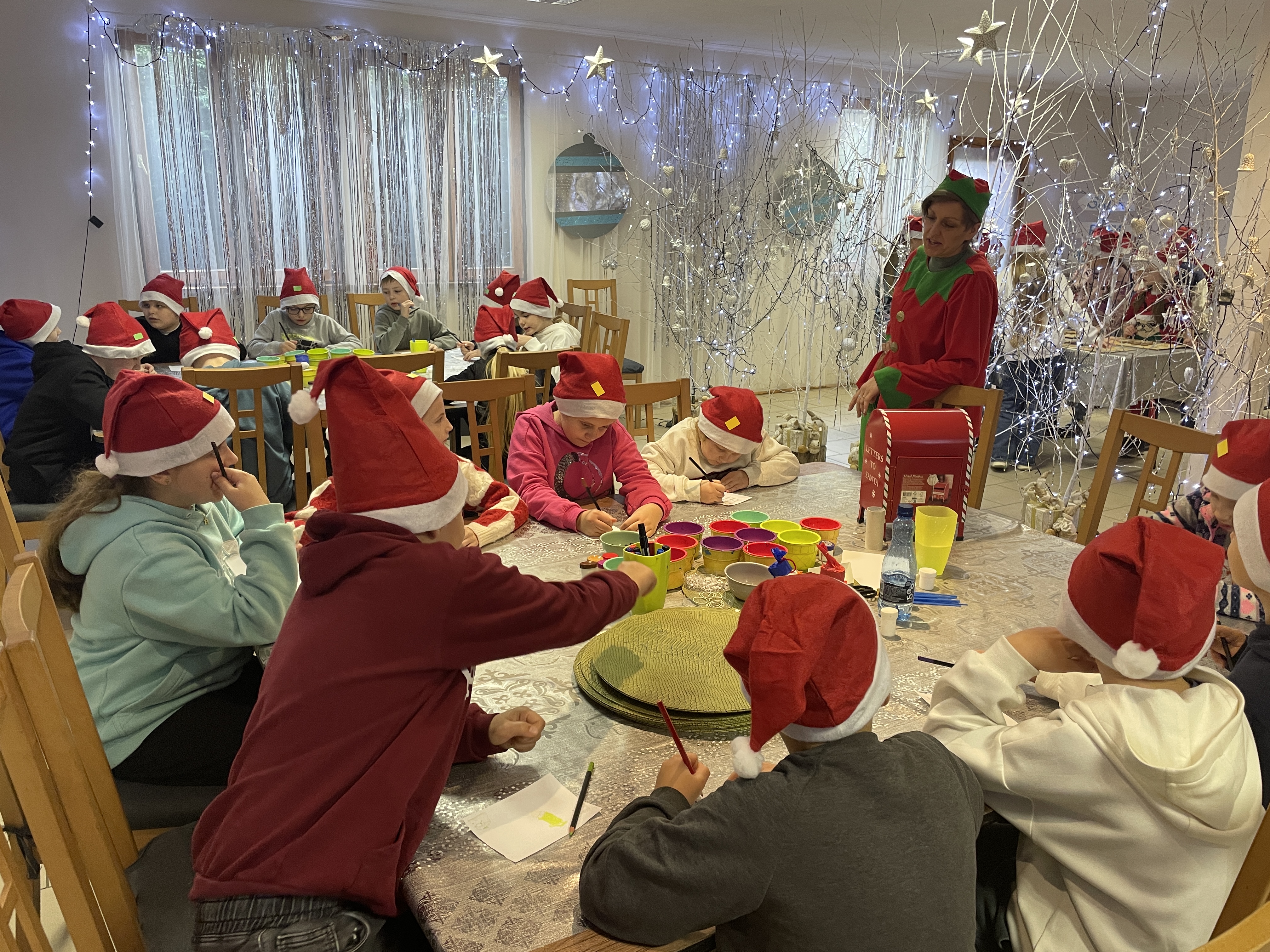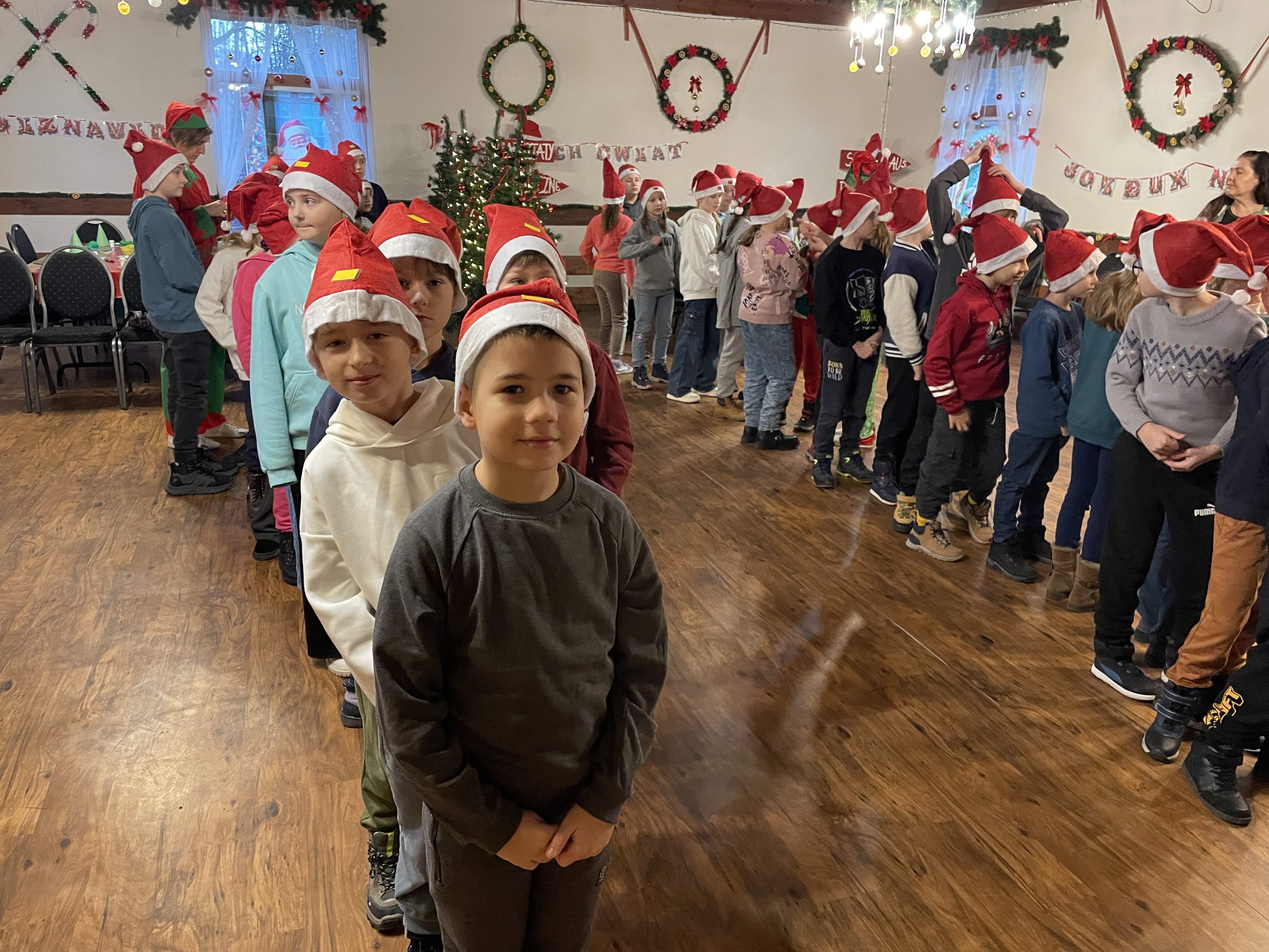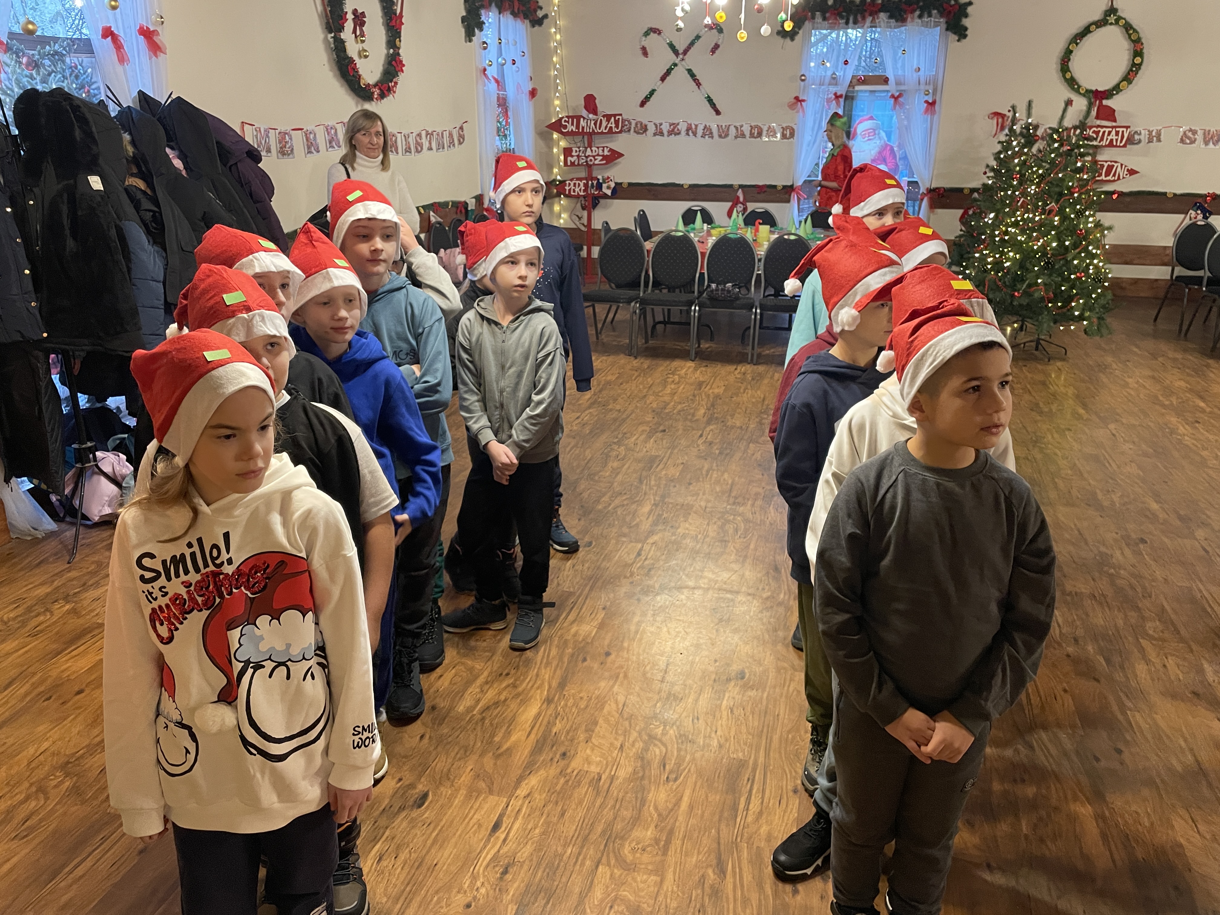 W dniu 12 grudnia 2024 roku wybraliśmy się na wycieczkę do Mikołajkowej Osady w Przywidzu. Uczniowie wzięli udział w świątecznych warsztatach, podczas których poznali tradycje związane ze Świętami Bożego Narodzenia. Dzieci z dużym zaangażowaniem uczestniczyły w przygotowywaniu ozdób choinkowych, dekorowaniu pierników oraz wspólnym kolędowaniu. Spotkanie z Mikołajem sprawiło wszystkim wiele radości. Wycieczka przebiegła w miłej, świątecznej atmosferze i dostarczyła wielu niezapomnianych wrażeń.