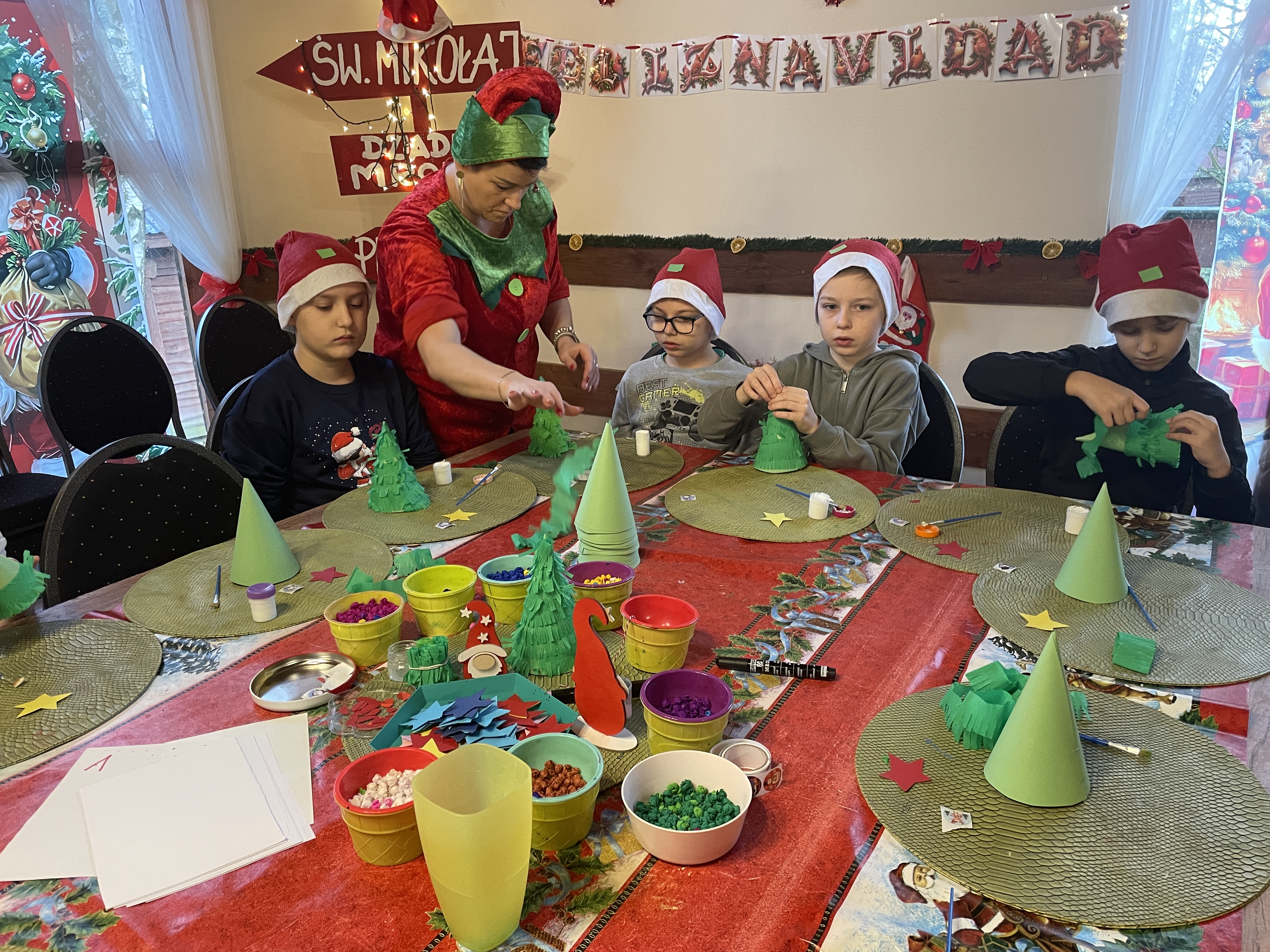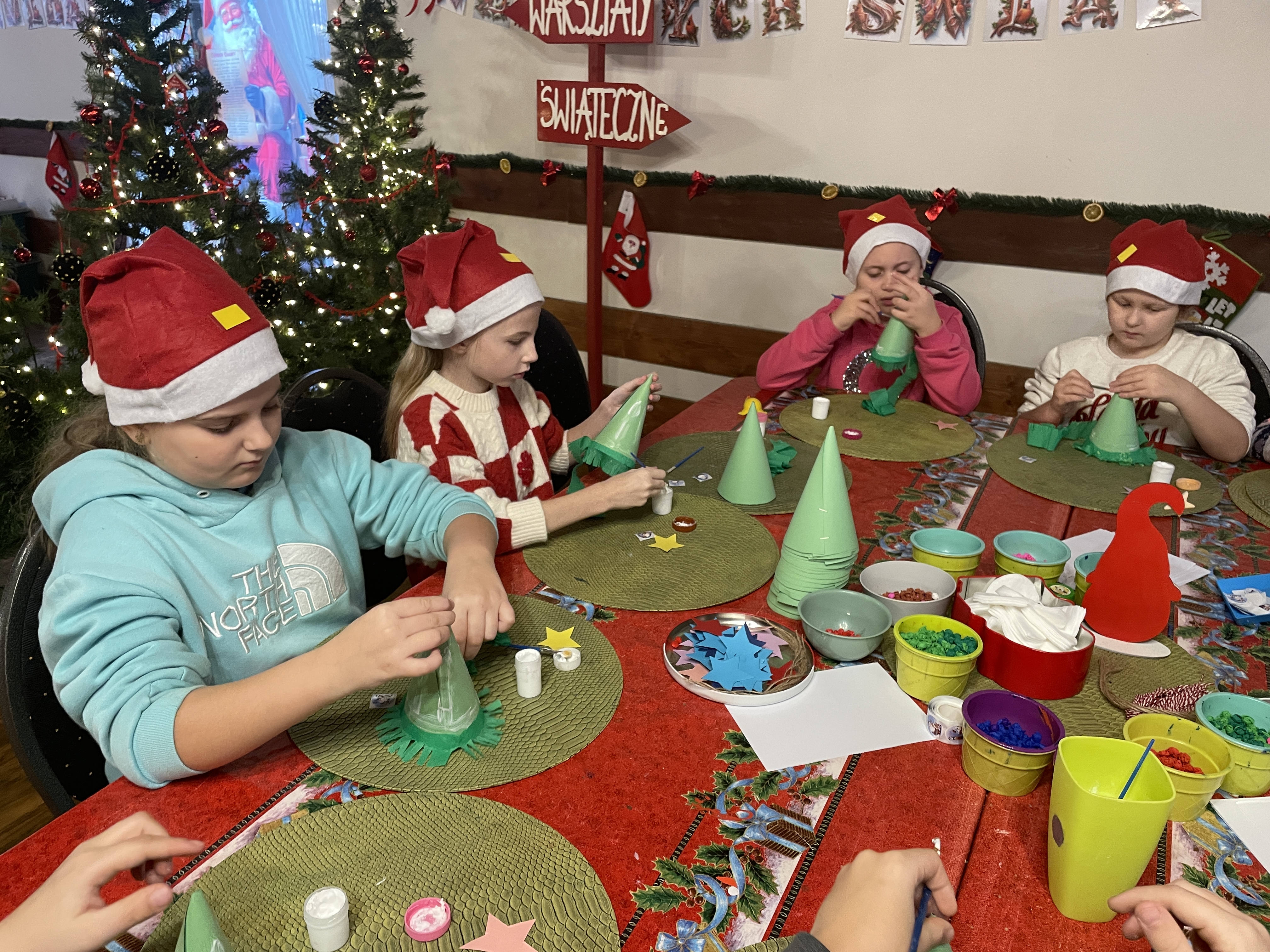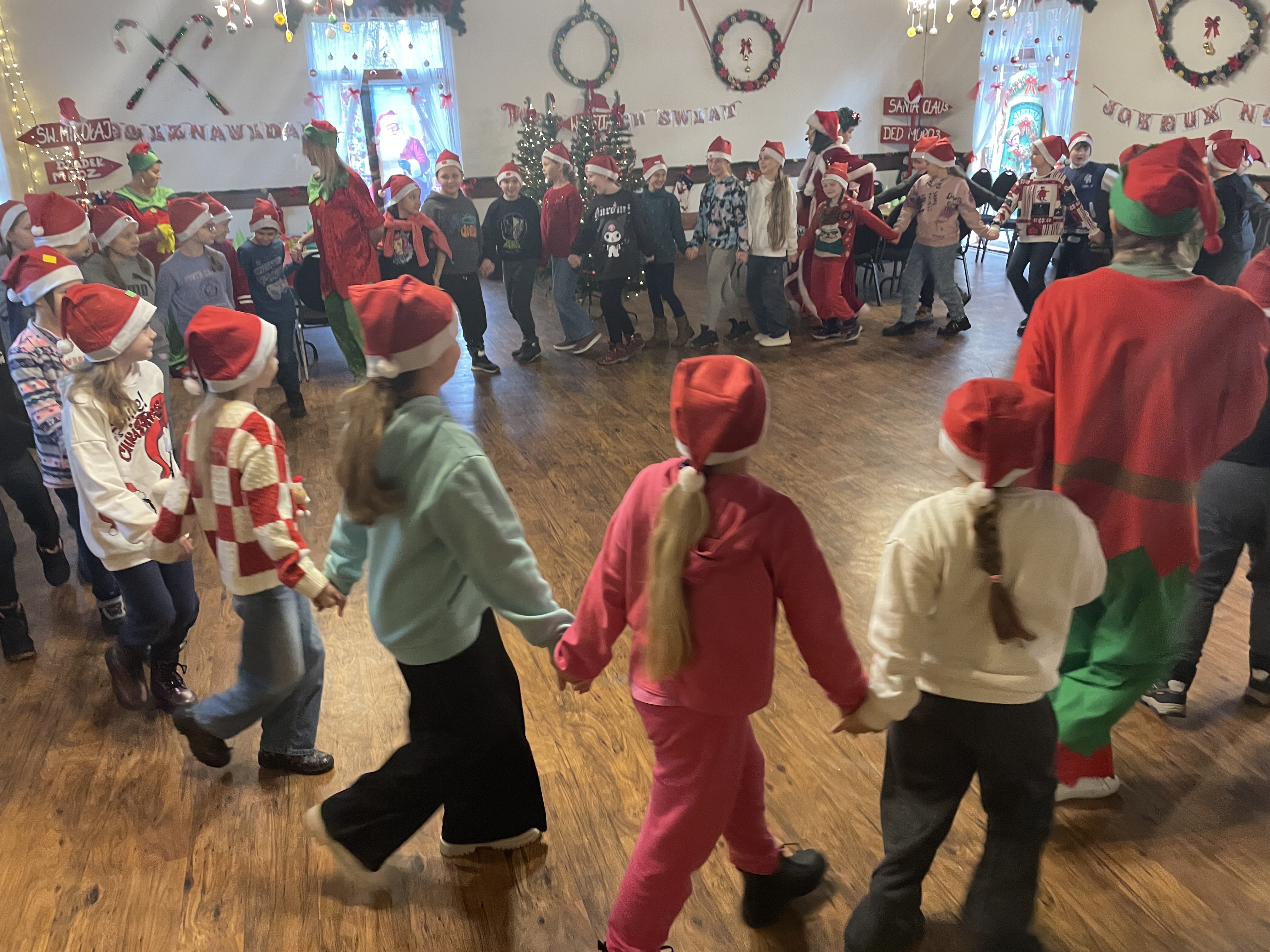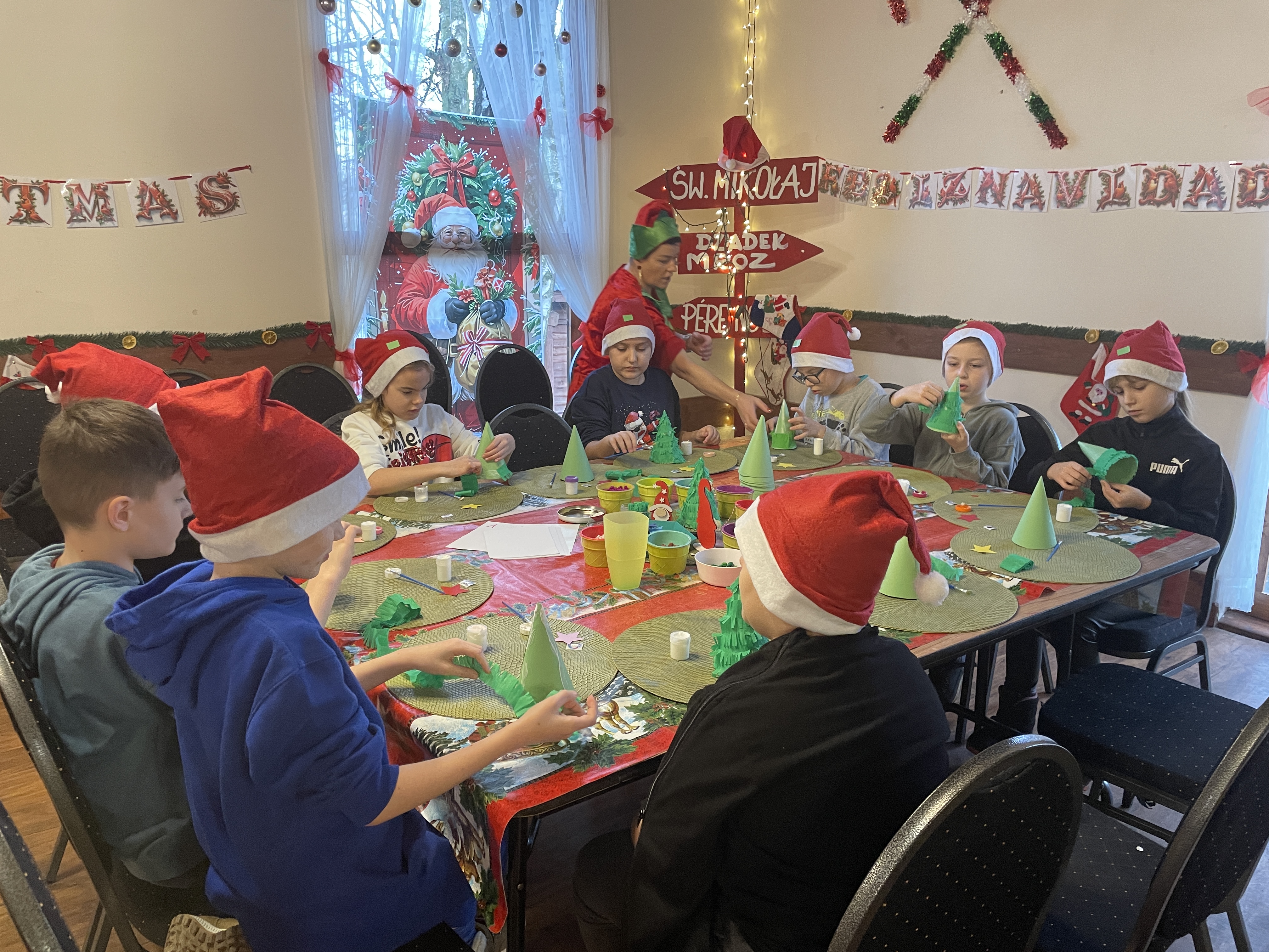 W dniu 12 grudnia 2024 roku wybraliśmy się na wycieczkę do Mikołajkowej Osady w Przywidzu. Uczniowie wzięli udział w świątecznych warsztatach, podczas których poznali tradycje związane ze Świętami Bożego Narodzenia. Dzieci z dużym zaangażowaniem uczestniczyły w przygotowywaniu ozdób choinkowych, dekorowaniu pierników oraz wspólnym kolędowaniu. Spotkanie z Mikołajem sprawiło wszystkim wiele radości. Wycieczka przebiegła w miłej, świątecznej atmosferze i dostarczyła wielu niezapomnianych wrażeń.