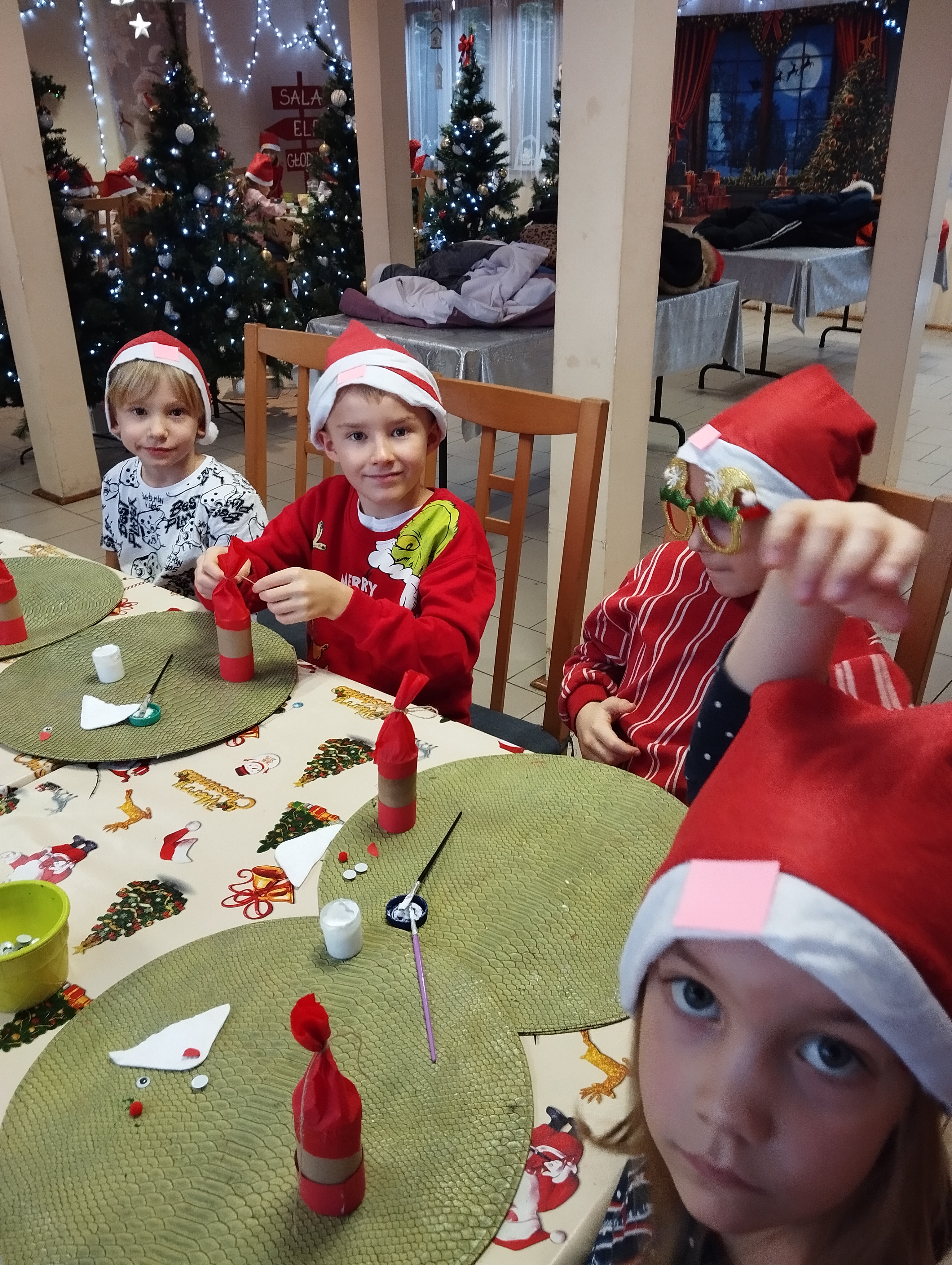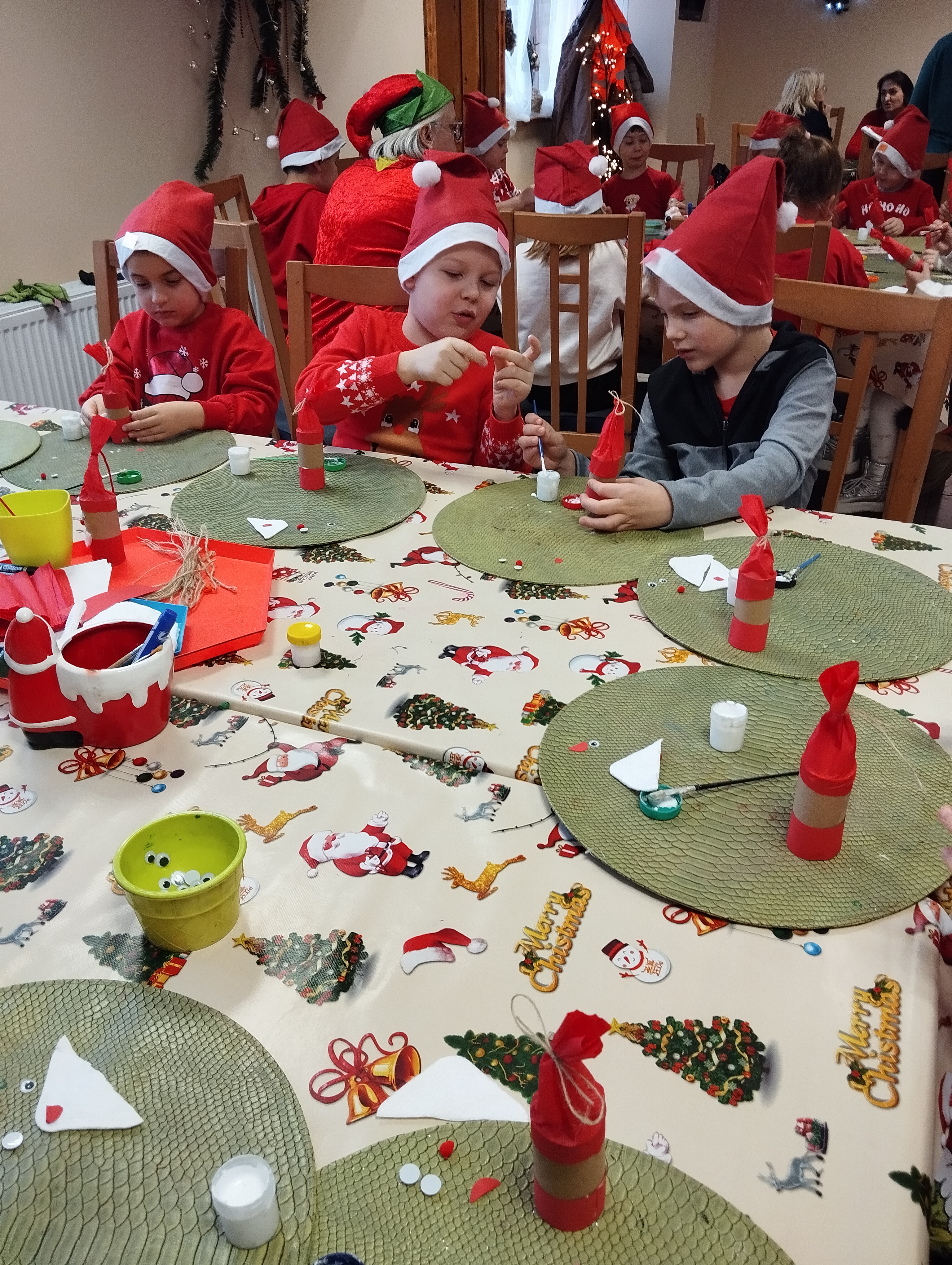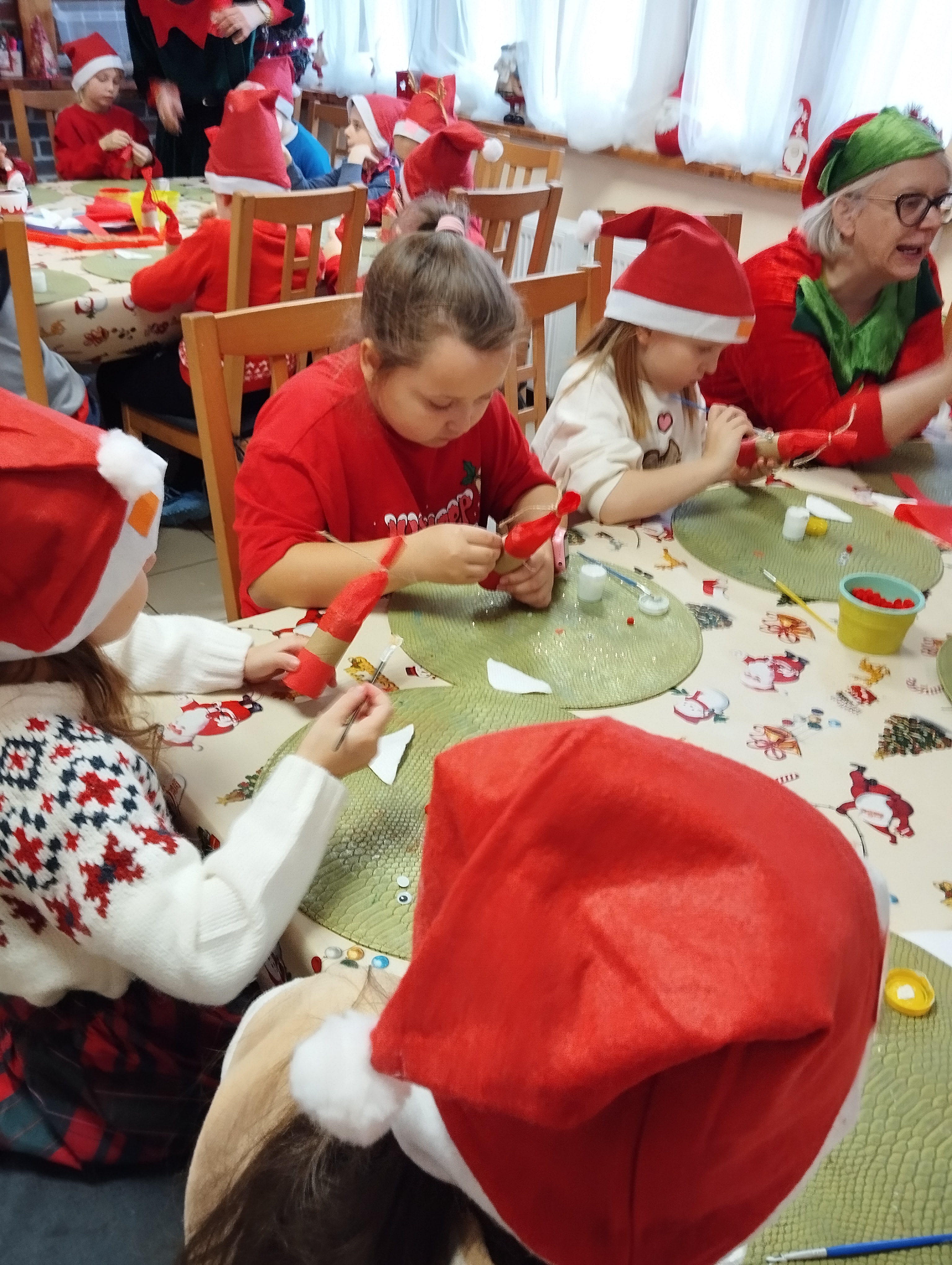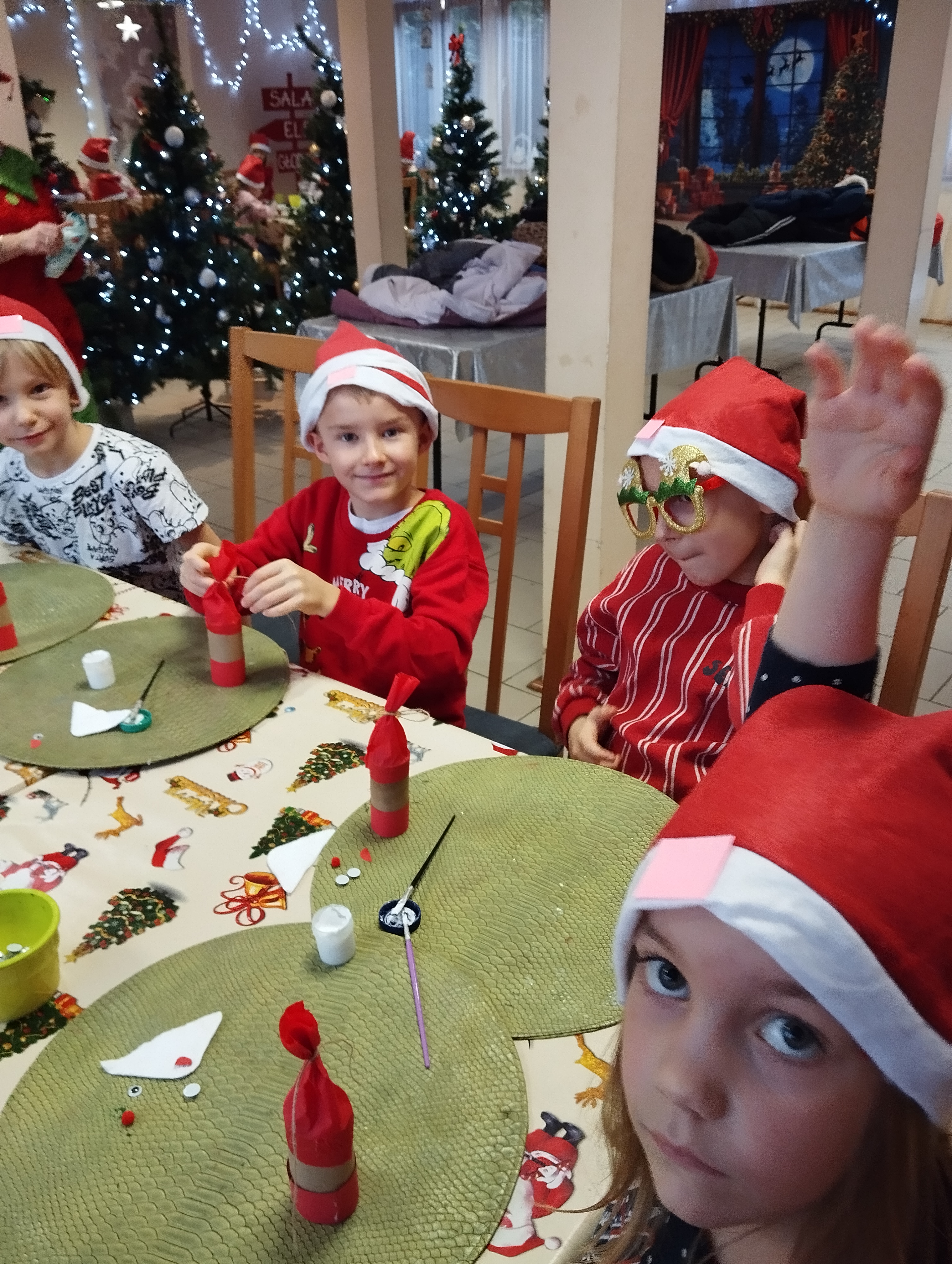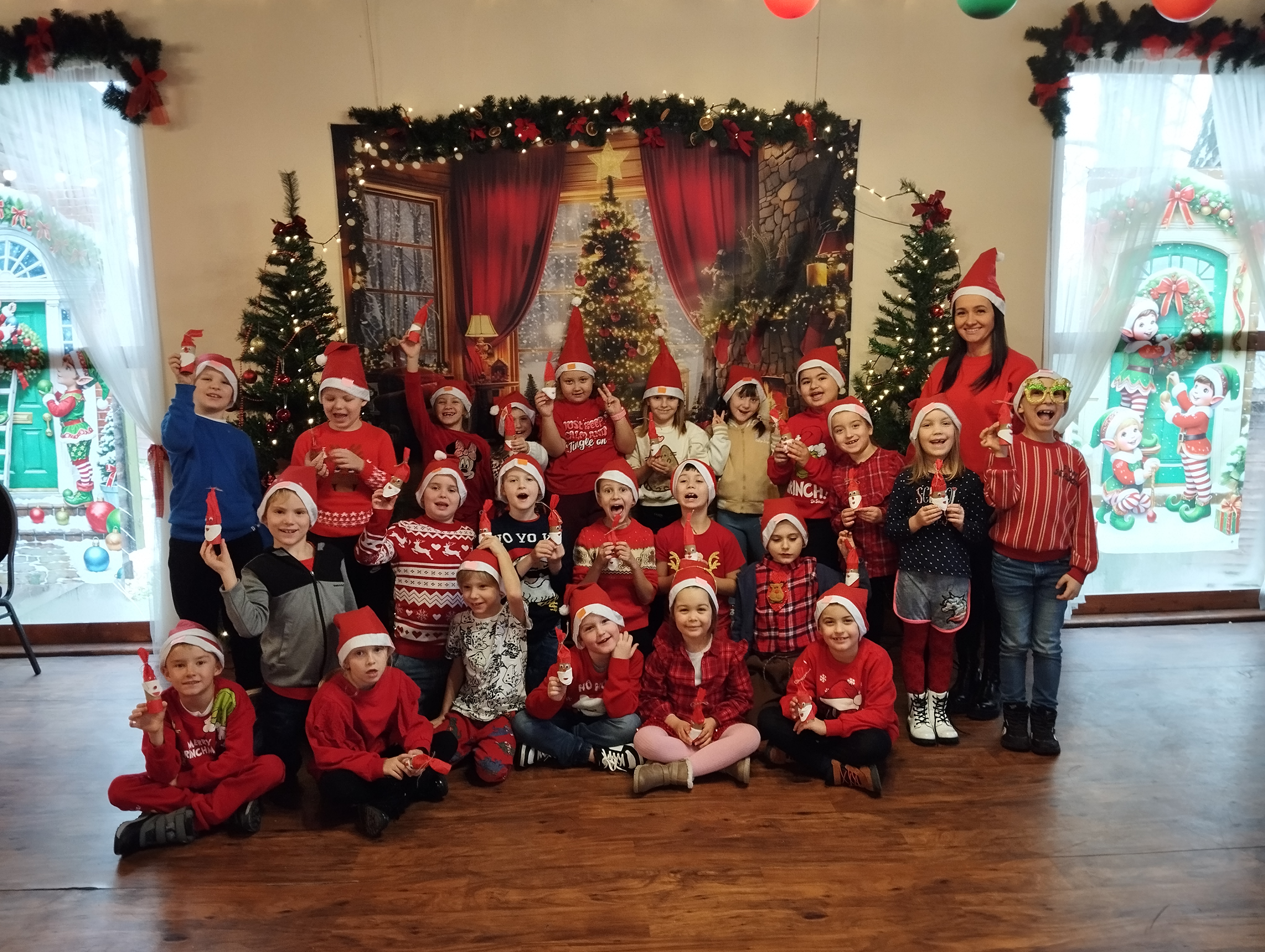 W listopadzie uczniowie klasy 1 d wybrali się na pełną radości wycieczkę do Osady Świętego Mikołaja w Przywidzu. Na dzieci czekało wiele atrakcji i niezapomnianych wrażeń. Podczas pobytu uczestniczyły w wesołych tańcach i zabawach ruchowych, brały udział w kreatywnych warsztatach plastycznych oraz samodzielnie piekły pierniki. Największą radość sprawiło wszystkim spotkanie ze Świętym Mikołajem, który obdarował dzieci uśmiechem i ciepłymi słowami. To był wyjątkowy dzień pełen świątecznej atmosfery, który na długo pozostanie w pamięci naszych uczniów.