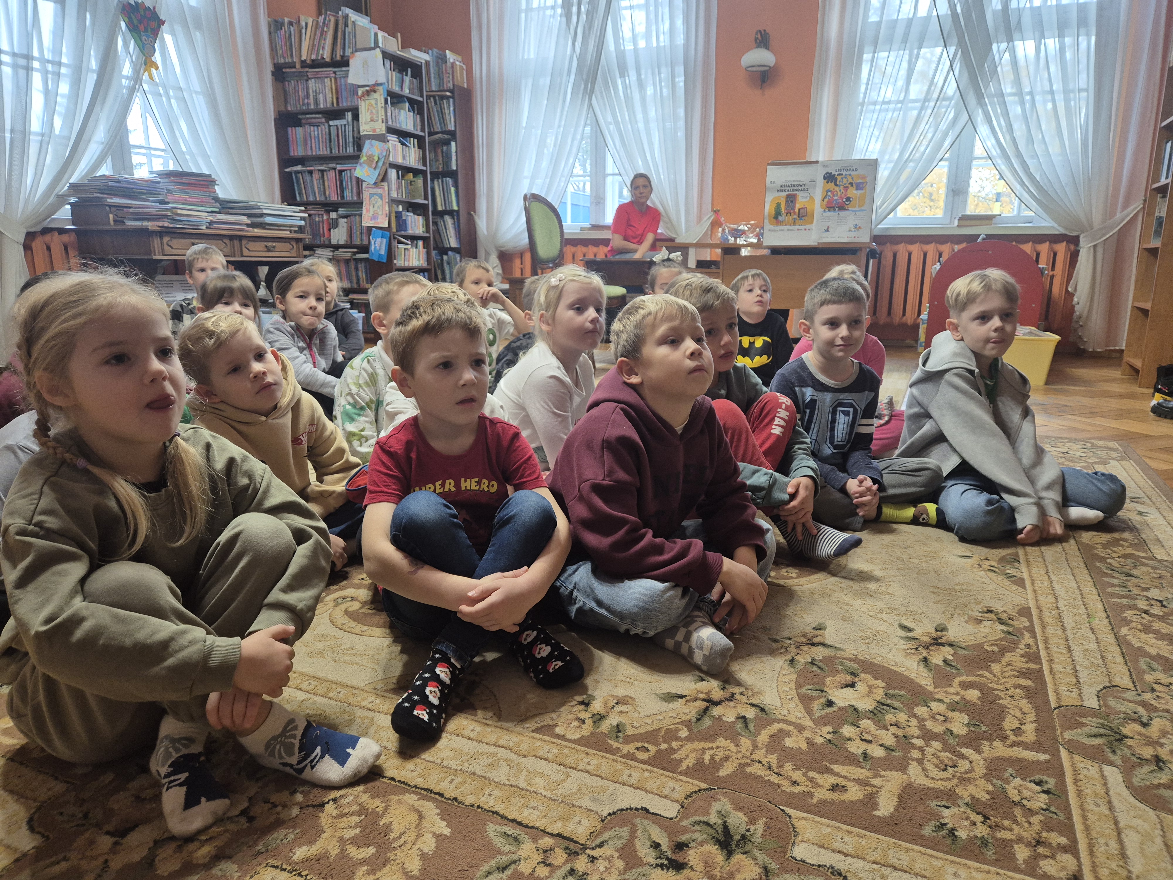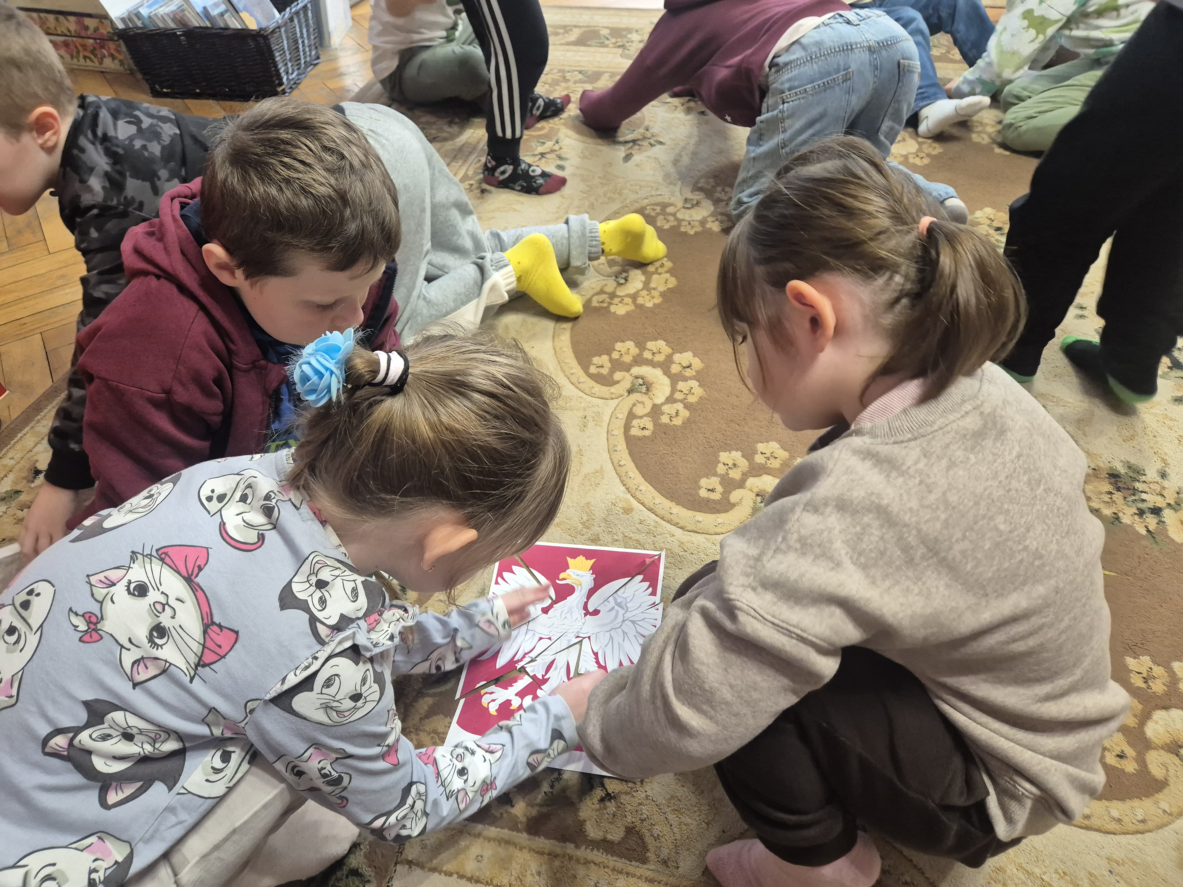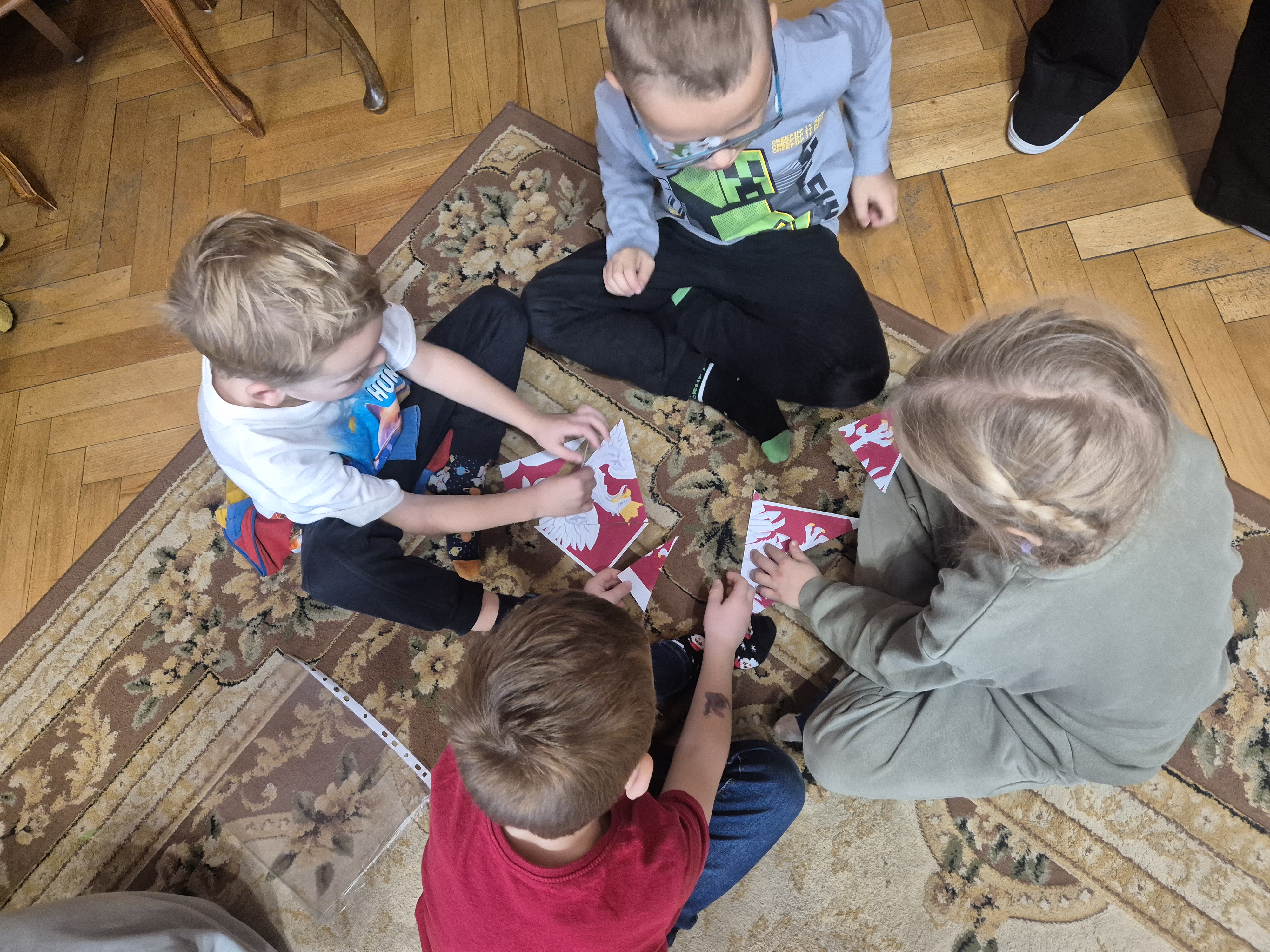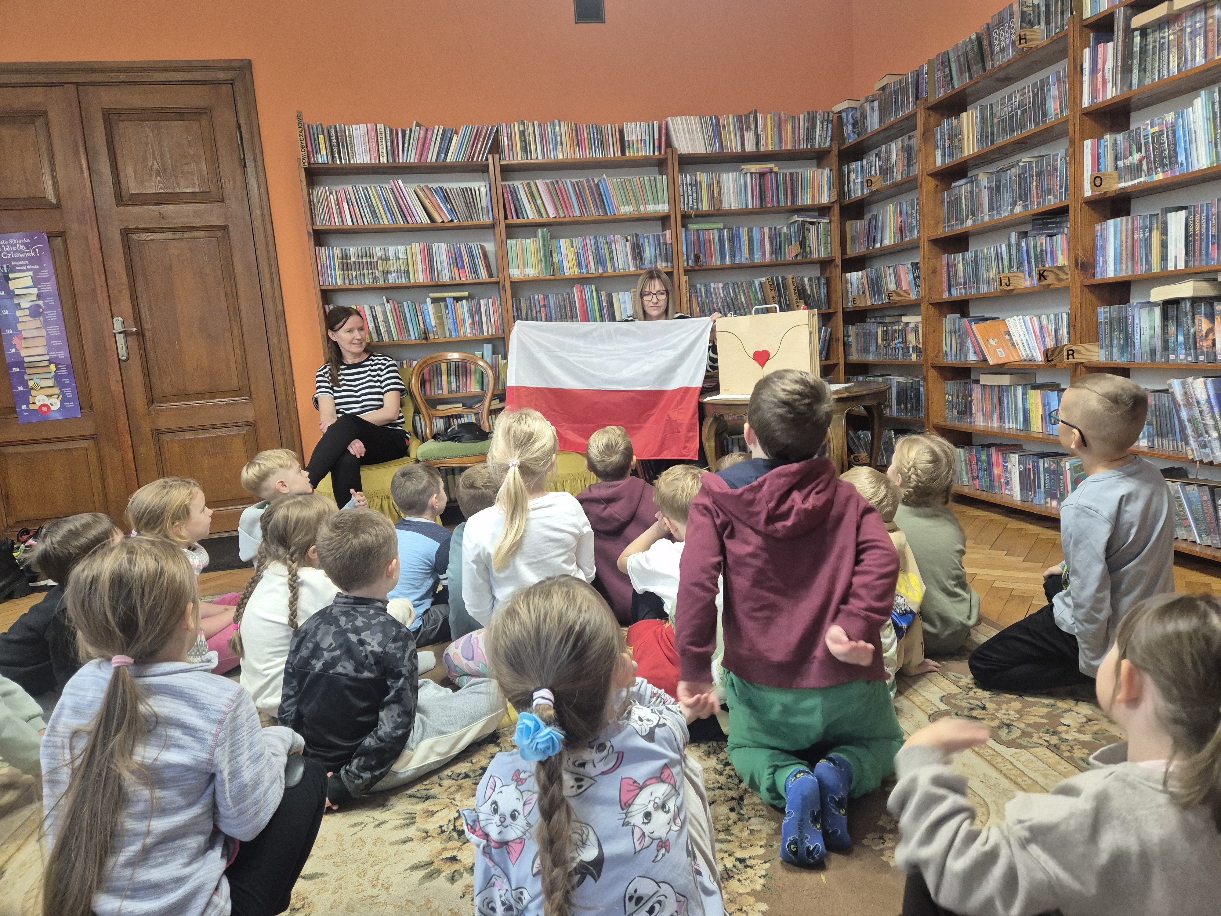 4 Listopada we wtorek dzieci wybrały się na wizytę do Biblioteki Miejskiej, gdzie przywitała je pani Asia. Na początku opowiedziała im o Święcie Niepodległości oraz o tym, dlaczego jest ono tak ważne dla wszystkich Polaków. Podczas spotkania odbyła się również rozmowa o symbolach narodowych – dzieci przypomniały sobie, jak wygląda flaga Polski, jakie znaczenie mają jej kolory, poznały godło oraz wspólnie zaśpiewały fragment Hymnu Narodowego. Następnie pani Asia przeczytała specjalne opowiadanie pt. „Niepodległa”, dzięki któremu dzieci mogły lepiej zrozumieć znaczenie wolności i miłości do ojczyzny. Później dzieci zostały podzielone na grupy i układały symbole Polski z przygotowanych układanek. Na zakończenie uczestniczyły w wesołej zabawie z chustą animacyjną. Całe spotkanie przebiegło w miłej, pełnej zaangażowania atmosferze.