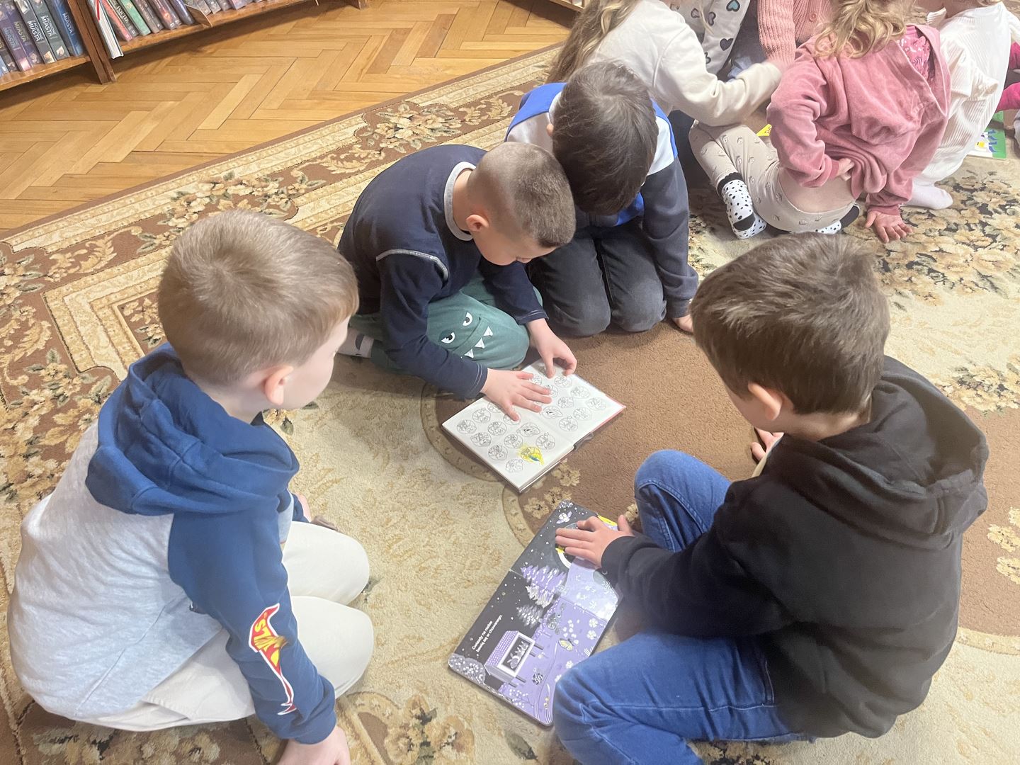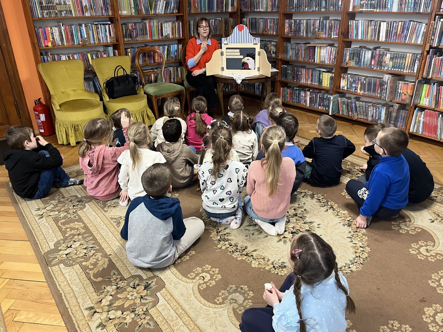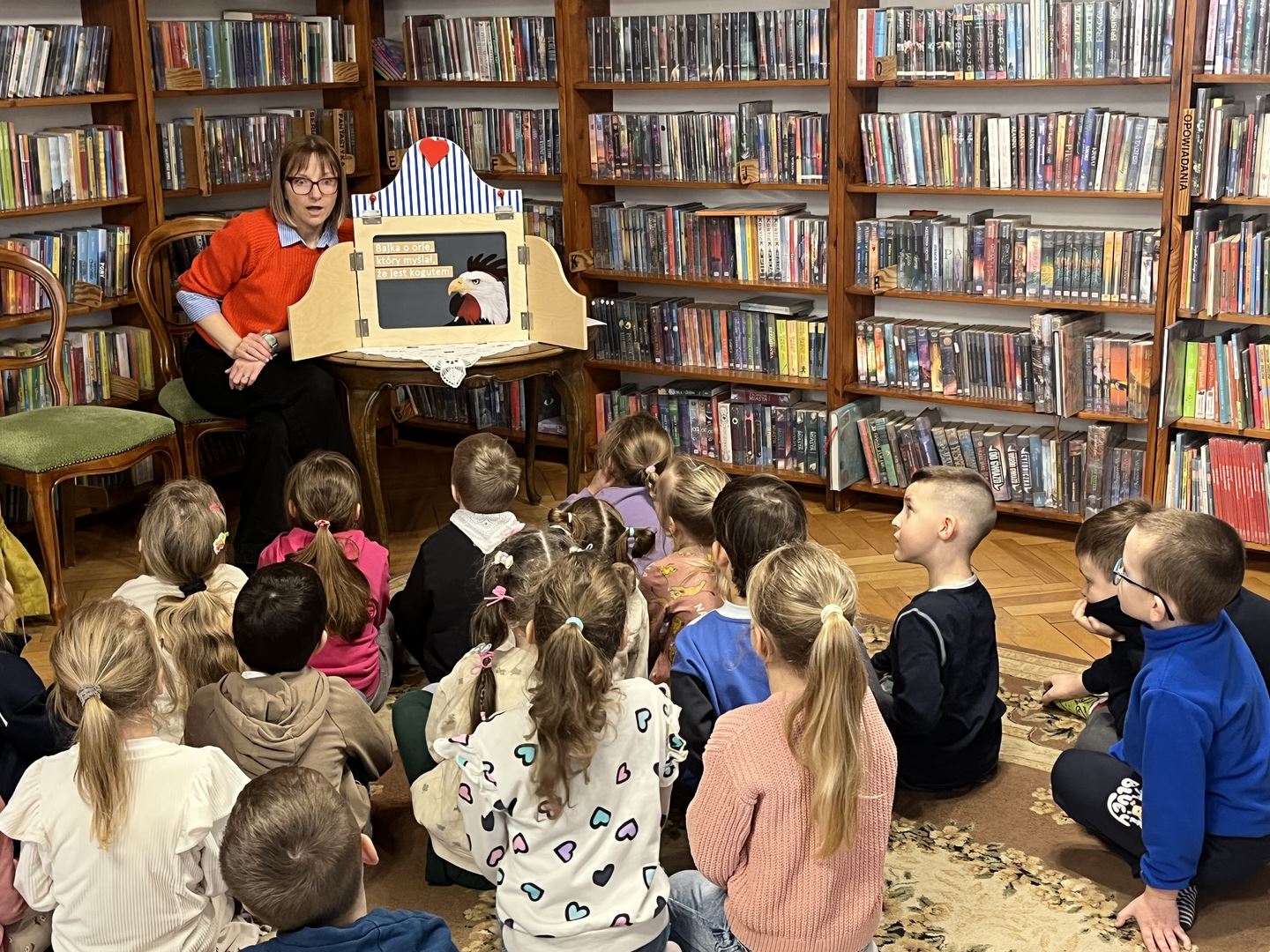 Nowy tydzień grupa „0b” rozpoczęła od wyjścia do Powiatowej i Miejskiej Biblioteki w Pruszczu Gdańskim. Zajęcia z Panią Asią okazały się niezwykle interesujące. Rozmowę zaczęliśmy o Indianach i wysłuchania ciekawostek o tej grupie rdzennej ludności Ameryki Północnej. Dzieci poznały takie pojęcia jak totem, kanu, tipi czy wigwam. Słuchali o bizonach i mustangach. Informacje ze świata Indian były dla nich bardzo interesujące. „Bajka o orle, który myślał, że jest kogutem” taki tytuł nosi indiańska legenda, której wspólnie wysłuchaliśmy. Czasami realizacja marzeń bywa trudna, niekiedy ich spełnienie wydaje się niemożliwe. Czy w takiej sytuacji zrezygnować ze swoich pragnień? A może warto za wszelką cenę pokonywać przeciwności?Inspirację do rozważań stanowiła opowieść o orle, który myślał, że jest kogutem. Przez pomyłkę został wychowany w kurniku. Gdy dorósł i zobaczył latającego orła, poczuł wewnętrzny smutek i tęsknotę. Zapragnął wznieść się w powietrze. Nie otrzymał jednak zrozumienia wśród najbliższych — kogut przecież nie lata. Zamiast wymyślać niemożliwe do spełnienia cele, powinien doceniać to, co ma. „Bajka o orle, który myślał, że jest kogutem” może mieć dwa zakończenia. Ptak wysłuchał rad kurzej rodziny i zrezygnował z marzenia albo też sprzeciwił się radom najbliższych i spróbował swoich sił w lataniu, pomimo strachu i niepewności. Wspólnie zadecydowaliśmy - warto podążać za marzeniami!