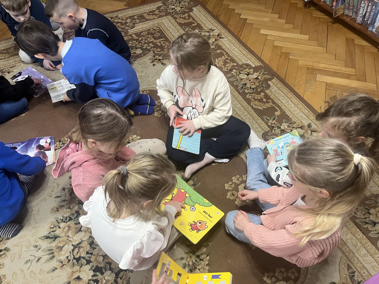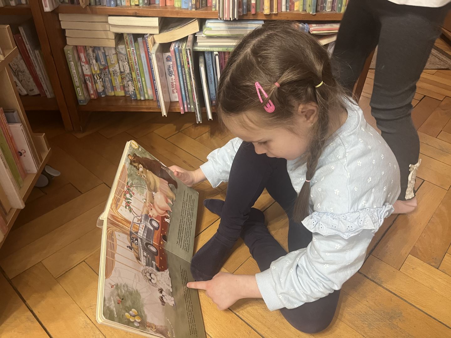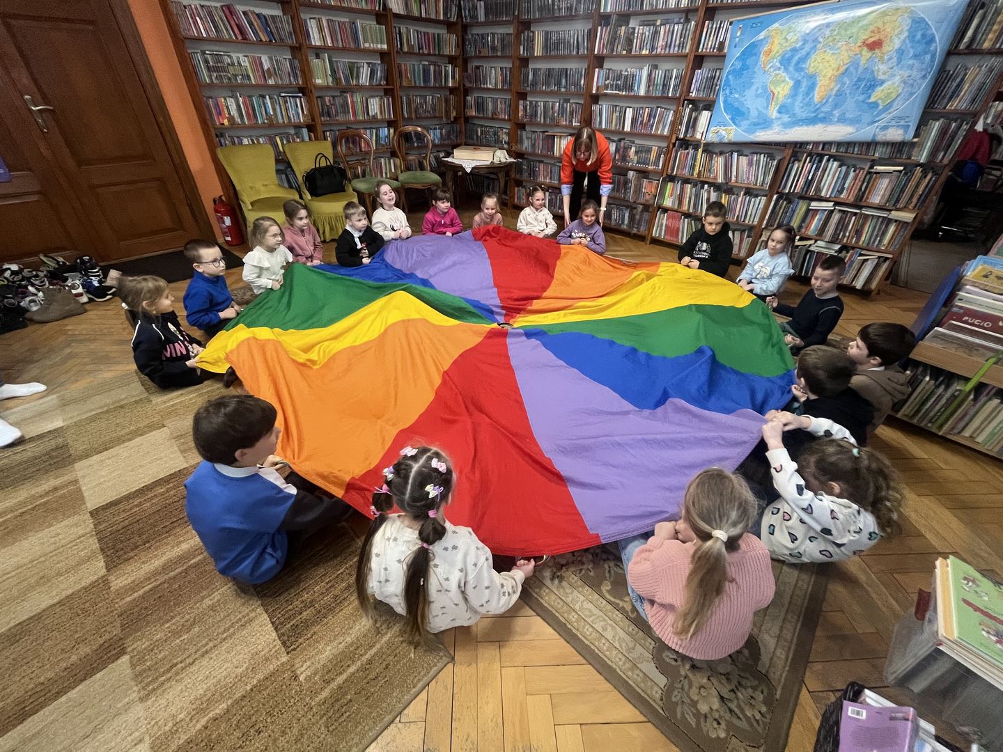 Nowy tydzień grupa „0b” rozpoczęła od wyjścia do Powiatowej i Miejskiej Biblioteki w Pruszczu Gdańskim. Zajęcia z Panią Asią okazały się niezwykle interesujące. Rozmowę zaczęliśmy o Indianach i wysłuchania ciekawostek o tej grupie rdzennej ludności Ameryki Północnej. Dzieci poznały takie pojęcia jak totem, kanu, tipi czy wigwam. Słuchali o bizonach i mustangach. Informacje ze świata Indian były dla nich bardzo interesujące. „Bajka o orle, który myślał, że jest kogutem” taki tytuł nosi indiańska legenda, której wspólnie wysłuchaliśmy. Czasami realizacja marzeń bywa trudna, niekiedy ich spełnienie wydaje się niemożliwe. Czy w takiej sytuacji zrezygnować ze swoich pragnień? A może warto za wszelką cenę pokonywać przeciwności?Inspirację do rozważań stanowiła opowieść o orle, który myślał, że jest kogutem. Przez pomyłkę został wychowany w kurniku. Gdy dorósł i zobaczył latającego orła, poczuł wewnętrzny smutek i tęsknotę. Zapragnął wznieść się w powietrze. Nie otrzymał jednak zrozumienia wśród najbliższych — kogut przecież nie lata. Zamiast wymyślać niemożliwe do spełnienia cele, powinien doceniać to, co ma. „Bajka o orle, który myślał, że jest kogutem” może mieć dwa zakończenia. Ptak wysłuchał rad kurzej rodziny i zrezygnował z marzenia albo też sprzeciwił się radom najbliższych i spróbował swoich sił w lataniu, pomimo strachu i niepewności. Wspólnie zadecydowaliśmy - warto podążać za marzeniami!