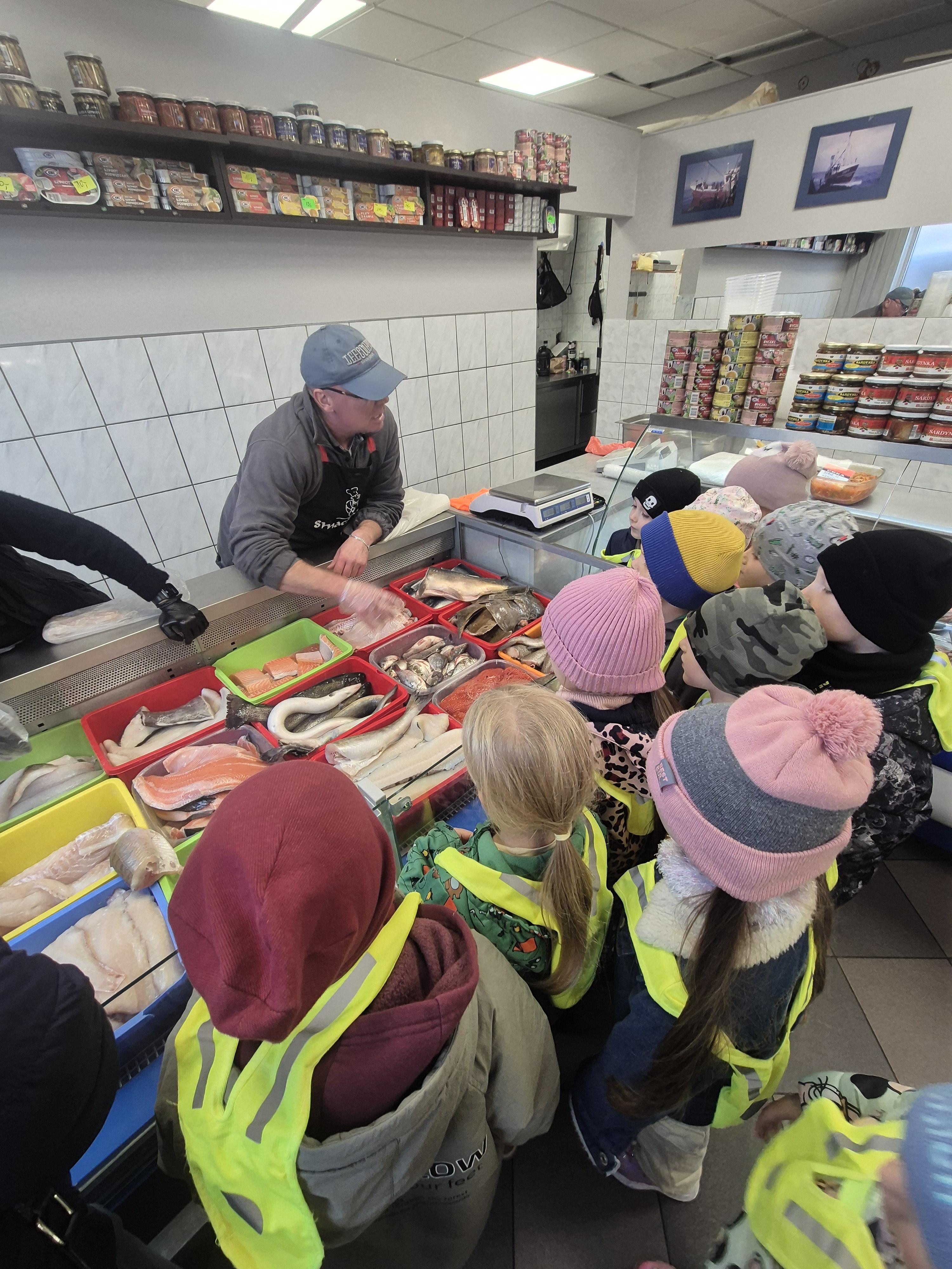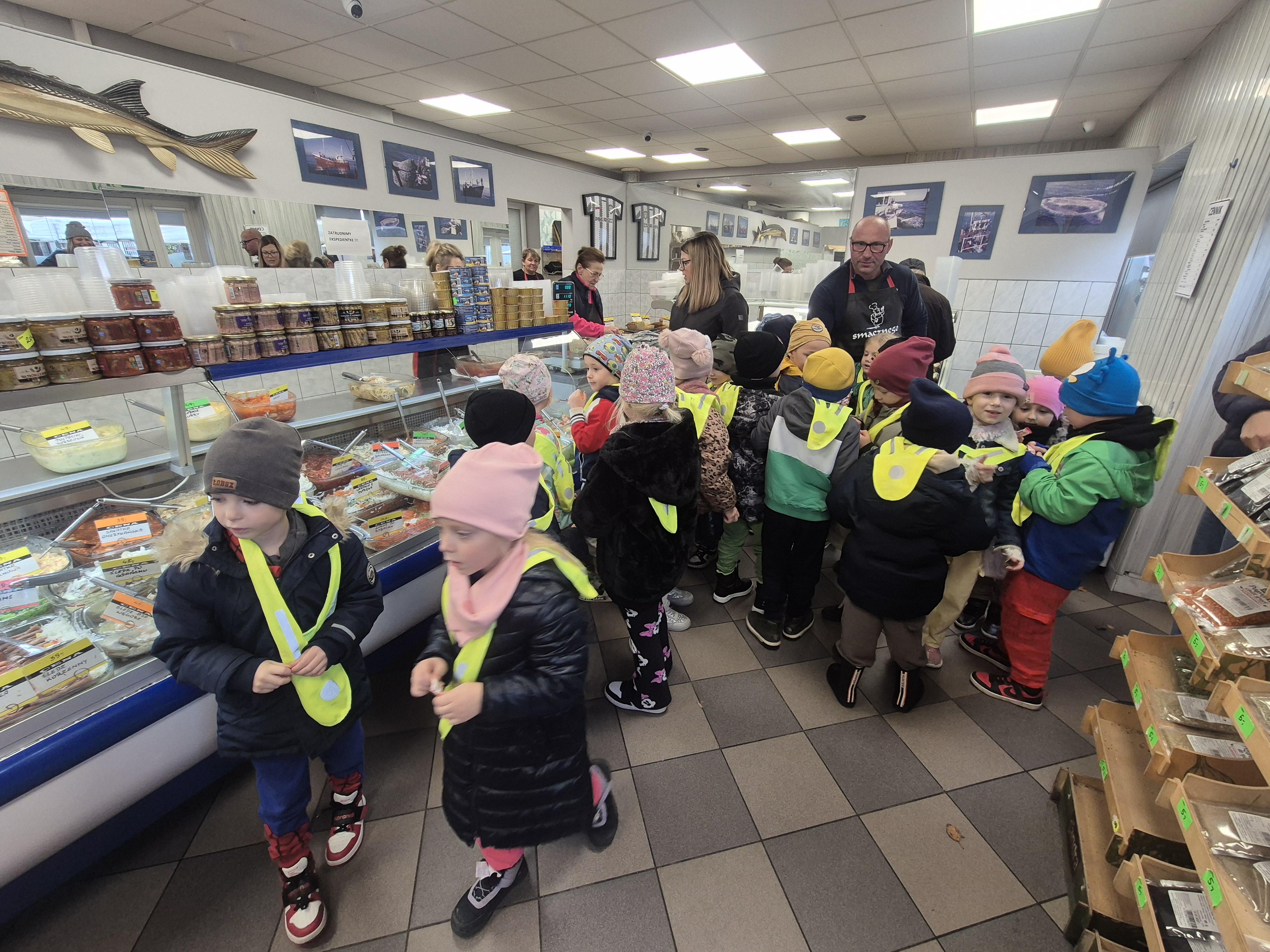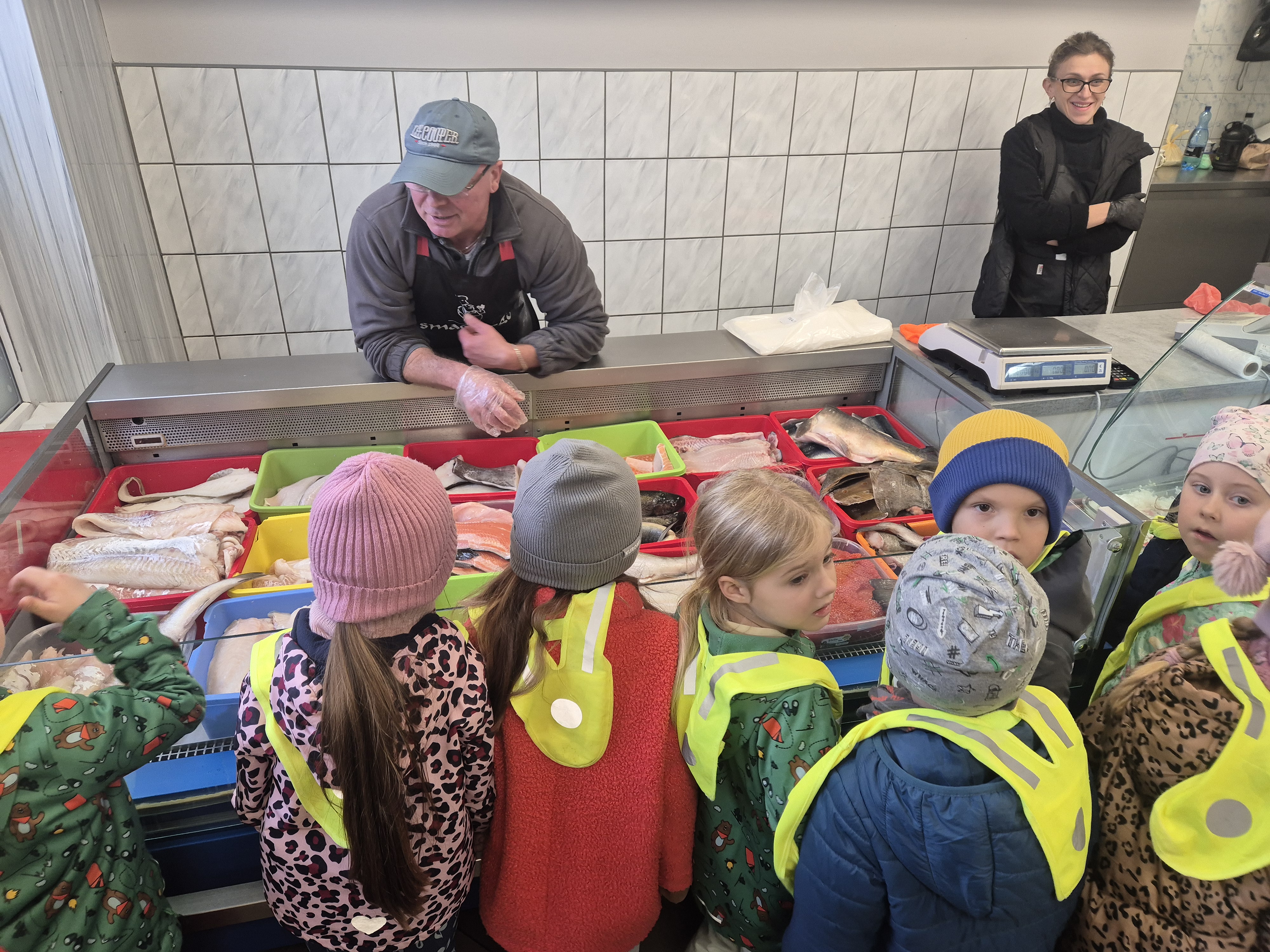 Dzieci wybrały się na ciekawą wizytę do sklepu rybnego. Pan sprzedawca opowiedział, jakie gatunki ryb można tam kupić i pokazał ich różnorodność. Dzieci dowiedziały się, skąd pochodzą ryby oraz w jakiej formie można je przygotować do jedzenia. Pan zachęcał dzieci, aby odwiedzały sklep z rodzicami i próbowały różnych potraw z ryb, ponieważ są one bardzo zdrowe i pełne wartości odżywczych.