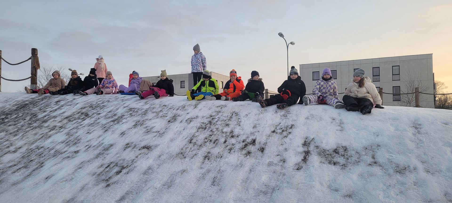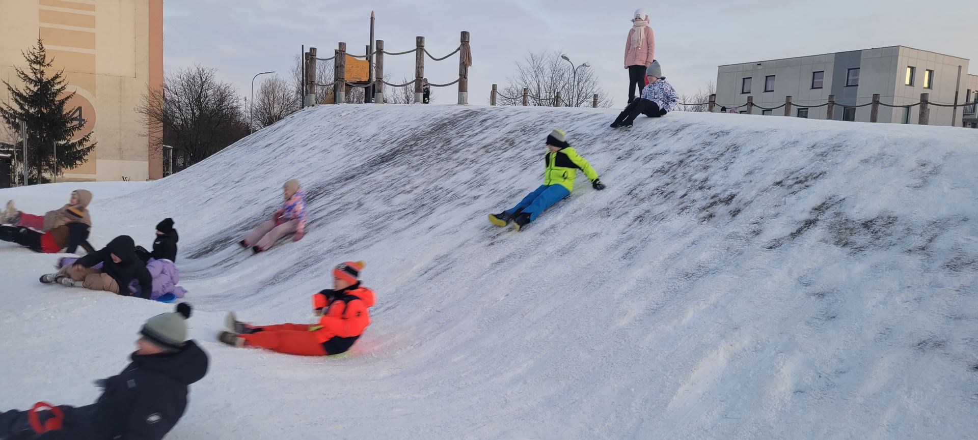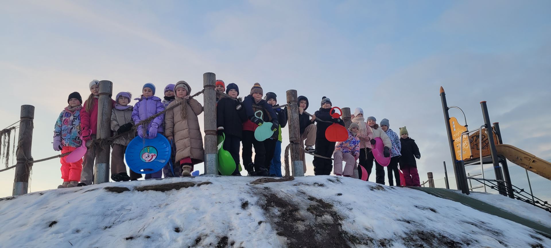 Uczniowie klasy 3 a wybrali się na pobliską górkę, aby aktywnie spędzić czas na świeżym powietrzu. Dzieci chętnie bawiły się na śniegu, zjeżdżając na sankach i jabłuszkach. Towarzyszyło im dużo radości i śmiechu, a wspólna zabawa sprzyjała integracji oraz rozwijaniu sprawności ruchowej.