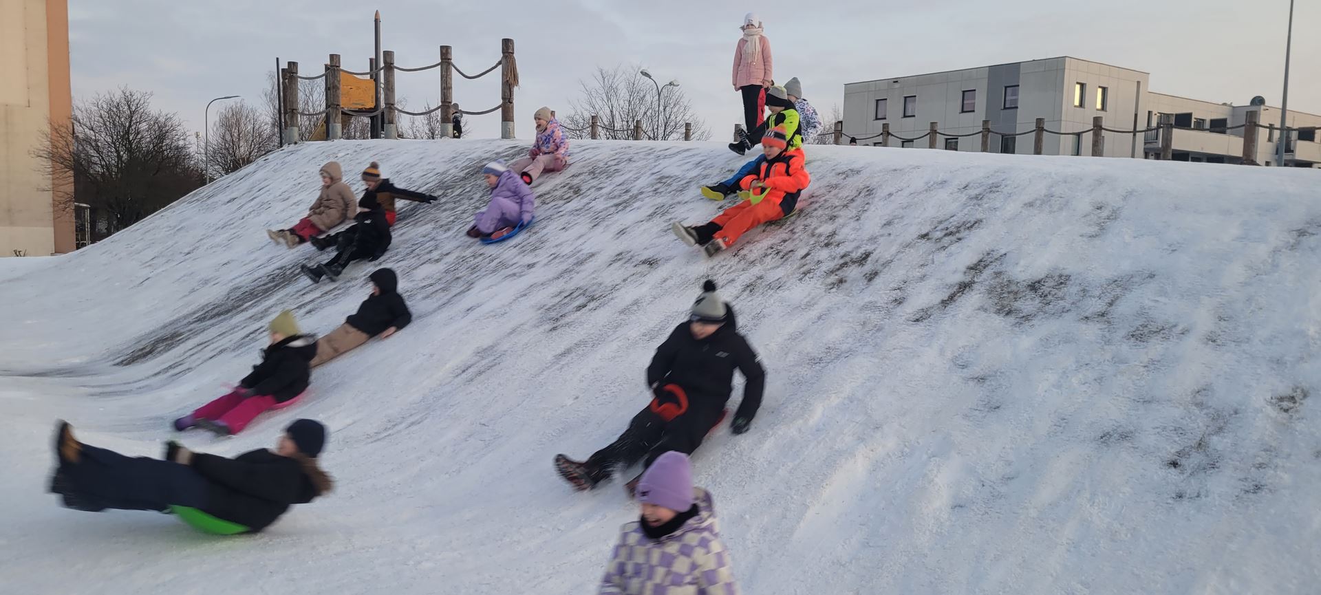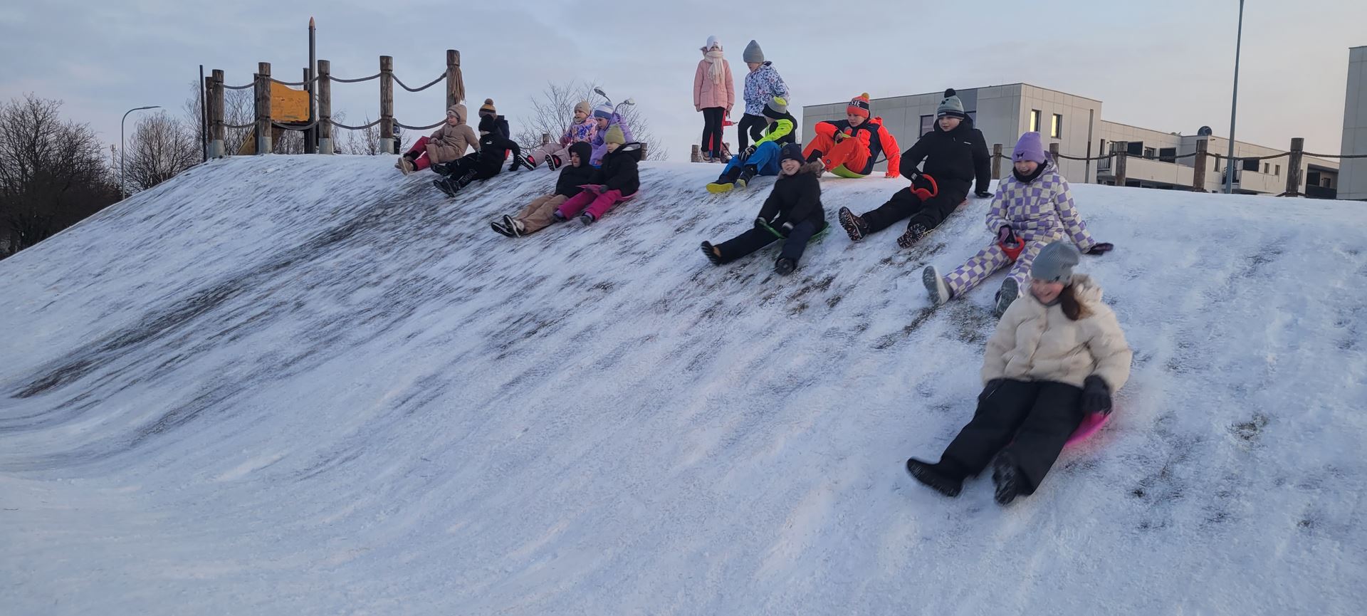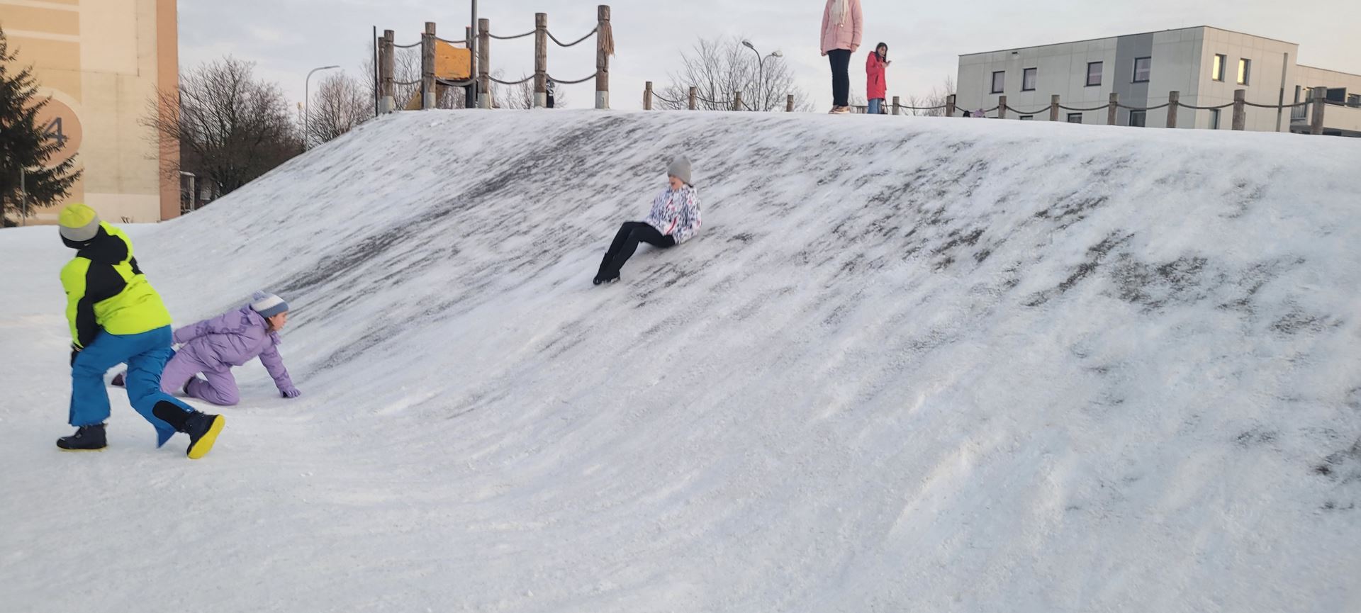 Uczniowie klasy 3 a wybrali się na pobliską górkę, aby aktywnie spędzić czas na świeżym powietrzu. Dzieci chętnie bawiły się na śniegu, zjeżdżając na sankach i jabłuszkach. Towarzyszyło im dużo radości i śmiechu, a wspólna zabawa sprzyjała integracji oraz rozwijaniu sprawności ruchowej.