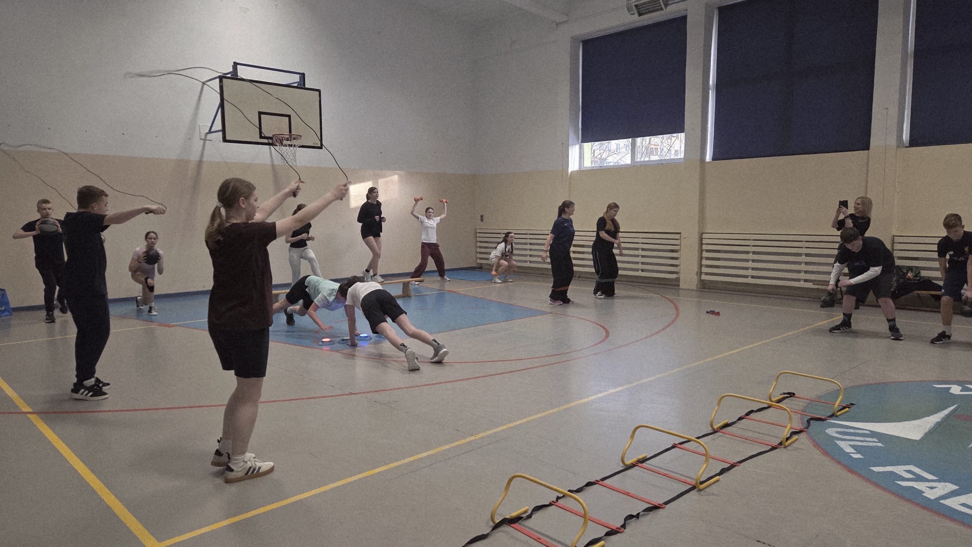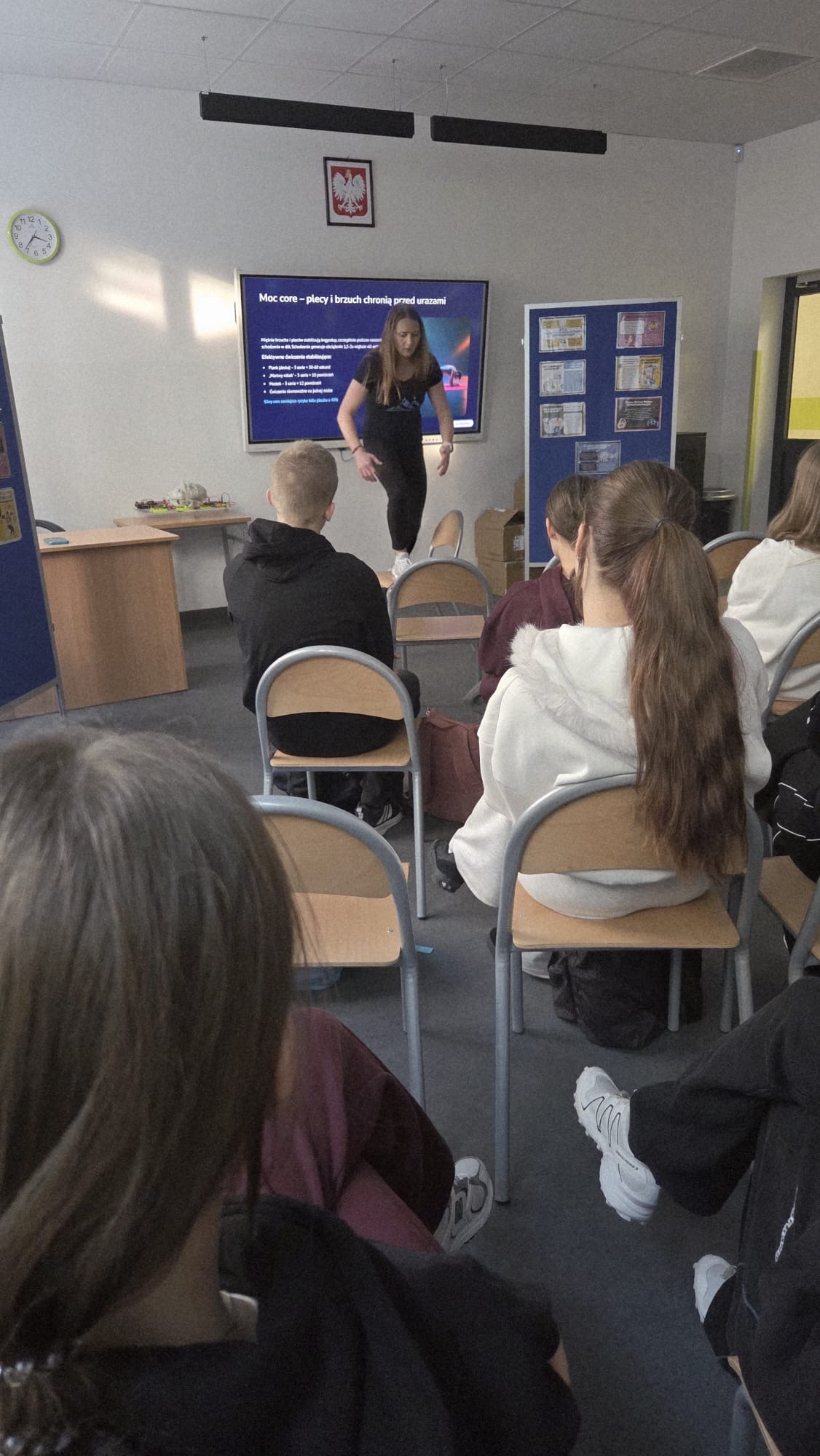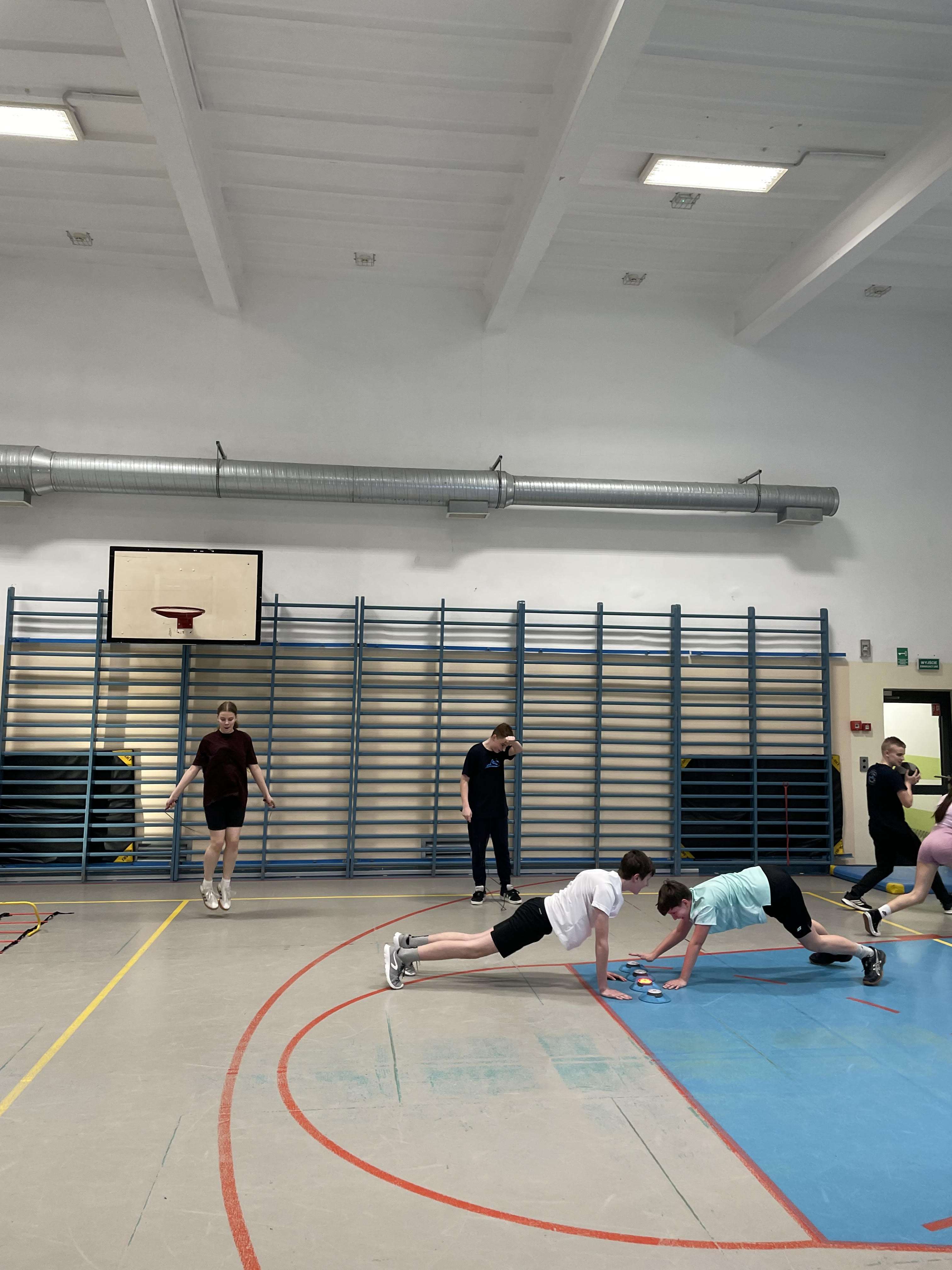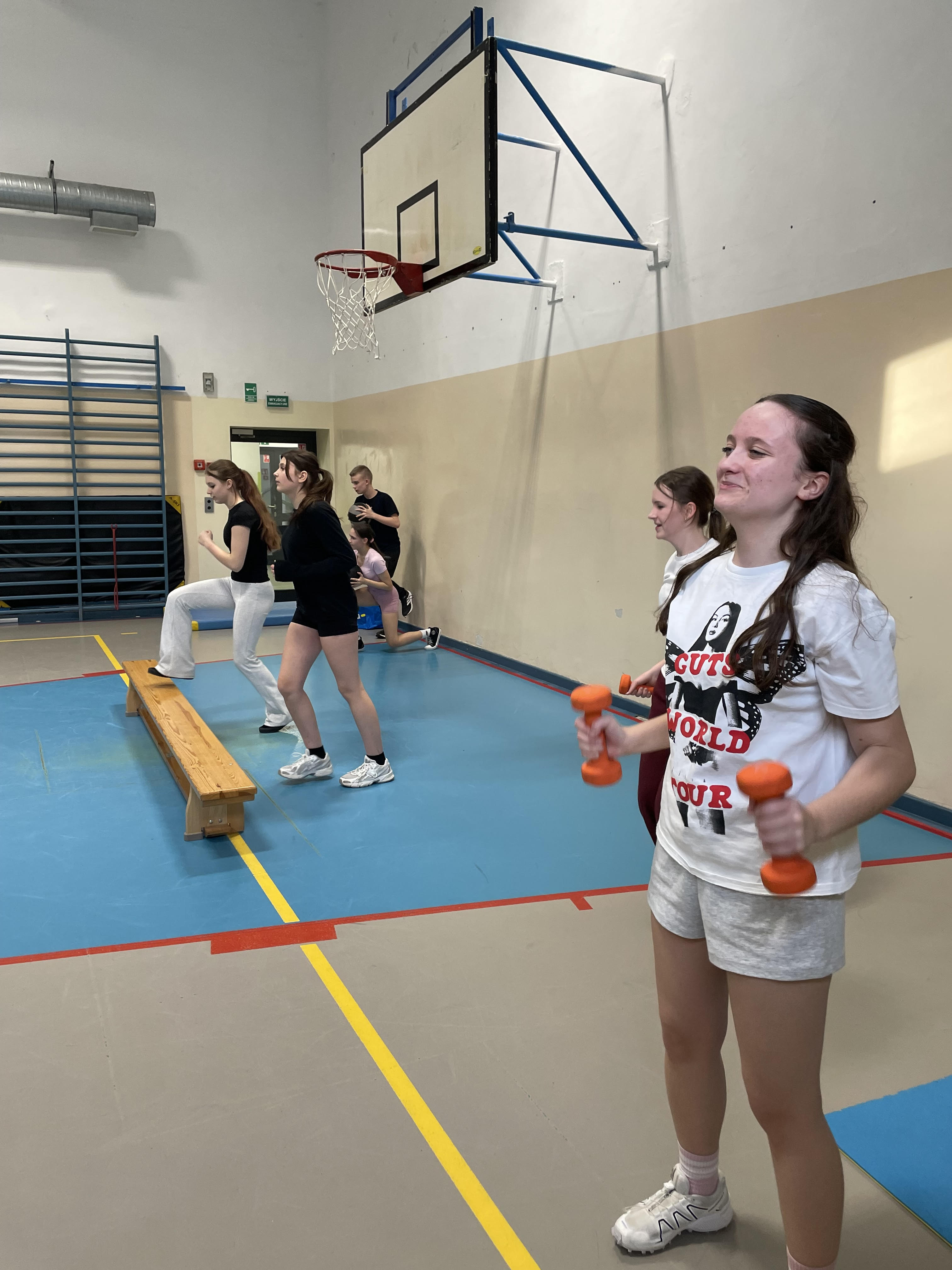 Po części teoretycznej uczestnicy przeszli na salę gimnastyczną, gdzie czekały na nich specjalnie przygotowane stacje zadaniowe. Każda z nich obejmowała inne ćwiczenia rozwijające m.in. koordynację, równowagę, siłę oraz wytrzymałość. Uczniowie z dużym zaangażowaniem wykonywali kolejne zadania, wykazując się determinacją i sportowym duchem.