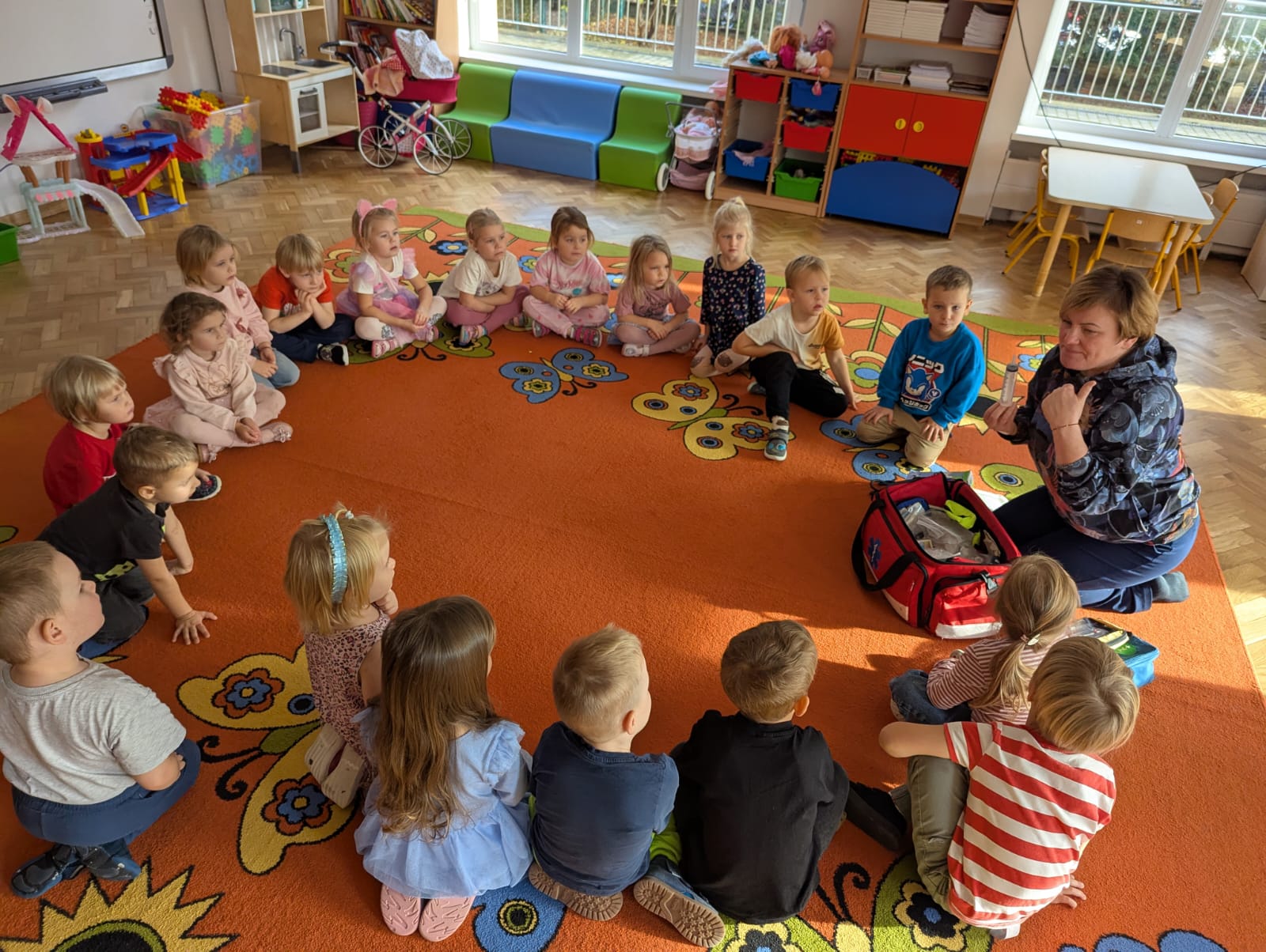 17 listopada w Oddziałach Przedszkolnych pojawił się wyjątkowy gość — pani Kasia Kałduńska, pielęgniarka, która zabrała wszystkie grupy w małą wyprawę do świata swojego zawodu.