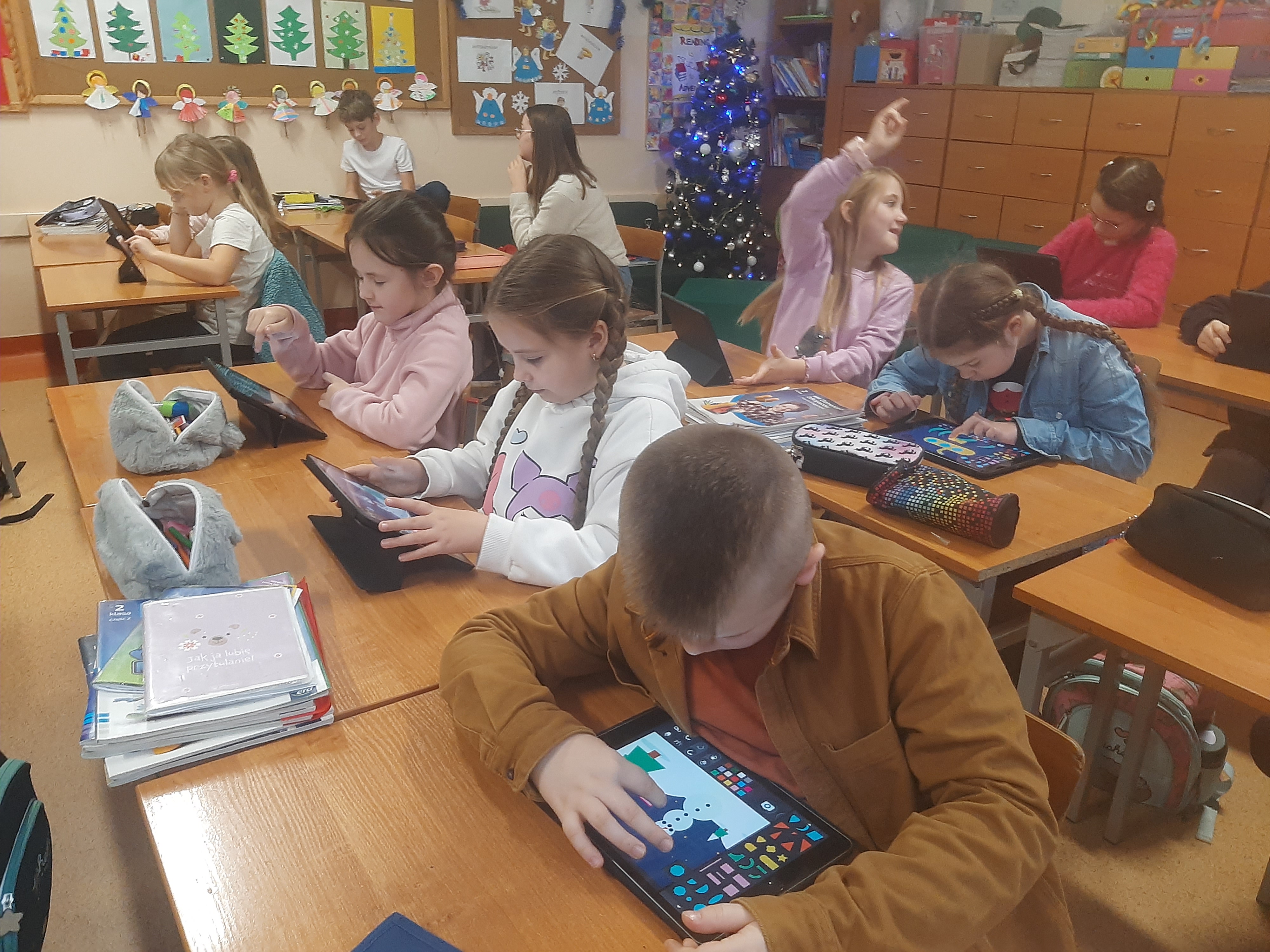 W bieżącym roku szkolnym uczniowie klasy 2b brali udział w zajęciach z tabletami. Dzieci co miesiąc rozwijały swoje kompetencje cyfrowe. Na każdych zajęciach poszerzały swoją wiedze o świecie i korzystały z ciekawych aplikacji.